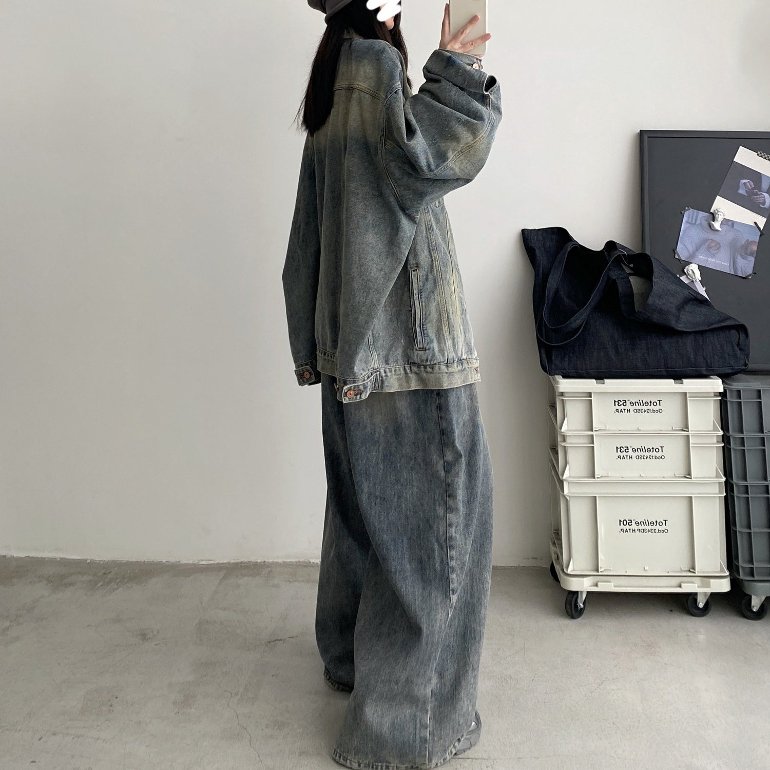 【単品注文】【セットアップ】春 秋 夏 ヴィンテージ風 オーバーサイズ ジャケット+パンツ 2点上下セット【FCシリーズ】