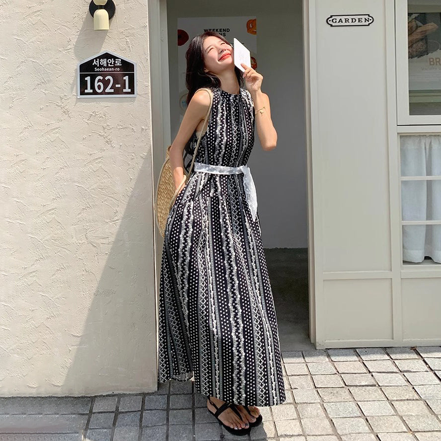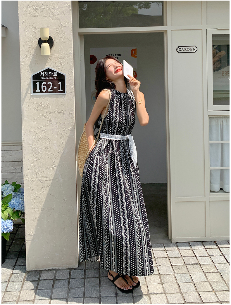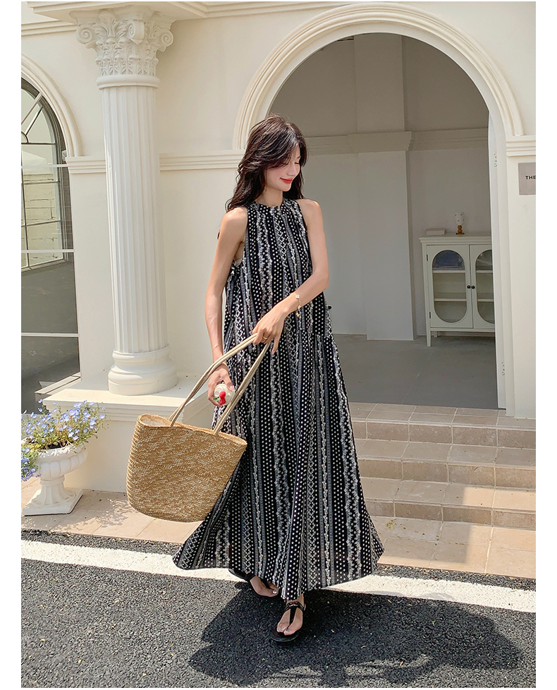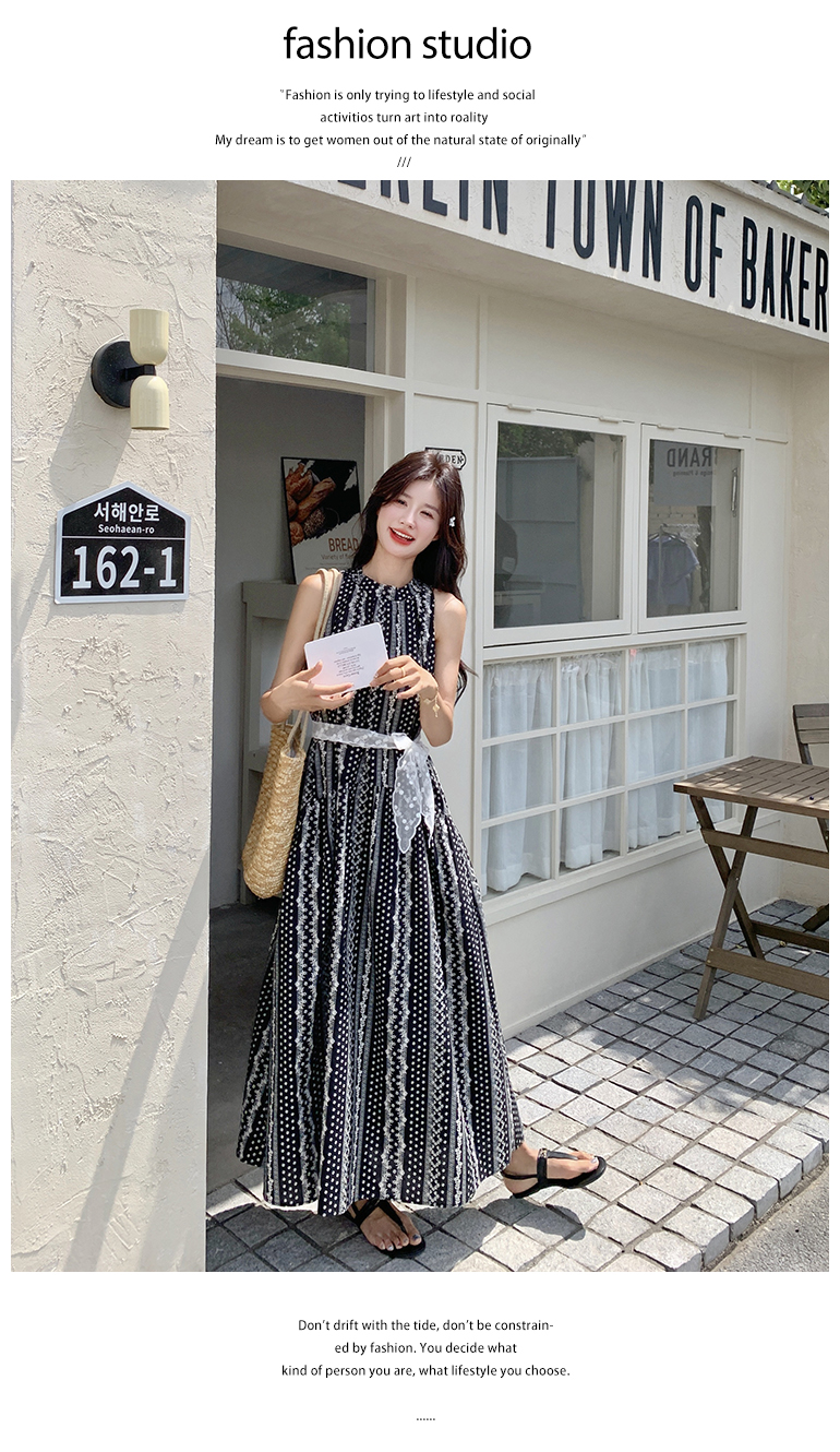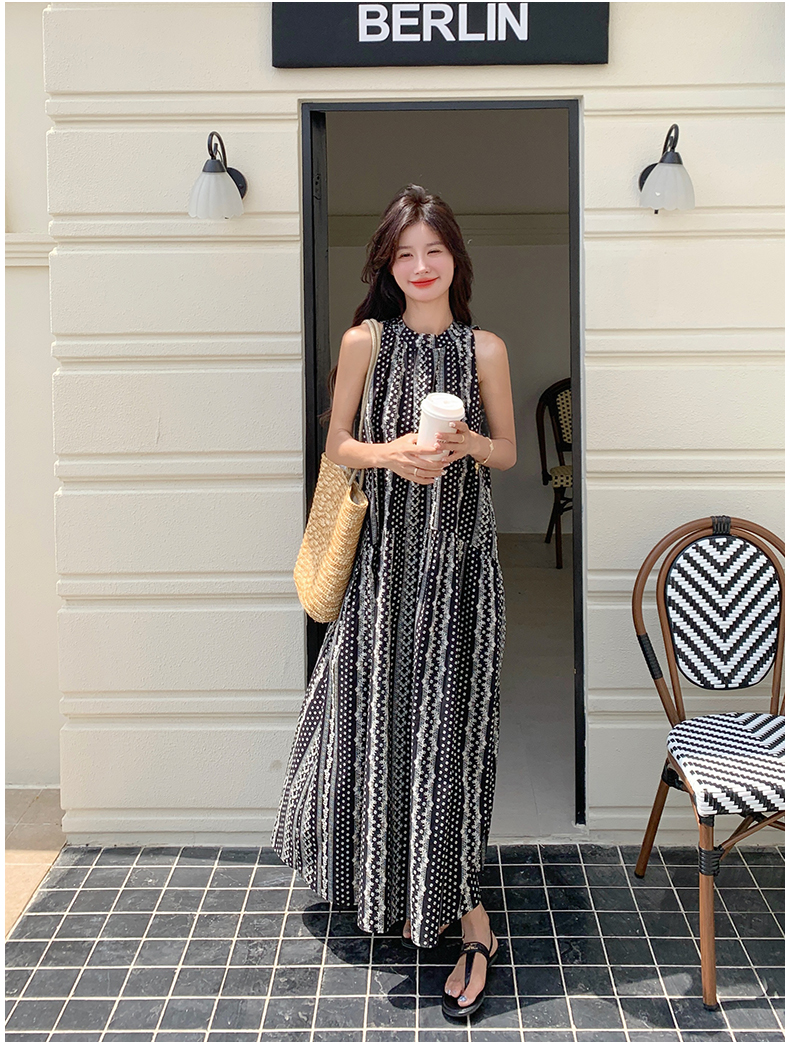 【ワンピース】フレンチ風 優美で個性的 刺繍入り オフショルダー ノースリーブワンピース【SHシリーズ】