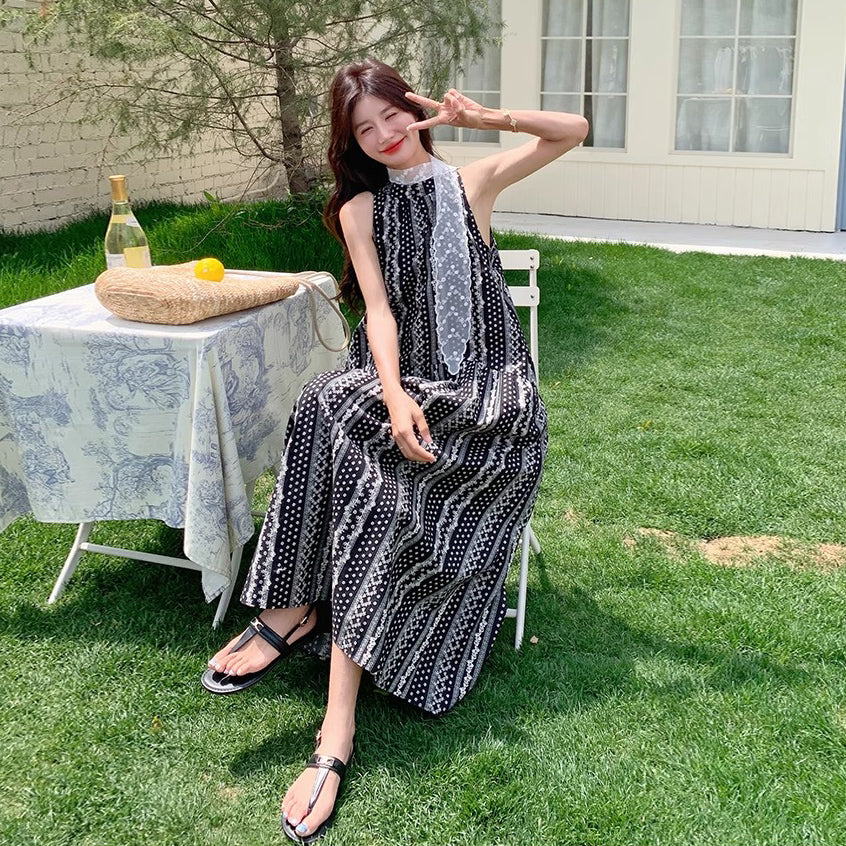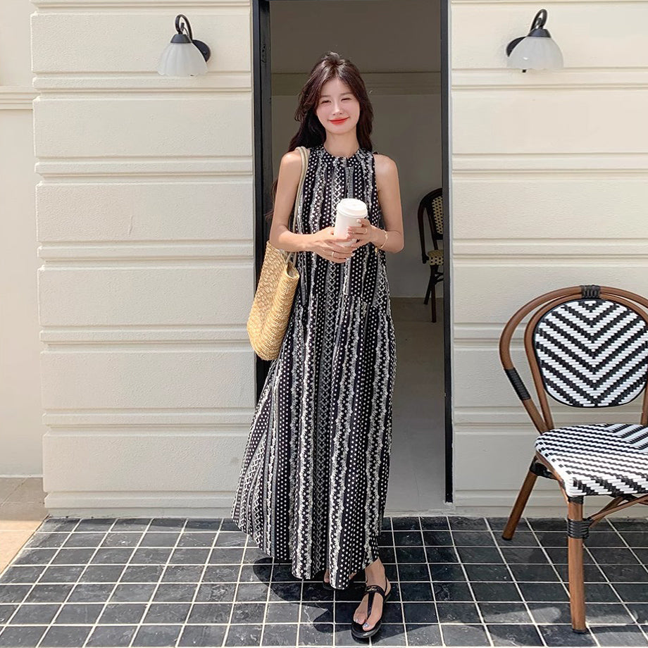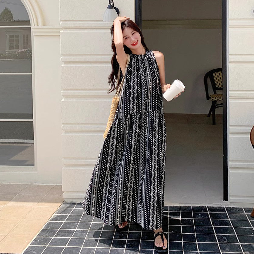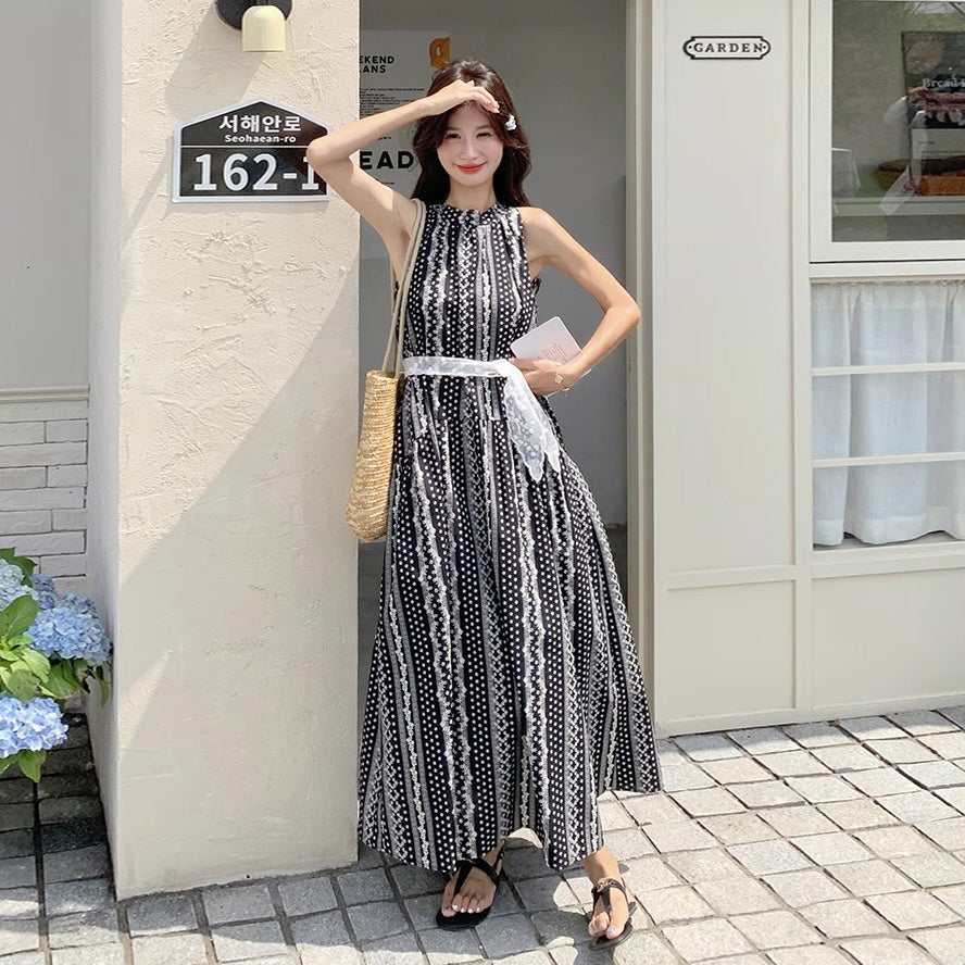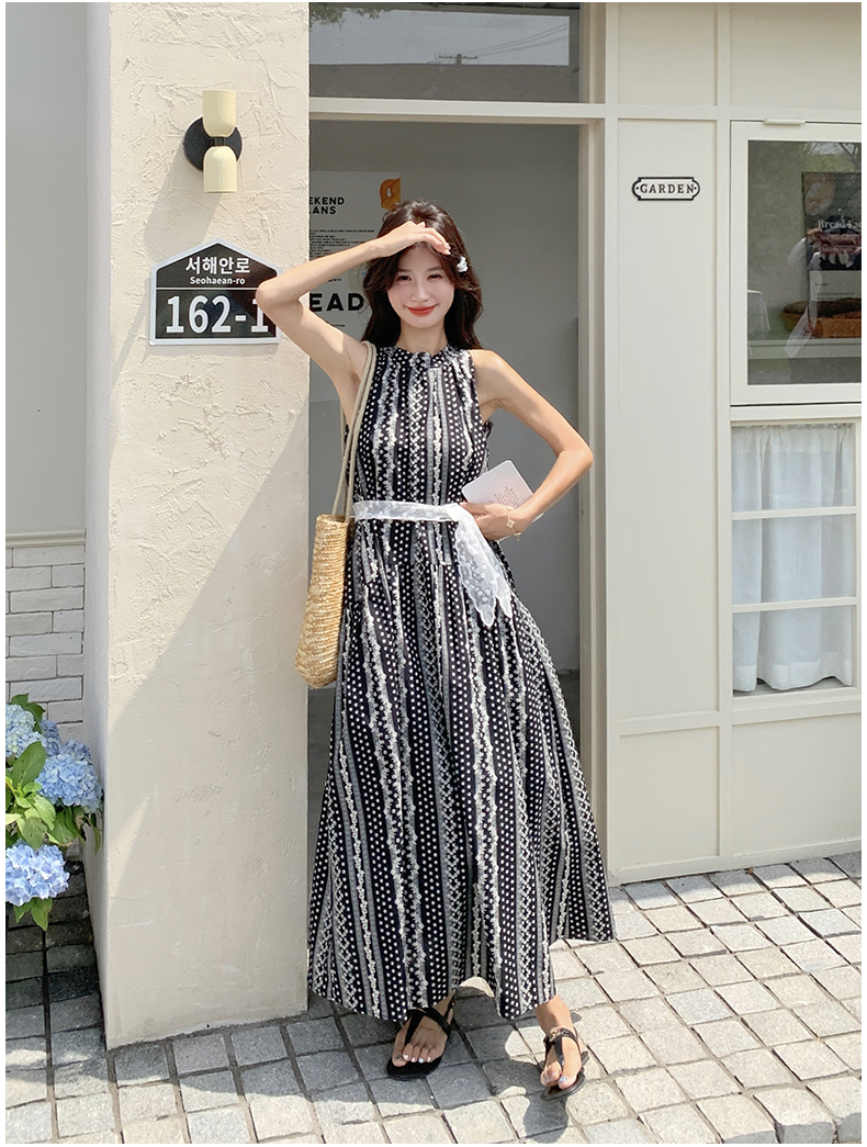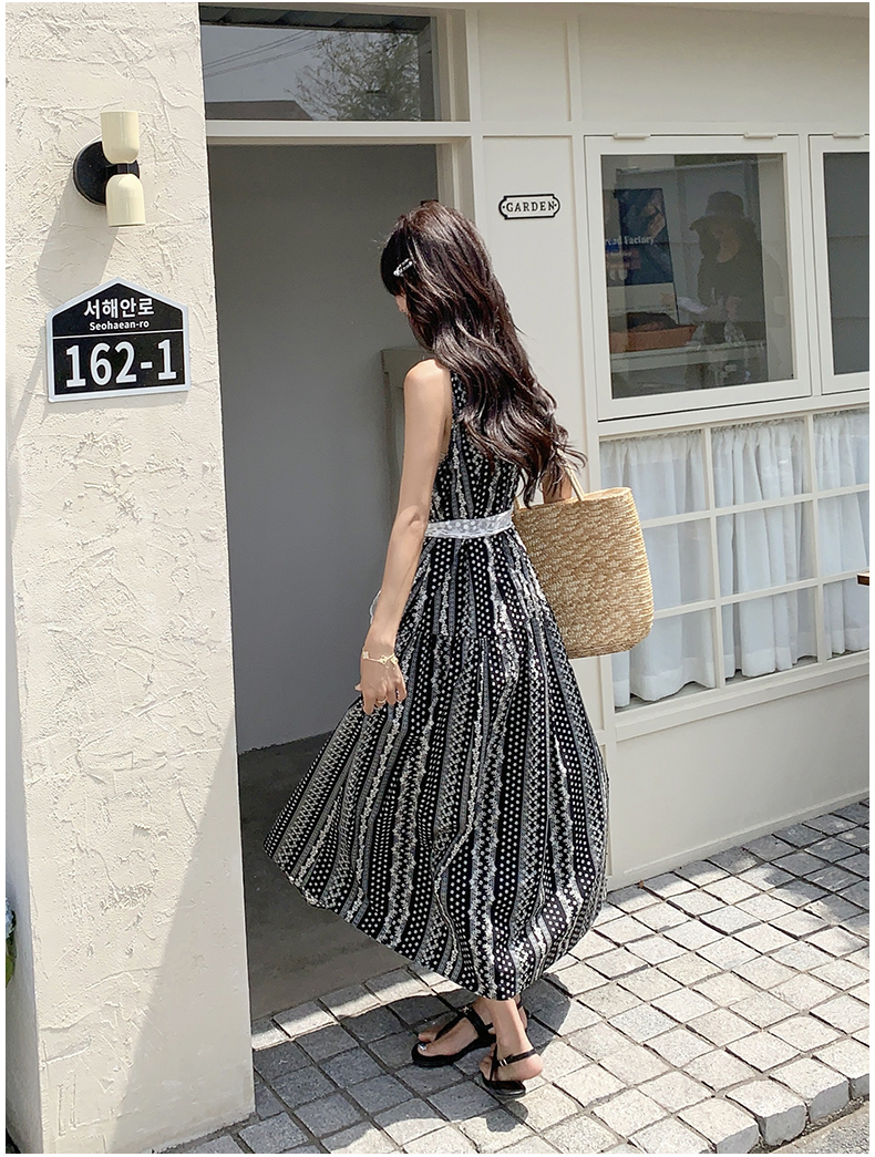 【ワンピース】フレンチ風 優美で個性的 刺繍入り オフショルダー ノースリーブワンピース【SHシリーズ】