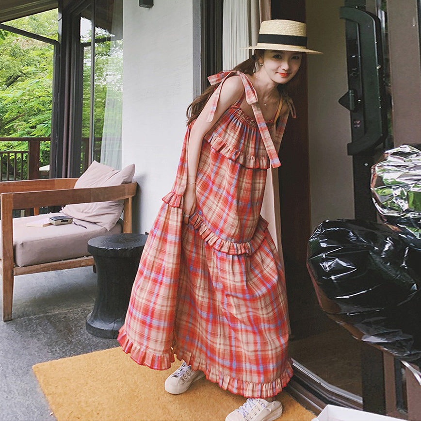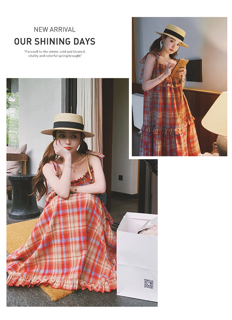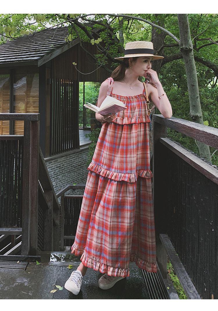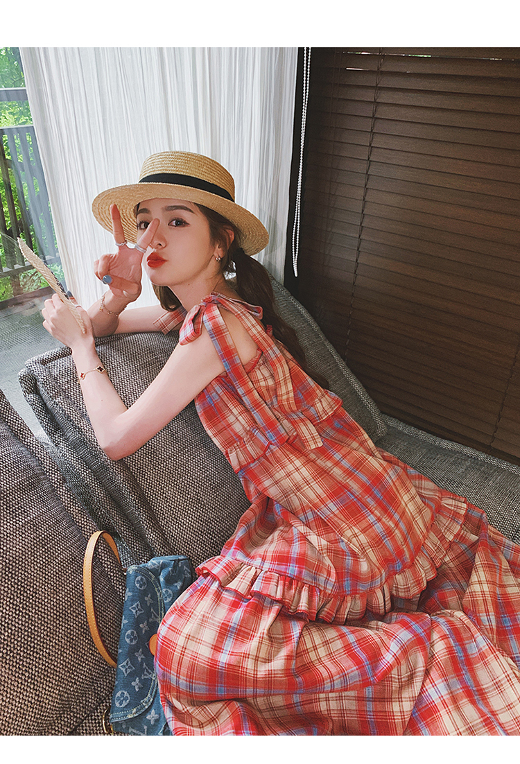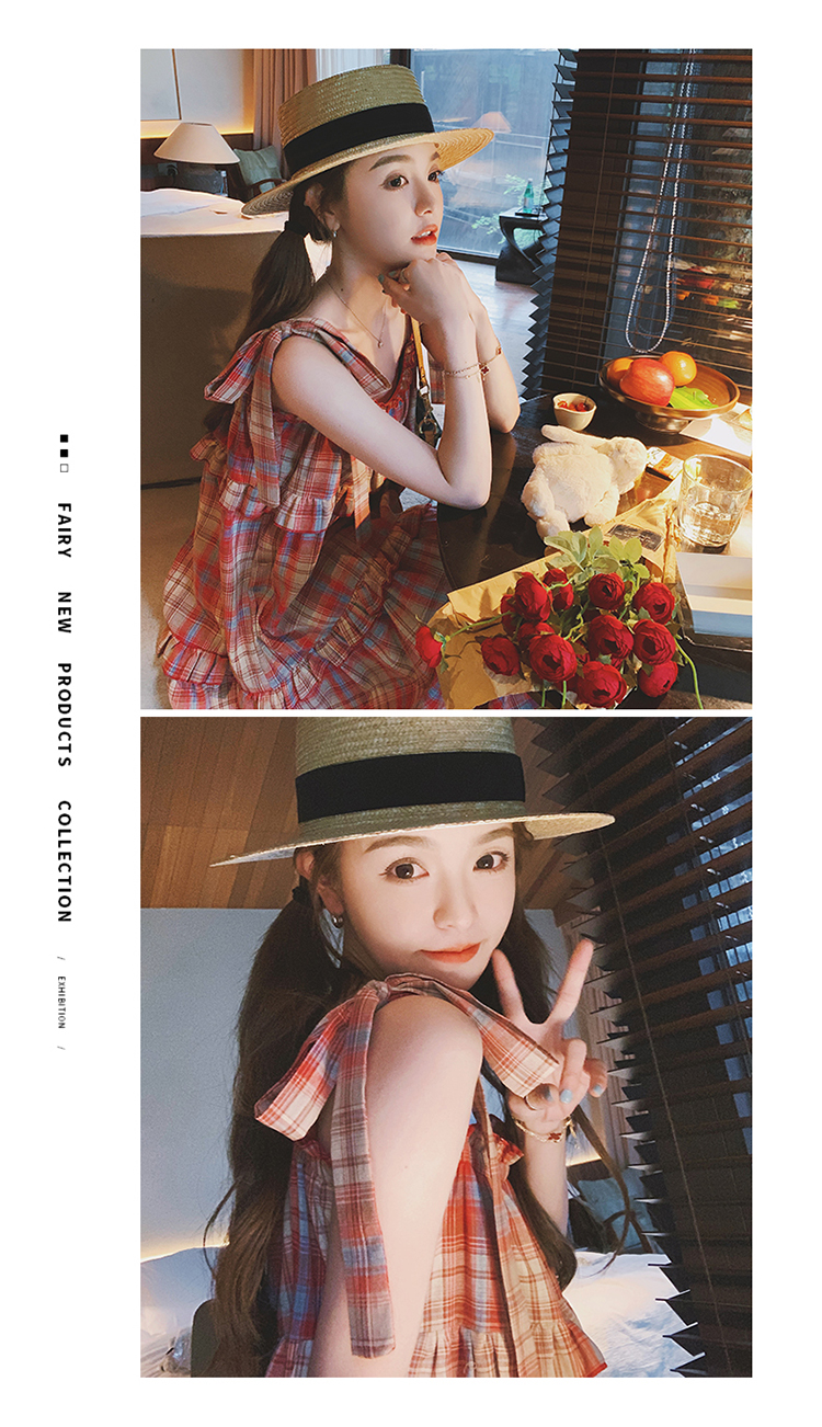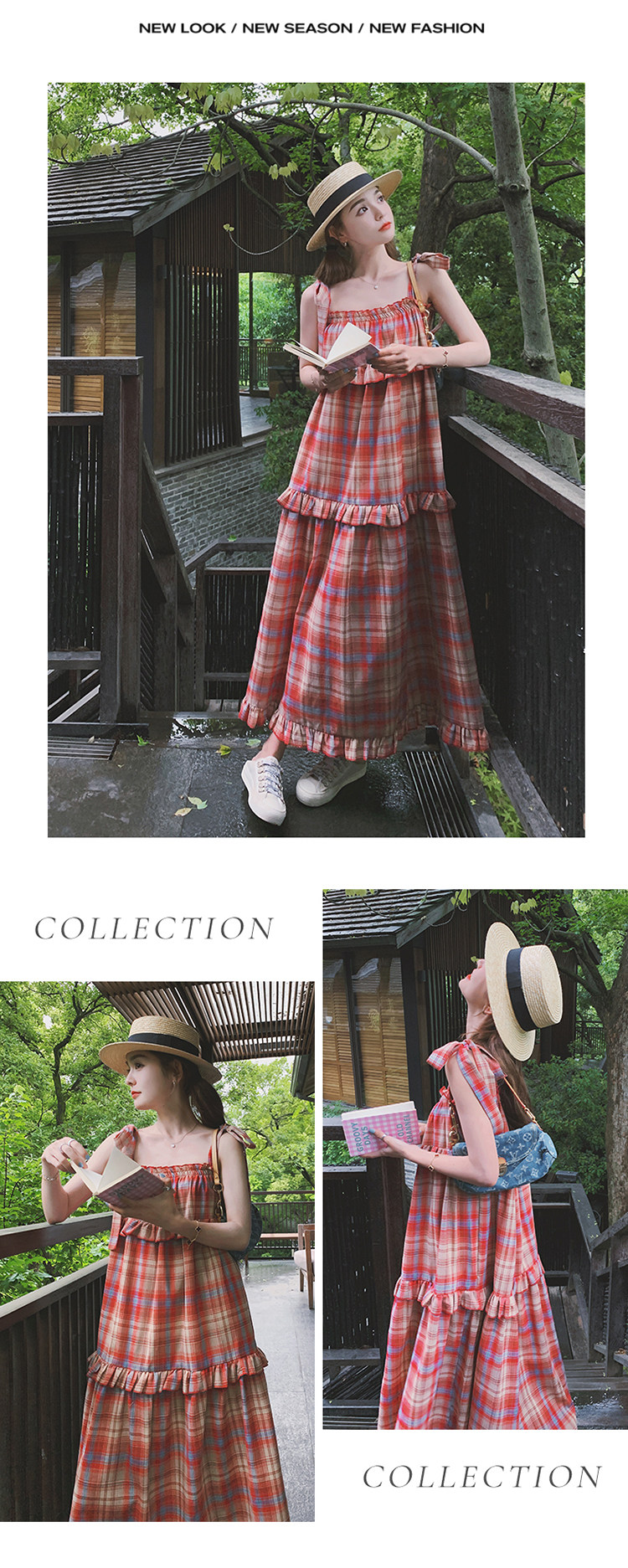 【ワンピース】海辺リゾート ゆったりシルエット 甘め優しげチェック柄ノースリーブワンピース【SHシリーズ】
