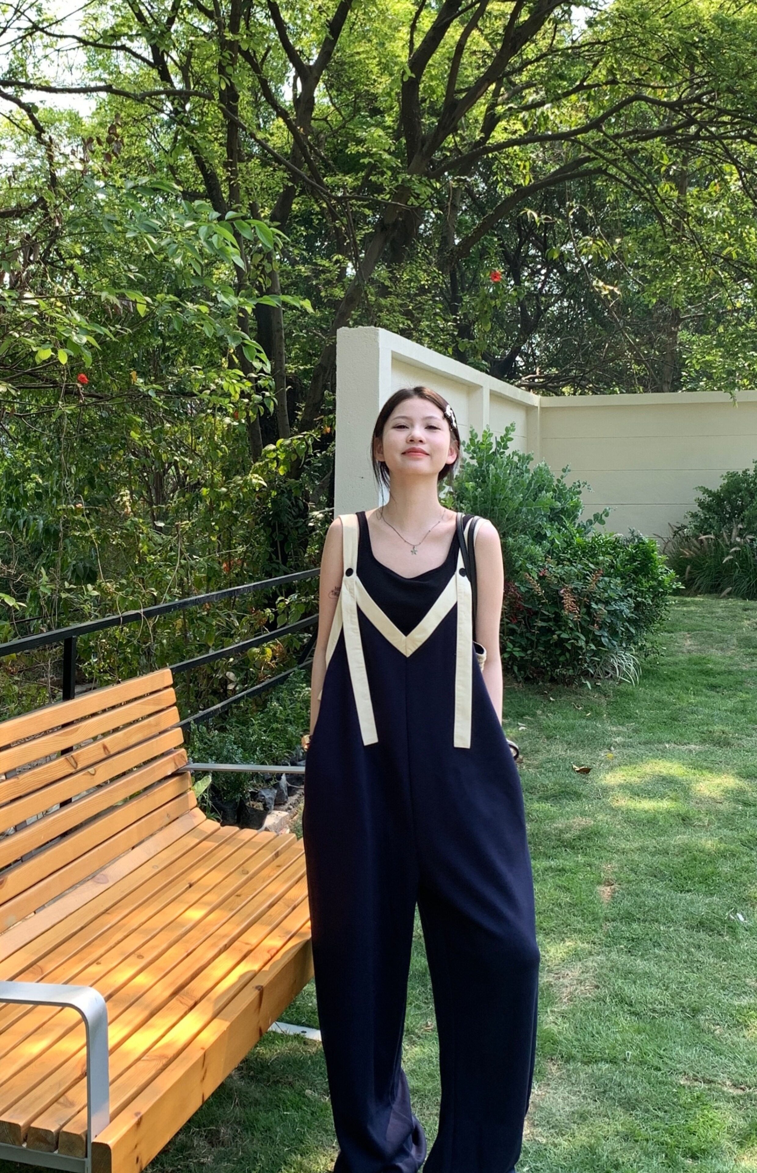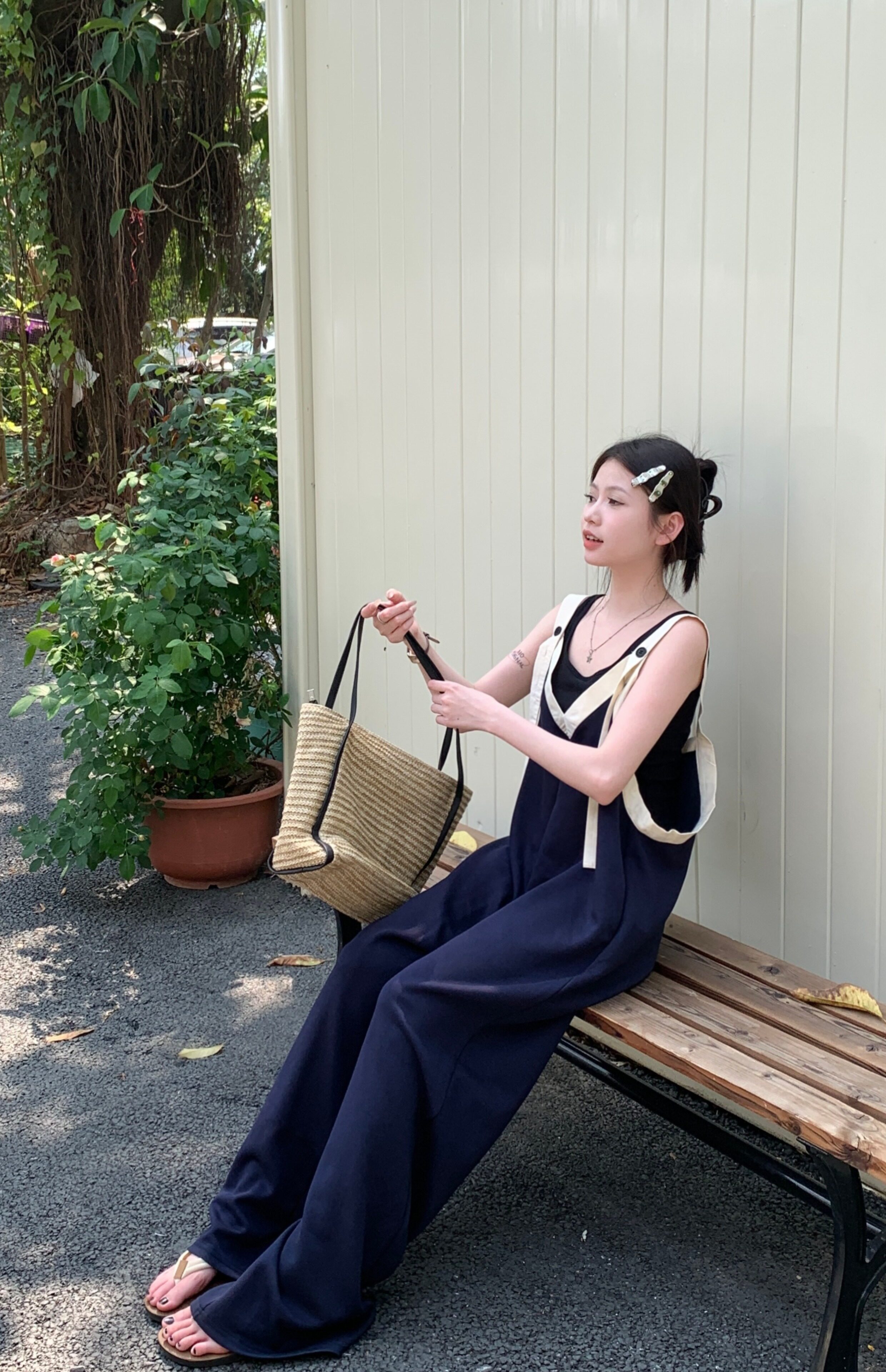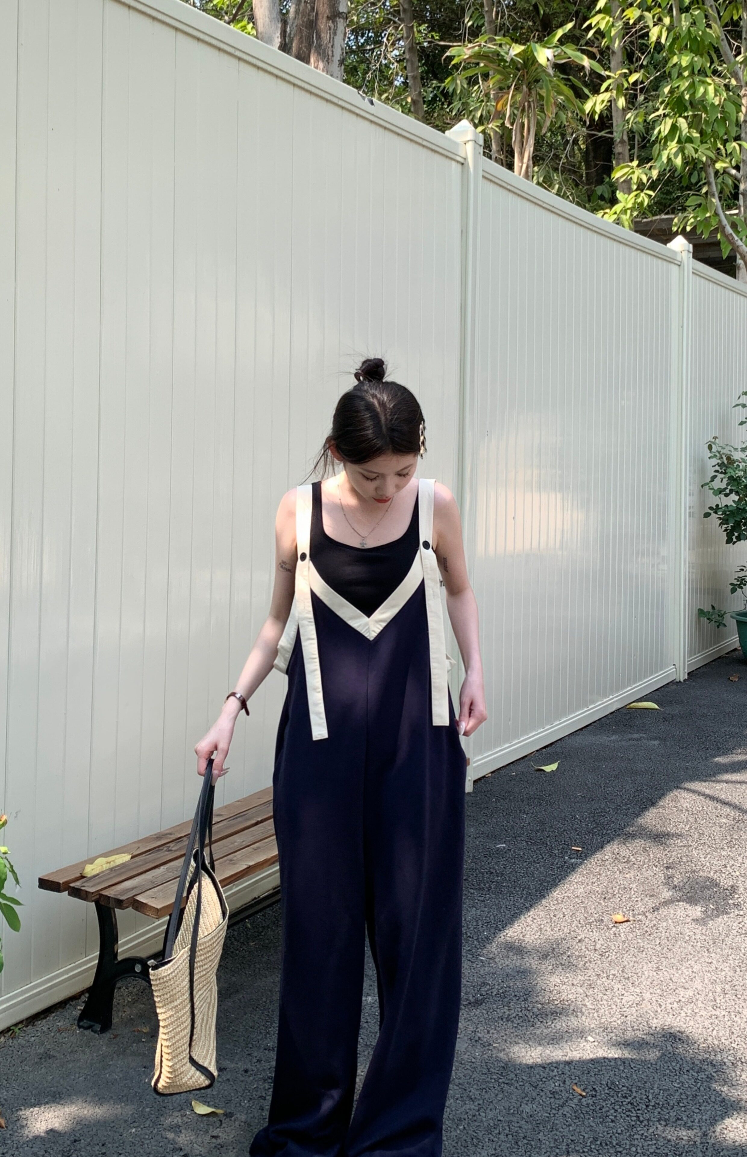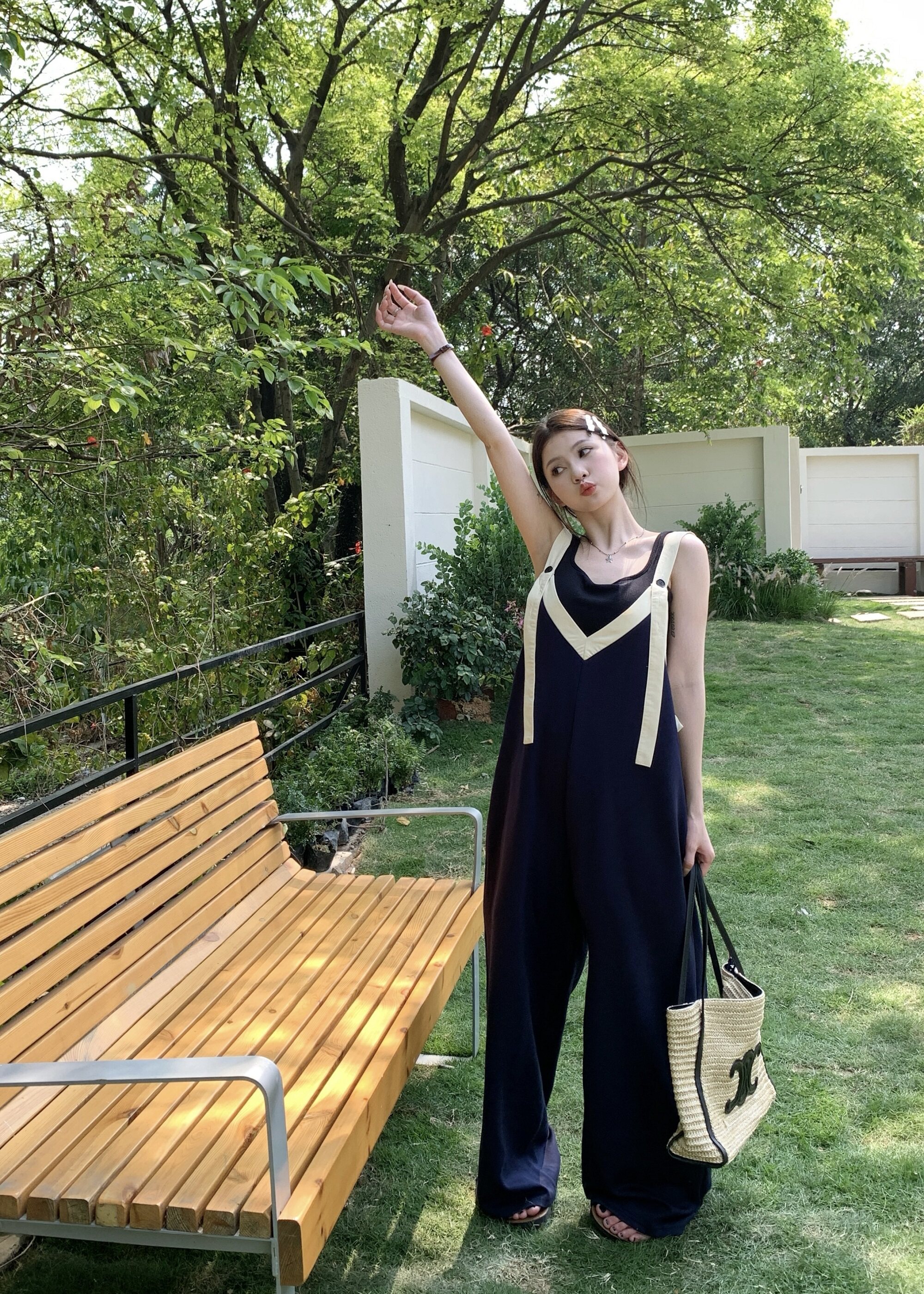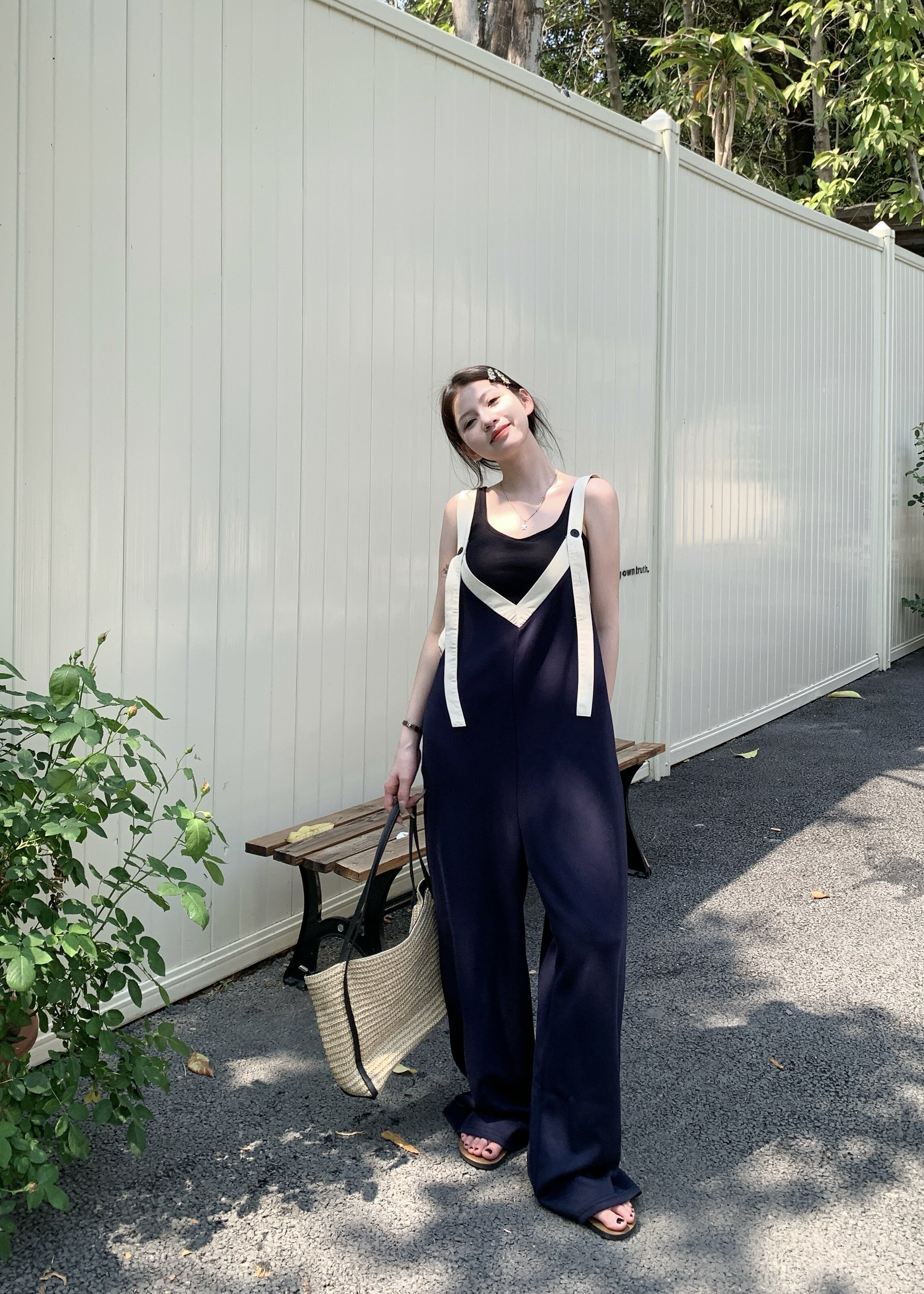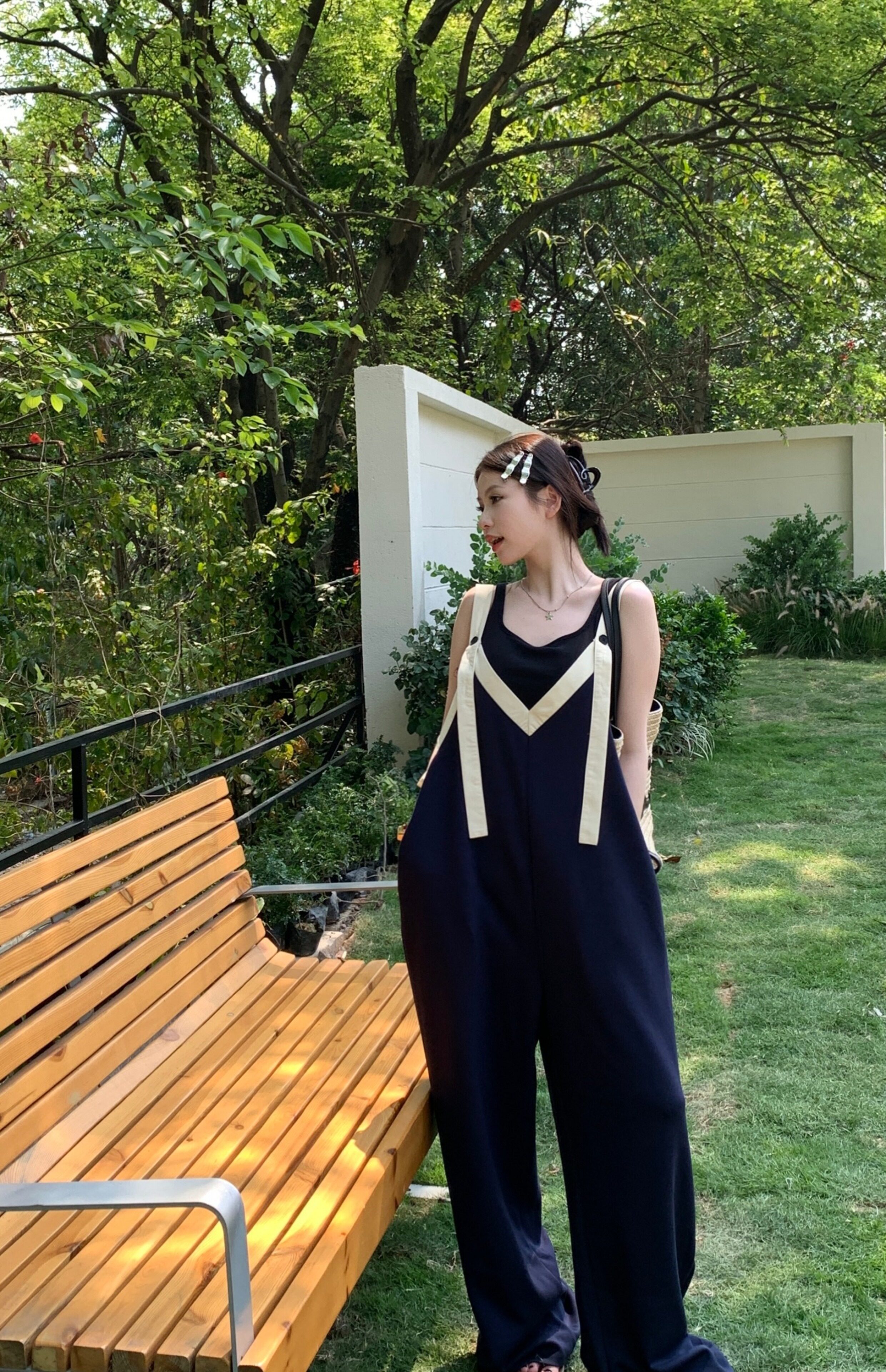 【ボトムス】ヴィンテージ配色Vネック ゆる系夏用カジュアルオールインワン