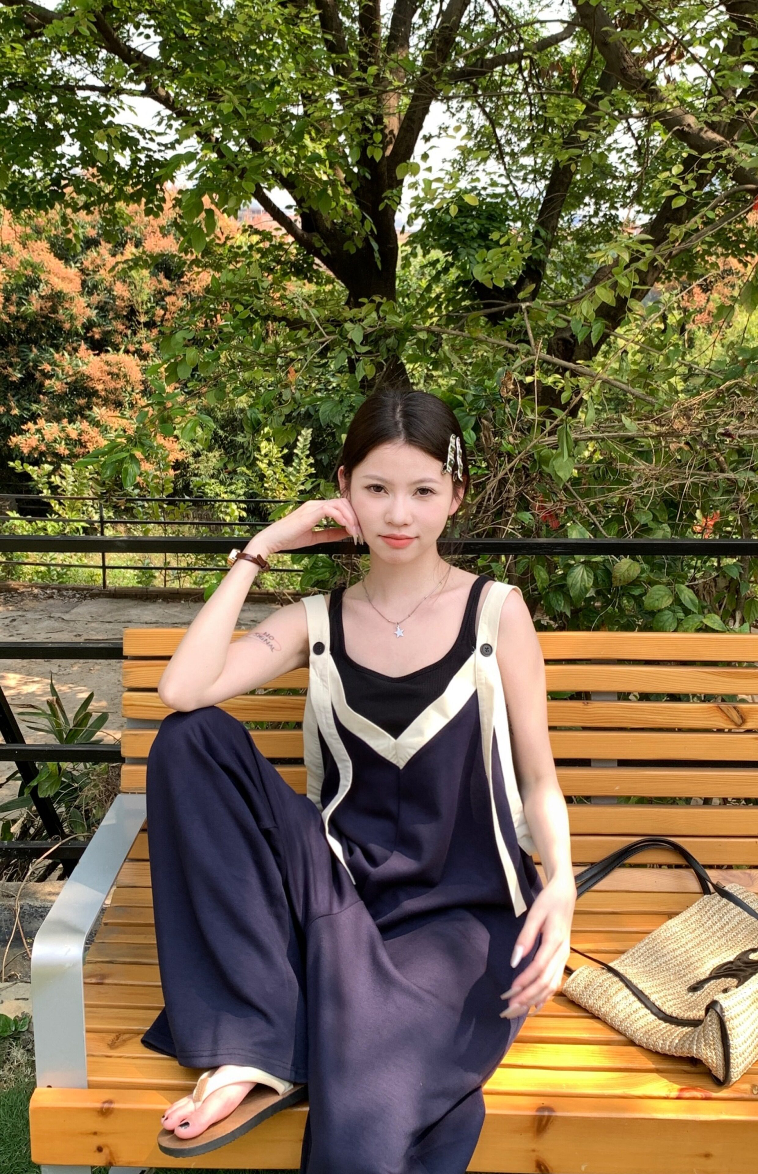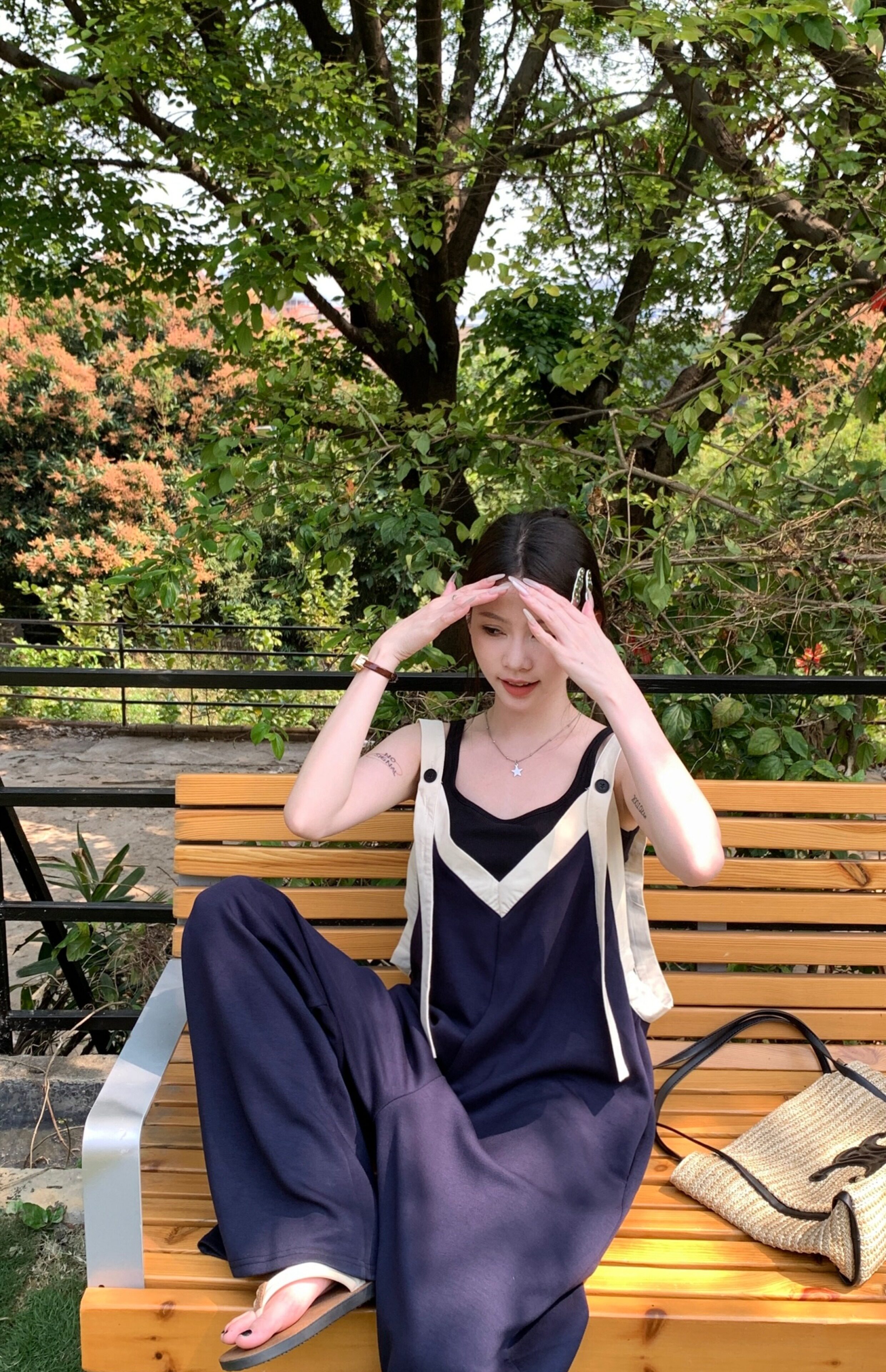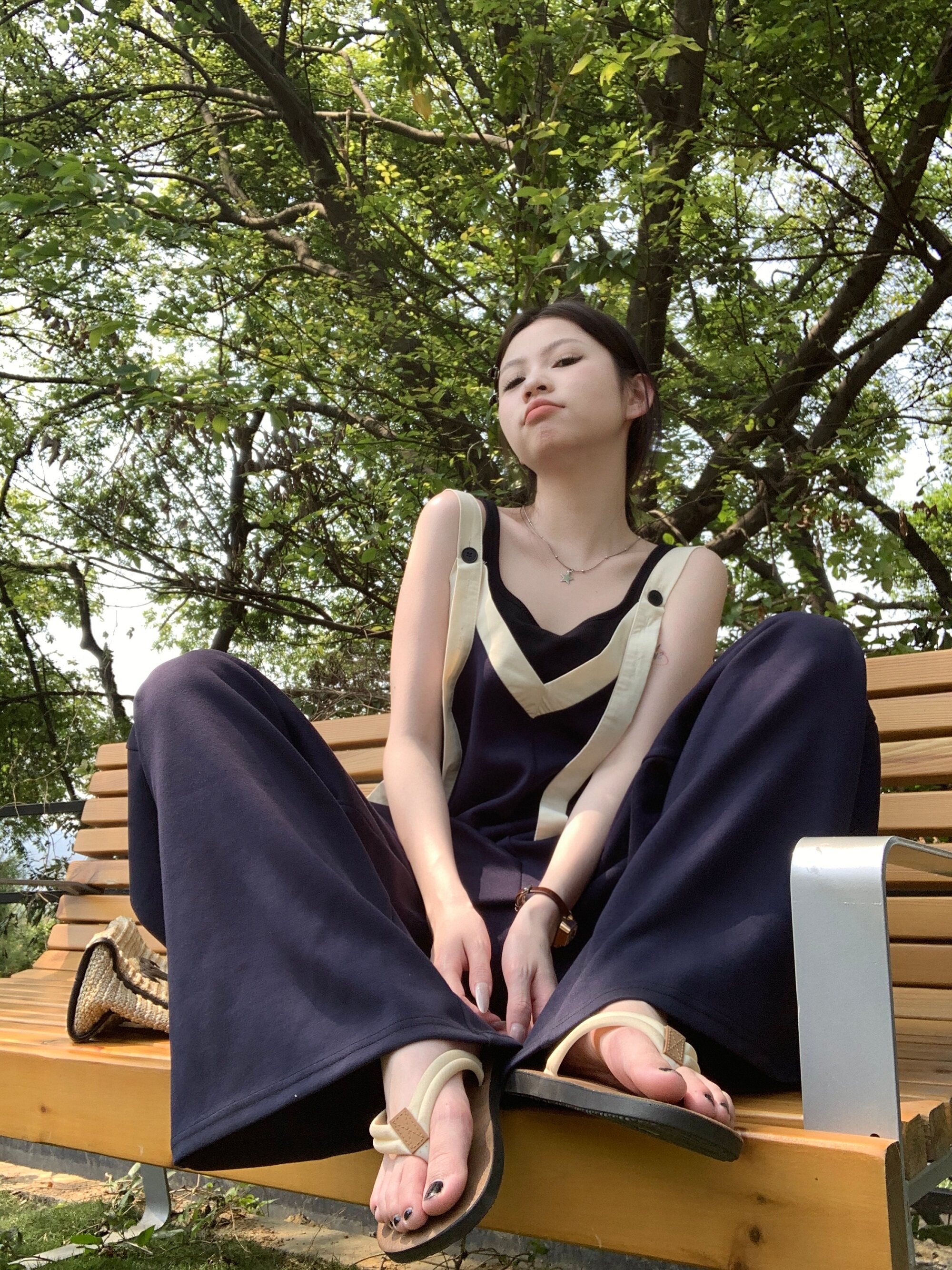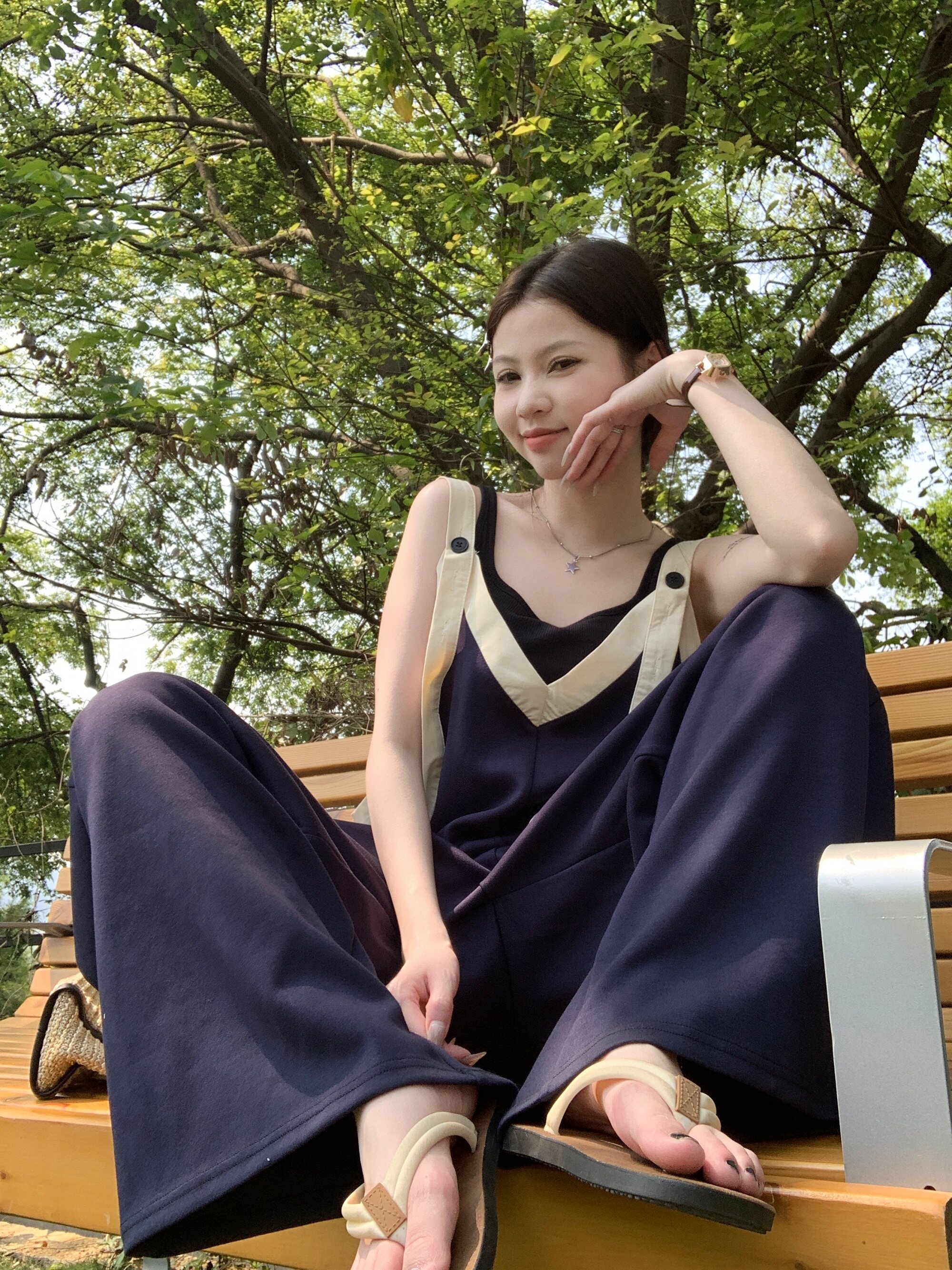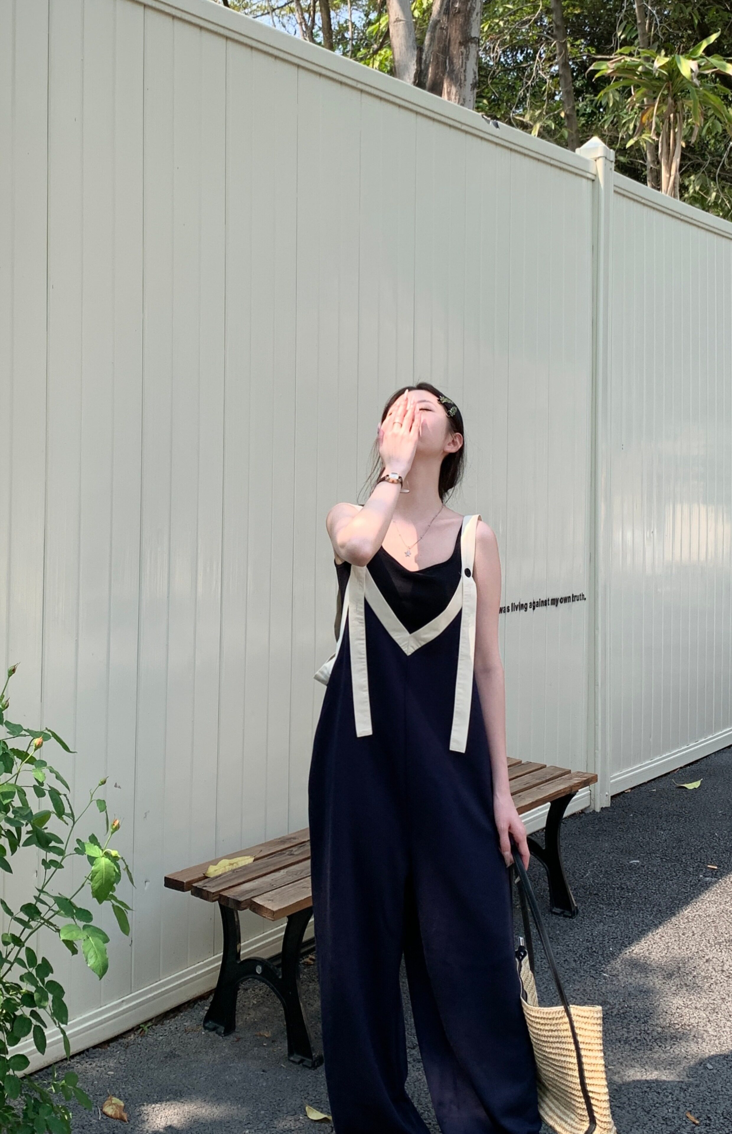 【ボトムス】ヴィンテージ配色Vネック ゆる系夏用カジュアルオールインワン