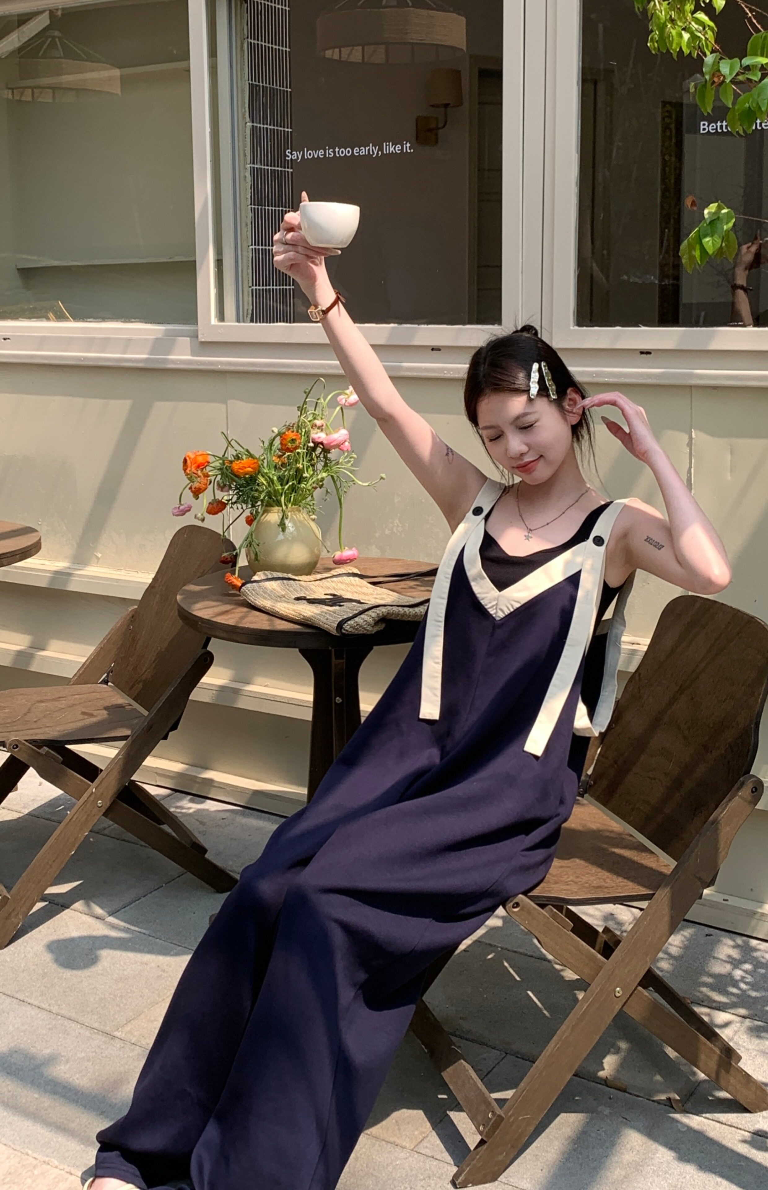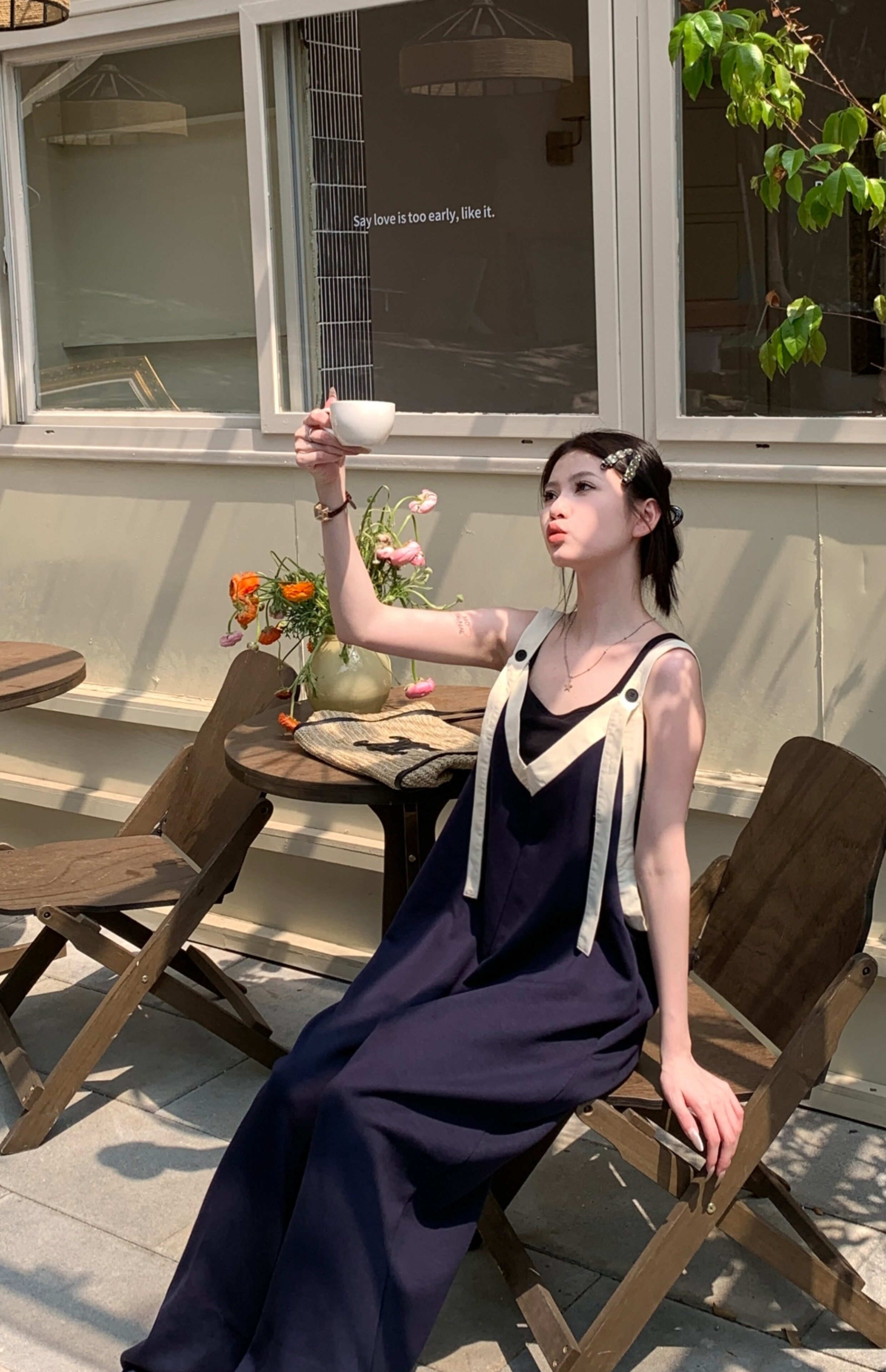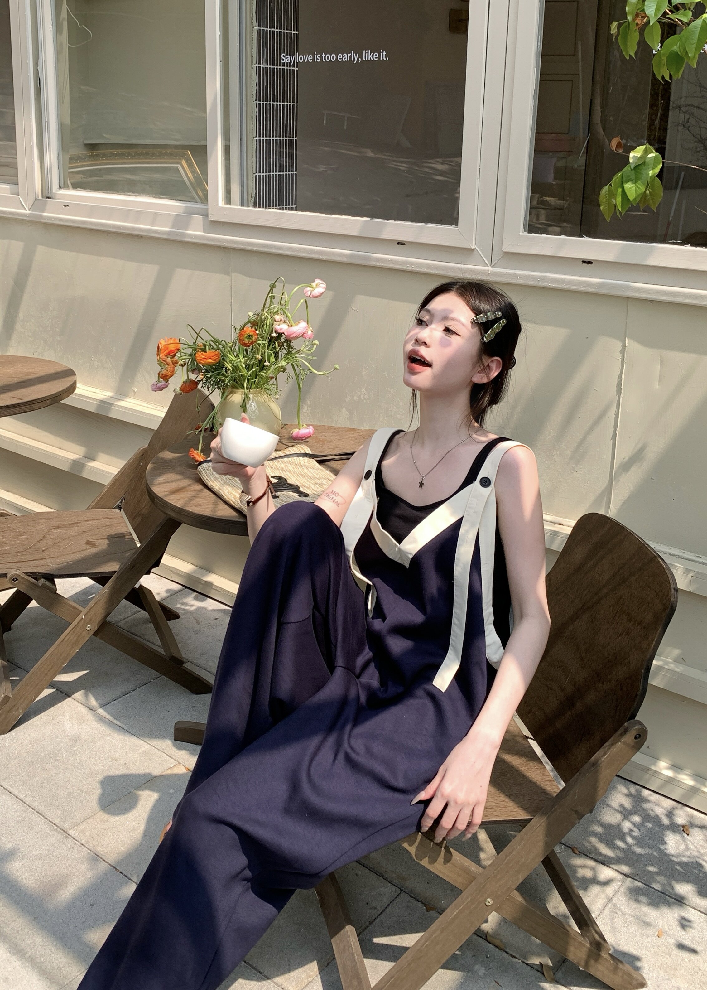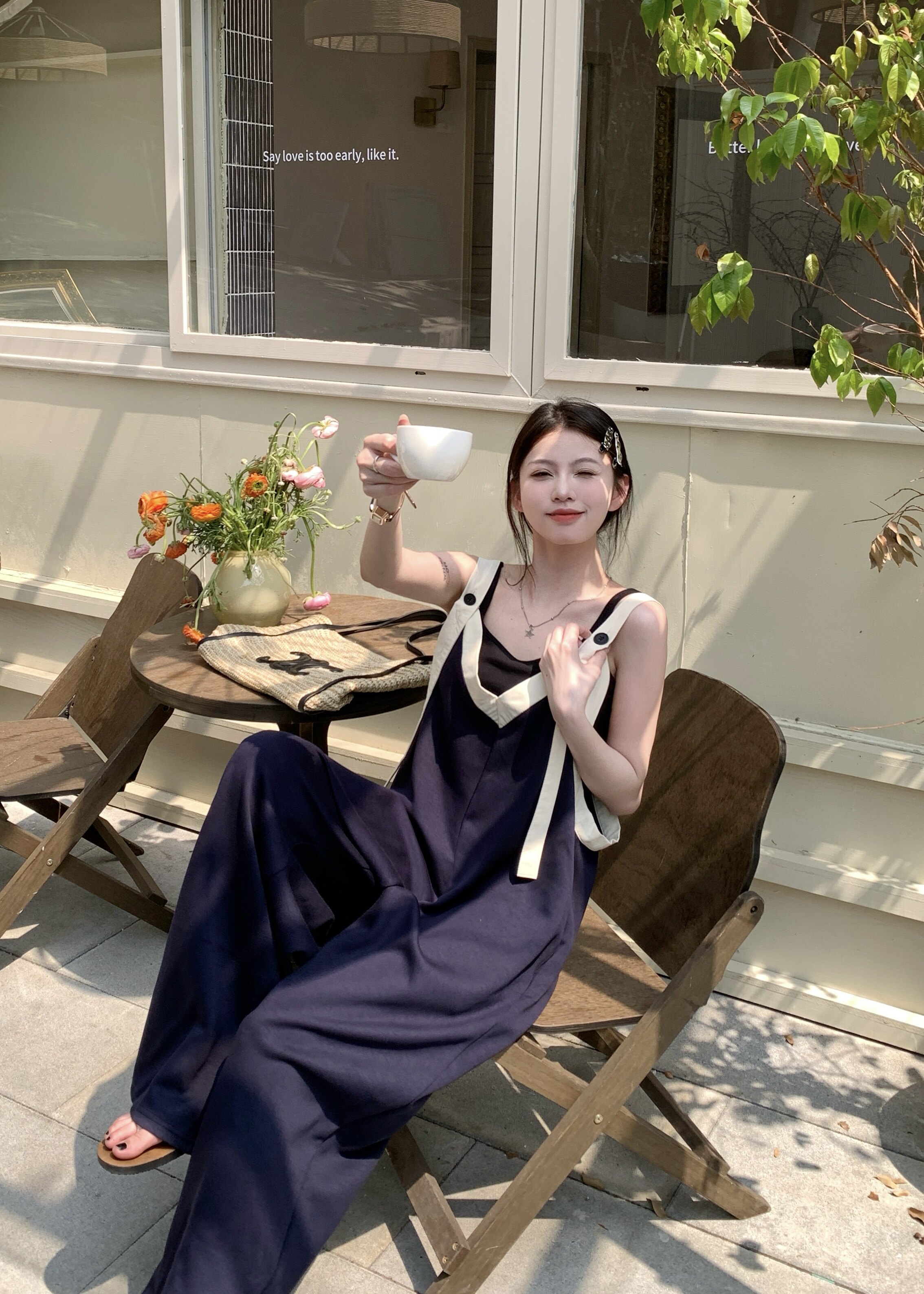 【商品名】【ボトムス】ヴィンテージ配色Vネック ゆる系夏用カジュアルオールインワン