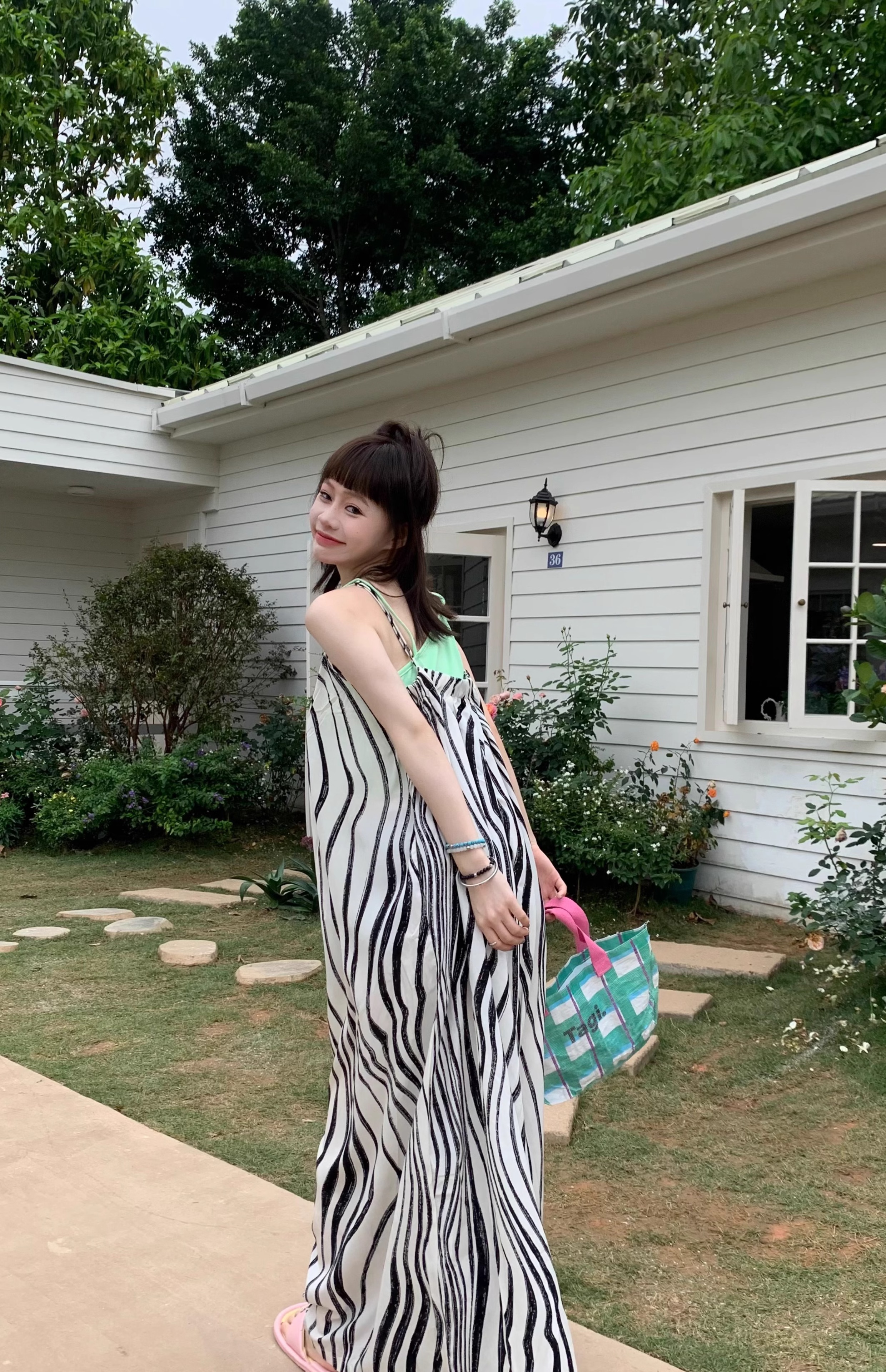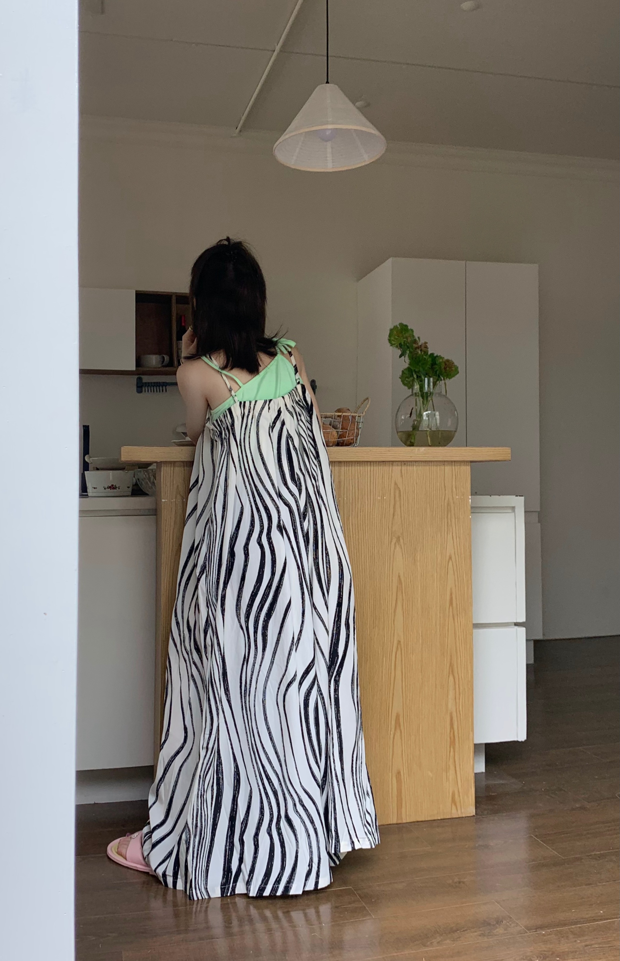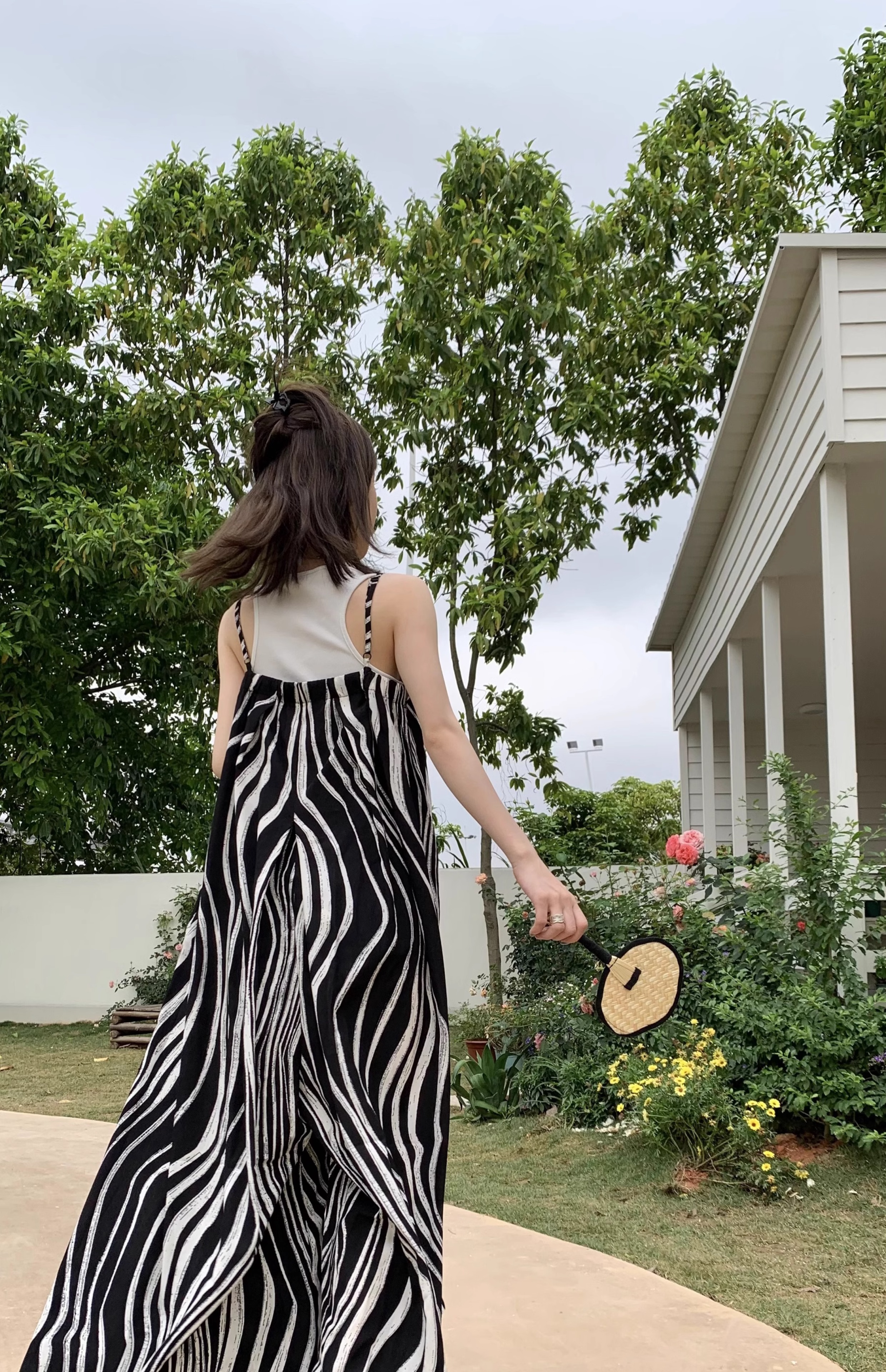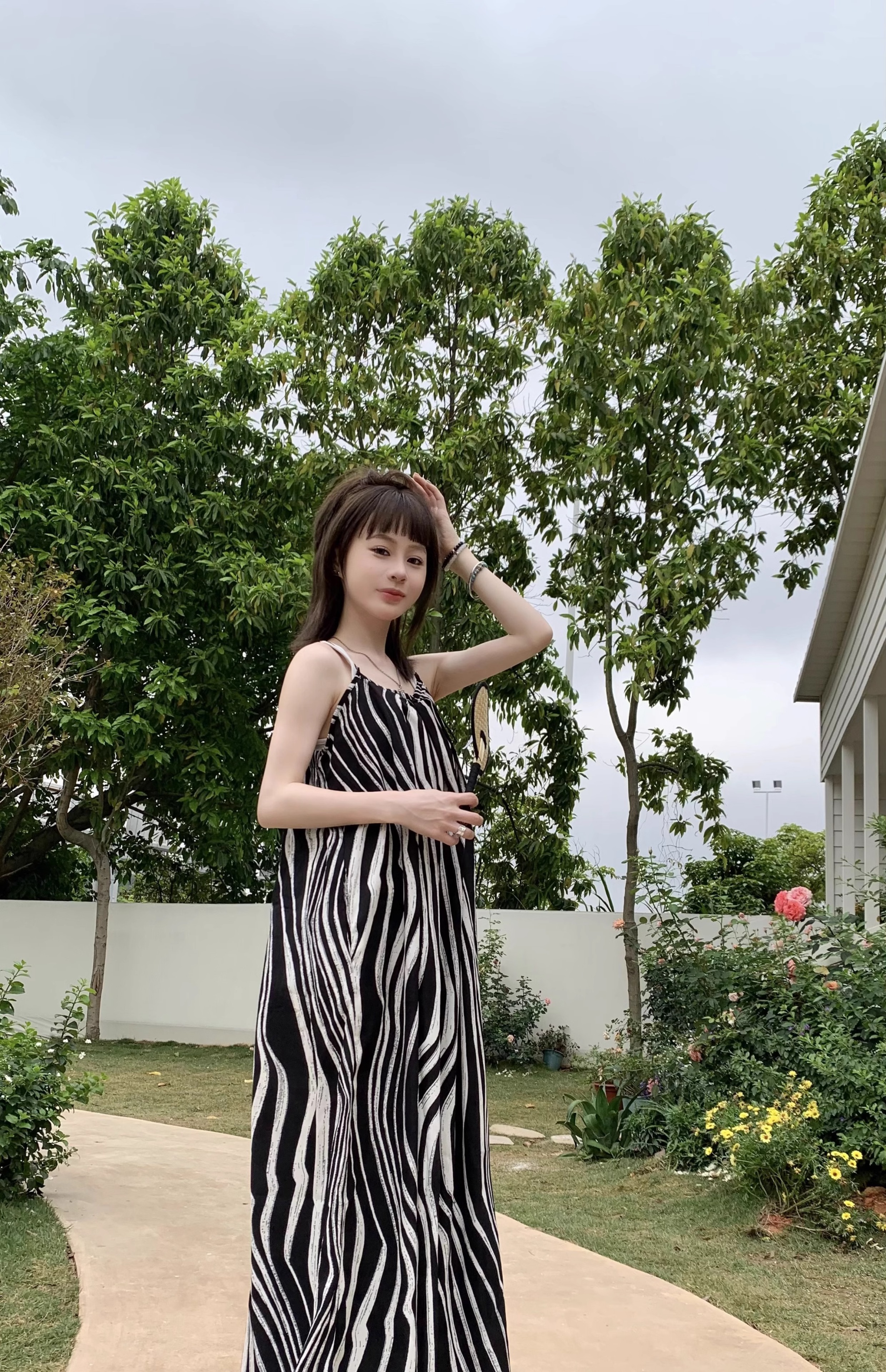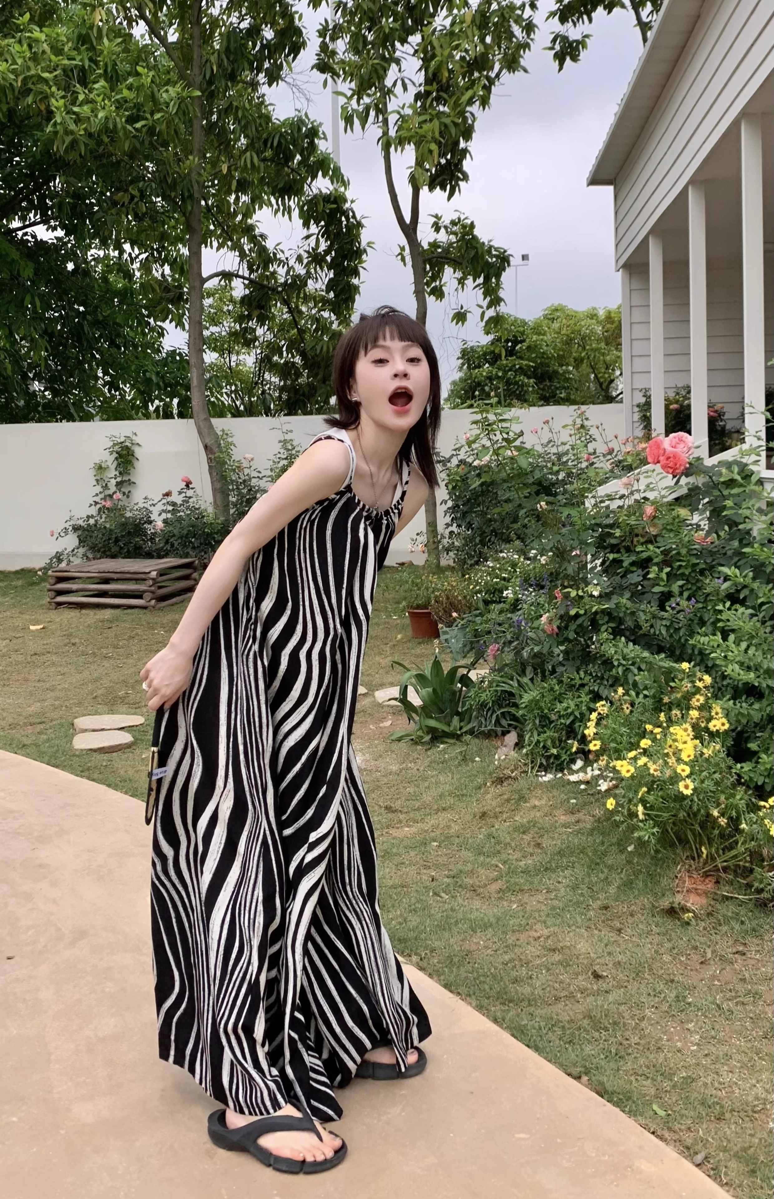 【ボトムス】ゆったりカジュアル 夏用 水波模様 ルーズ感たっぷり オーバーサイズキャミサロペット 【SHシリーズ】