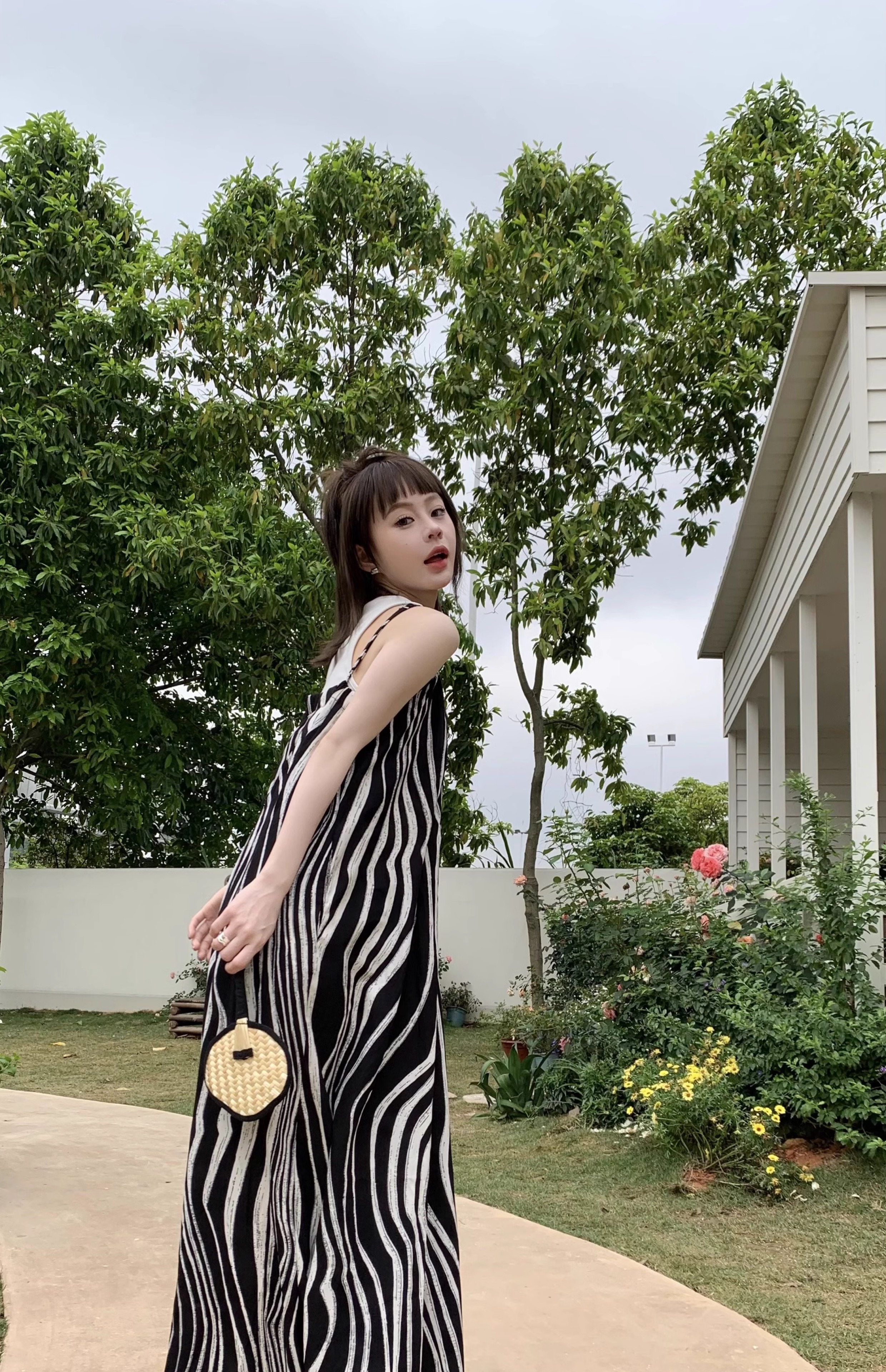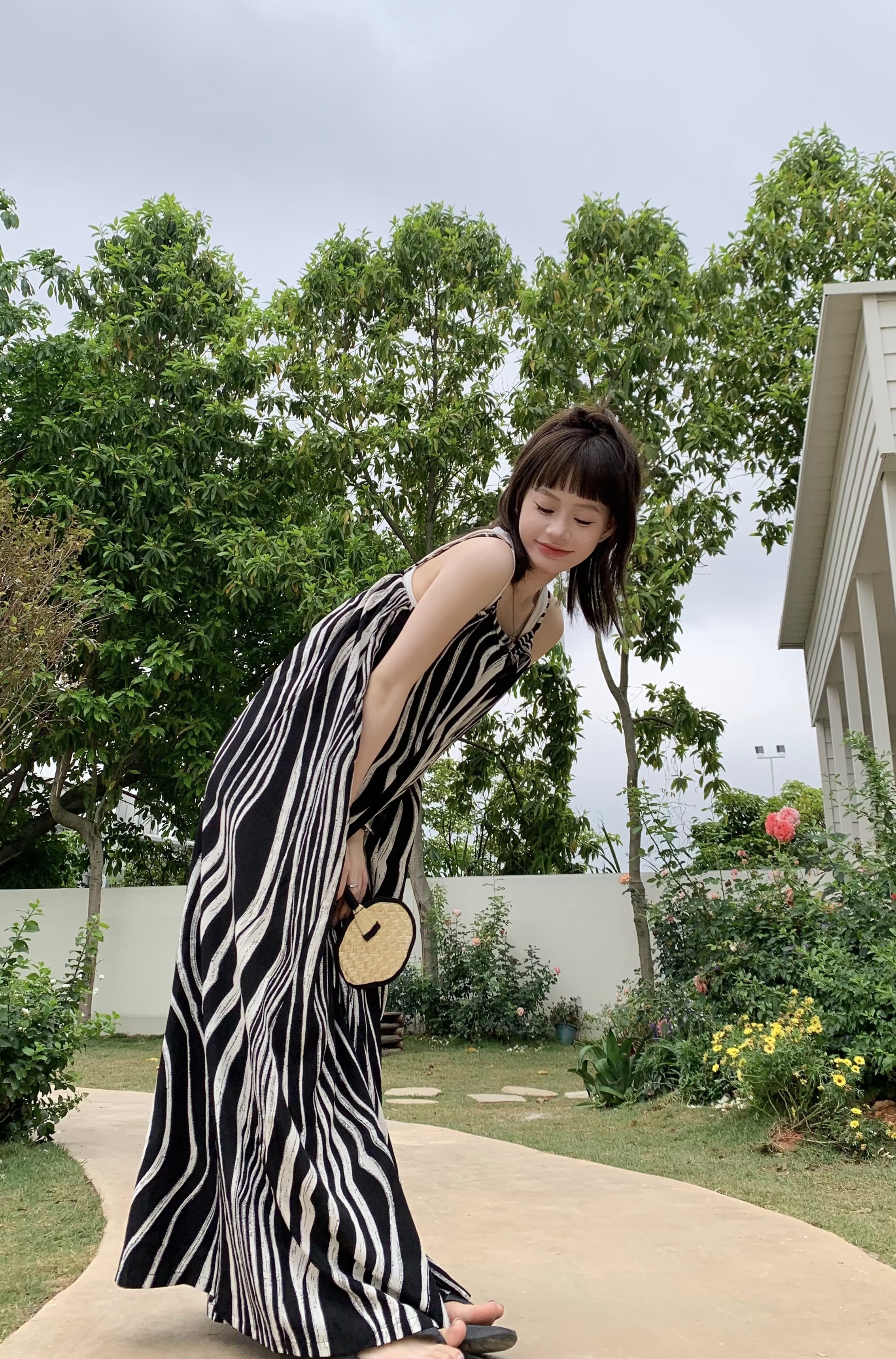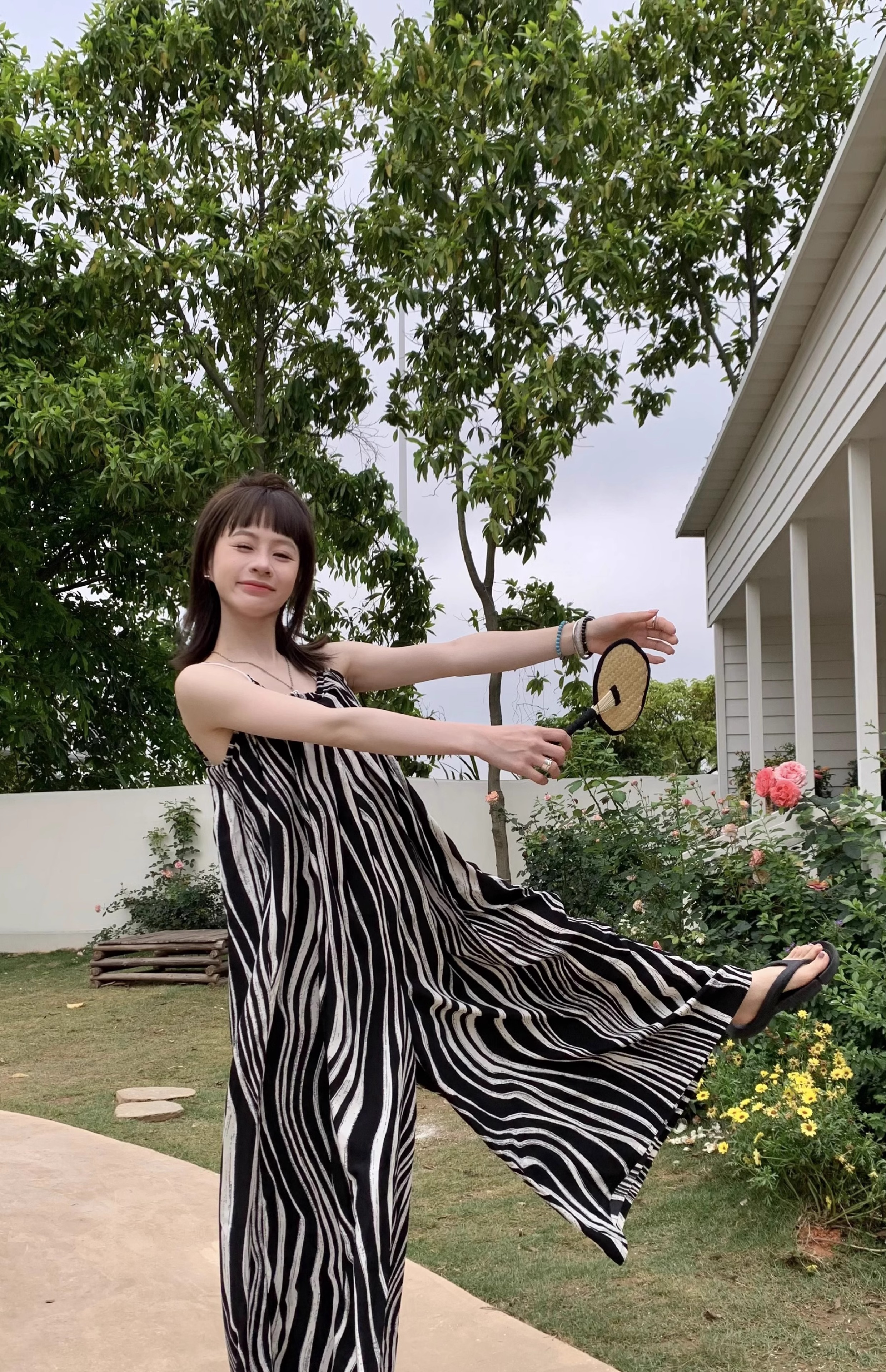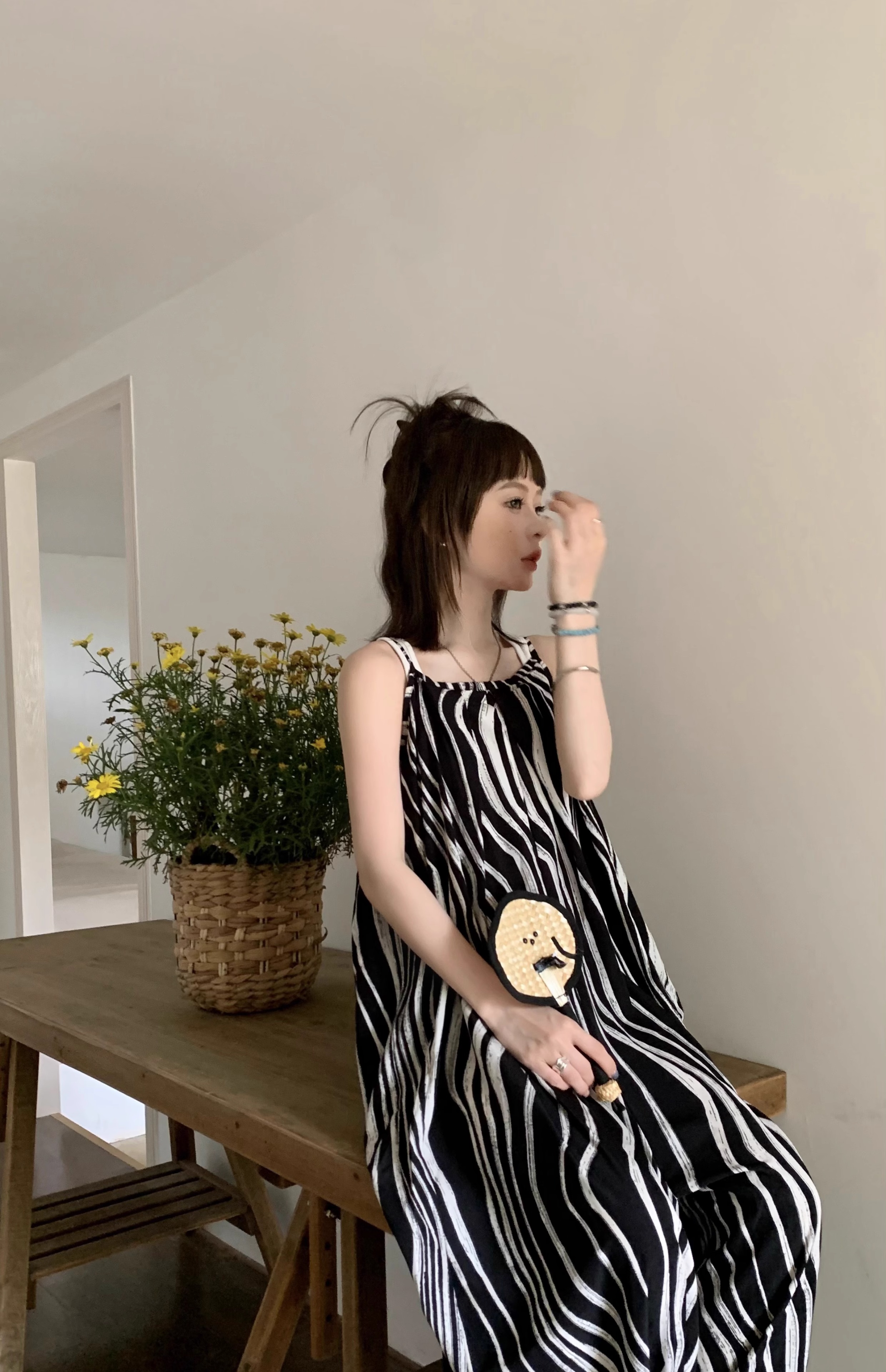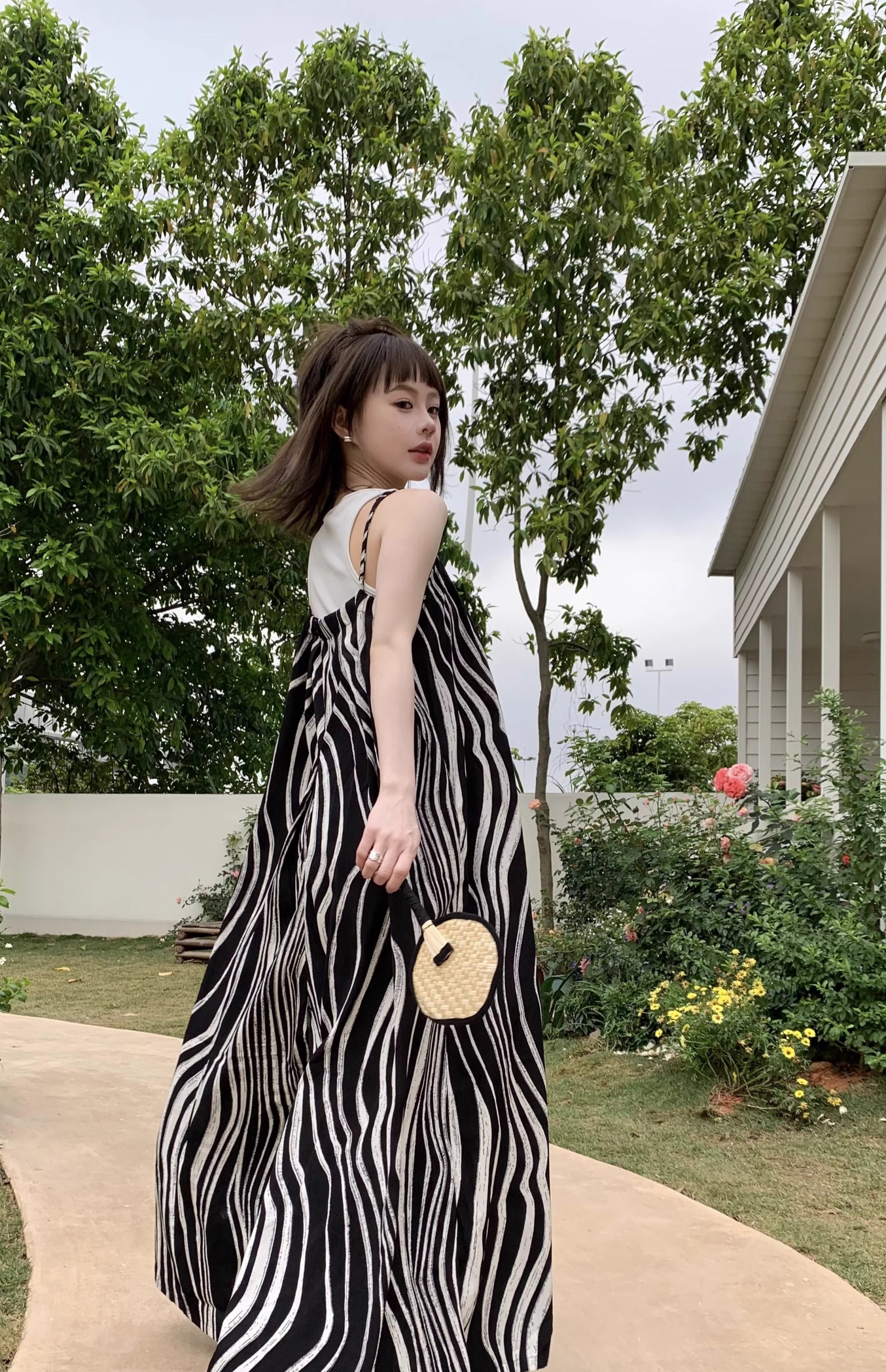 【ボトムス】ゆったりカジュアル 夏用 水波模様 ルーズ感たっぷり オーバーサイズキャミサロペット 【SHシリーズ】