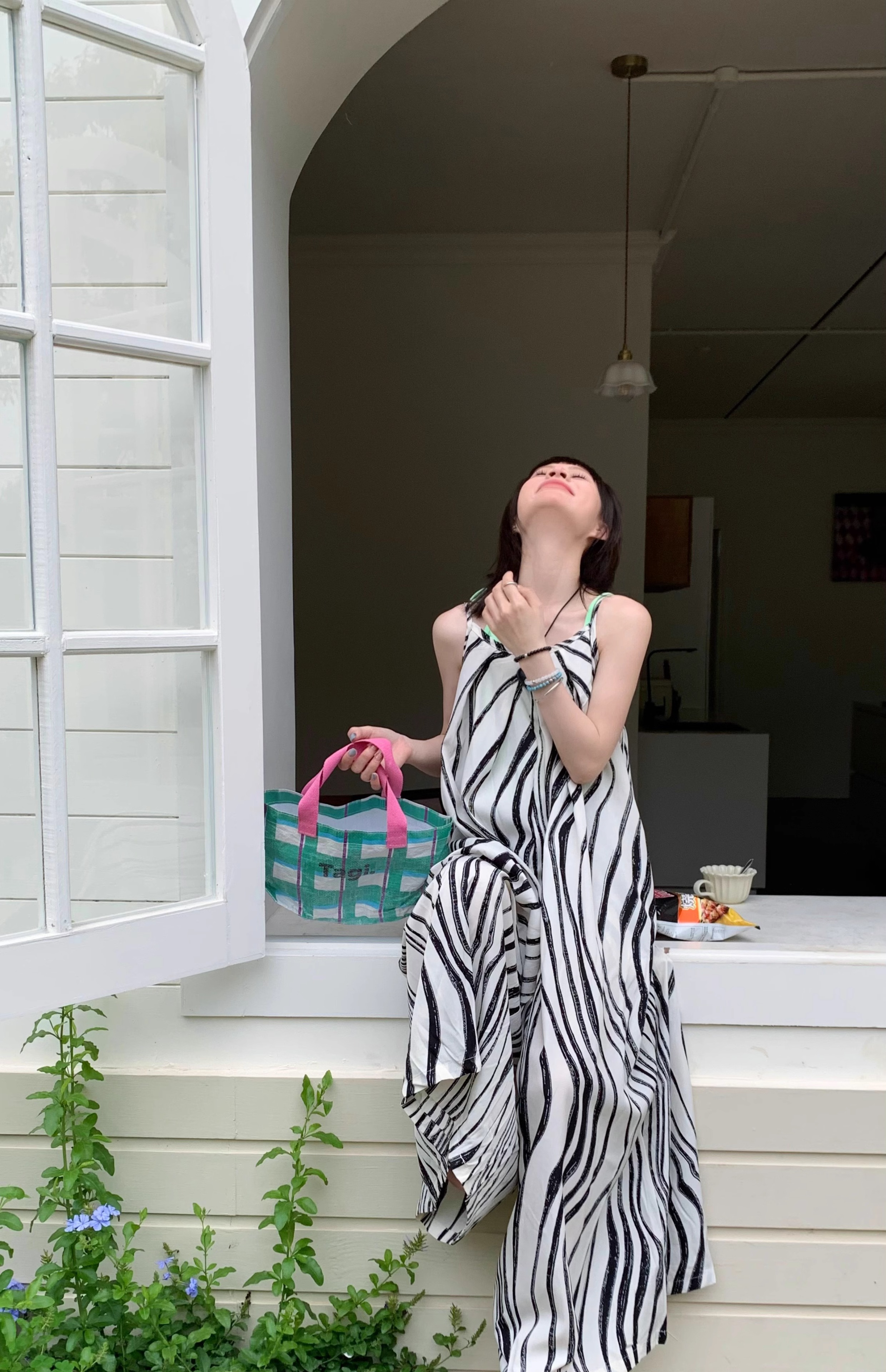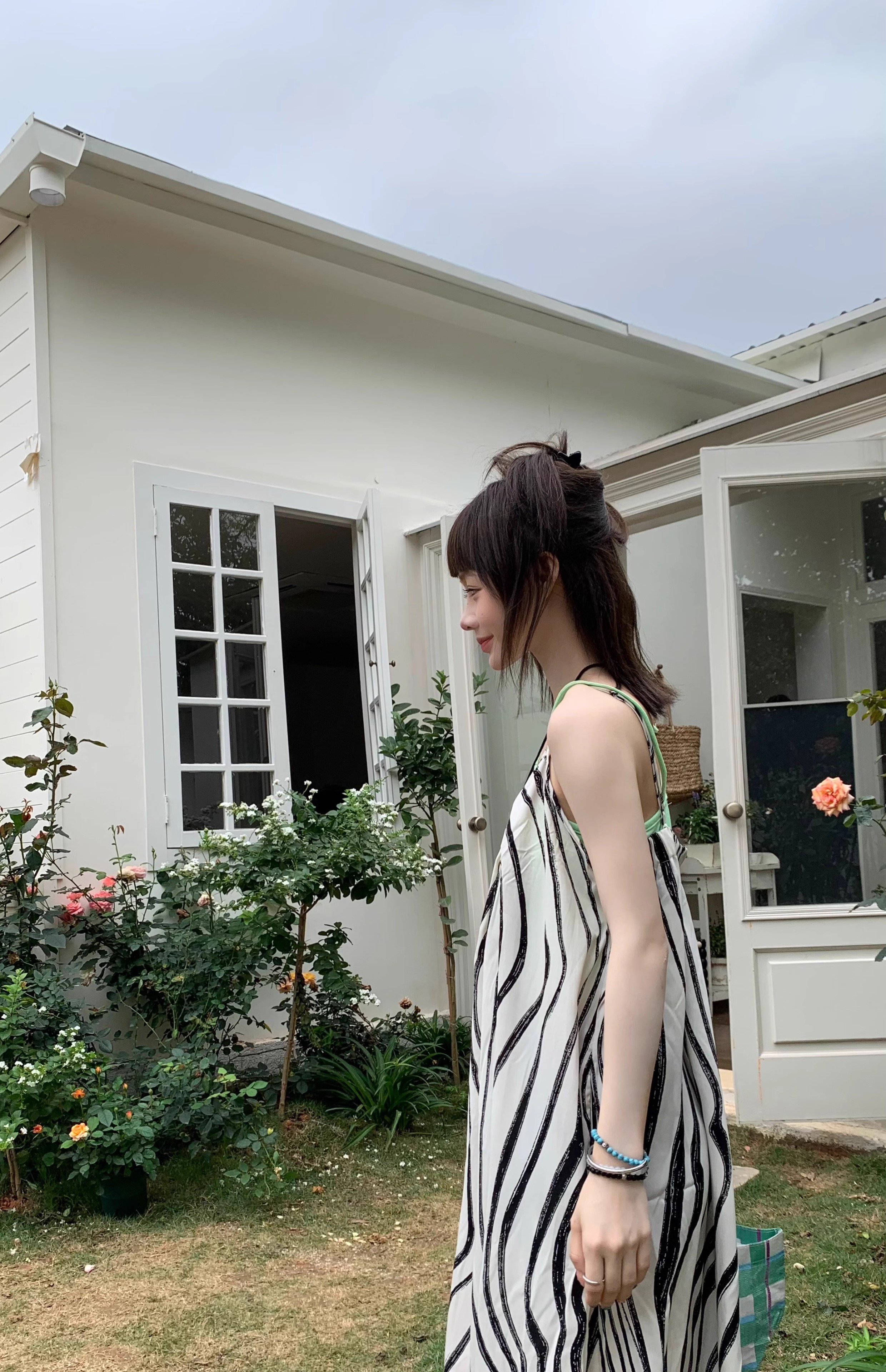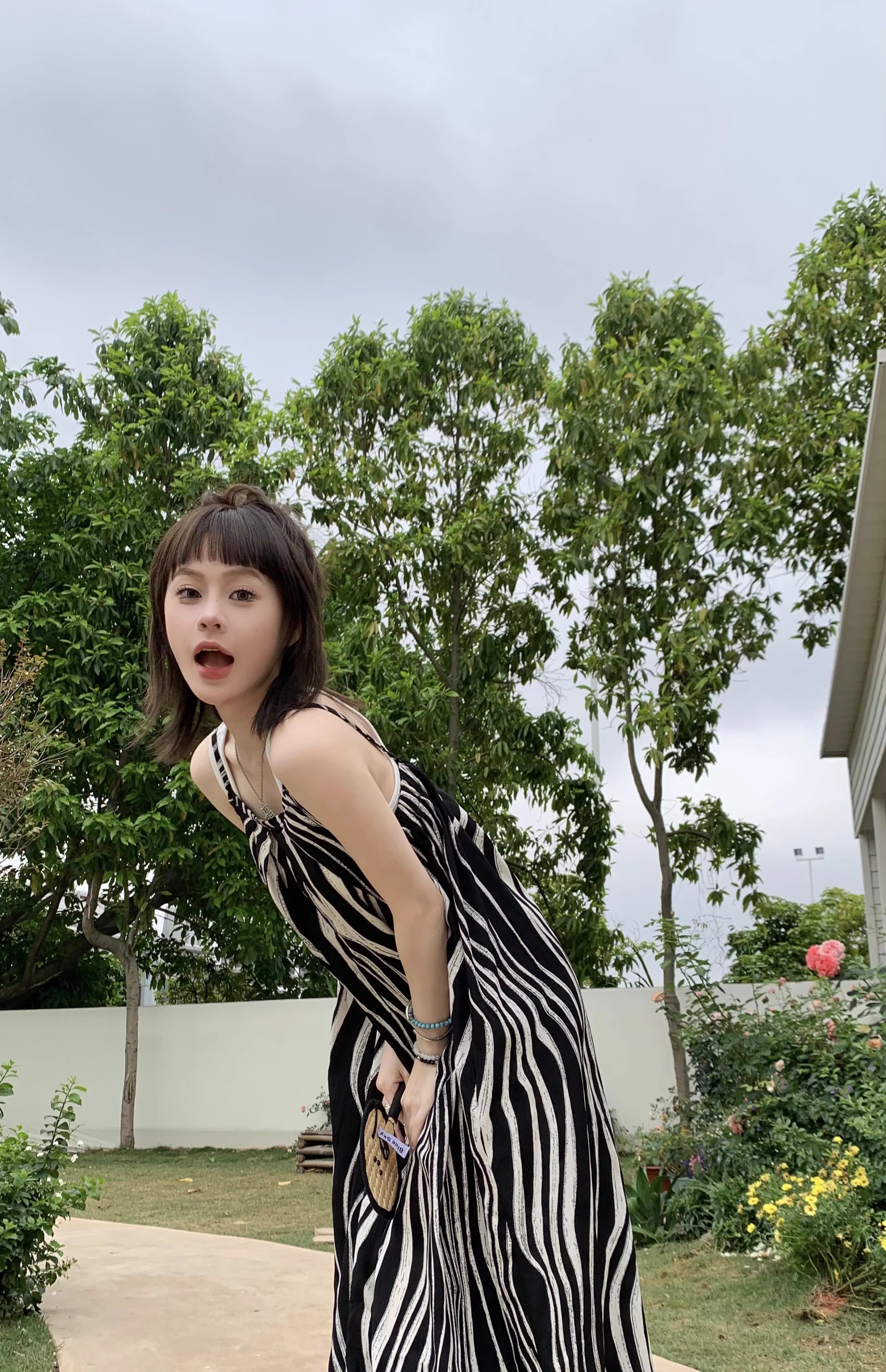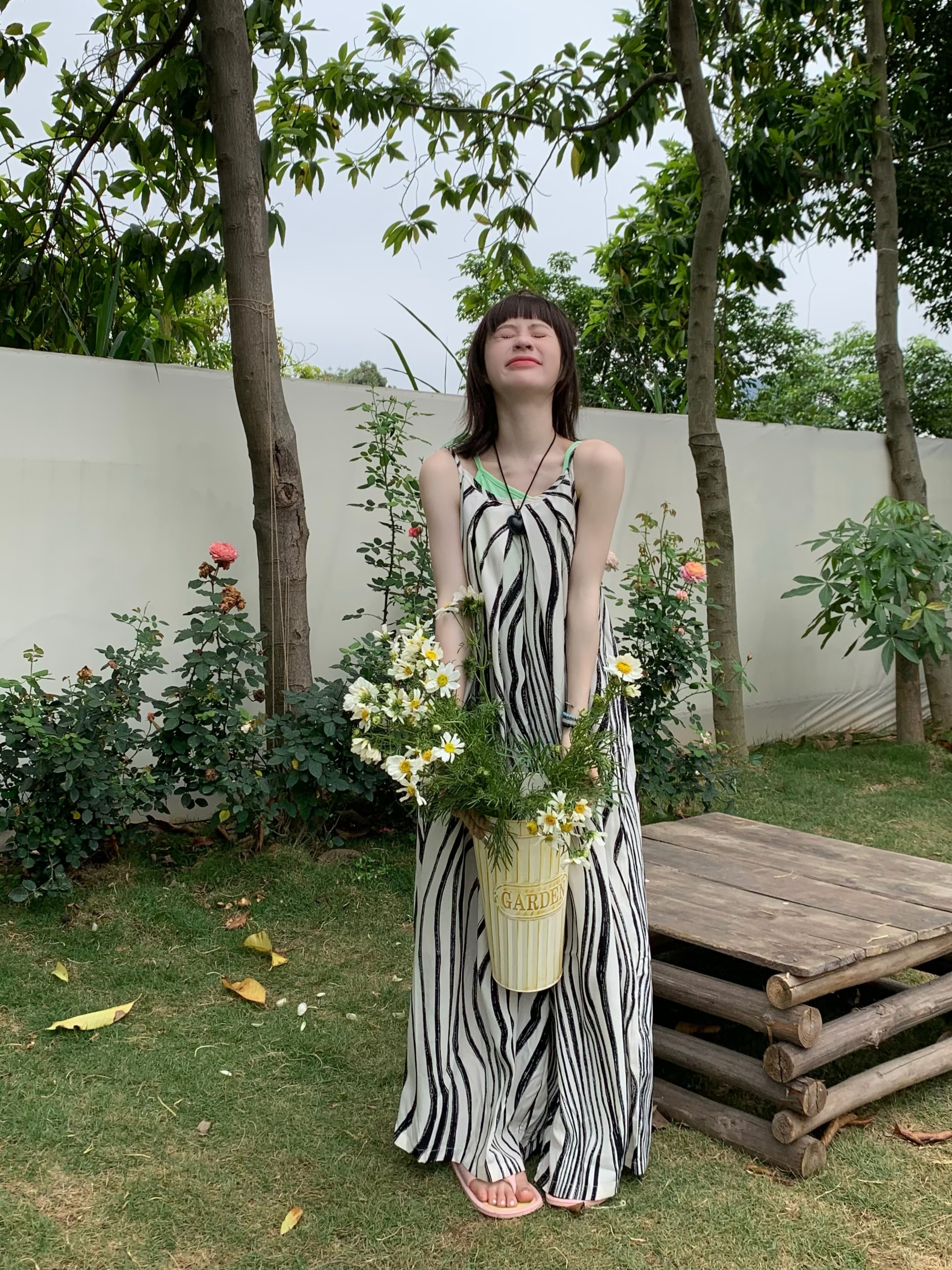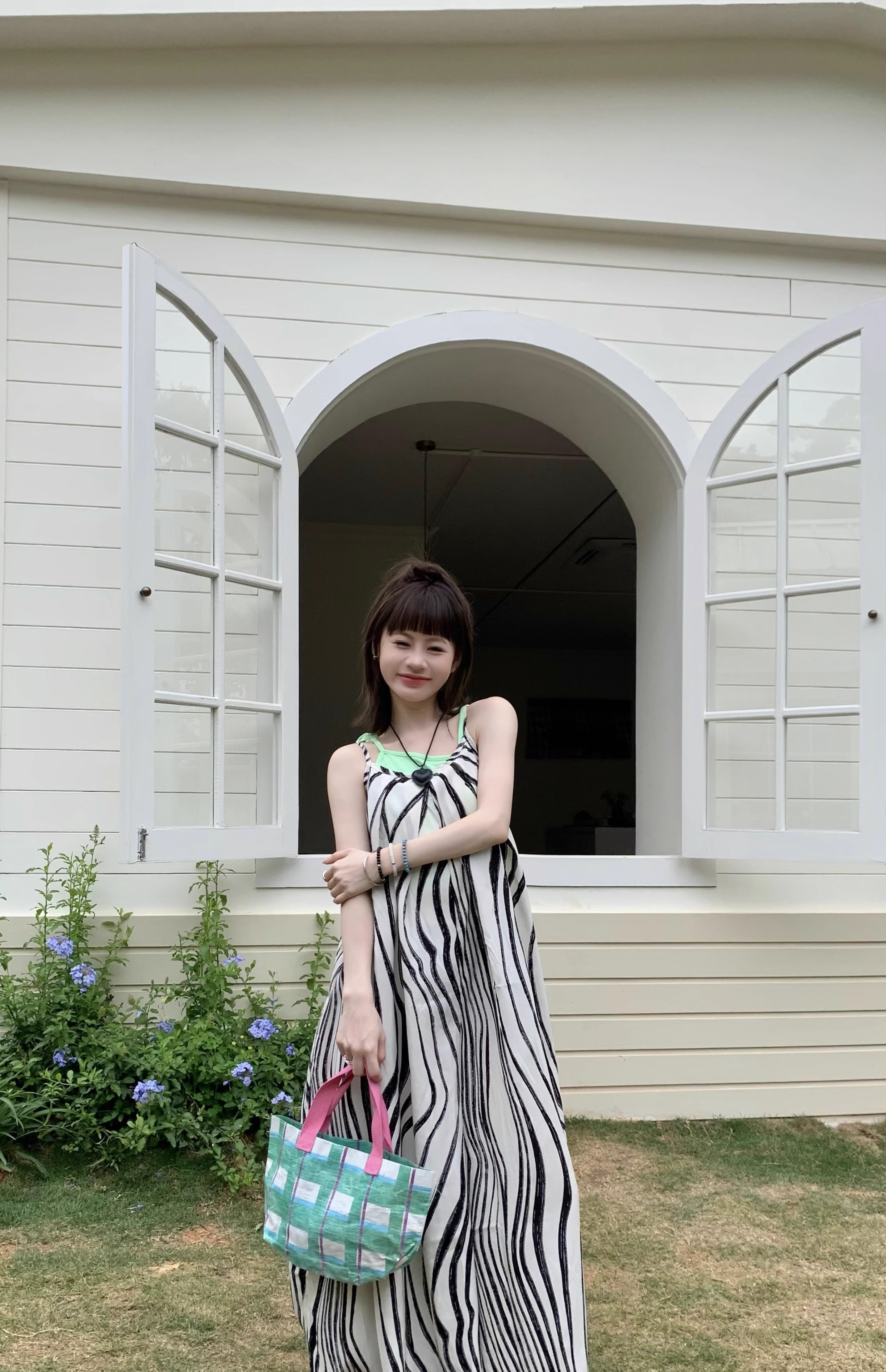 【ボトムス】ゆったりカジュアル 夏用 水波模様 ルーズ感たっぷり オーバーサイズキャミサロペット 【SHシリーズ】