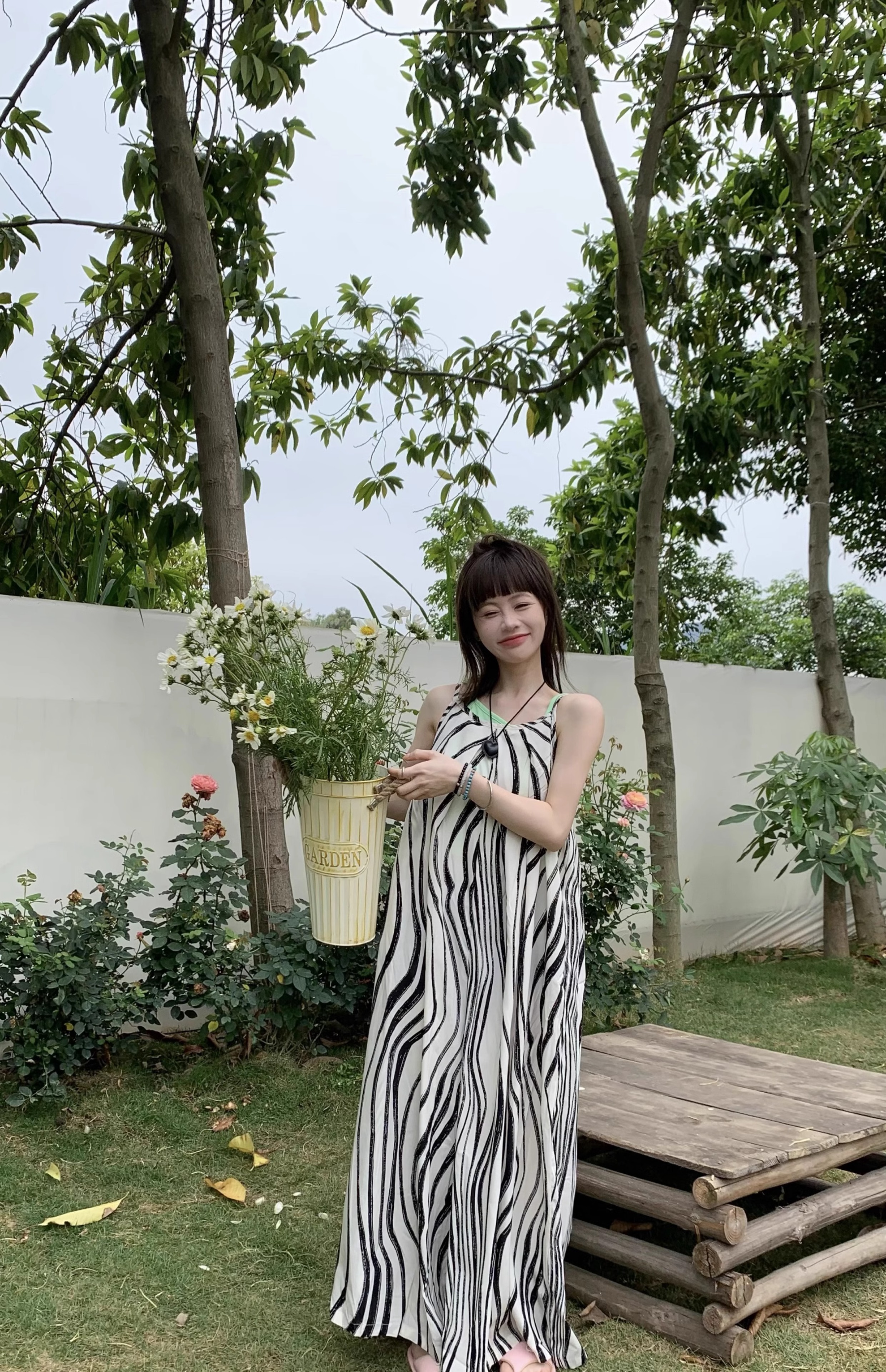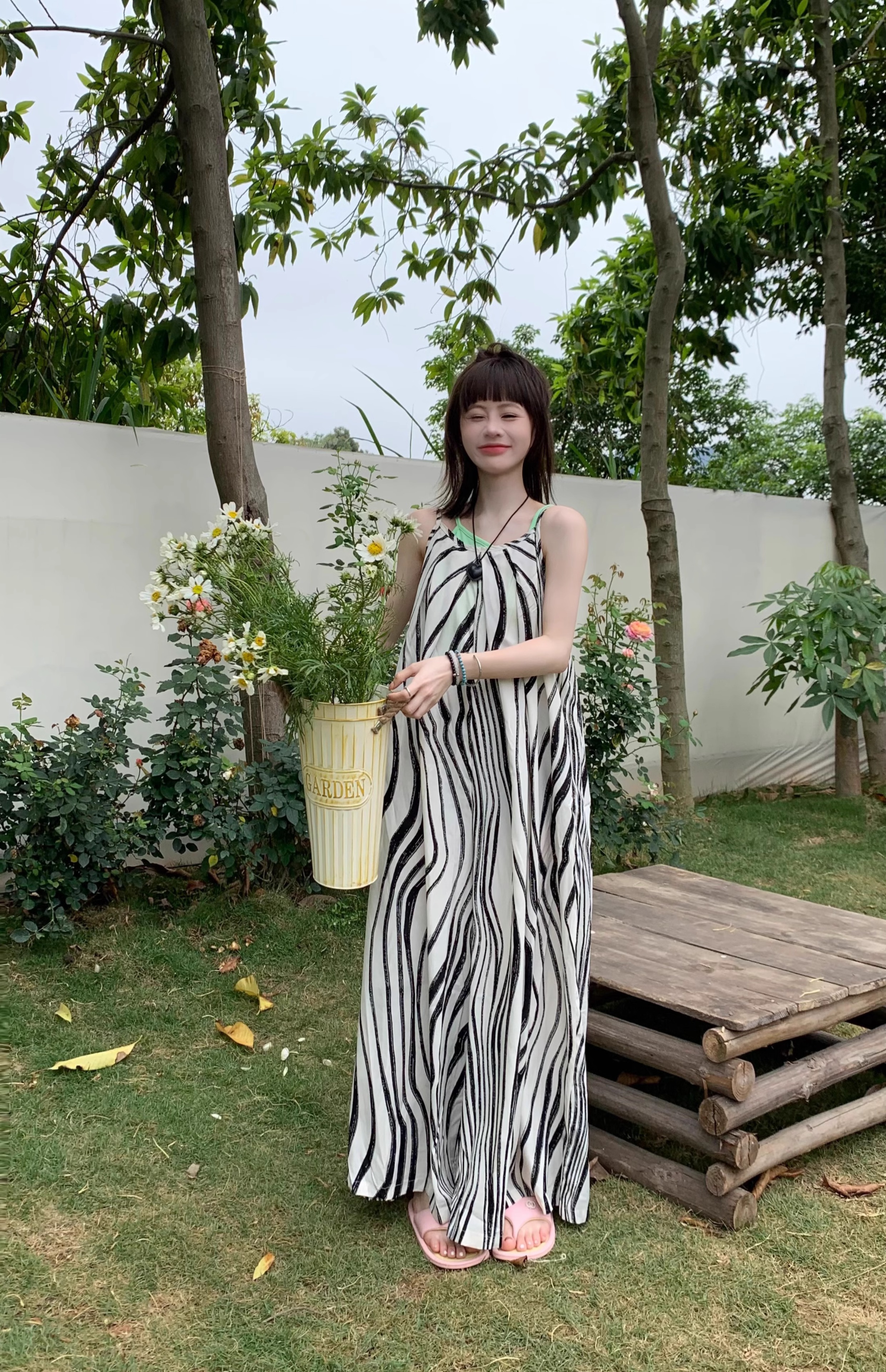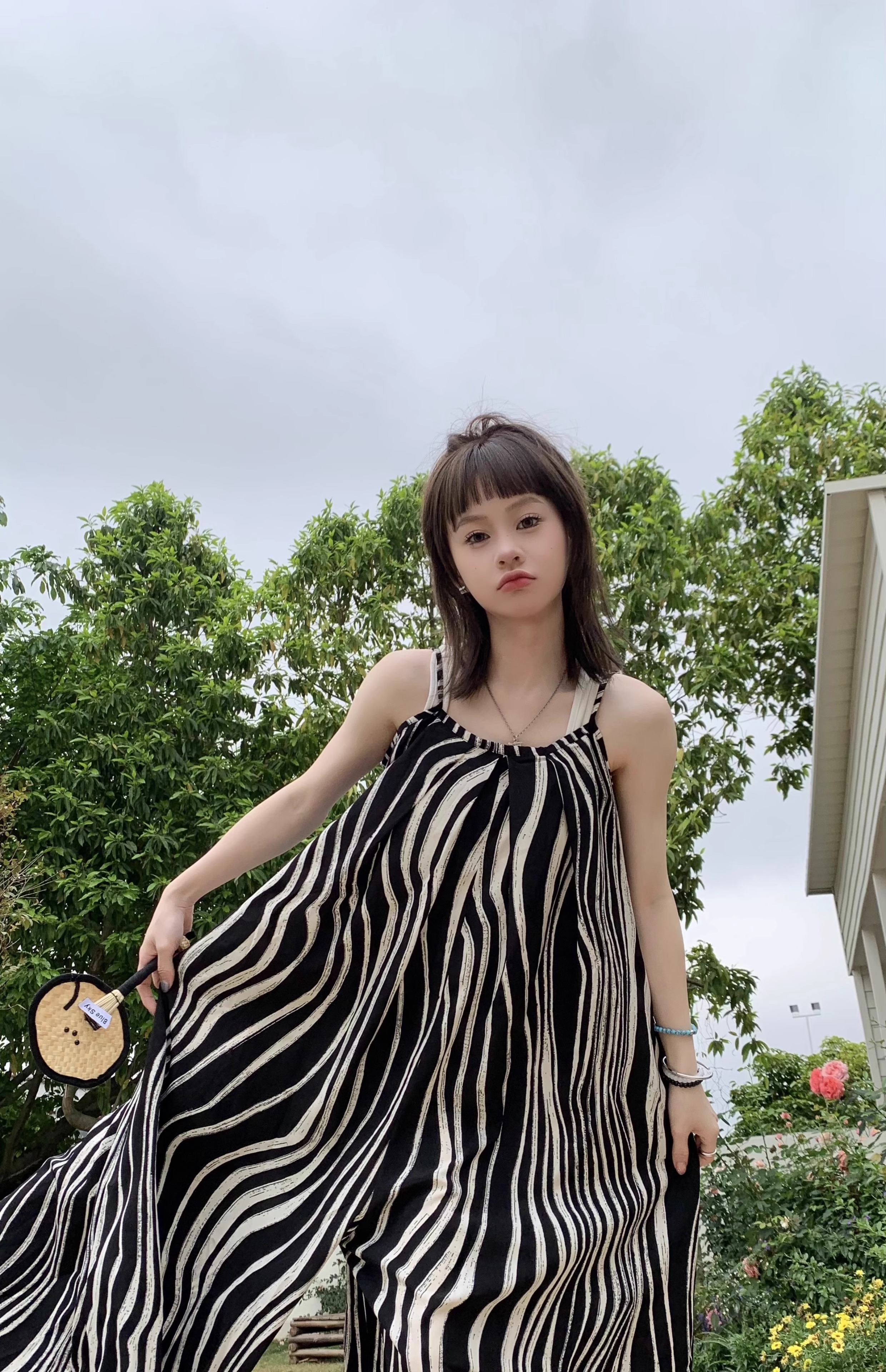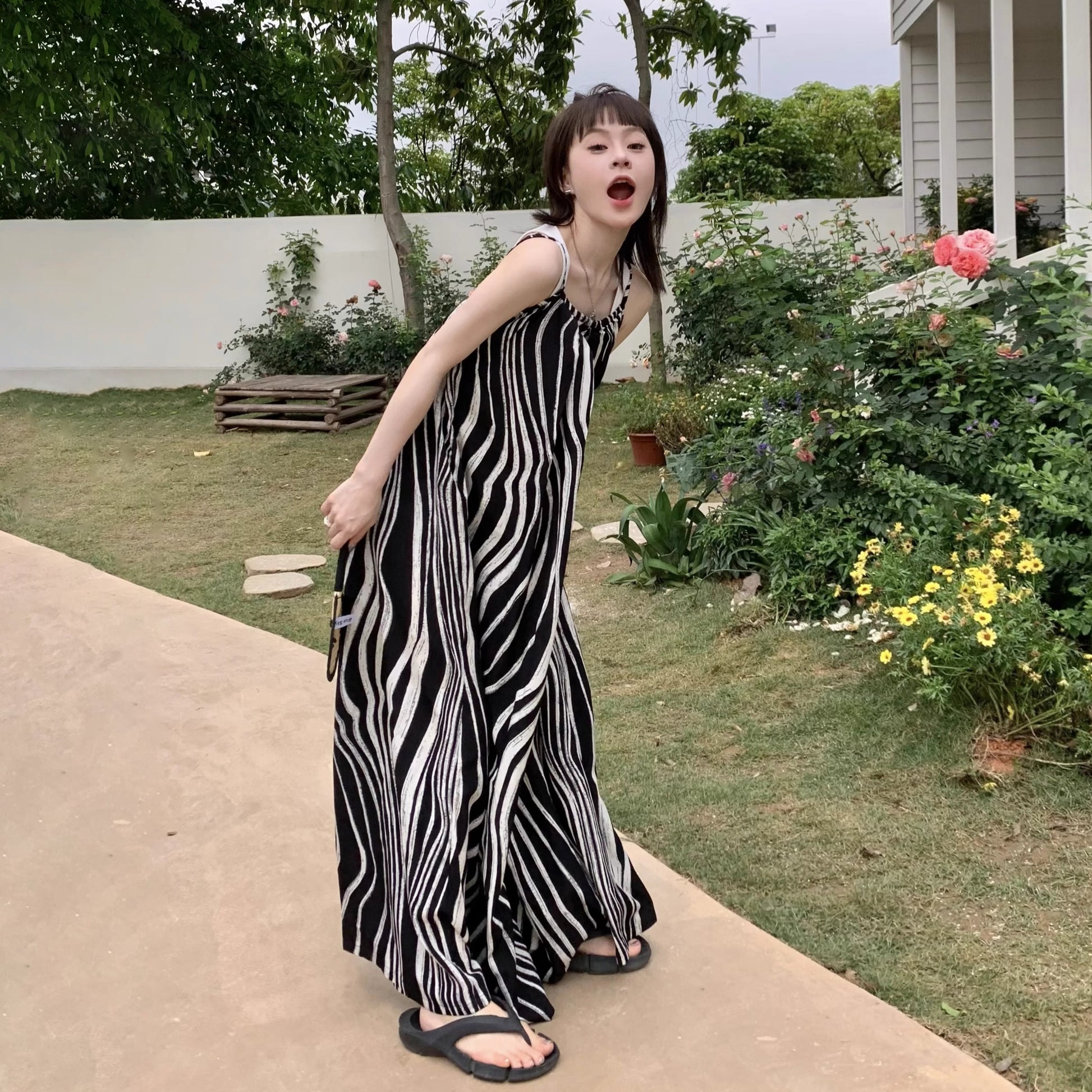 【商品名】【ボトムス】ゆったりカジュアル 夏用 水波模様 ルーズ感たっぷり オーバーサイズキャミサロペット 【SHシリーズ】