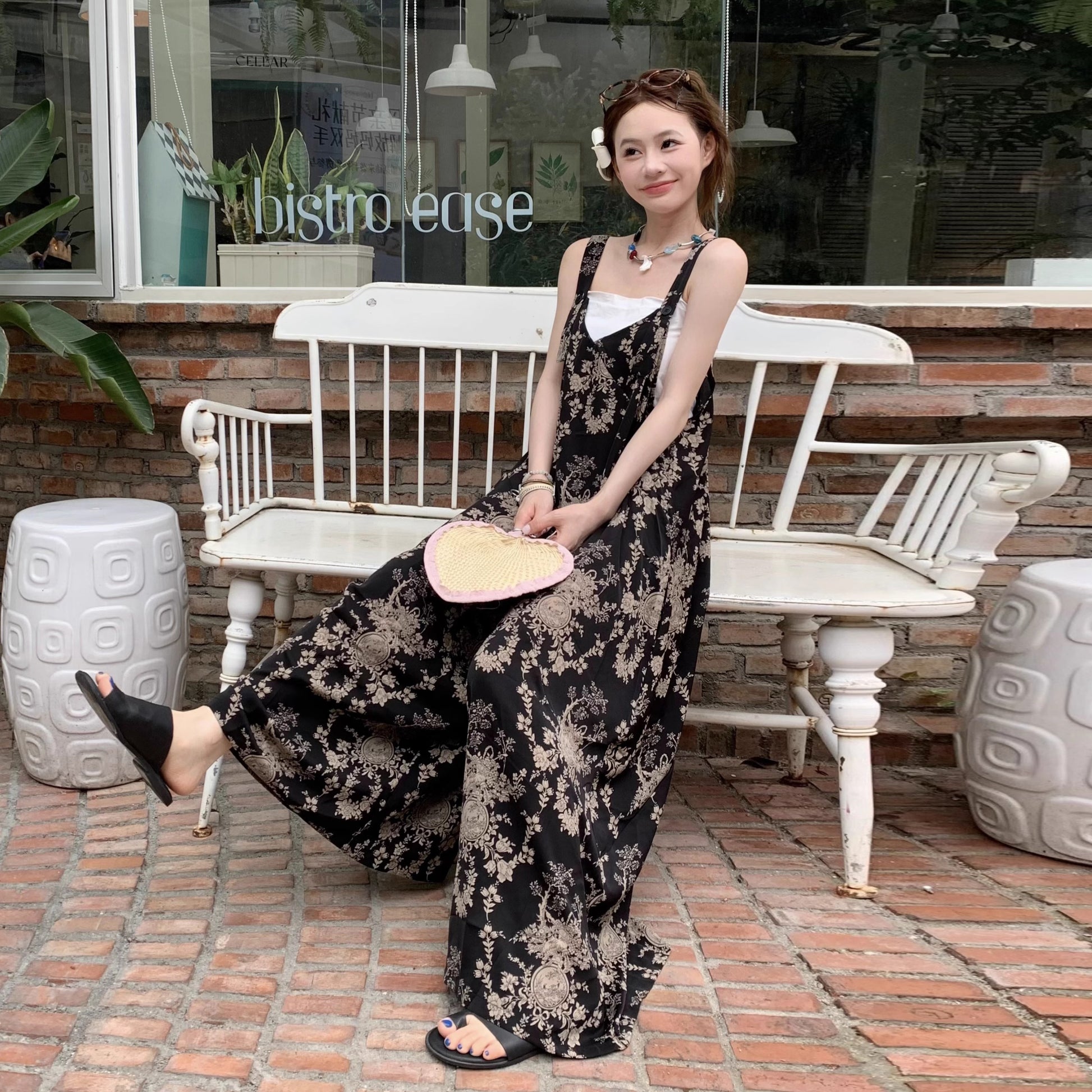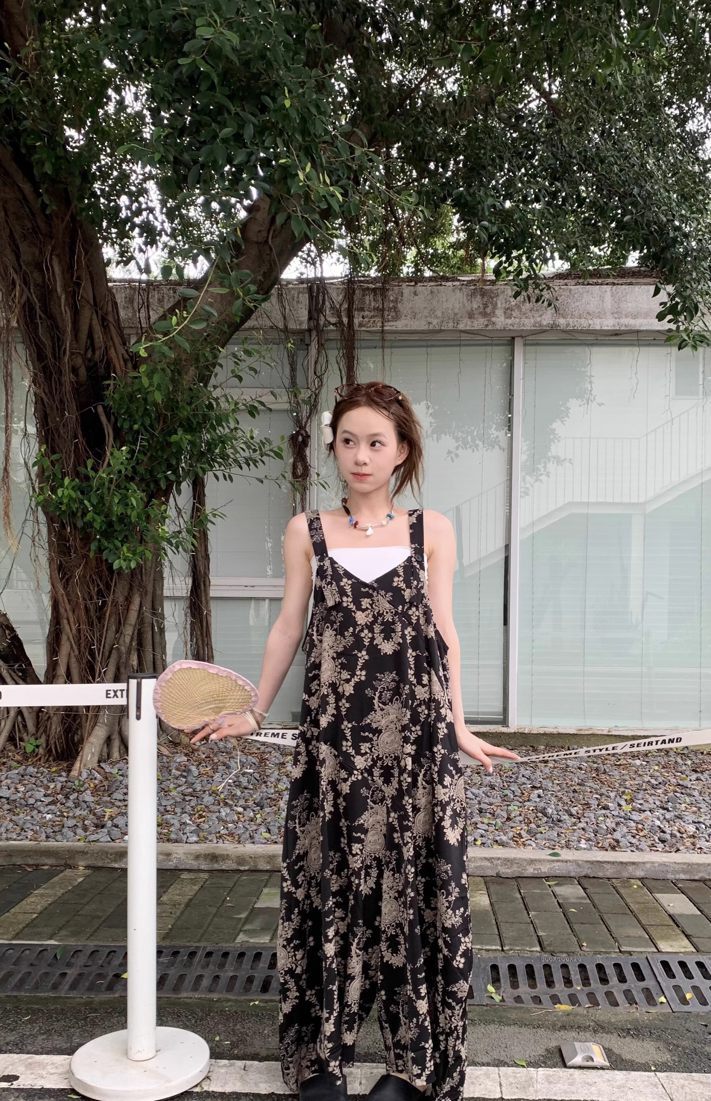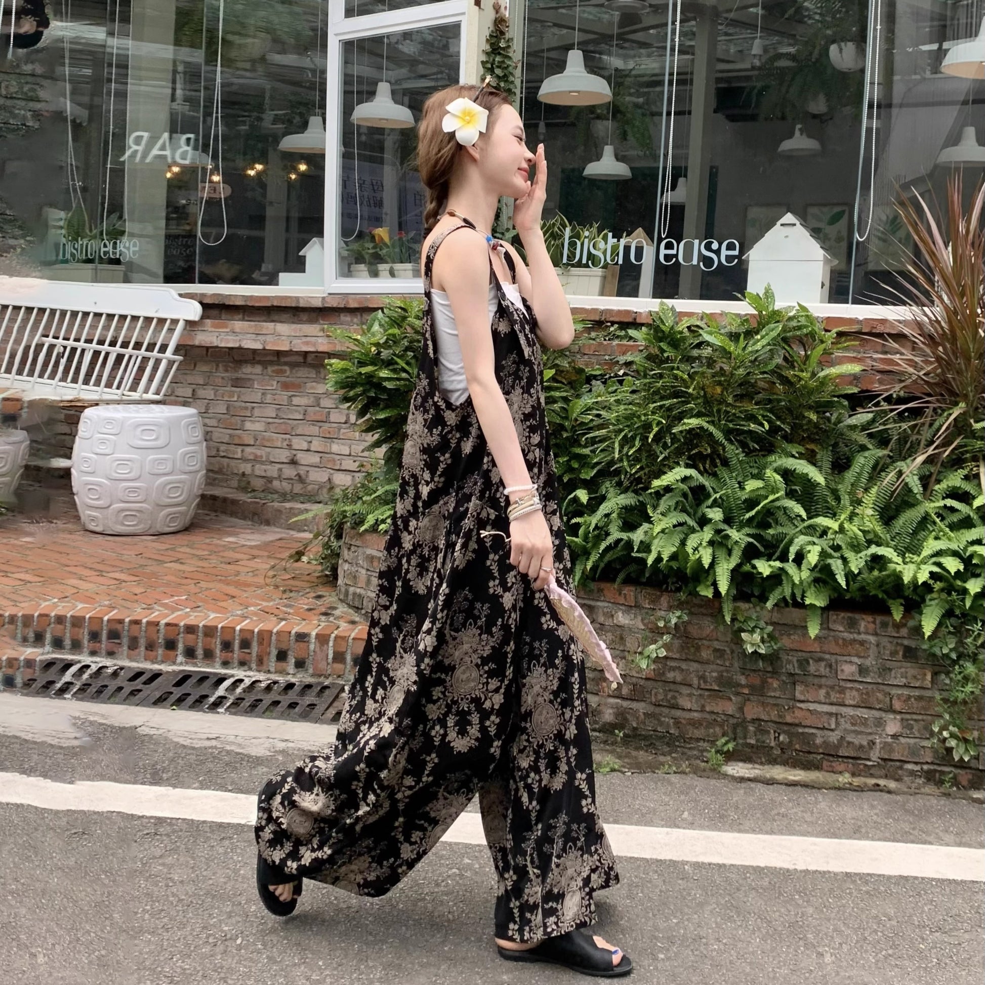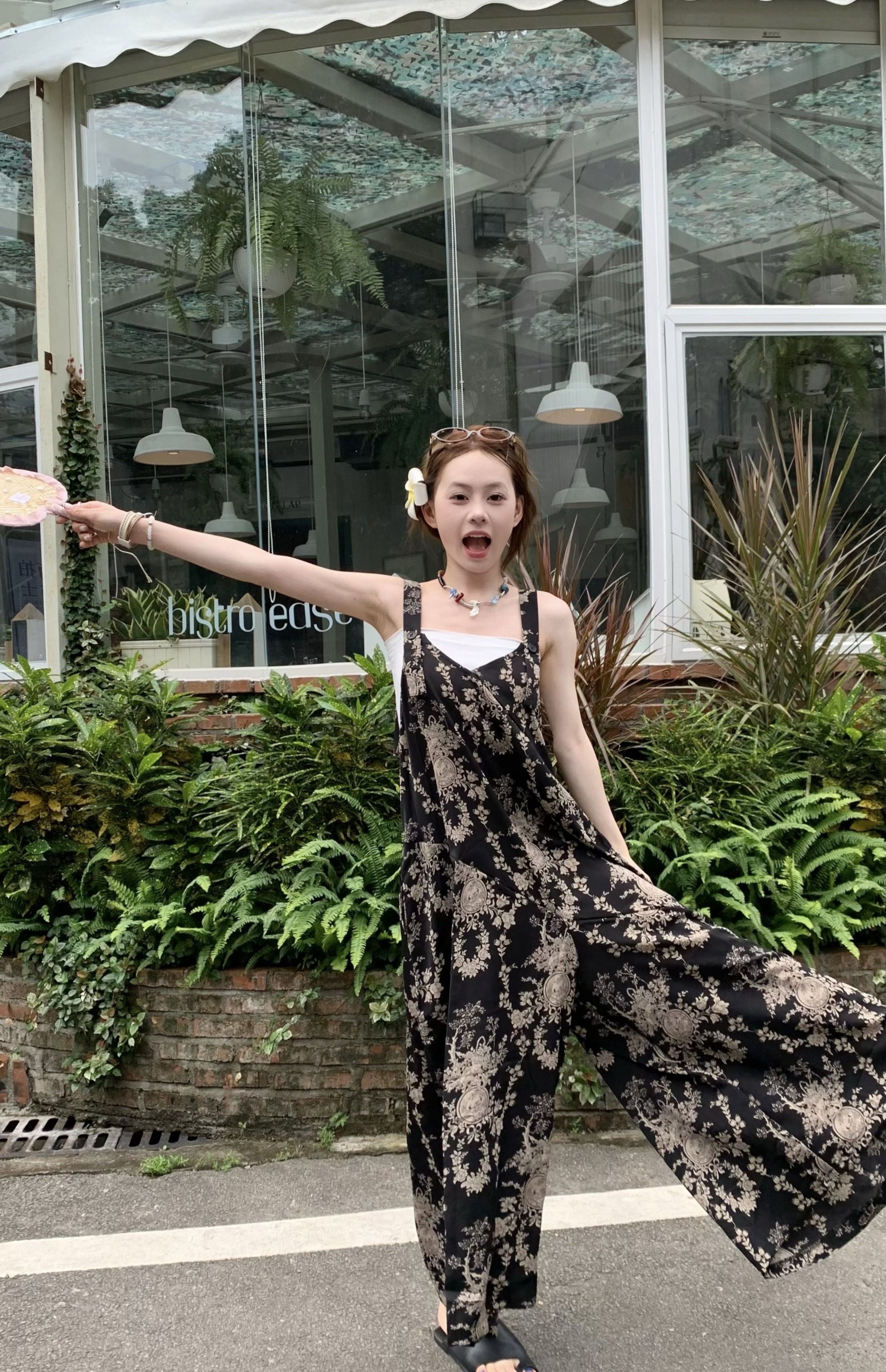 【ボトムス】夏新作 チャイナ風 ゆったりカジュアル ルーズ感たっぷり Vネックキャミオールインワン【SHシリーズ】