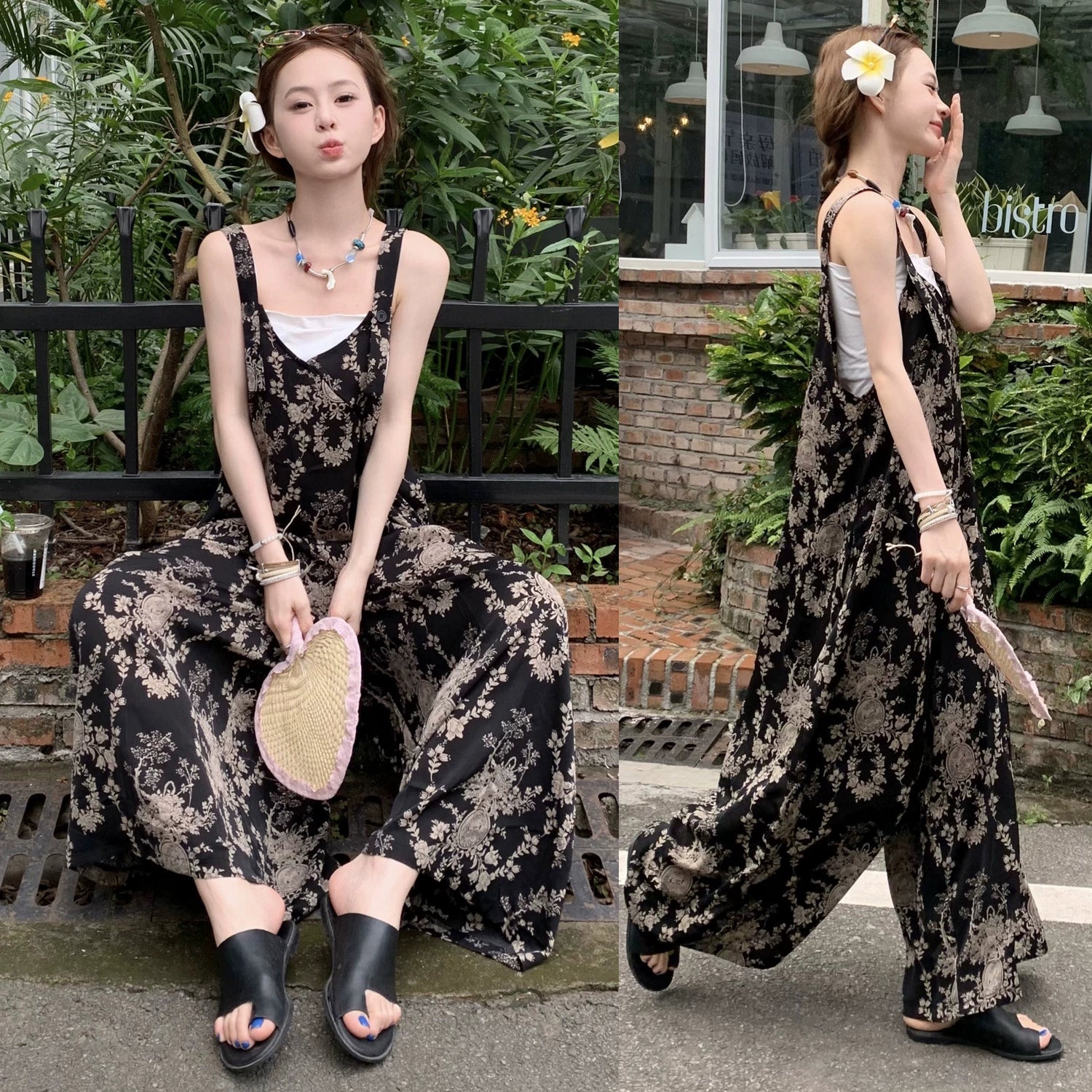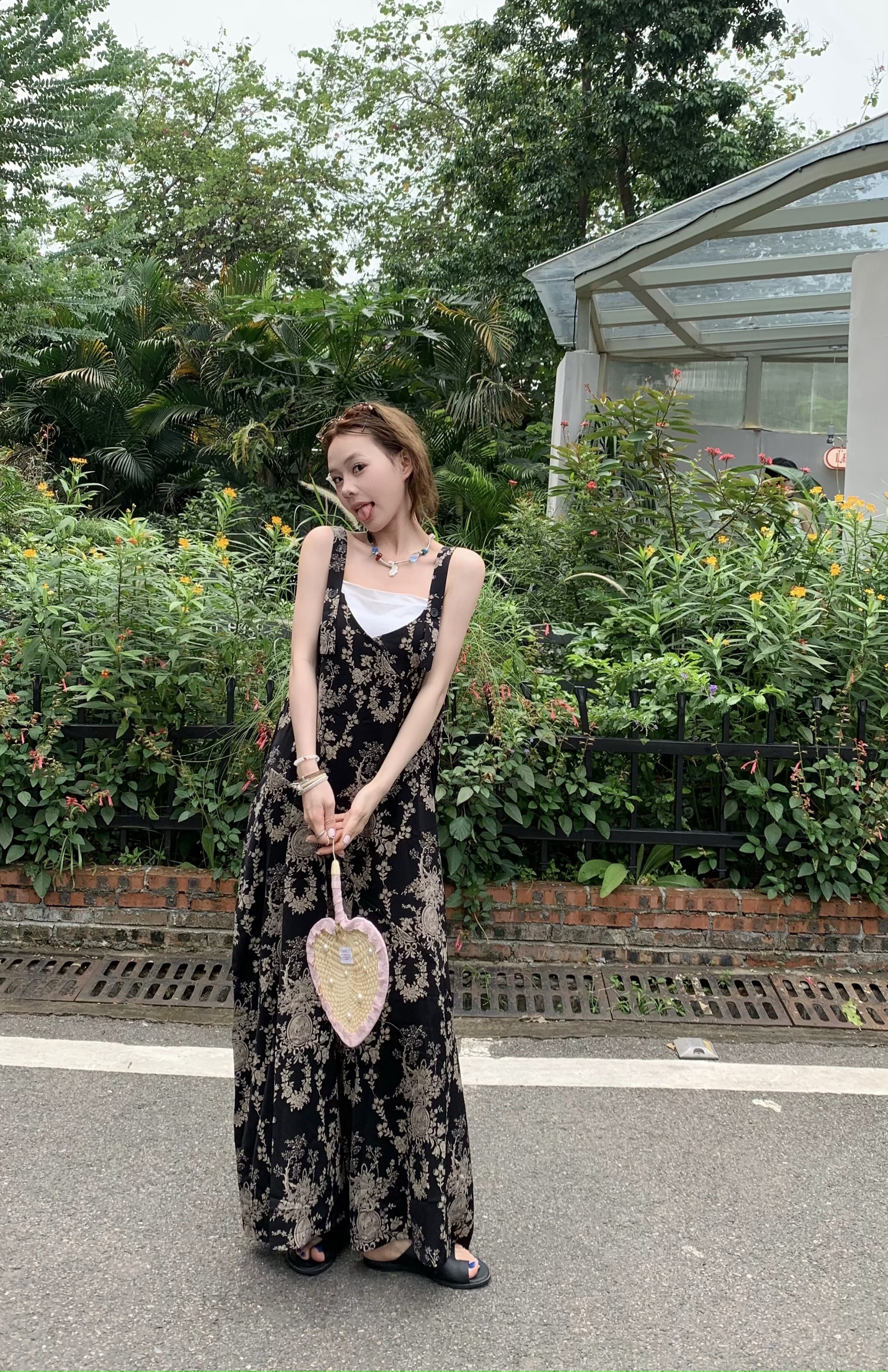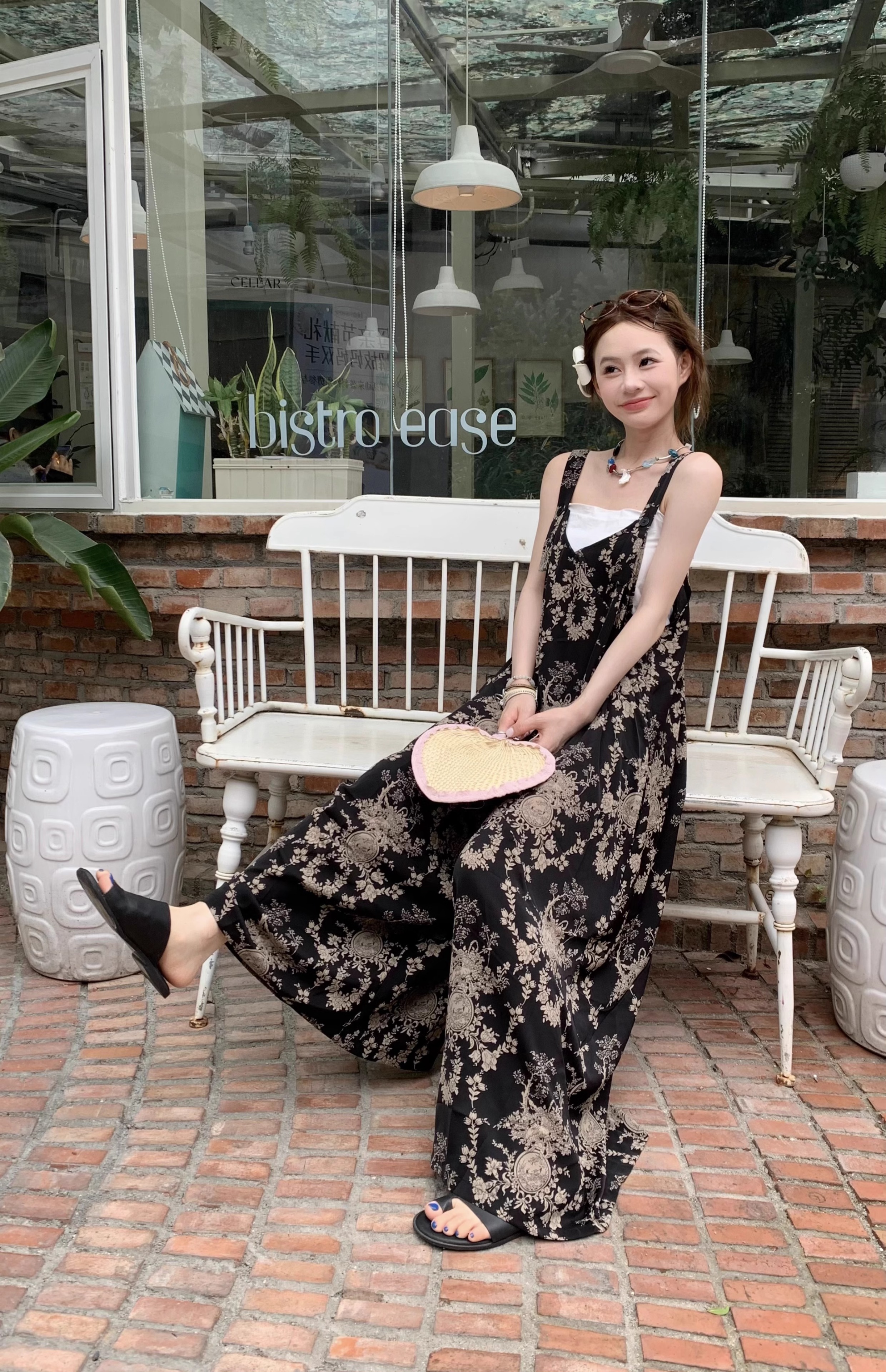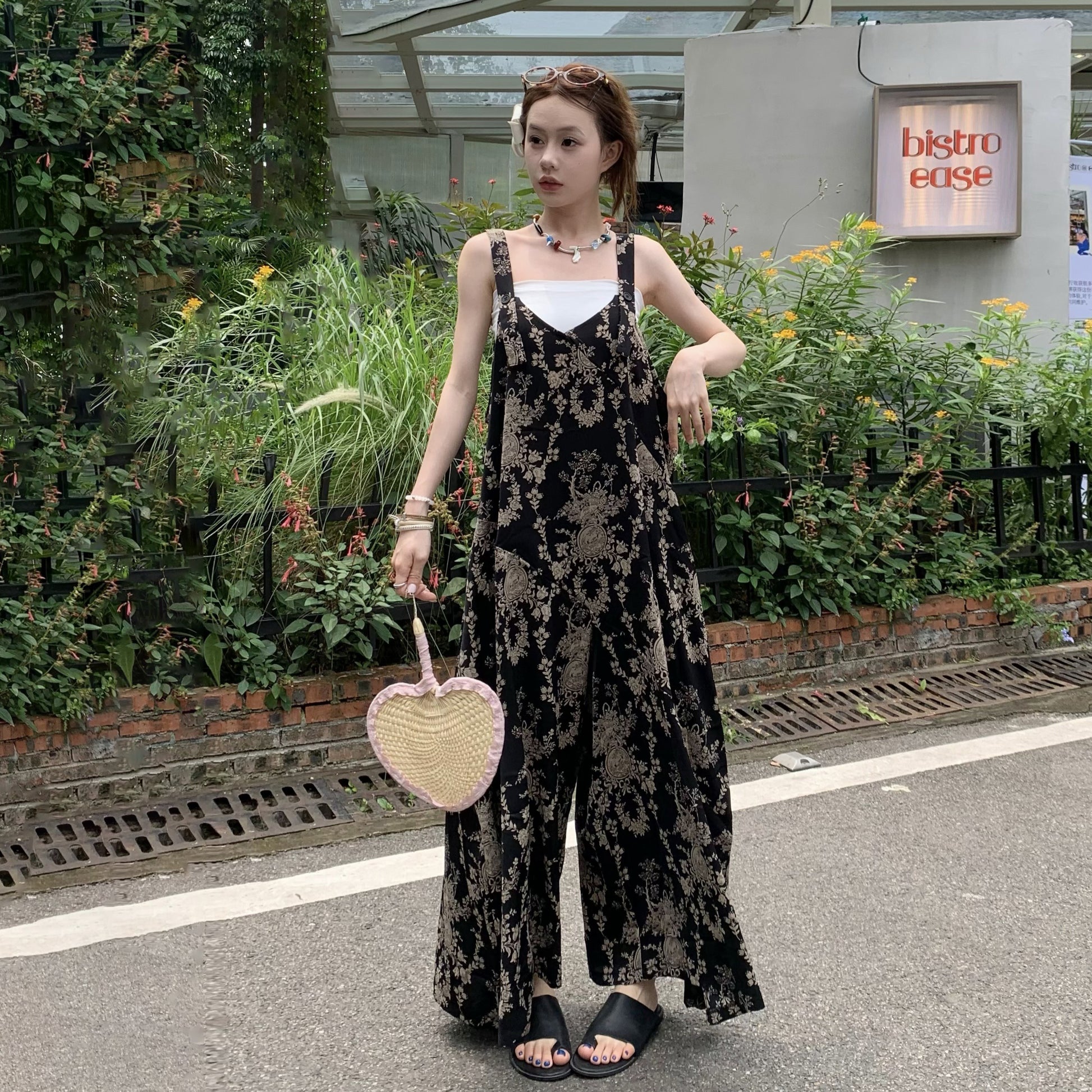 【ボトムス】夏新作 チャイナ風 ゆったりカジュアル ルーズ感たっぷり Vネックキャミオールインワン【SHシリーズ】