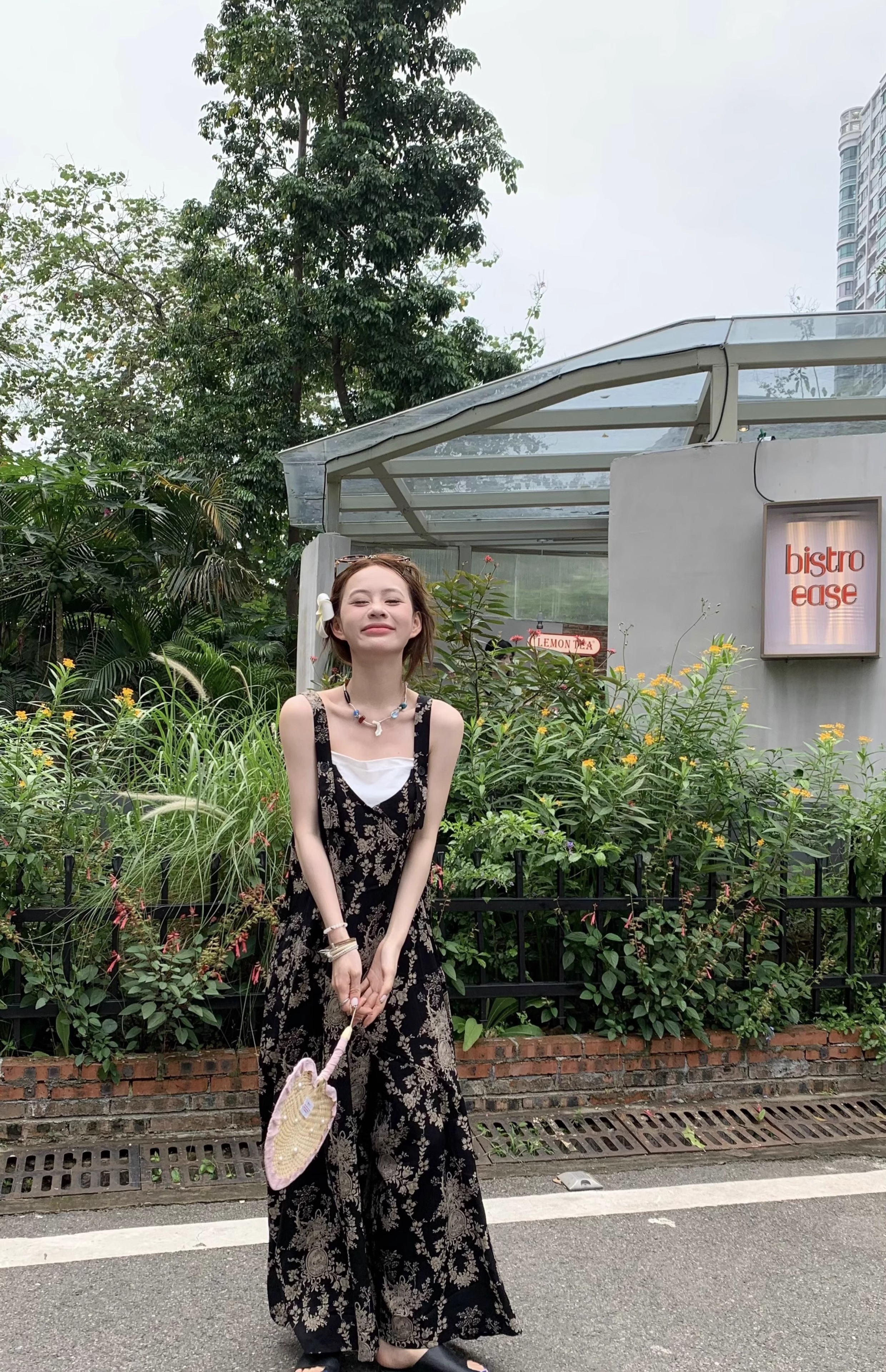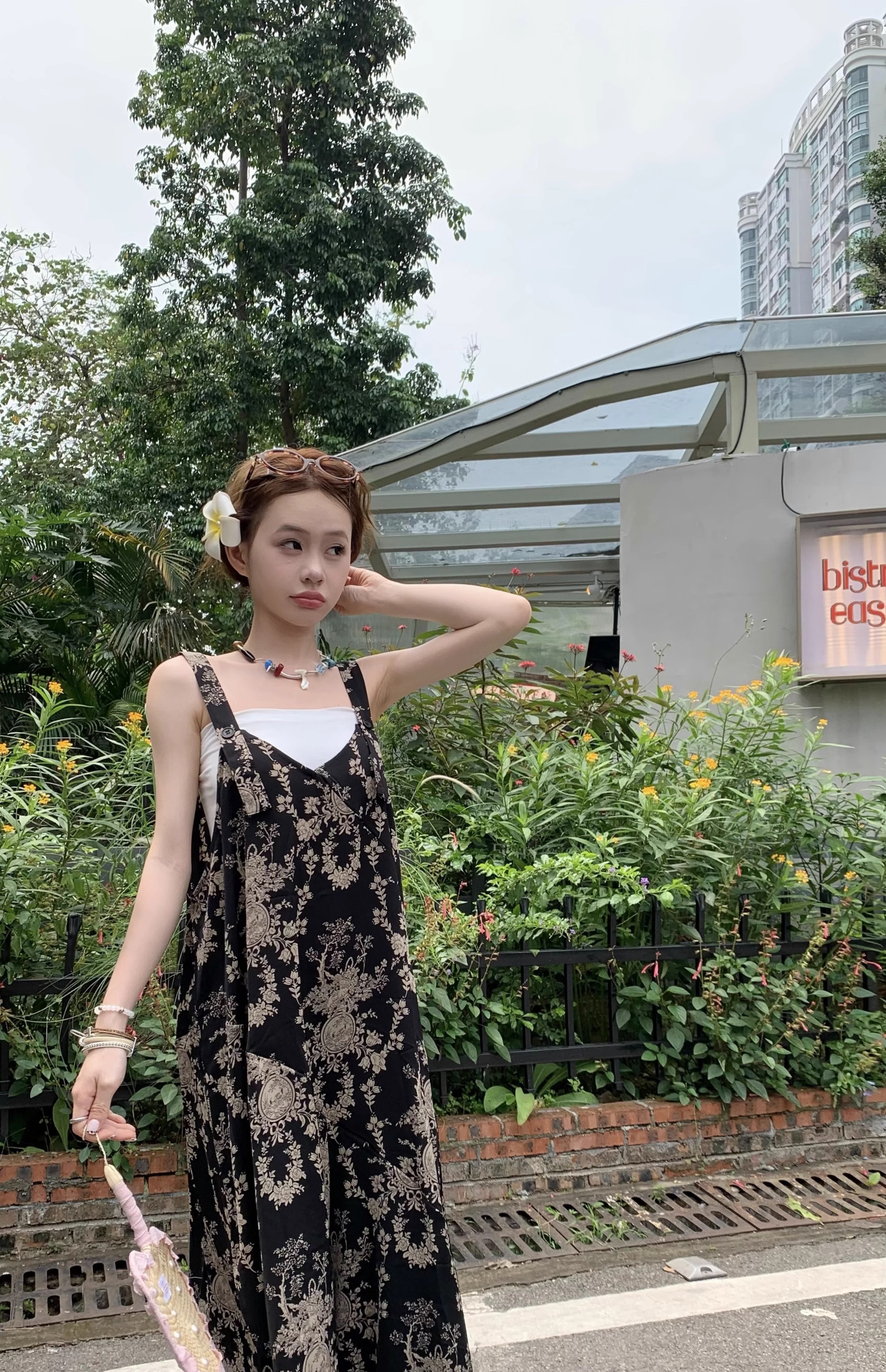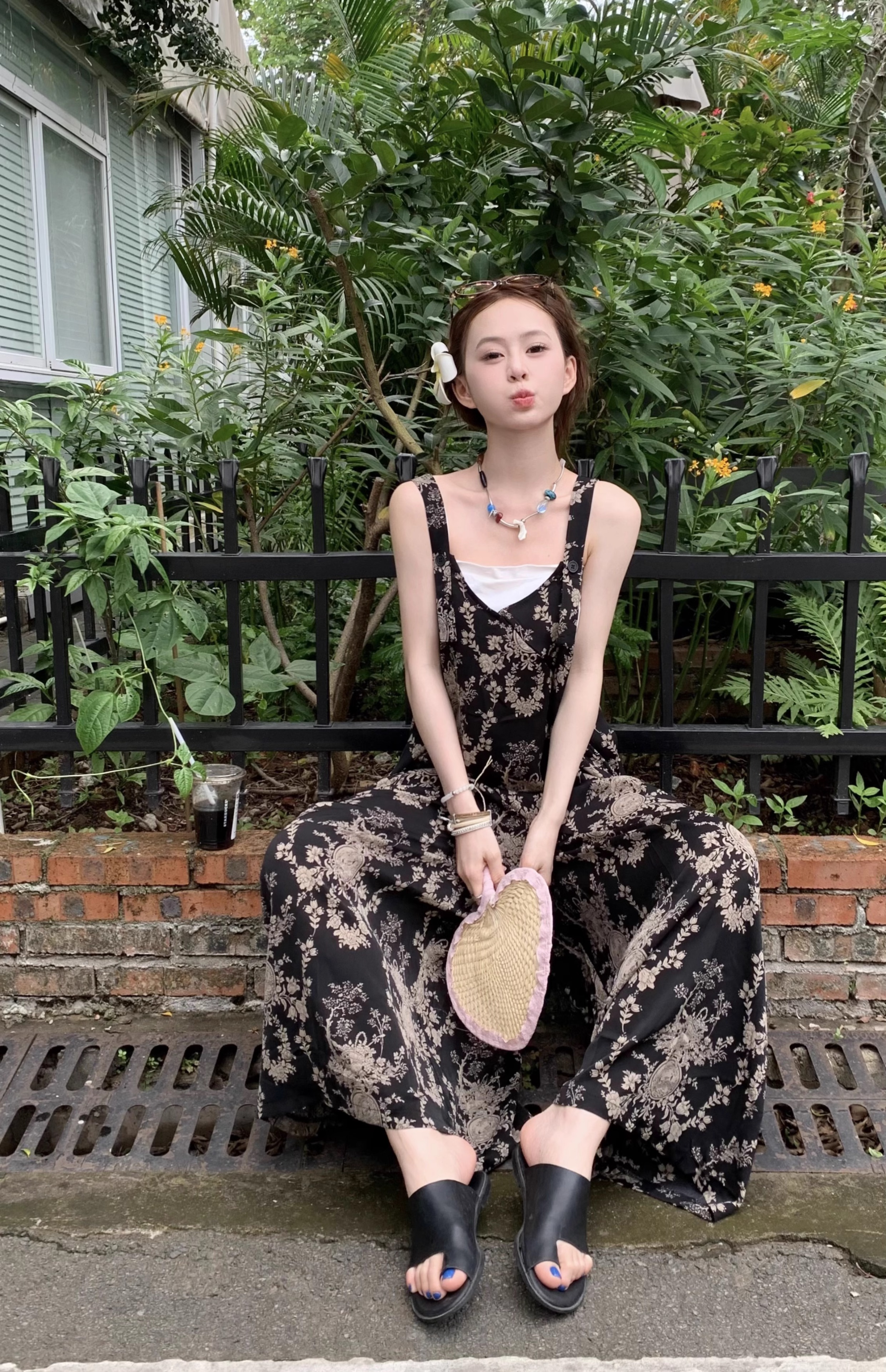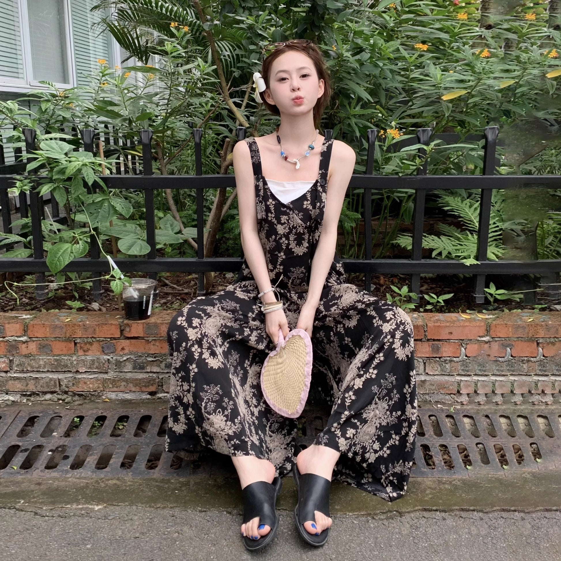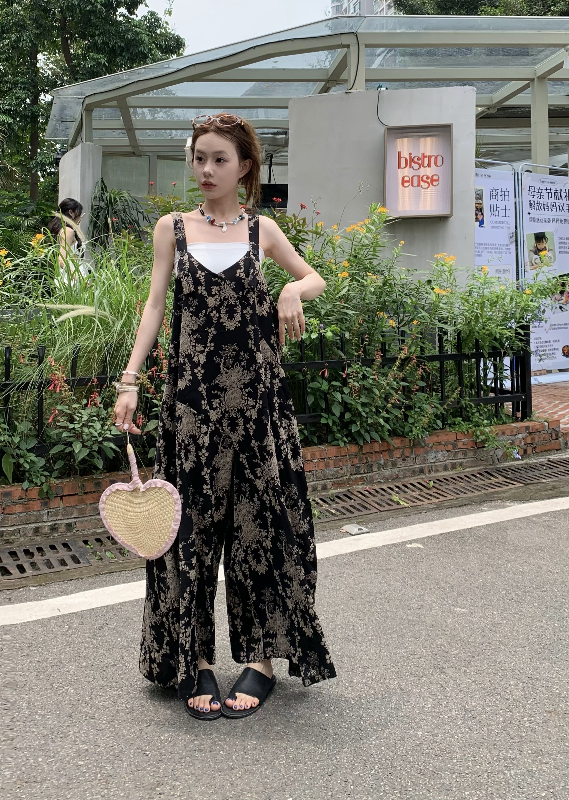 【ボトムス】夏新作 チャイナ風 ゆったりカジュアル ルーズ感たっぷり Vネックキャミオールインワン【SHシリーズ】