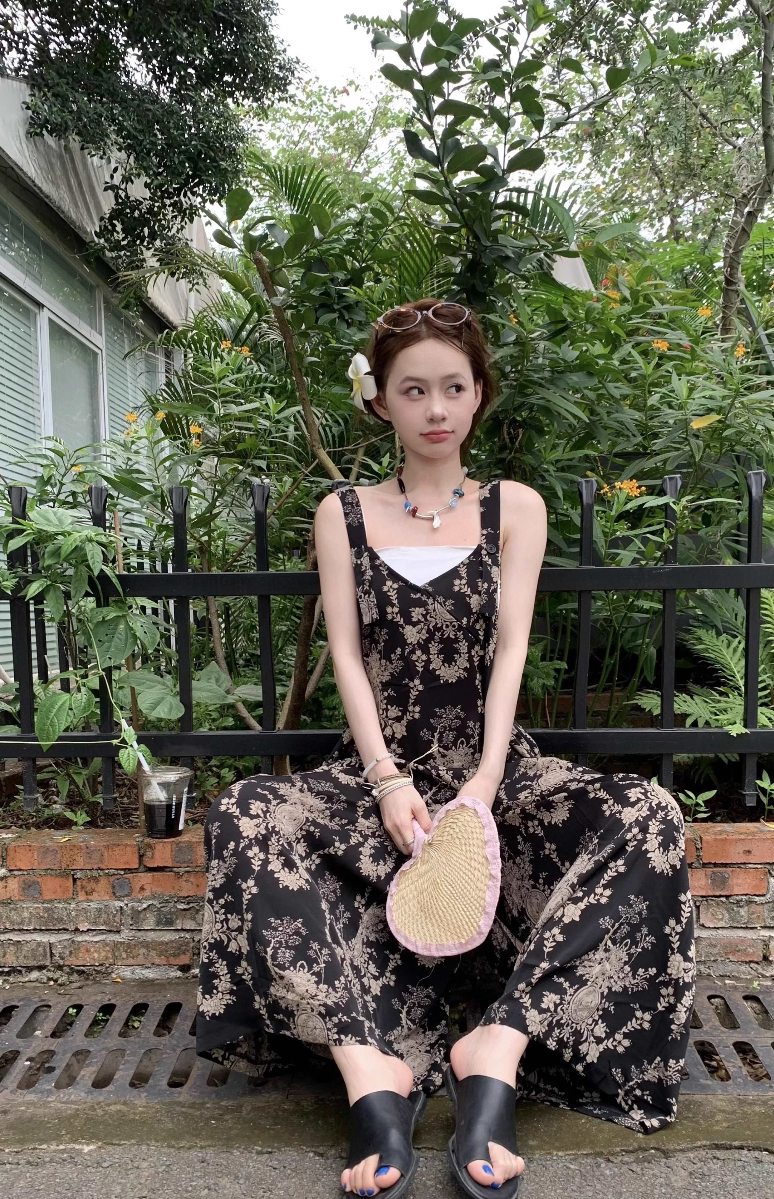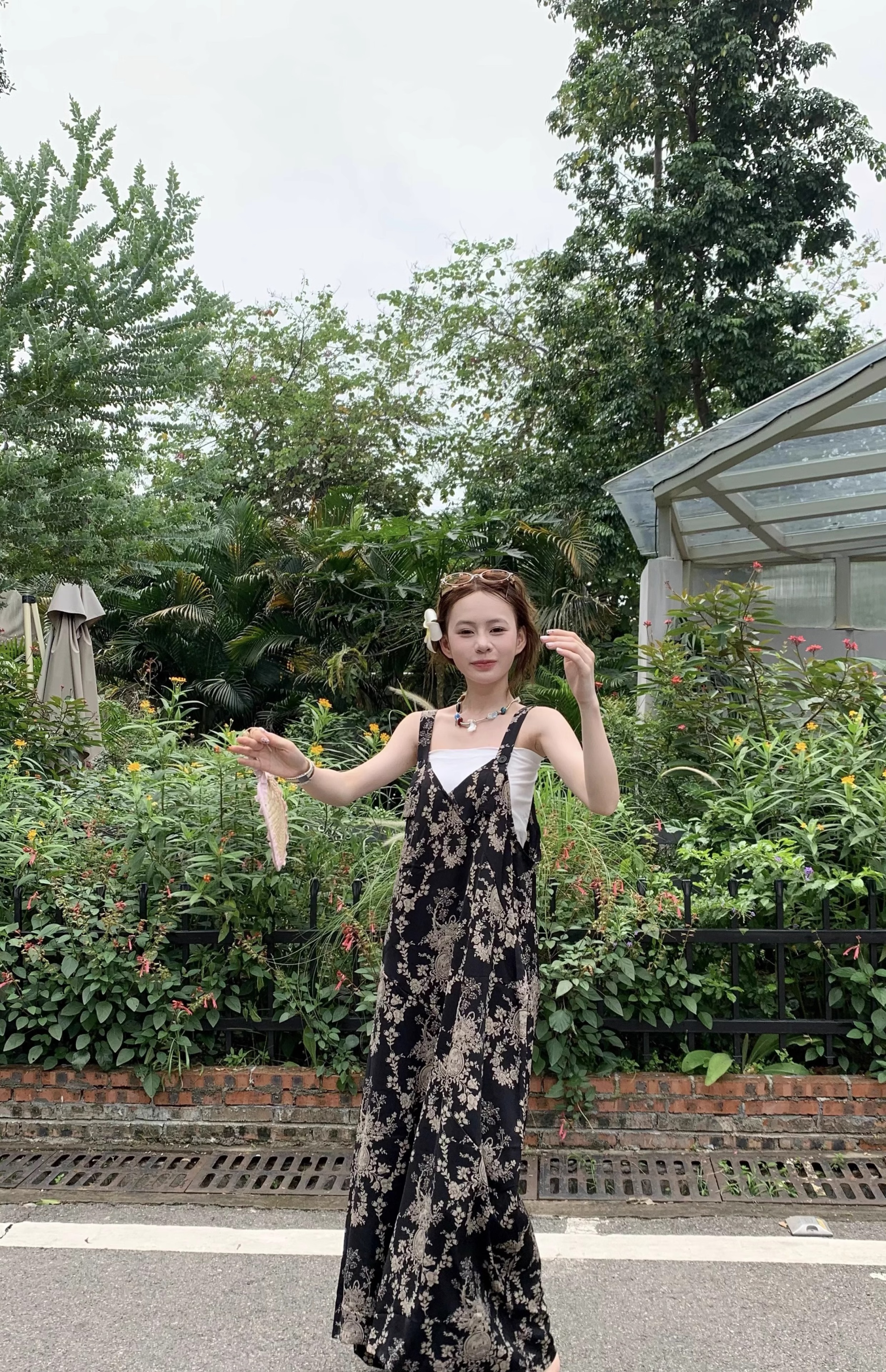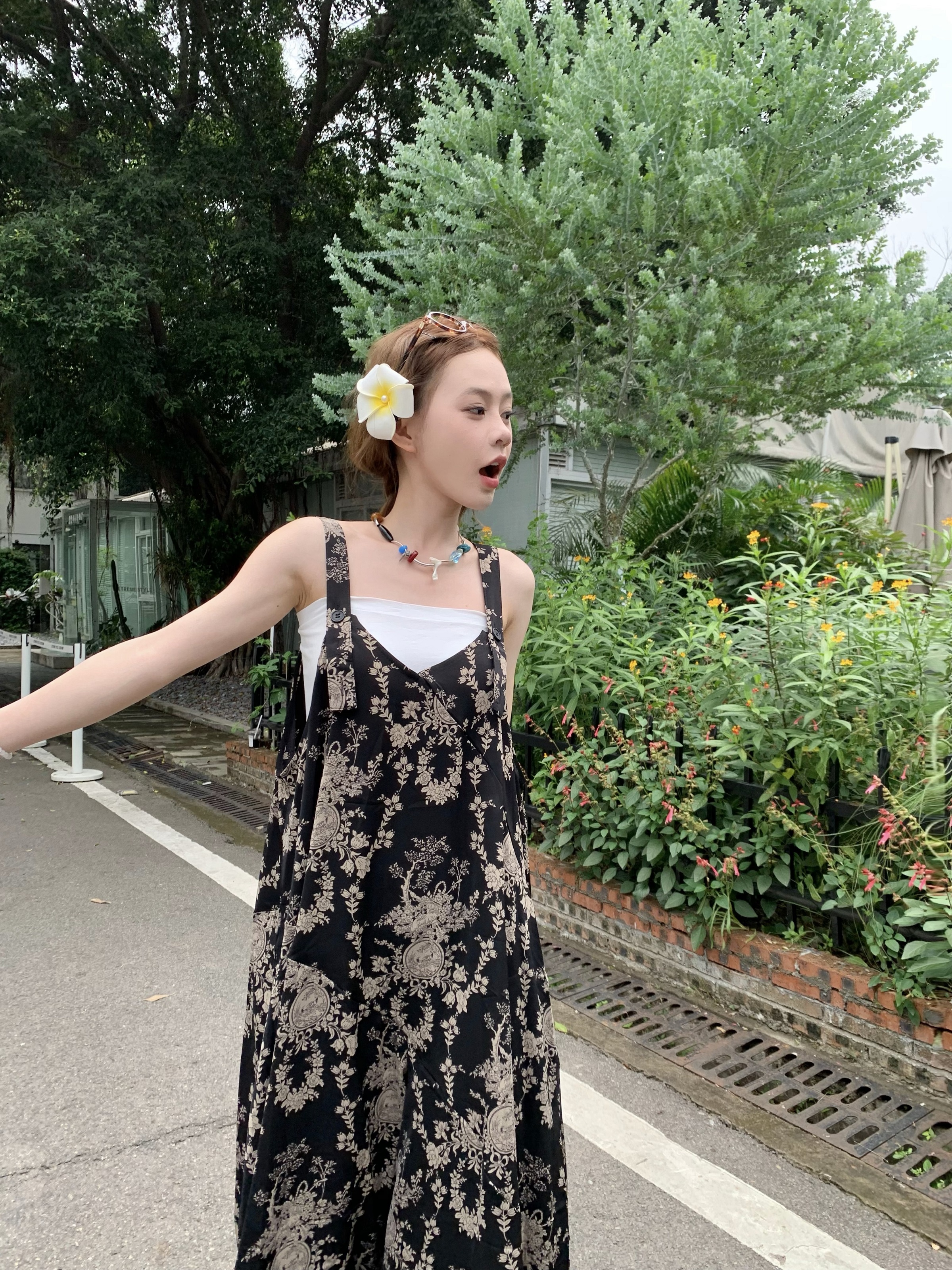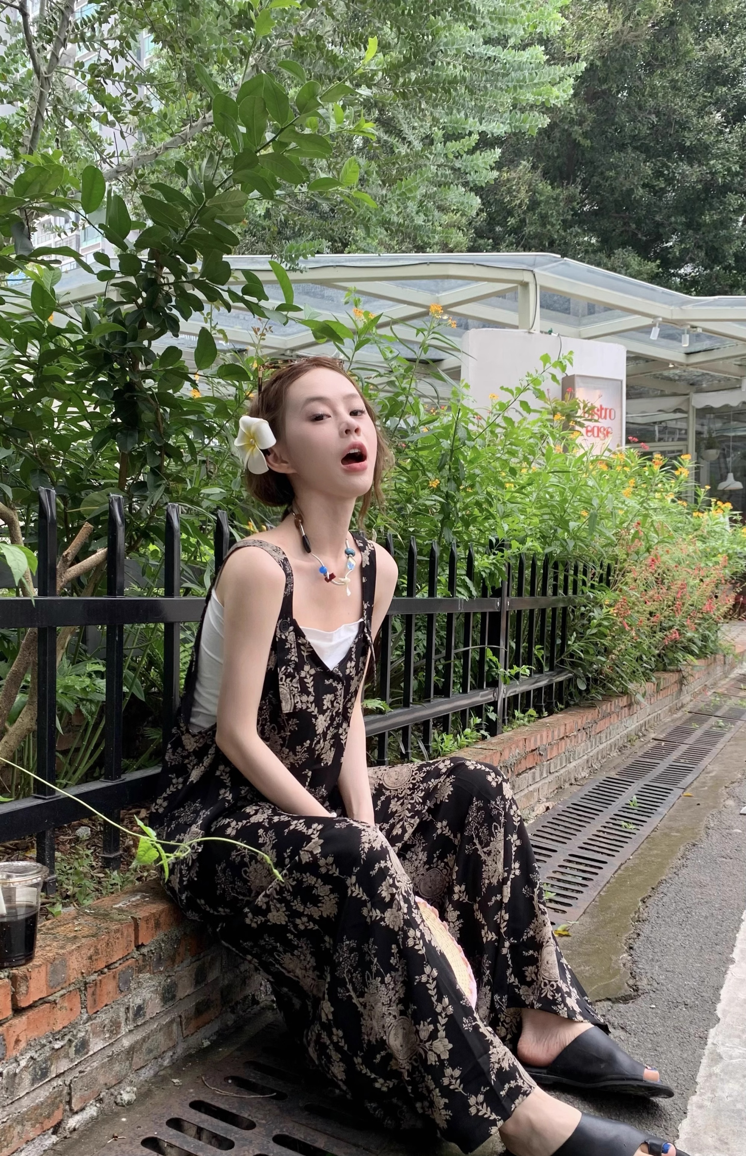 【ボトムス】夏新作 チャイナ風 ゆったりカジュアル ルーズ感たっぷり Vネックキャミオールインワン【SHシリーズ】