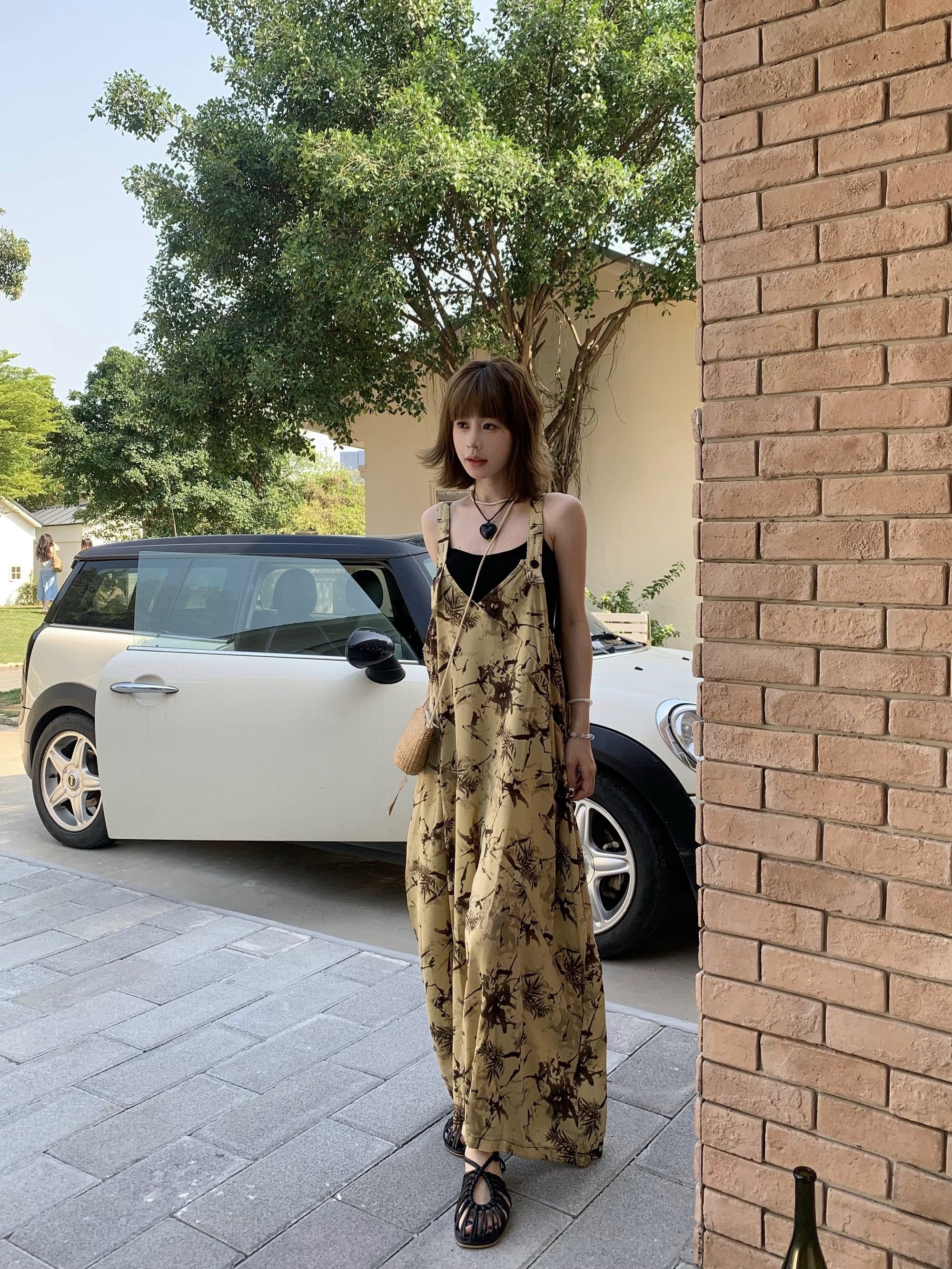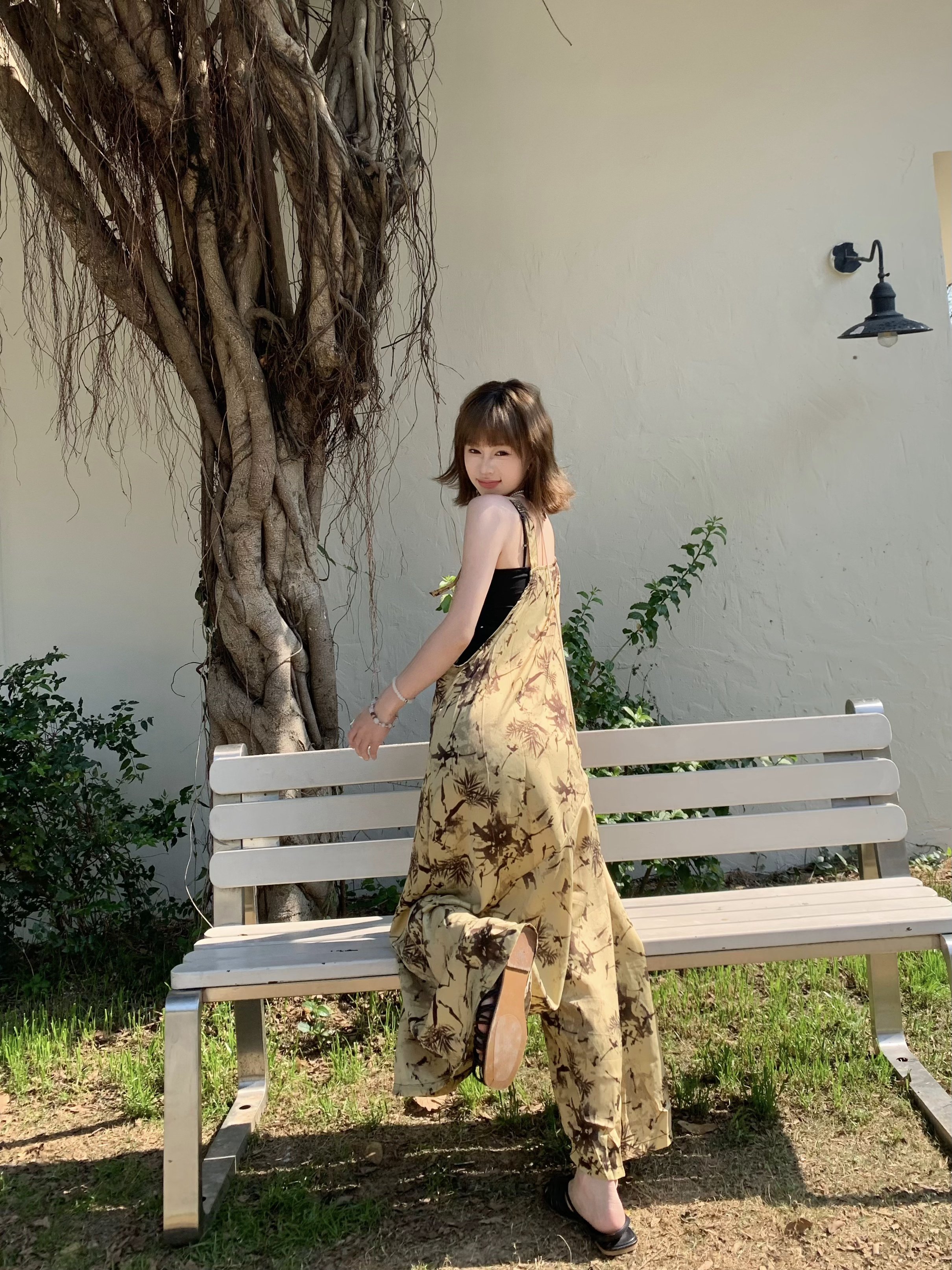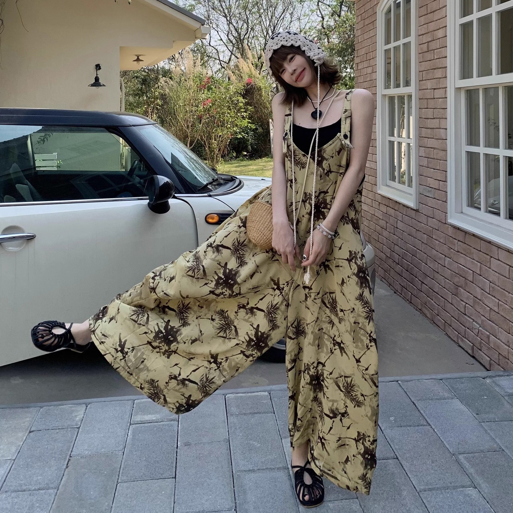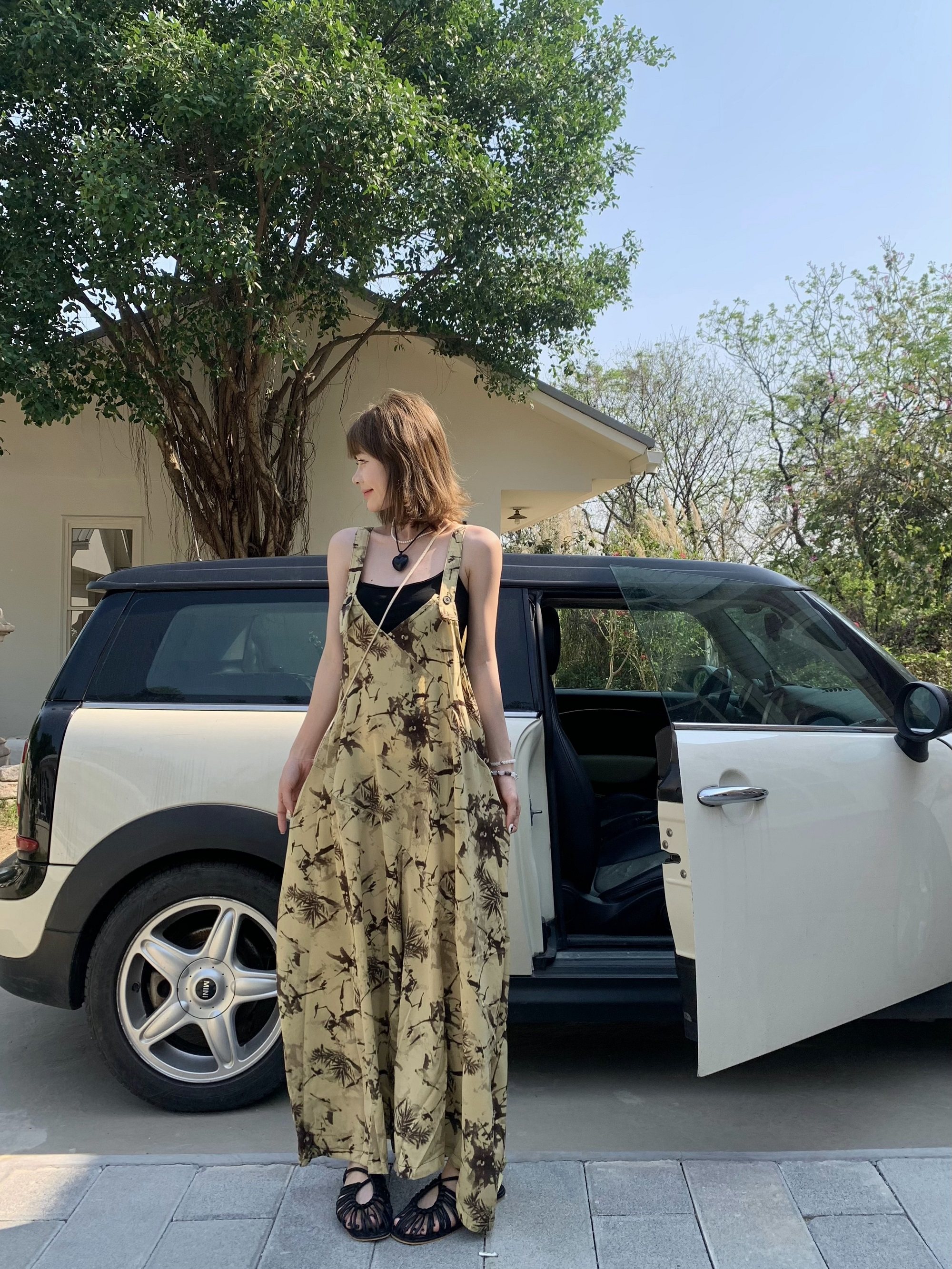 【ボトムス】夏 涼しげで肌映え ゆったりカジュアル 染め柄キャミオールインワン【SHシリーズ】