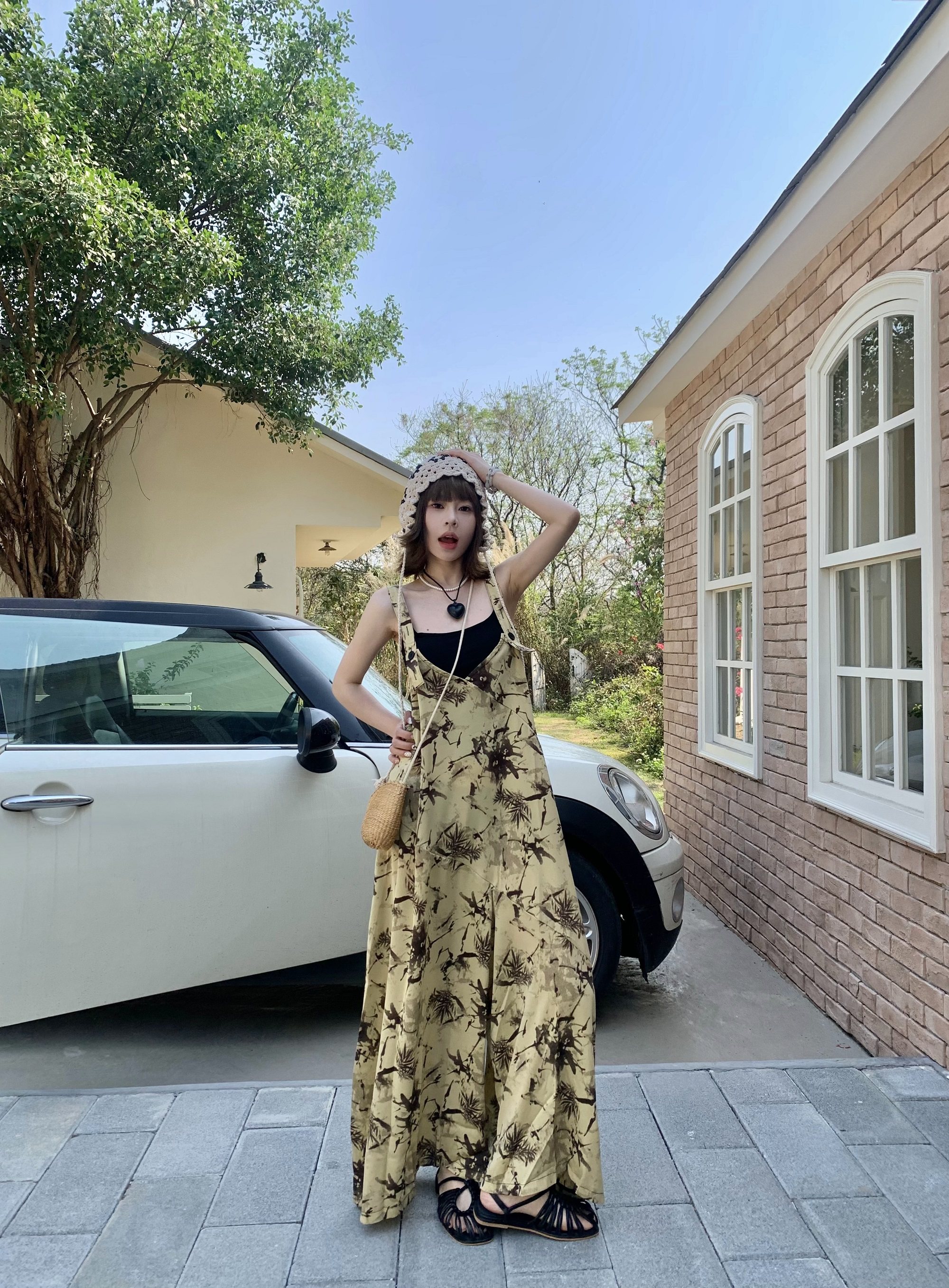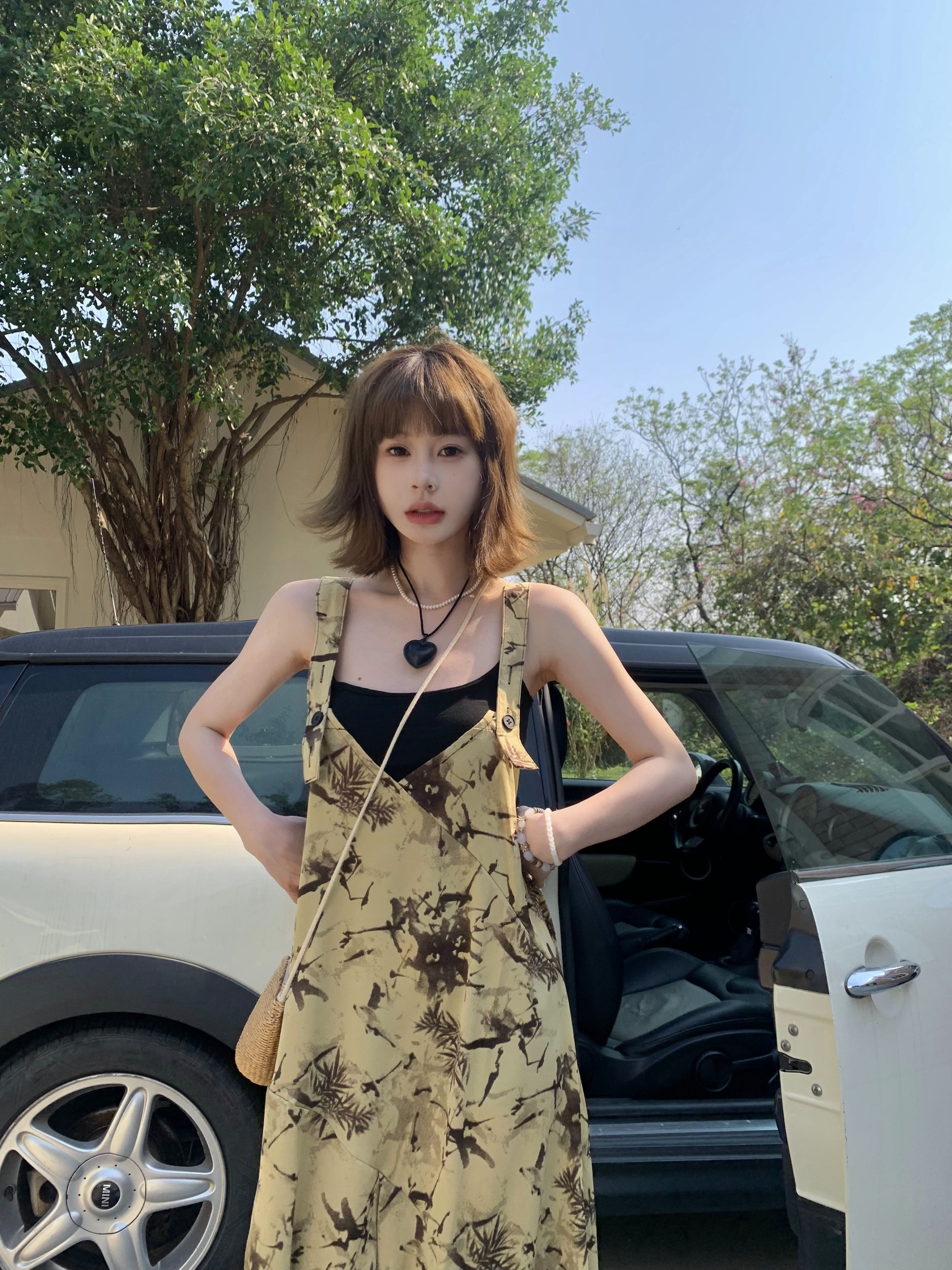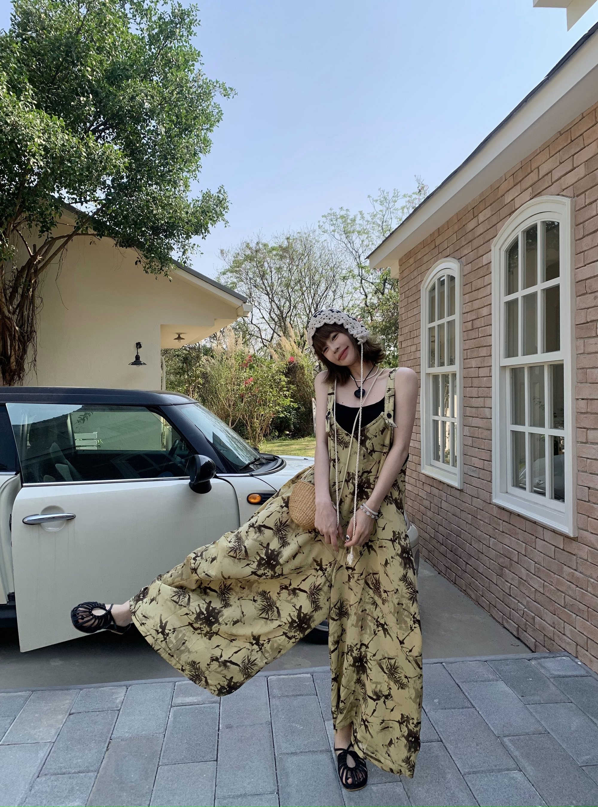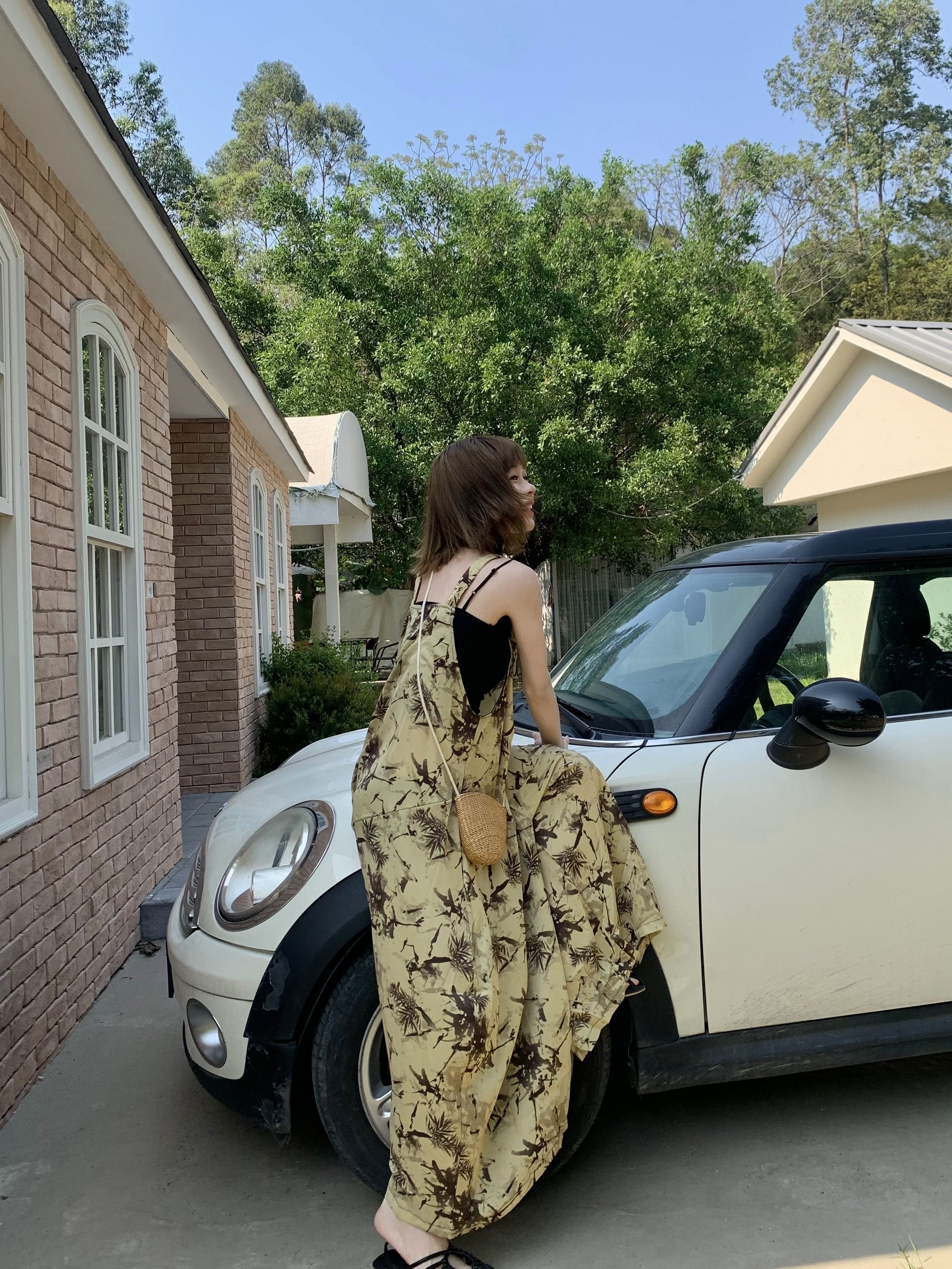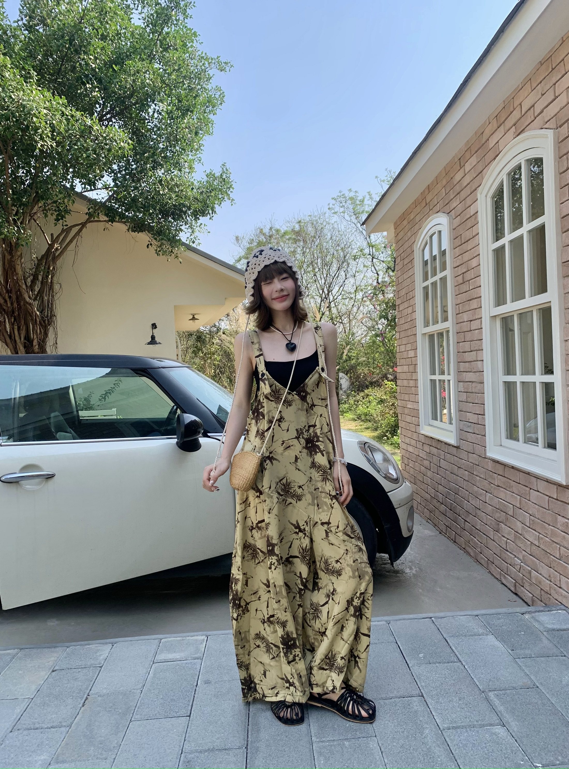 【ボトムス】夏 涼しげで肌映え ゆったりカジュアル 染め柄キャミオールインワン【SHシリーズ】