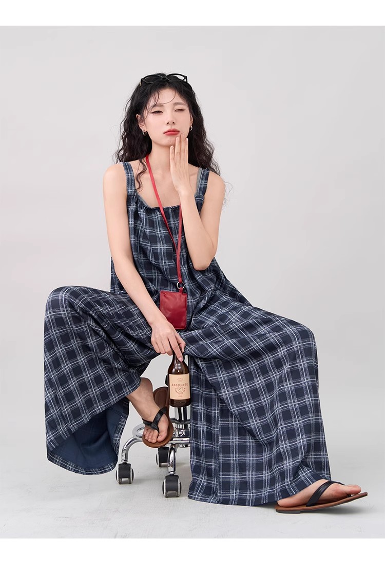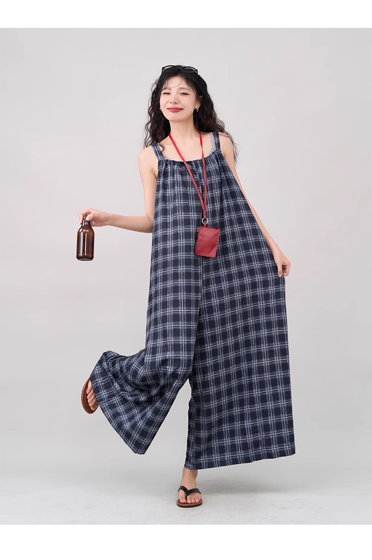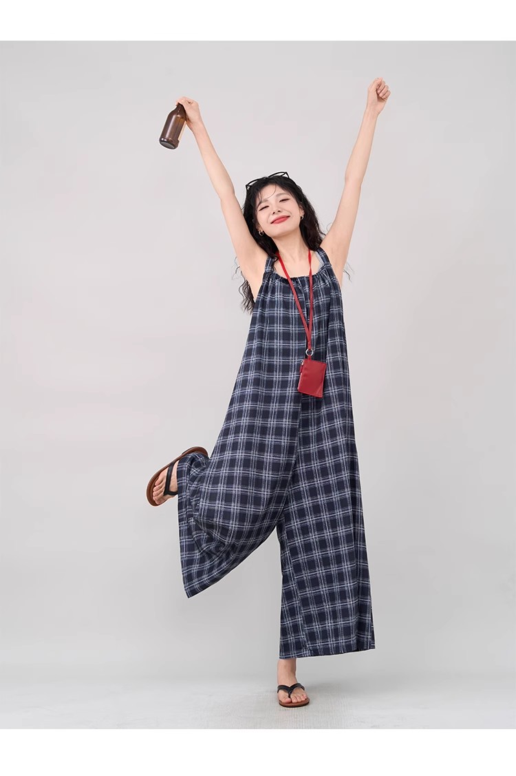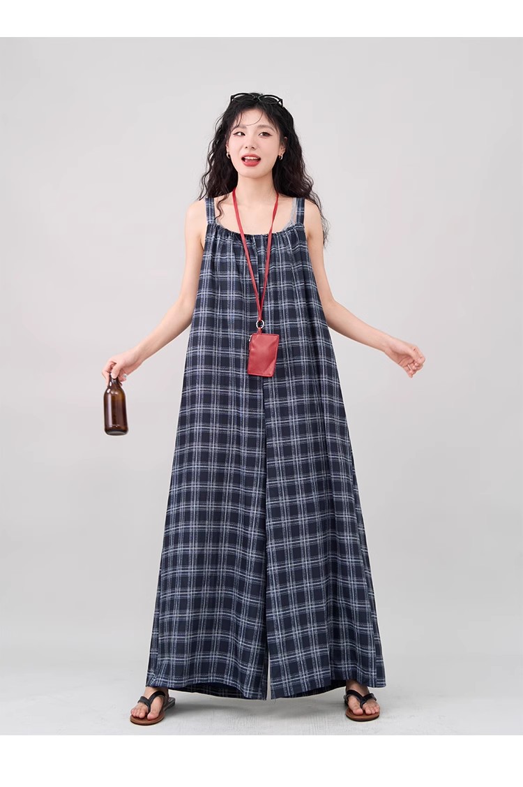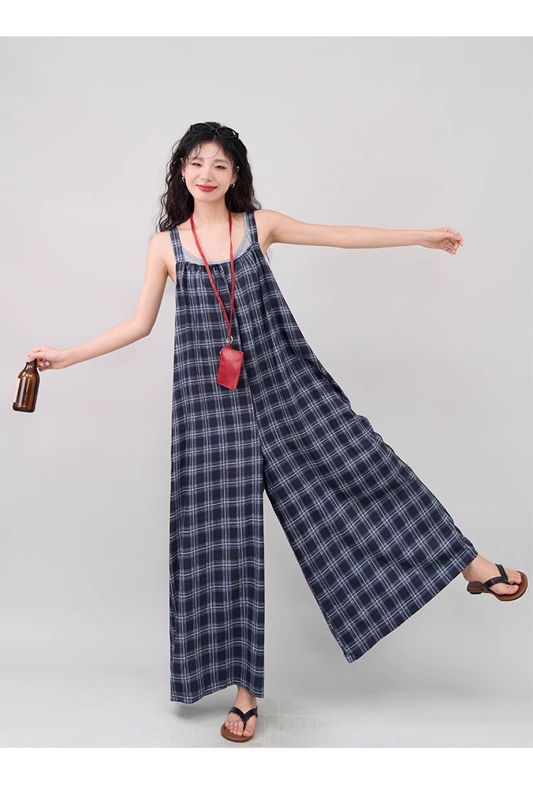 【ボトムス】インスタ風 夏新作 シックヴィンテージ チェック 超ゆったりカジュアル オールインワン【SHシリーズ】