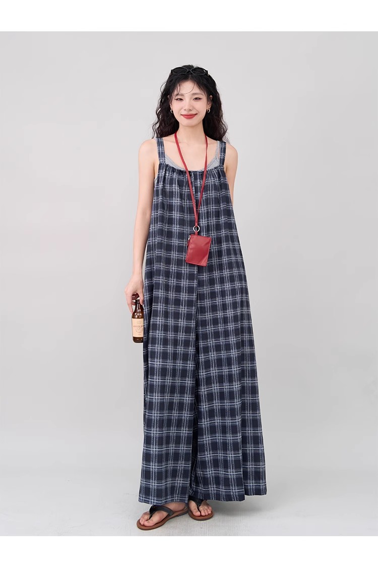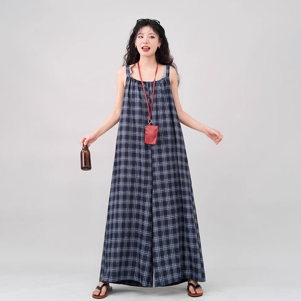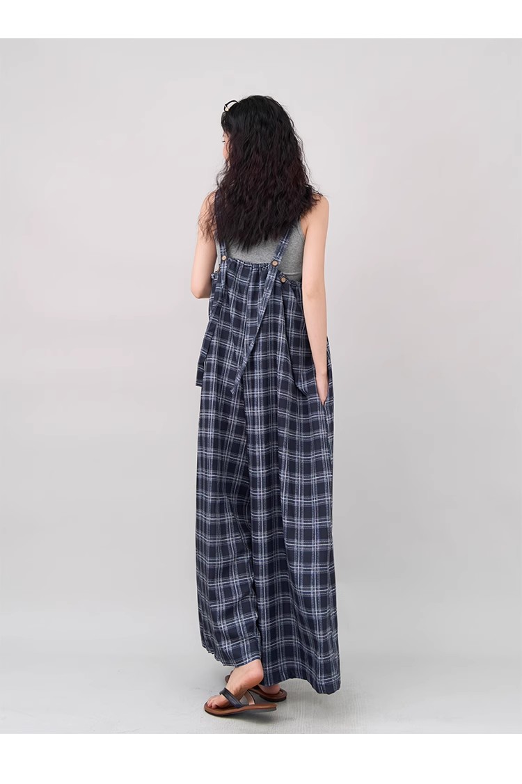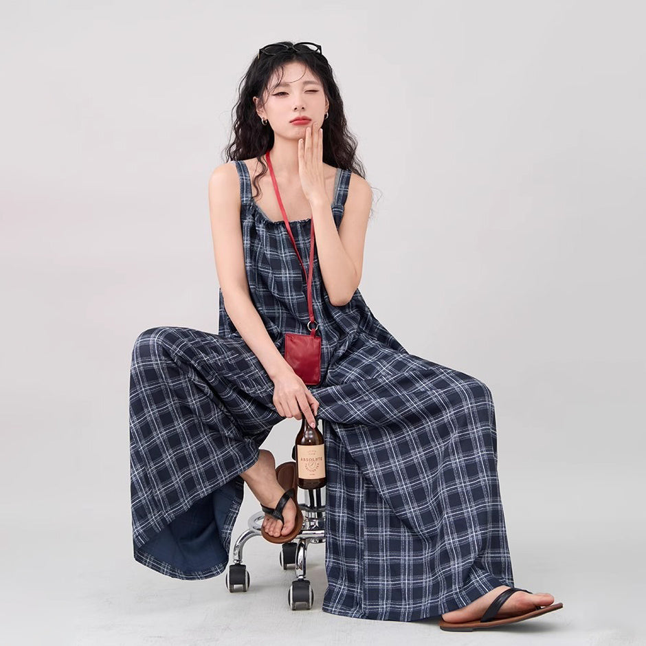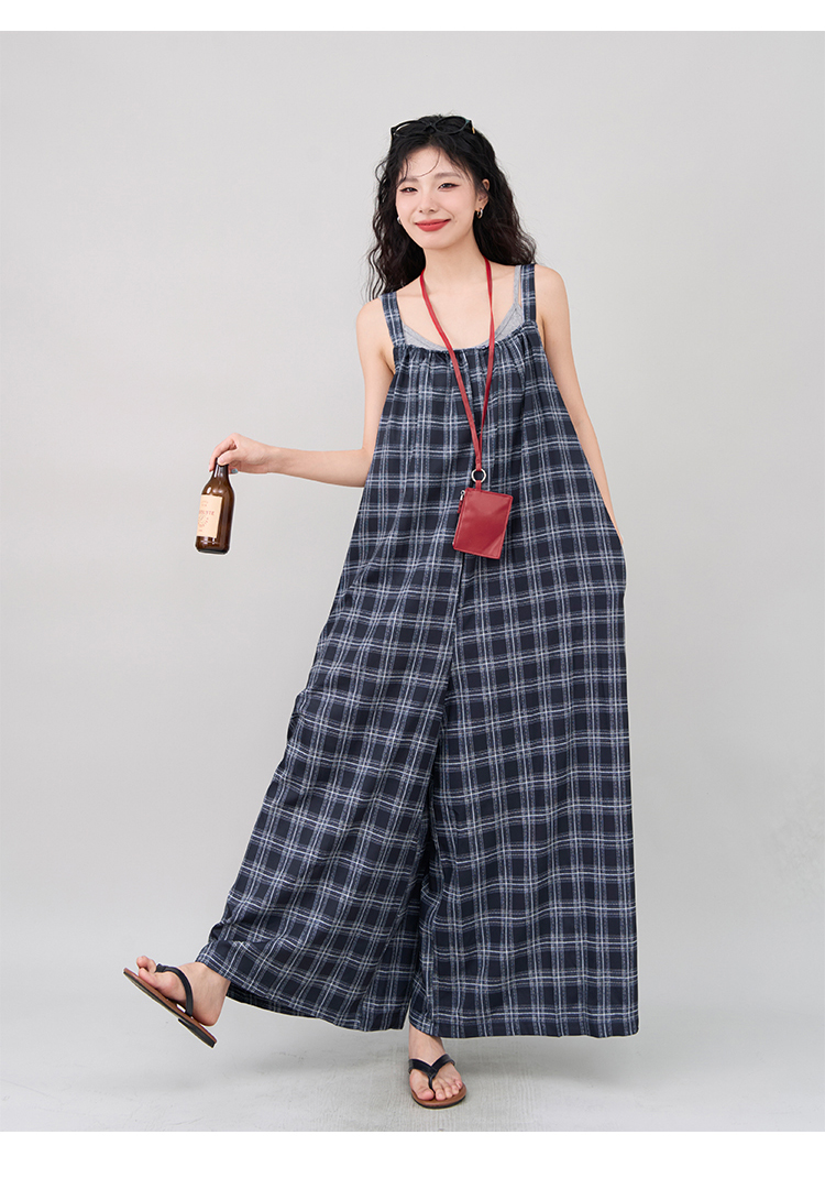 【ボトムス】インスタ風 夏新作 シックヴィンテージ チェック 超ゆったりカジュアル オールインワン【SHシリーズ】