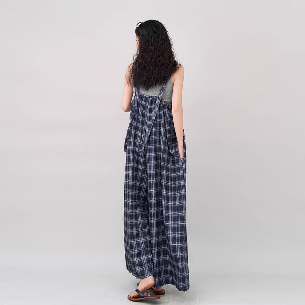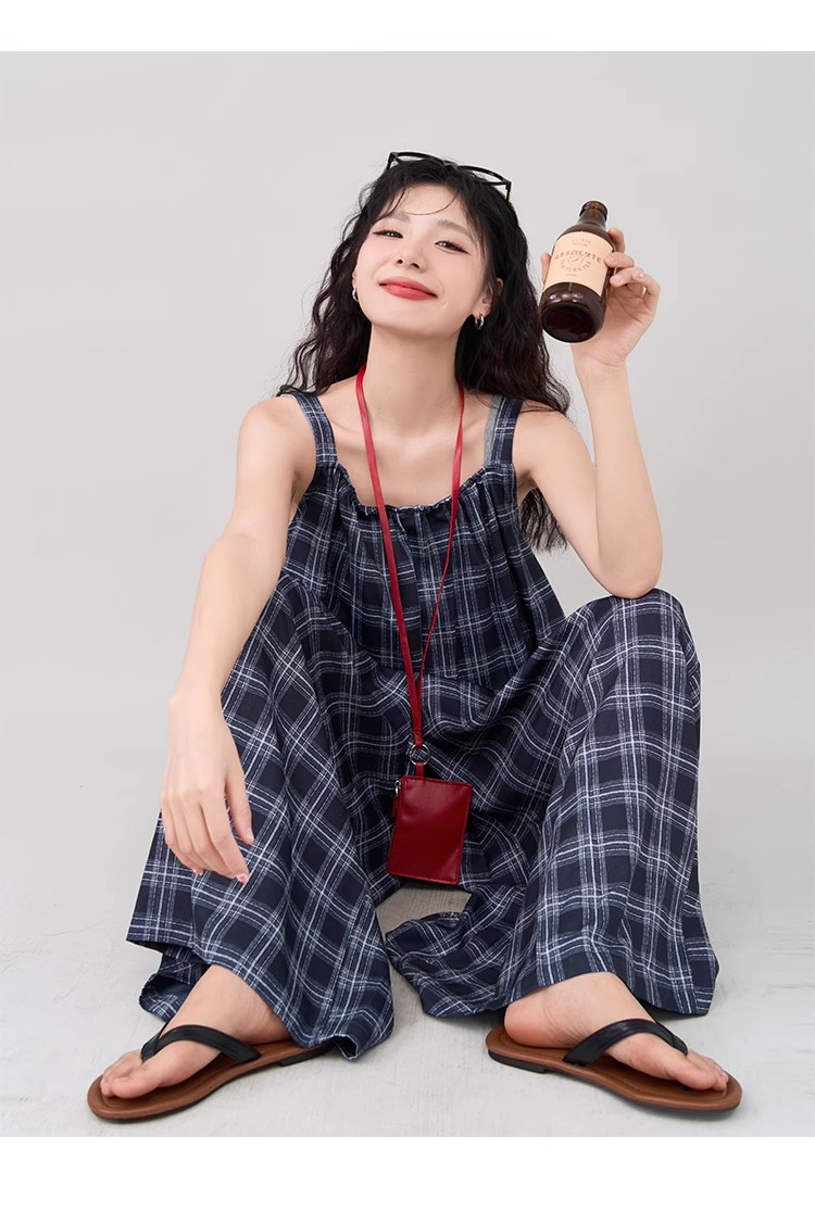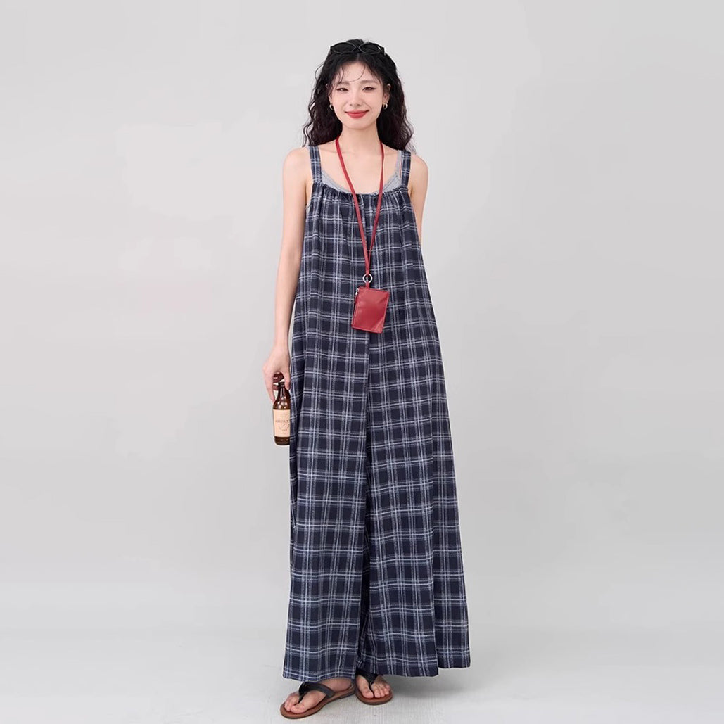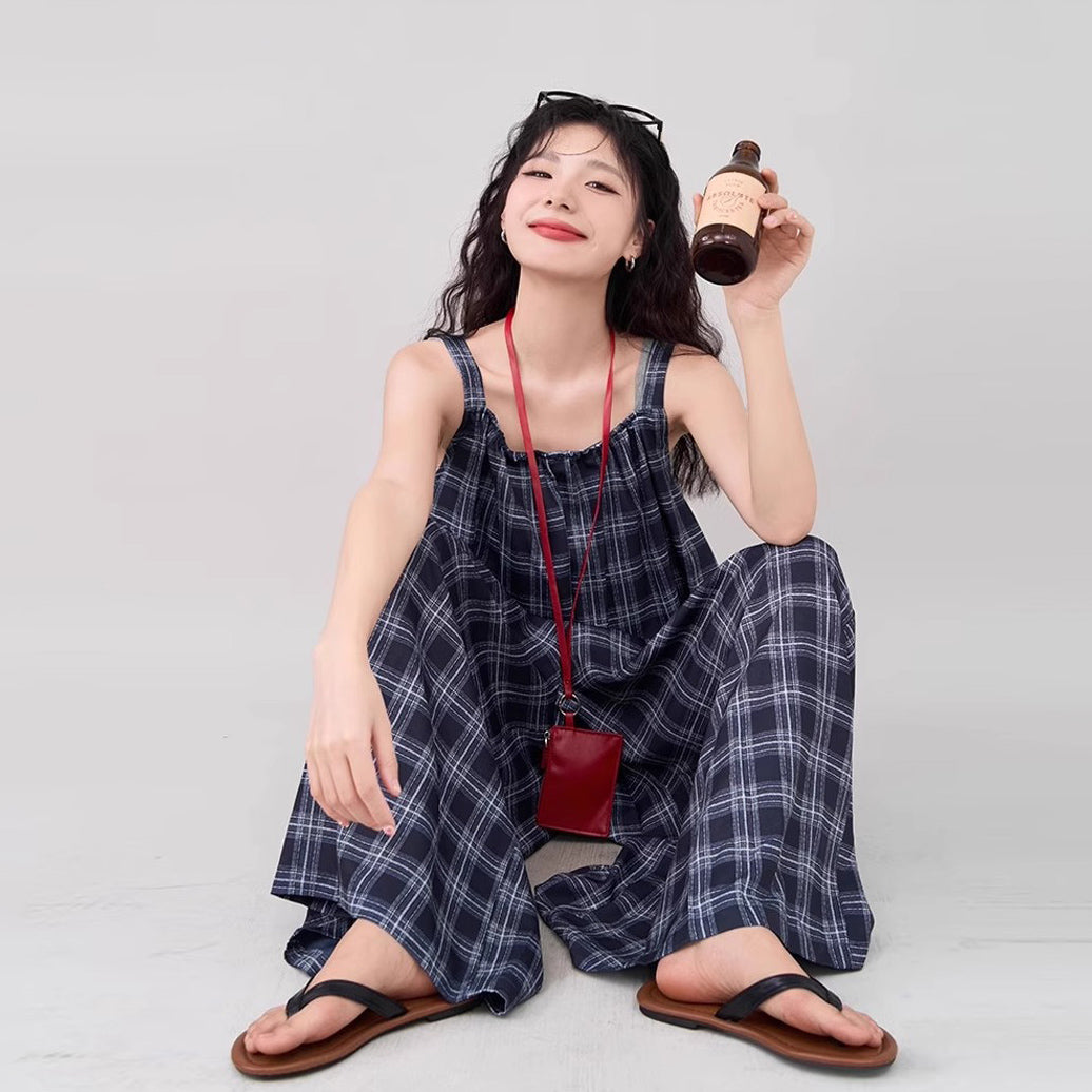 【ボトムス】インスタ風 夏新作 シックヴィンテージ チェック 超ゆったりカジュアル オールインワン【SHシリーズ】