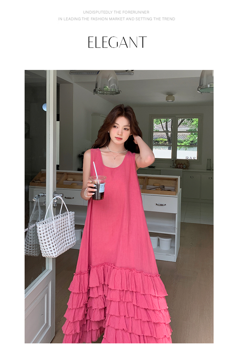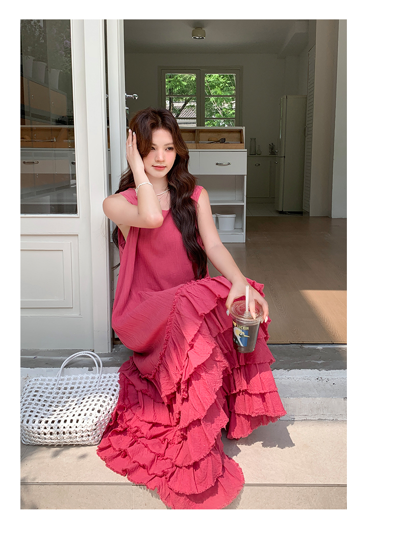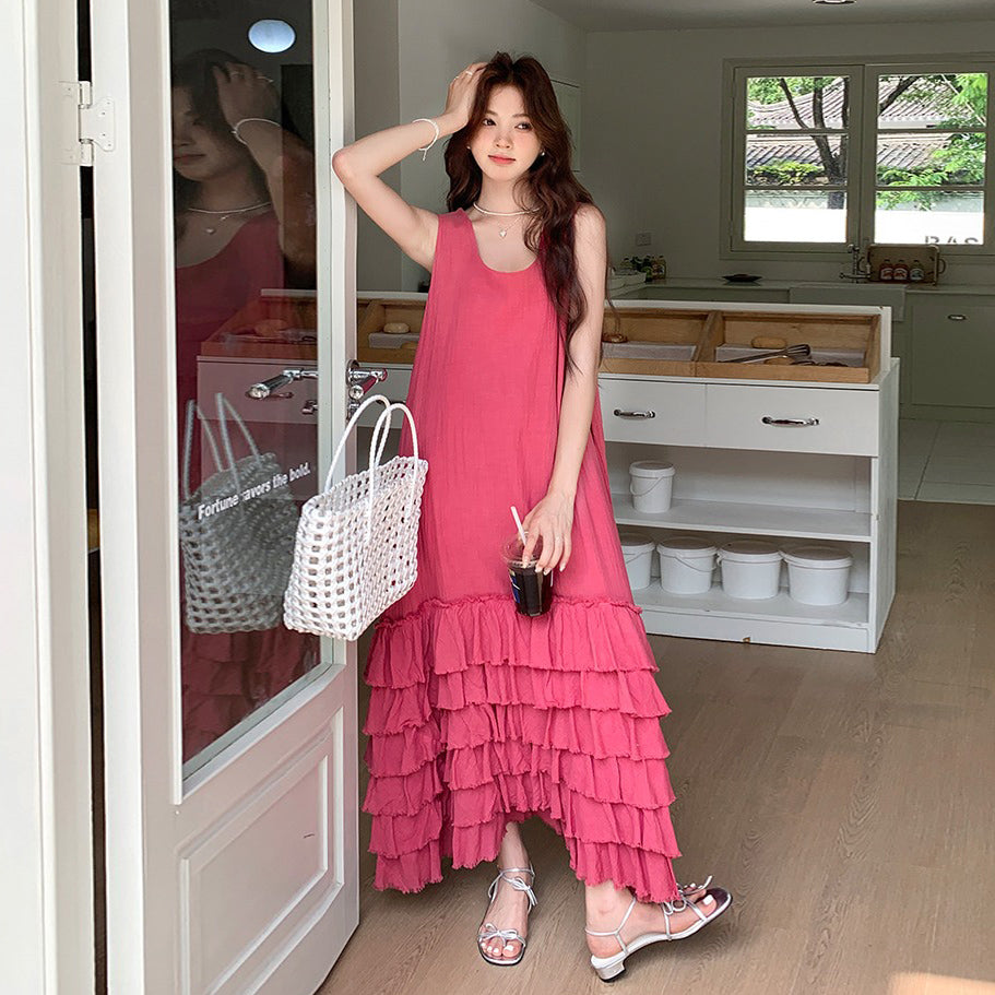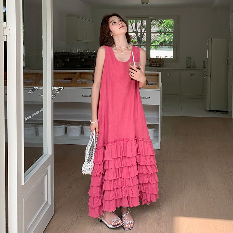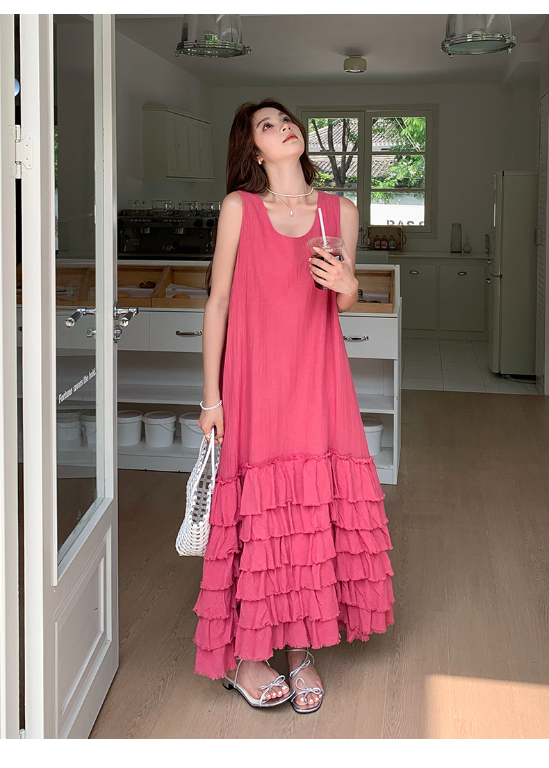 【ワンピース】夏 韓国系 気質 ケーキスカート フィリピンピンク ノースリーブ ワンピース