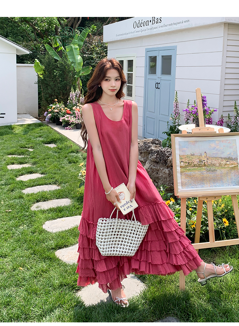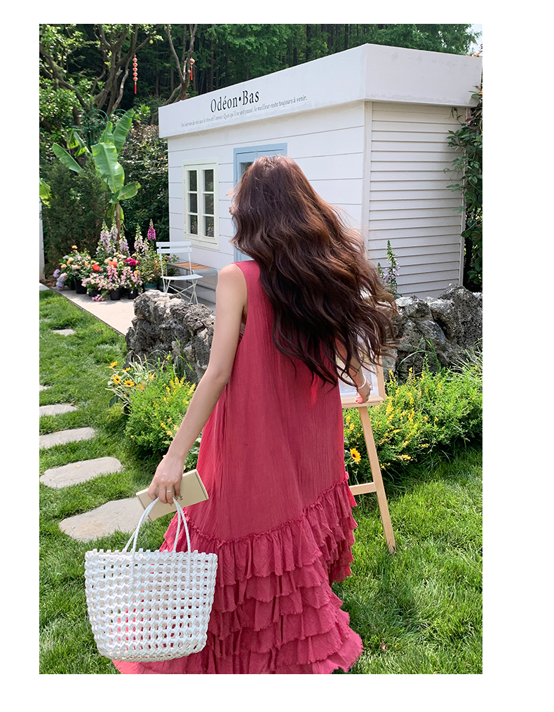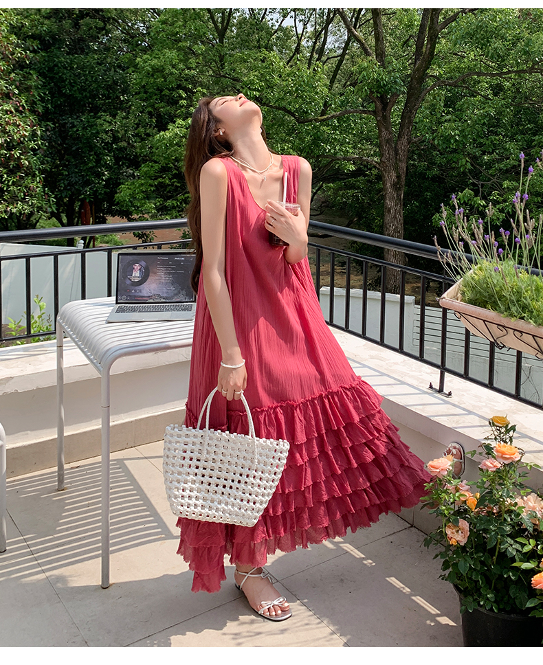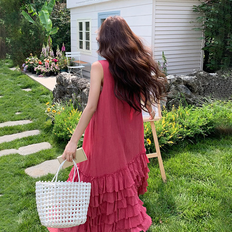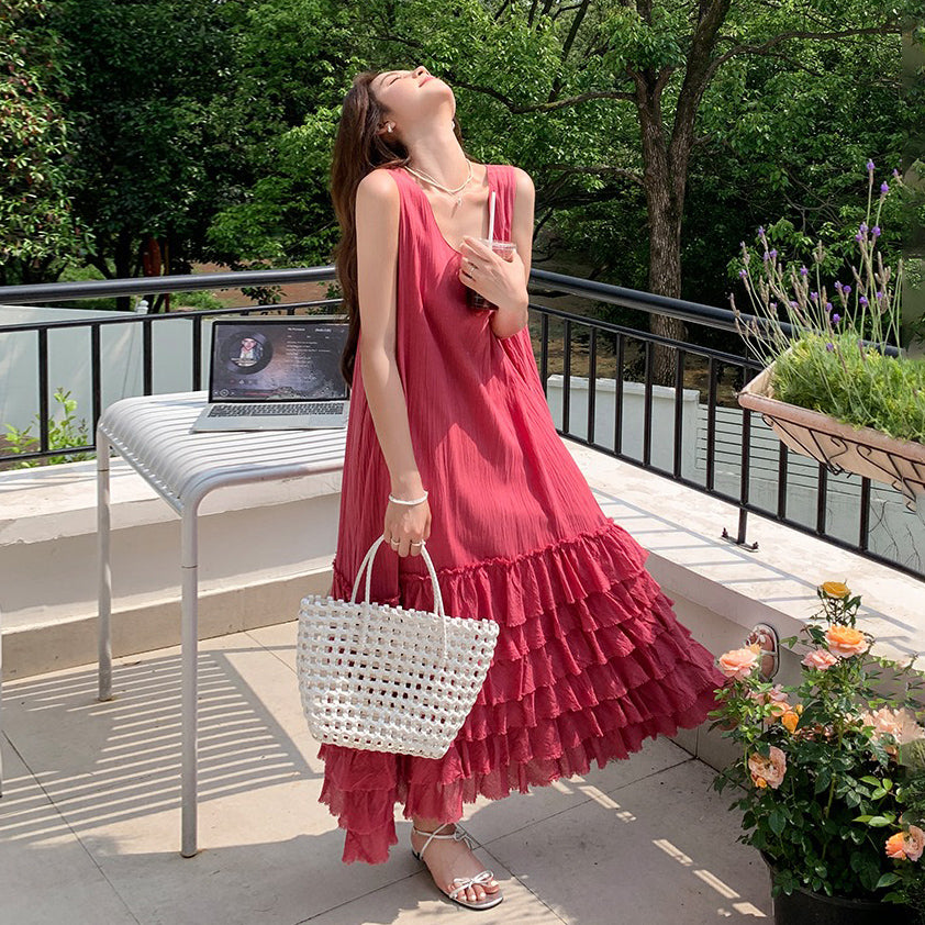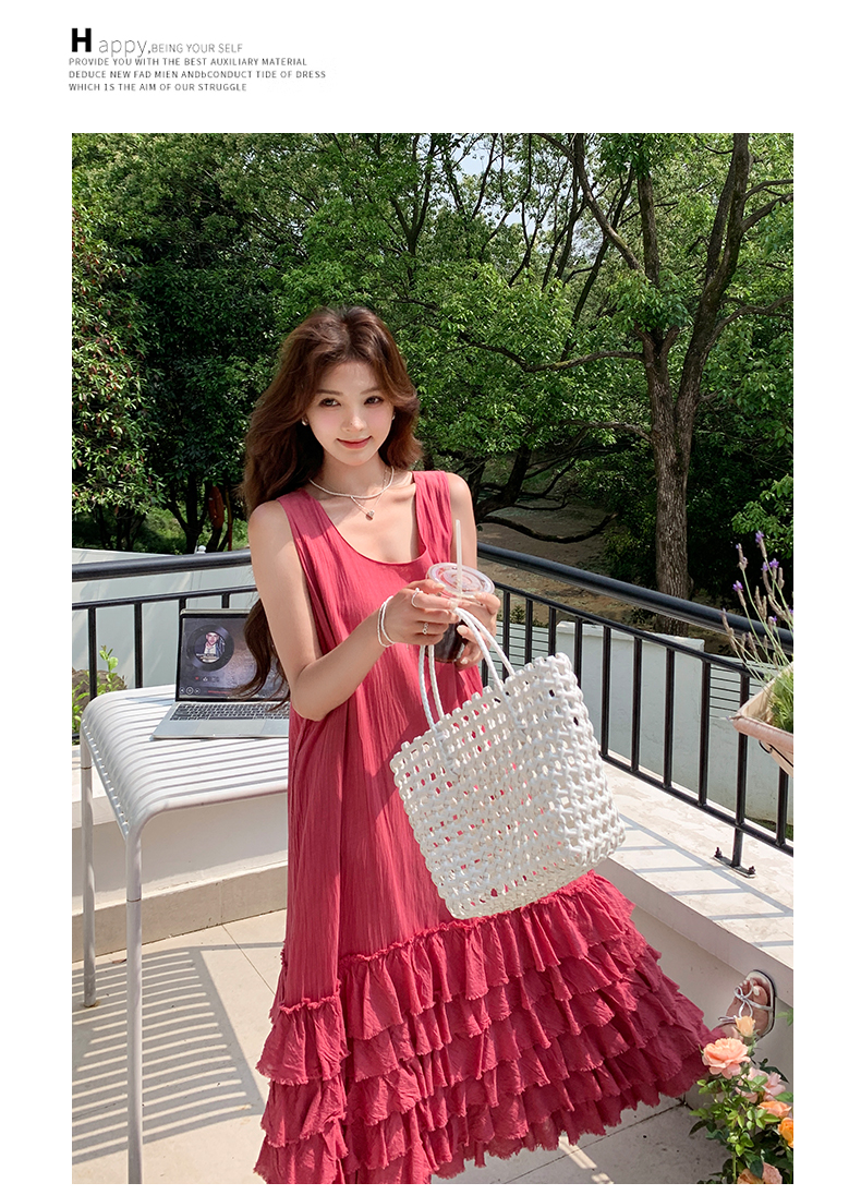 【ワンピース】夏 韓国系 気質 ケーキスカート フィリピンピンク ノースリーブ ワンピース