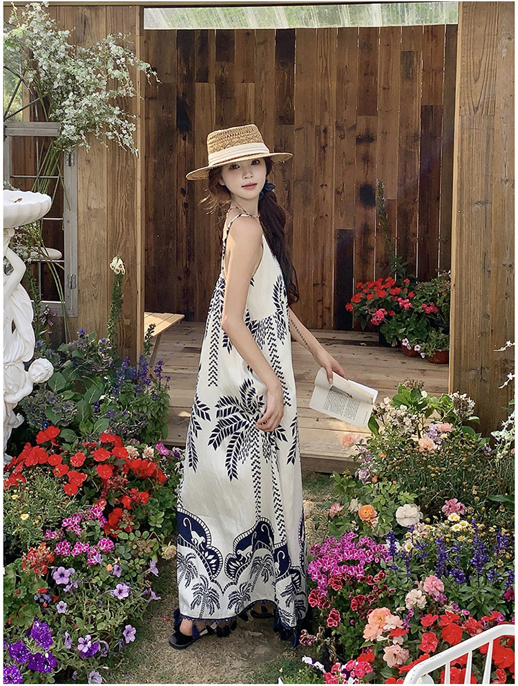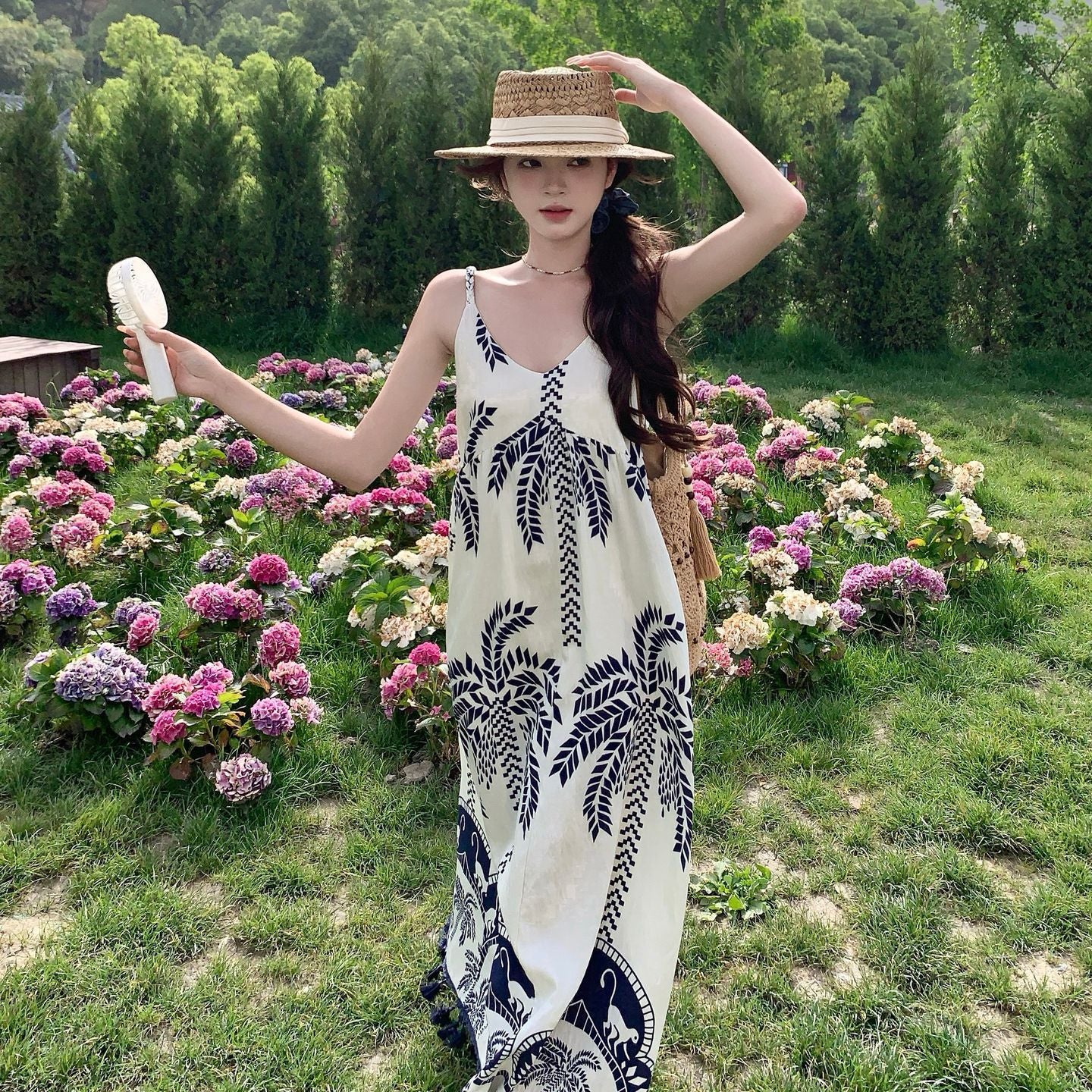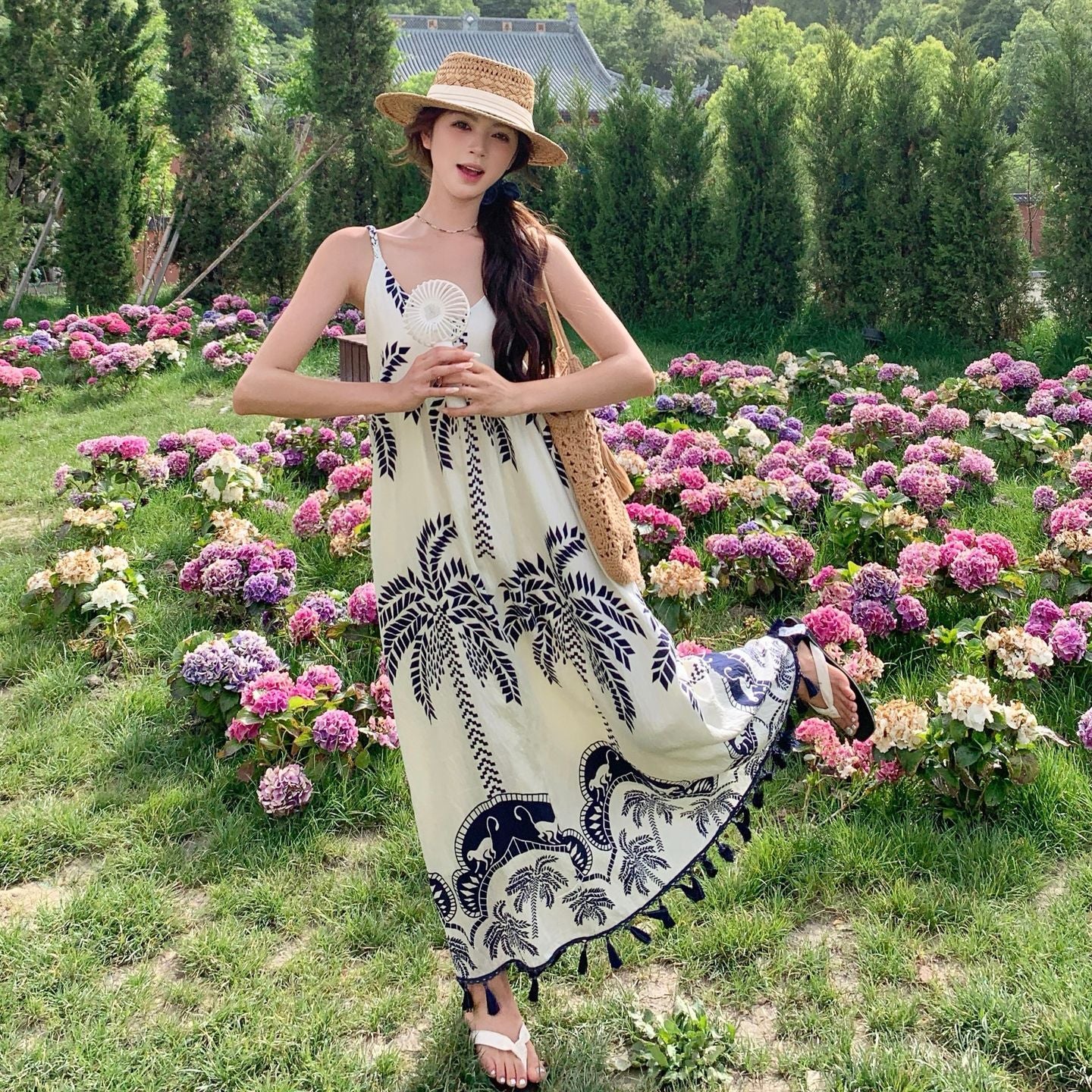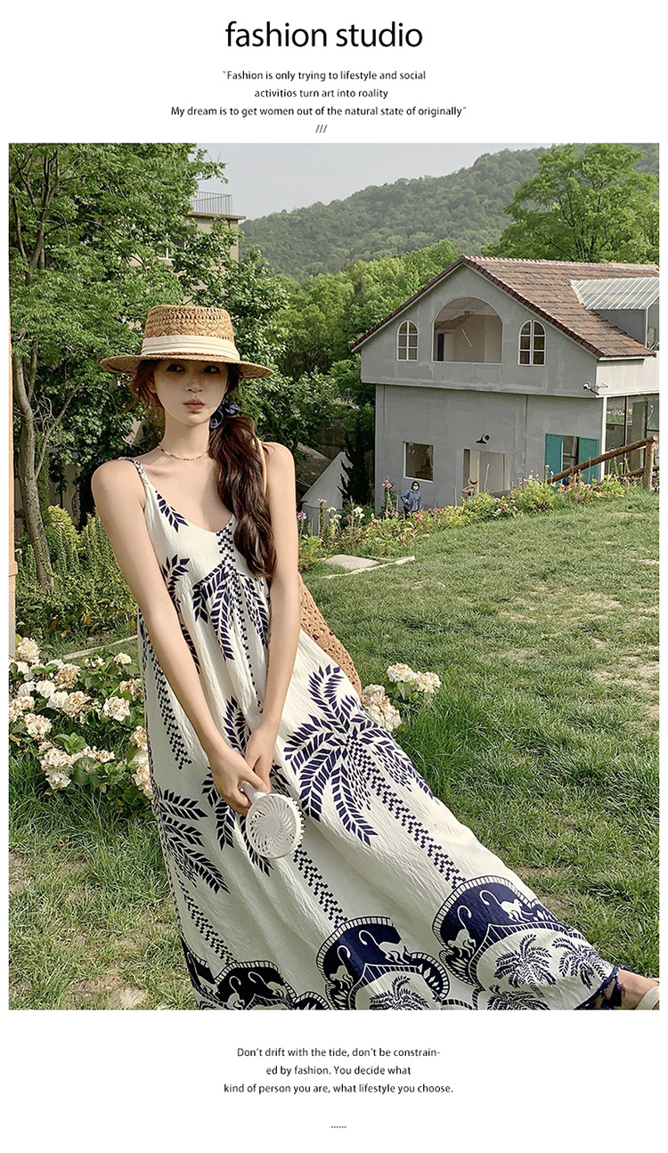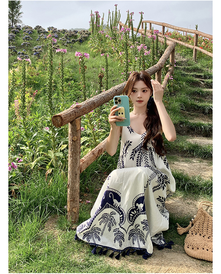 【商品名】【ワンピース】ボヘミアン 民族風 プリント バカンス Vネック ノースリーブワンピース【SHシリーズ】