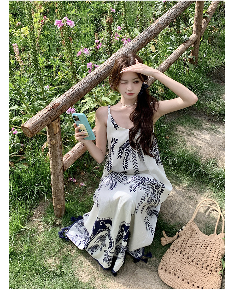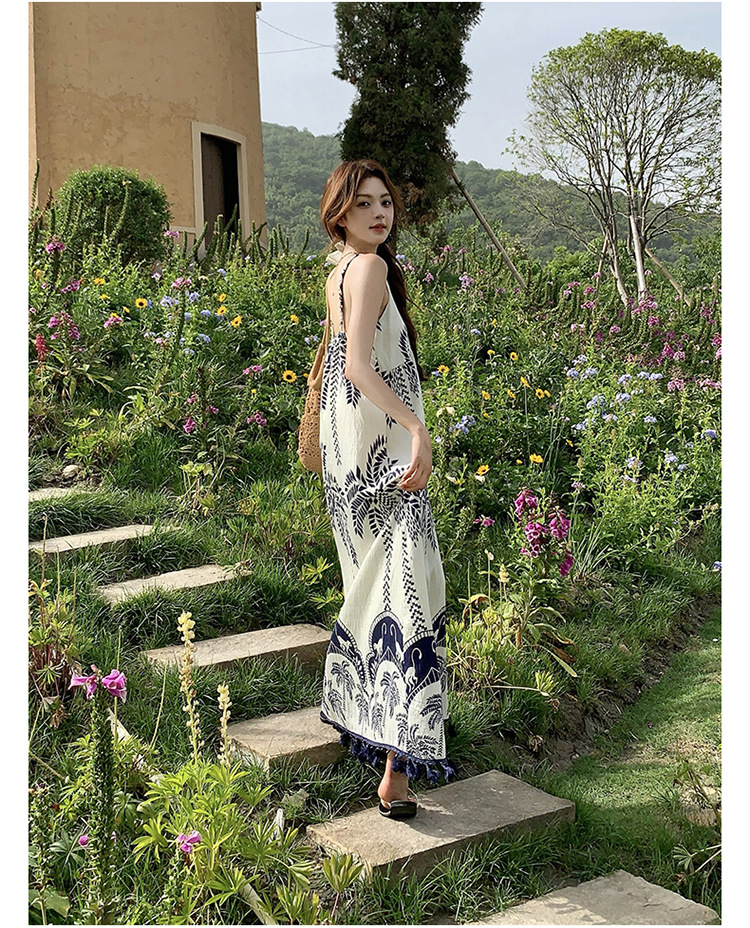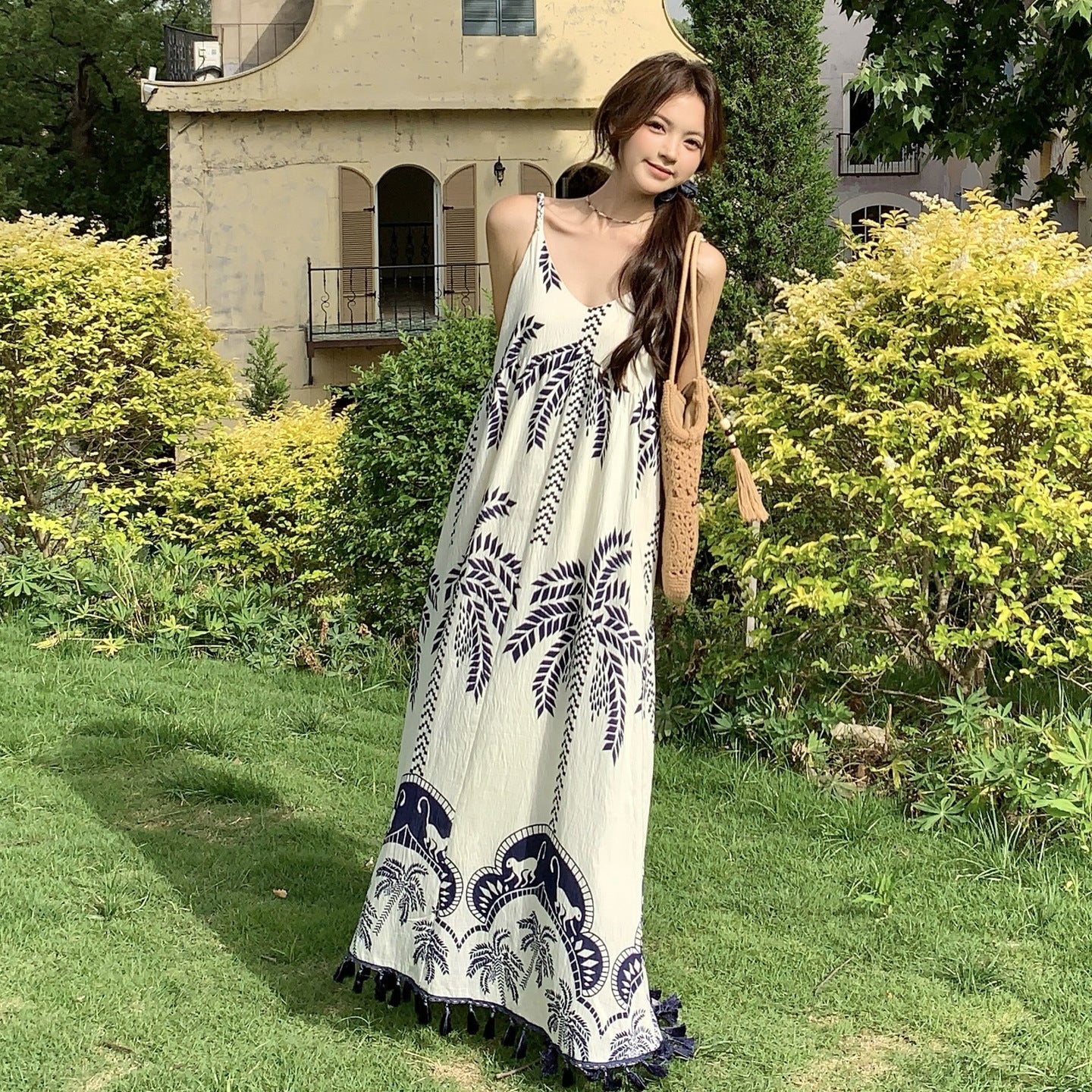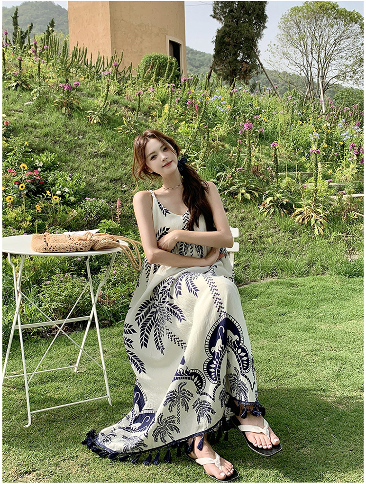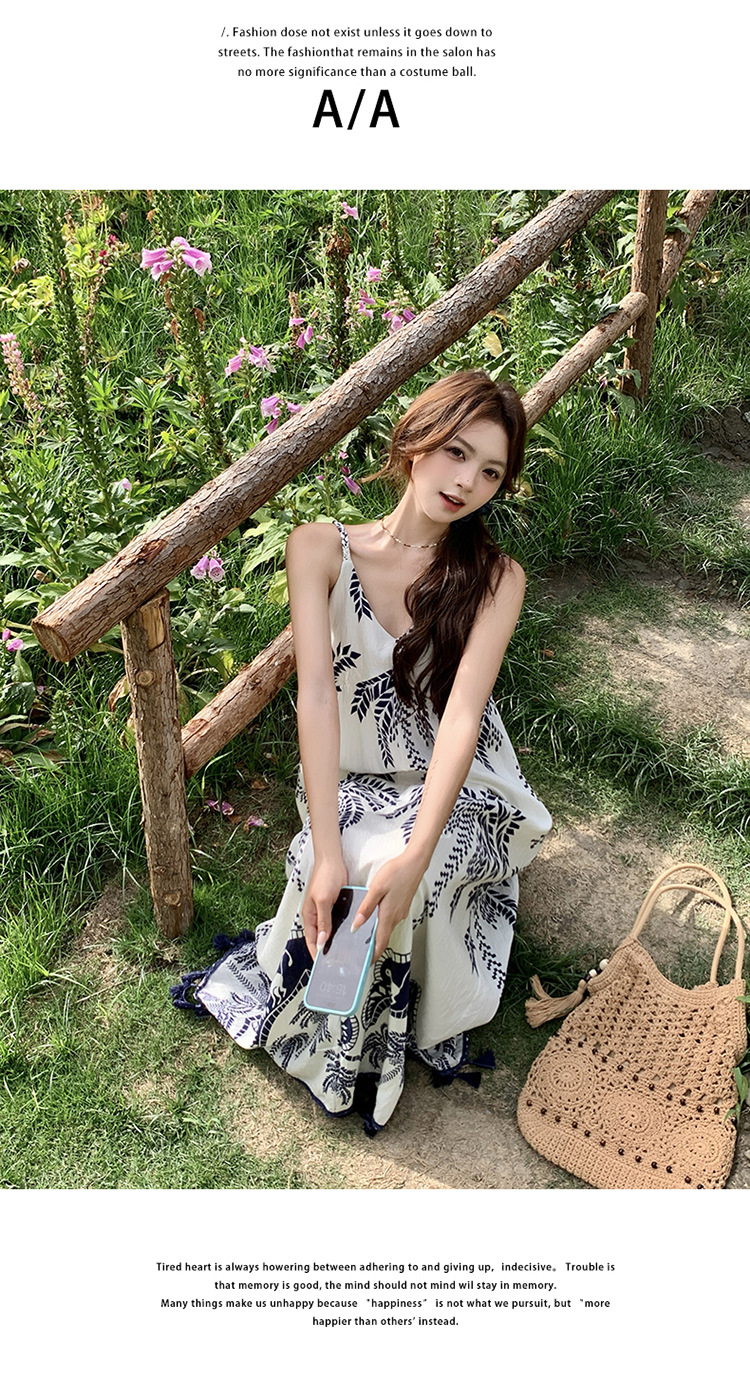 【商品名】【ワンピース】ボヘミアン 民族風 プリント バカンス Vネック ノースリーブワンピース【SHシリーズ】