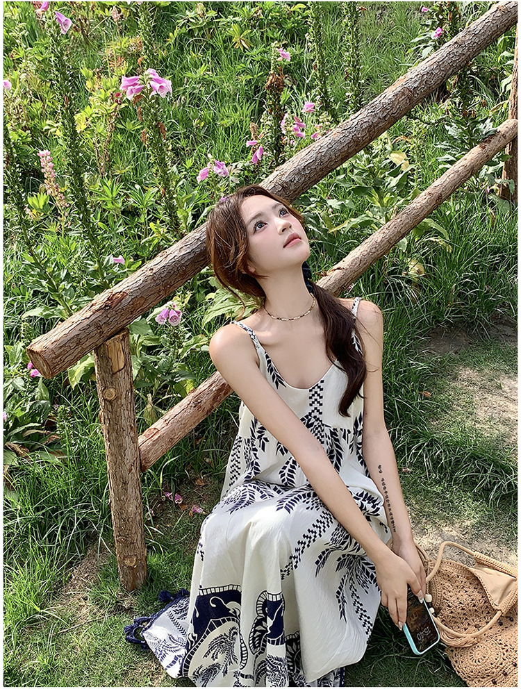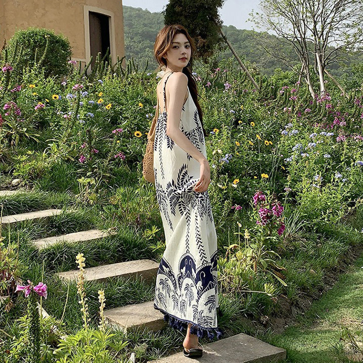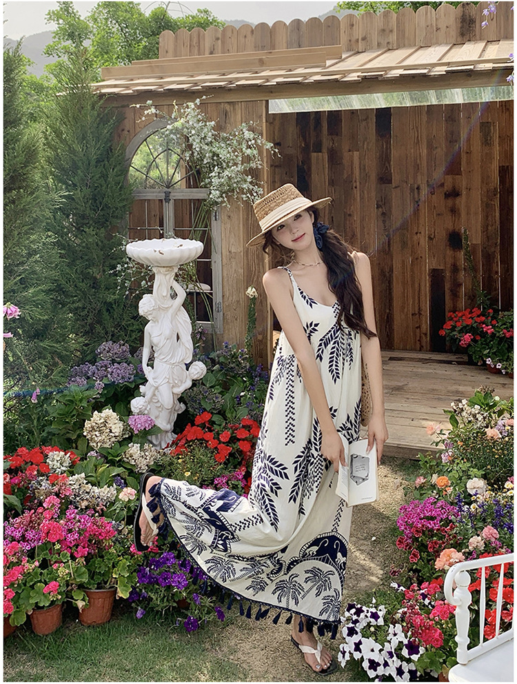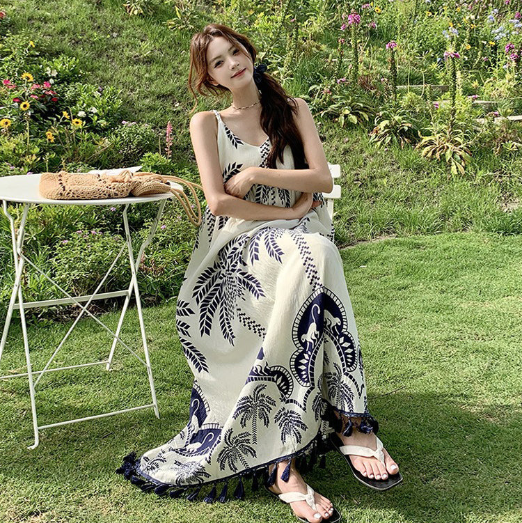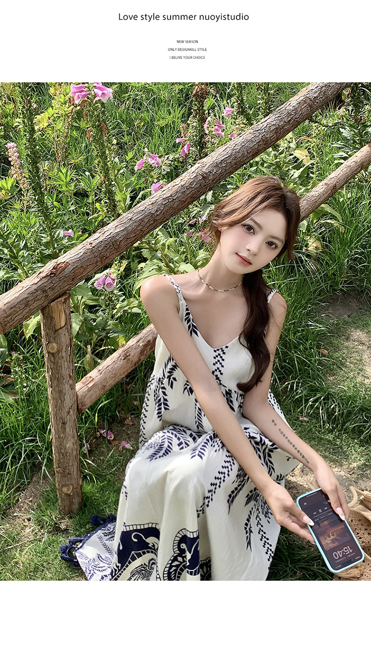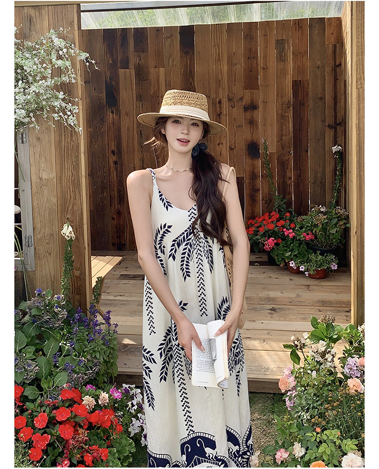 【商品名】【ワンピース】ボヘミアン 民族風 プリント バカンス Vネック ノースリーブワンピース【SHシリーズ】