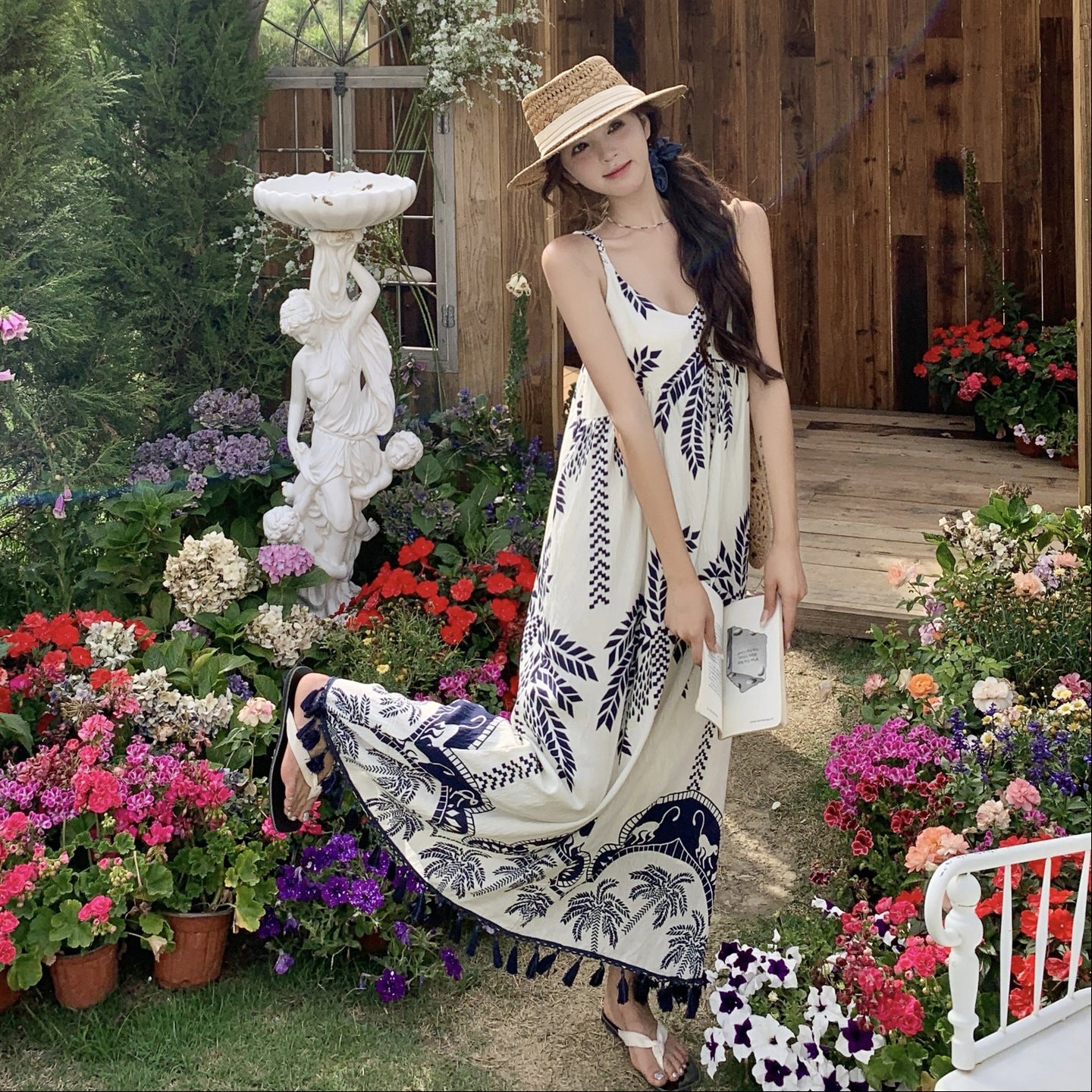 【ワンピース】ボヘミアン 民族風 プリント バカンス Vネック ノースリーブワンピース【SHシリーズ】