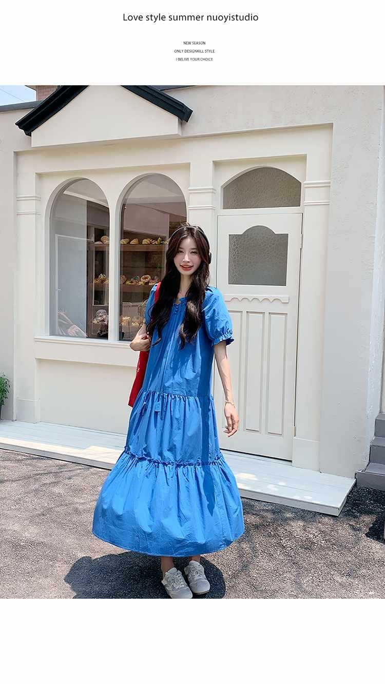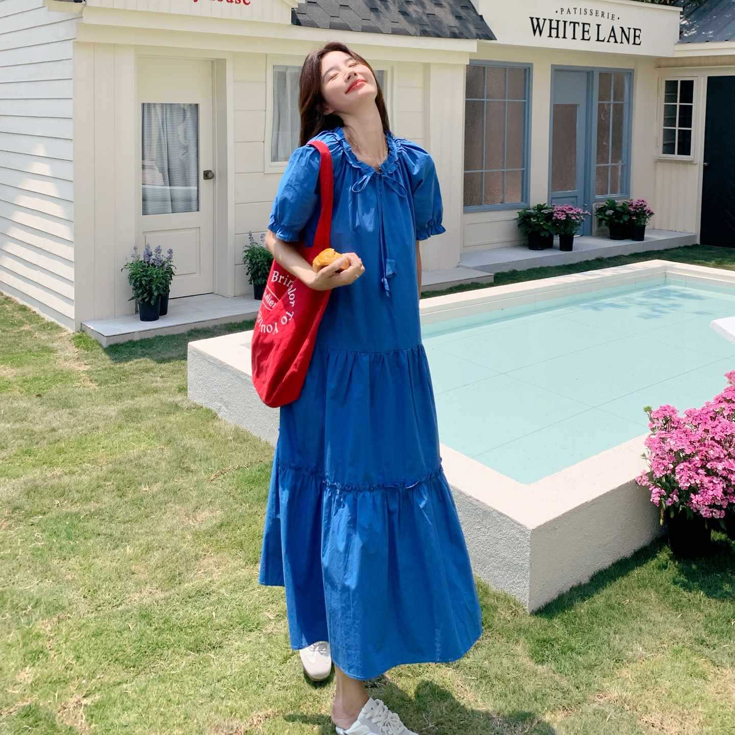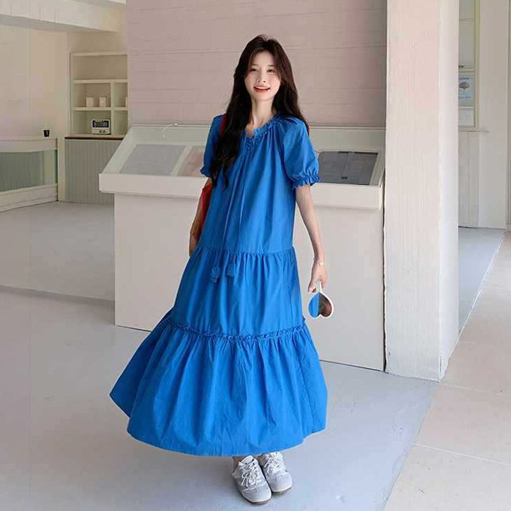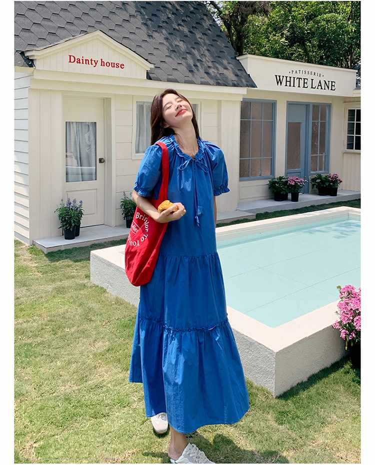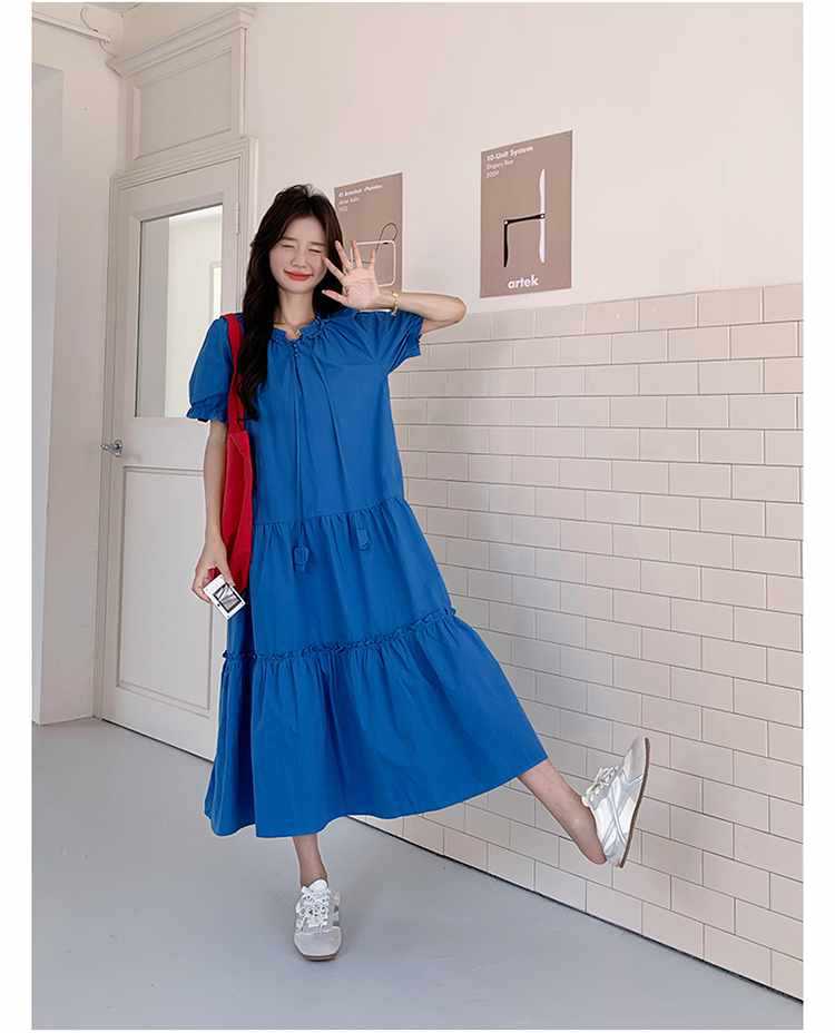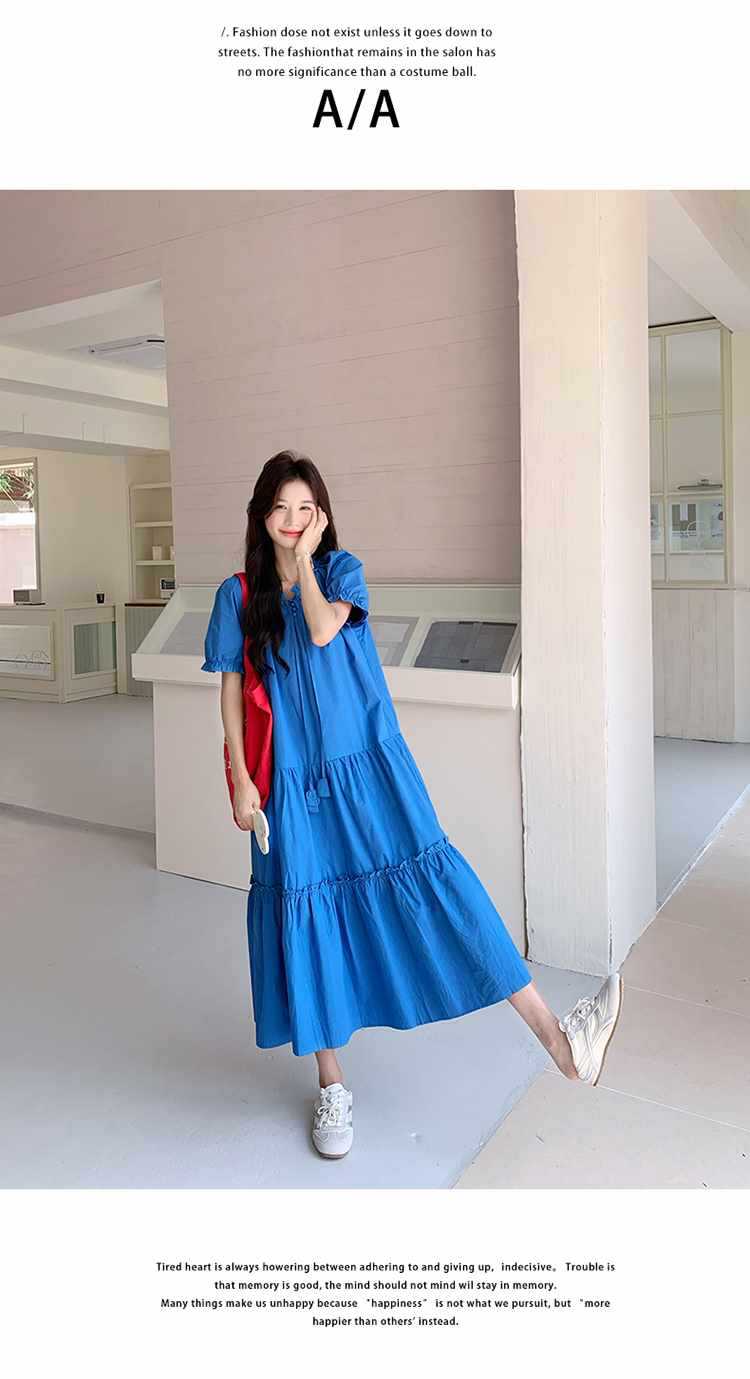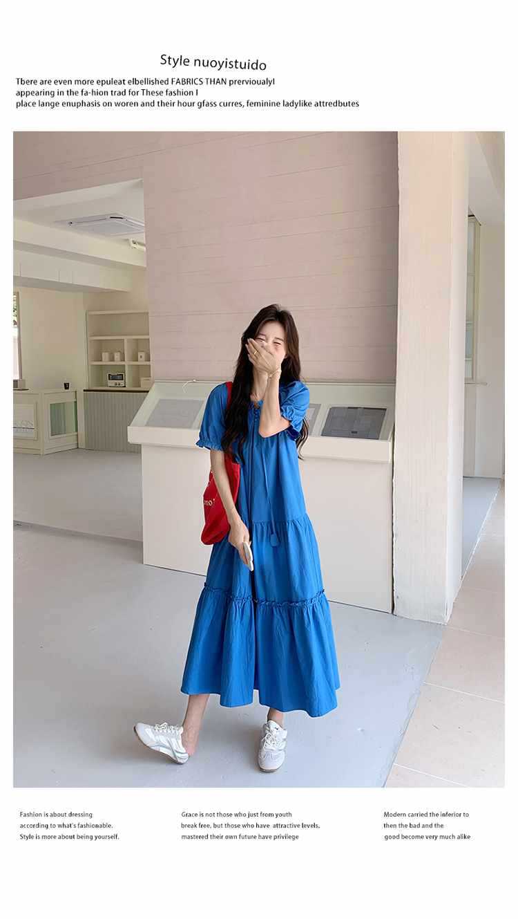 【ワンピース】高級感 パフスリーブ 夏 韓国風 ゆったり 細見え 半袖ワンピース