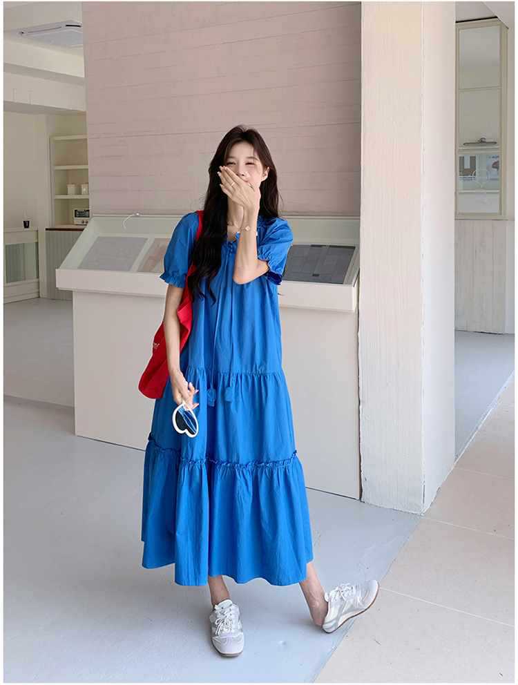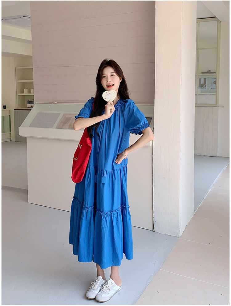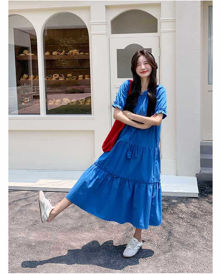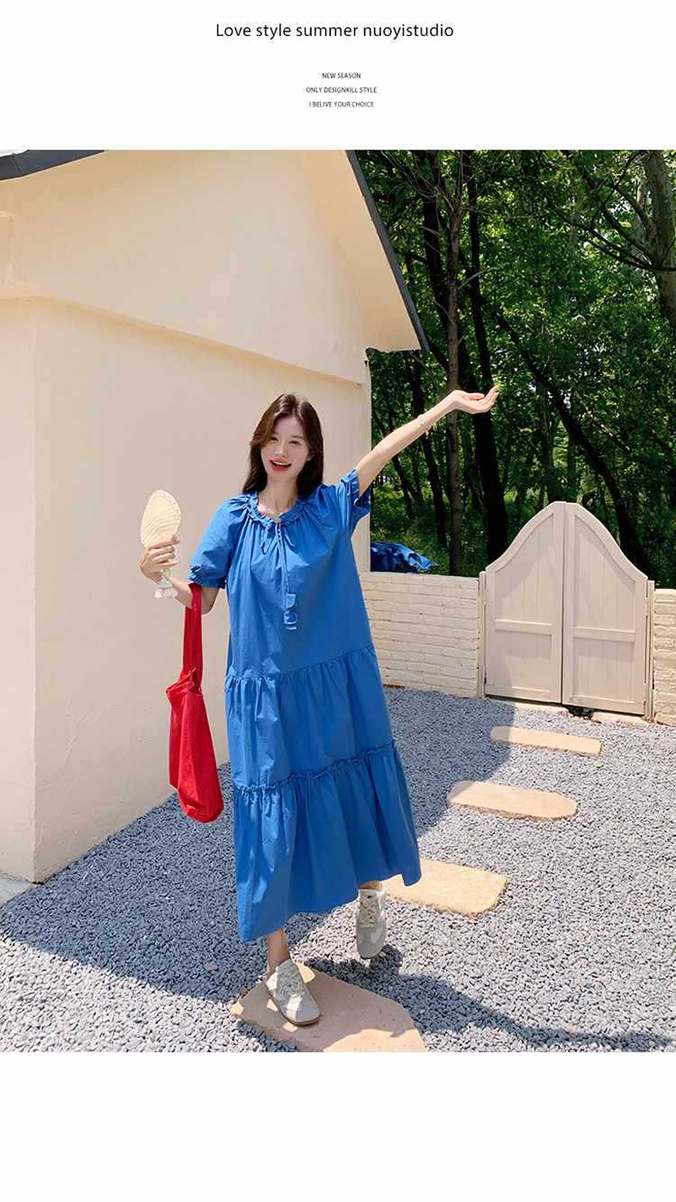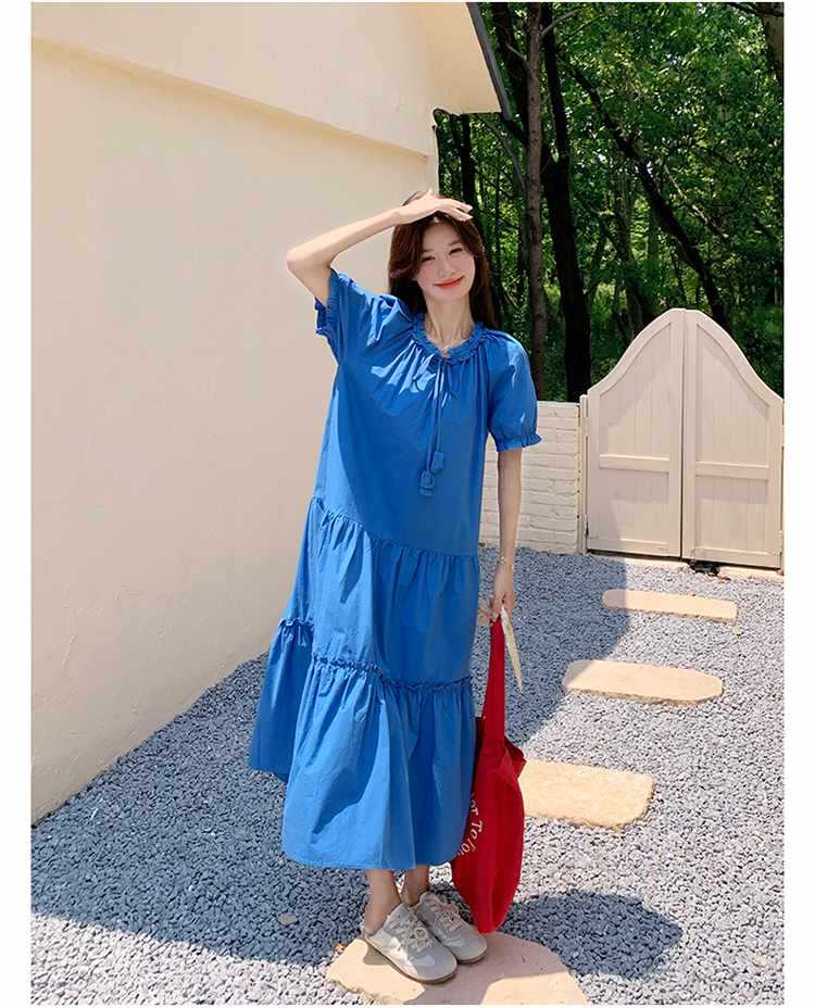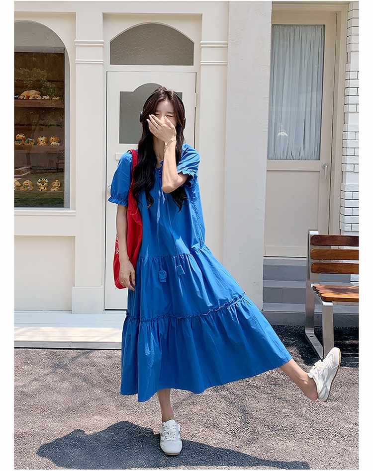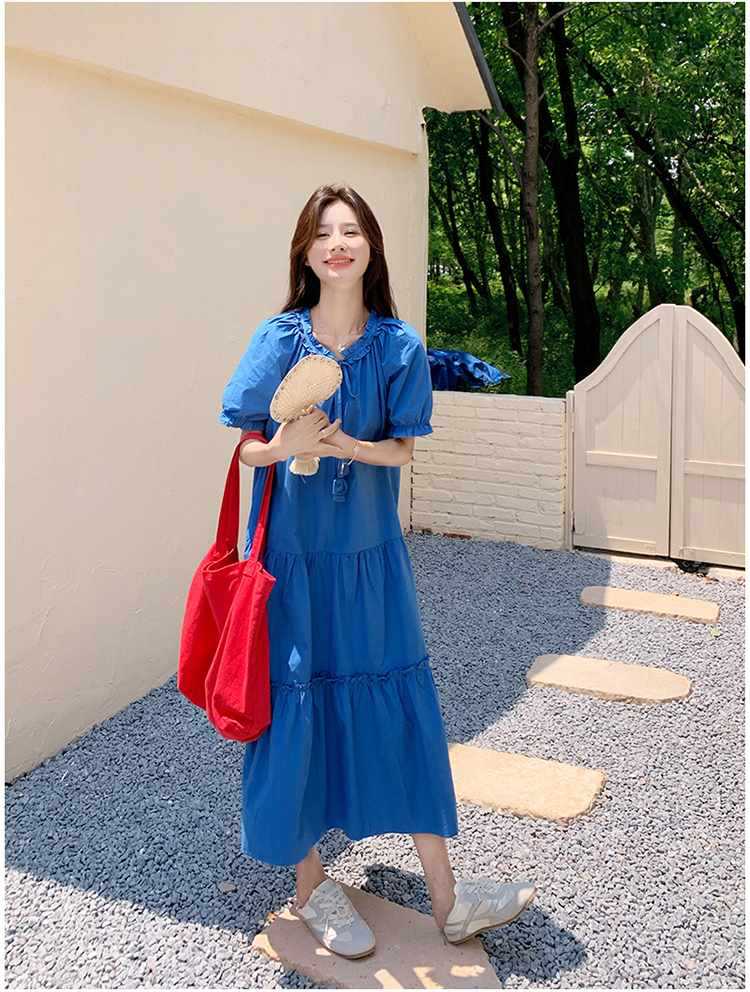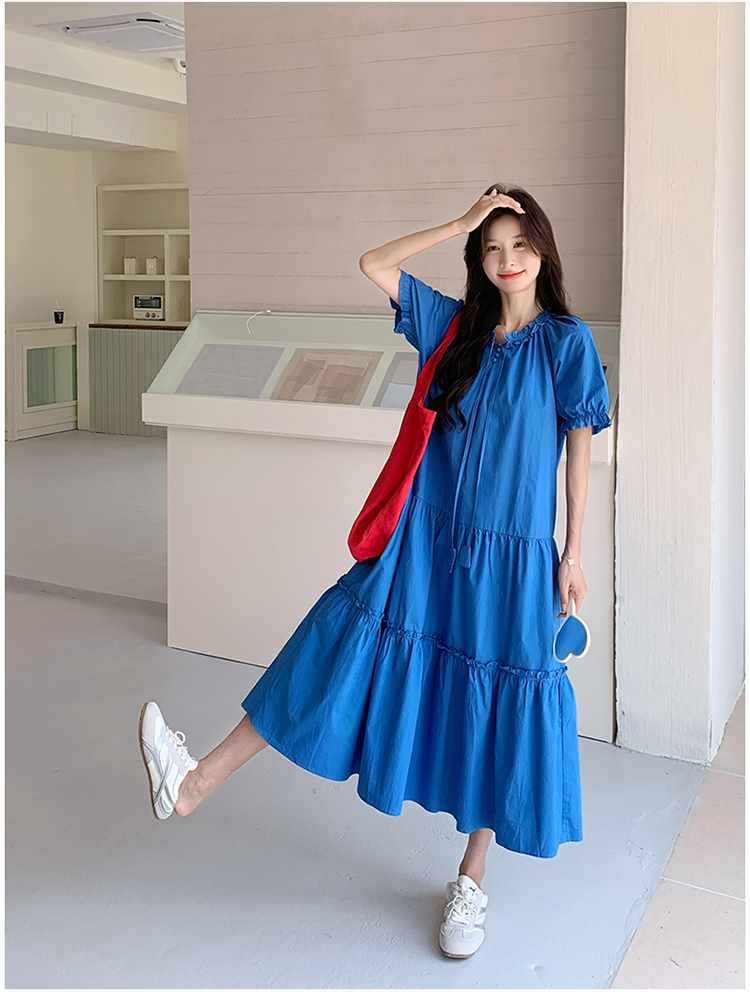 【ワンピース】高級感 パフスリーブ 夏 韓国風 ゆったり 細見え 半袖ワンピース