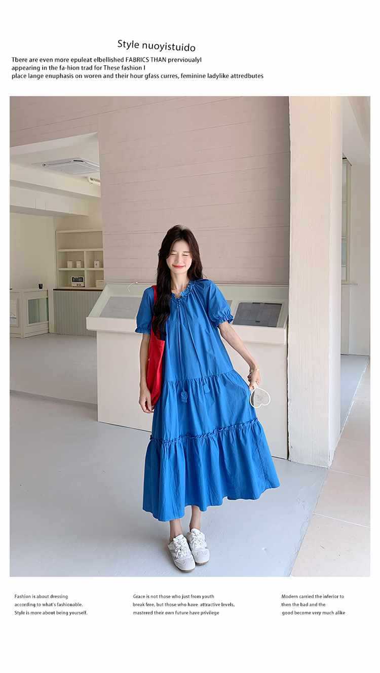 【商品名】【ワンピース】高級感 パフスリーブ 夏 韓国風 ゆったり 細見え 半袖ワンピース