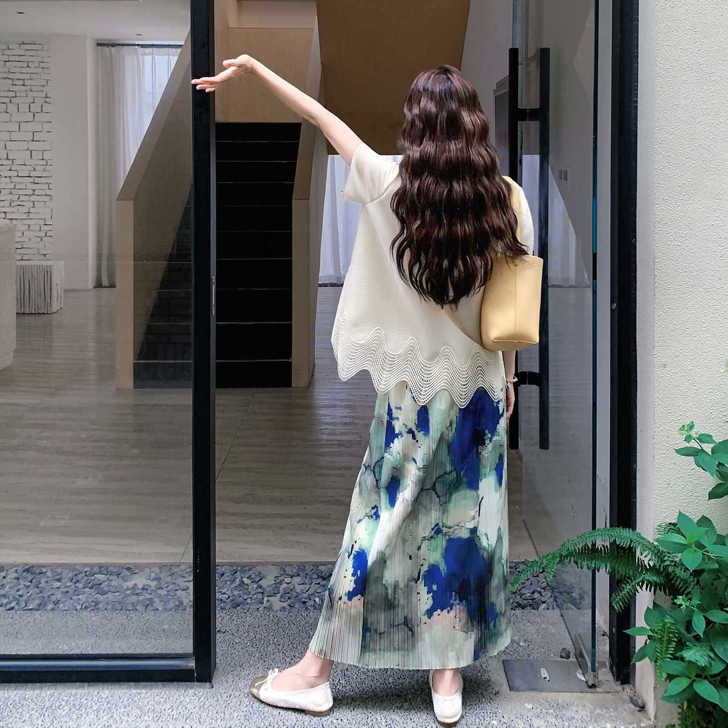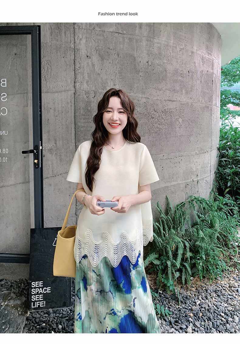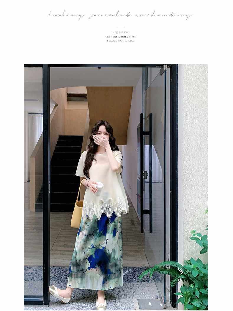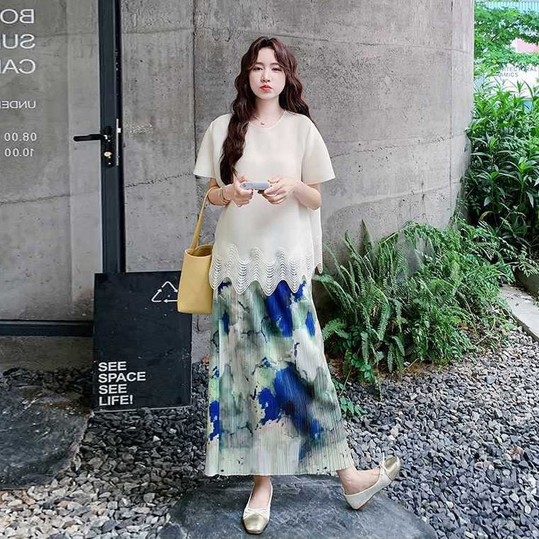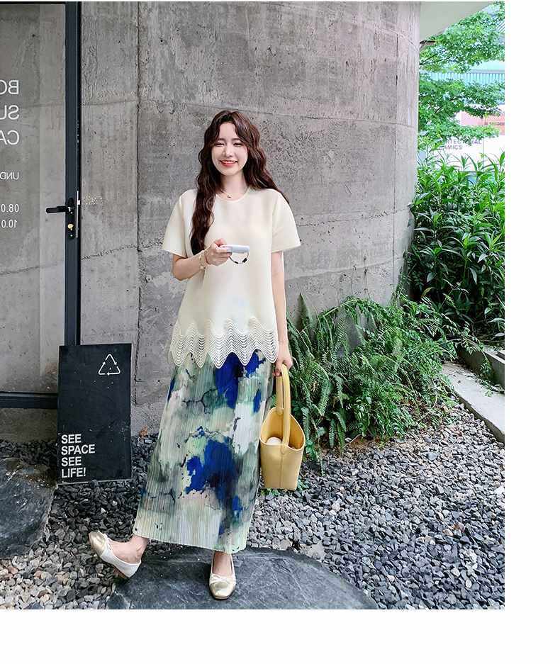 2点セット!【セットアップ】夏 体型カバー ゆったり トップス+プリーツ スカート 上下セット【SHシリーズ】