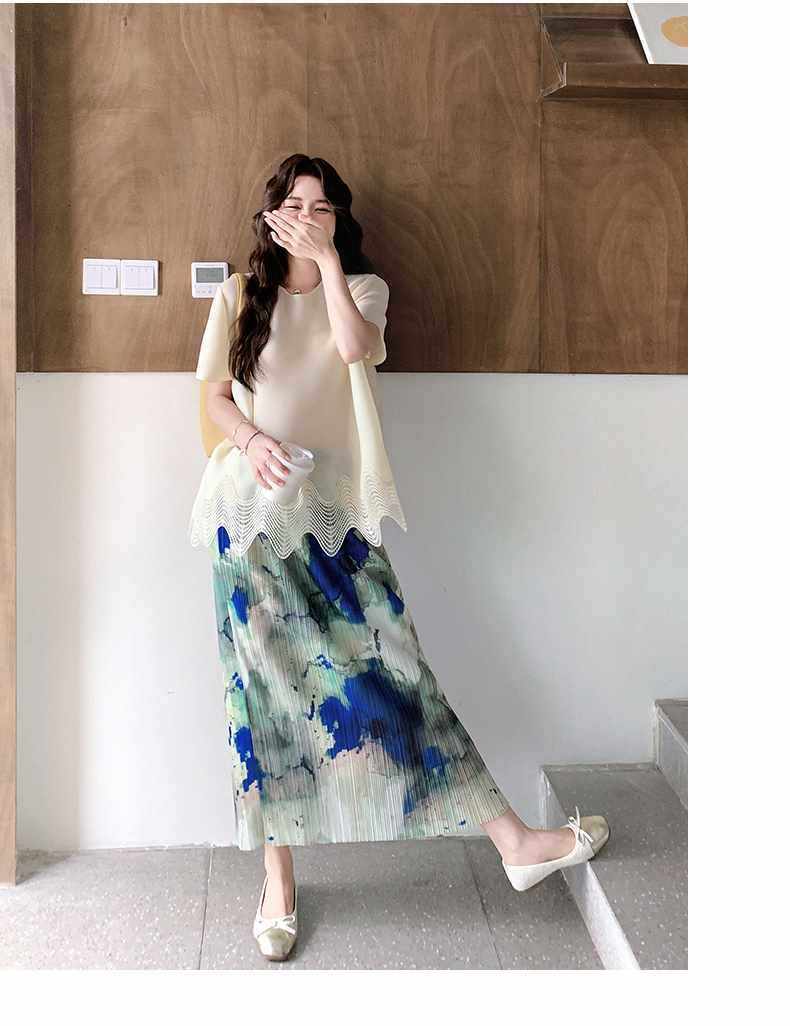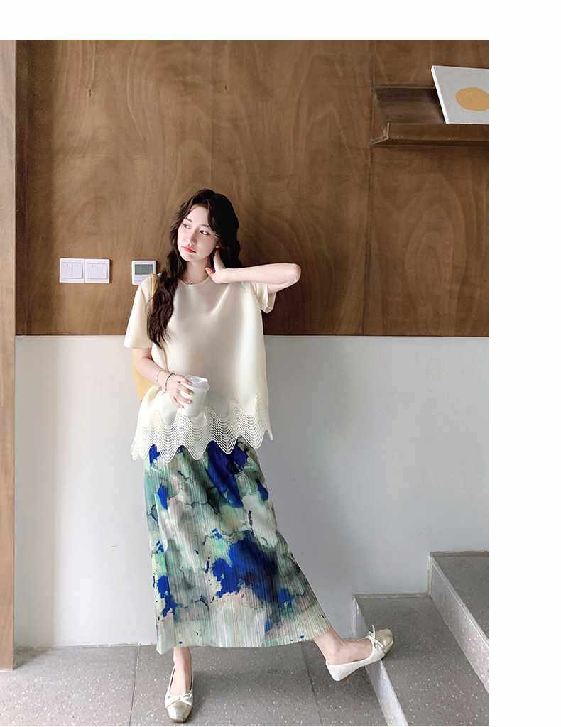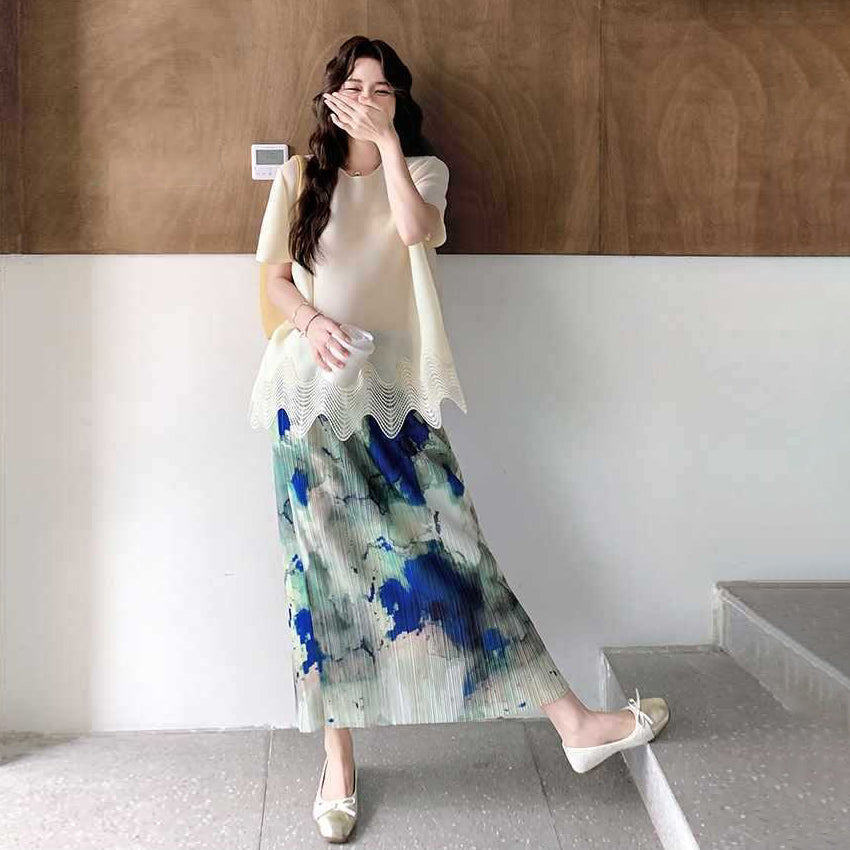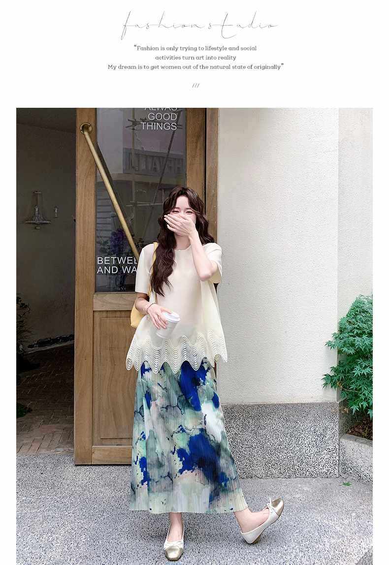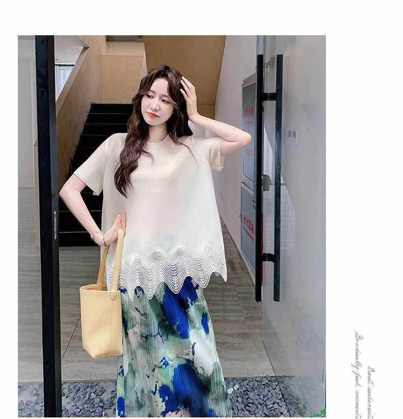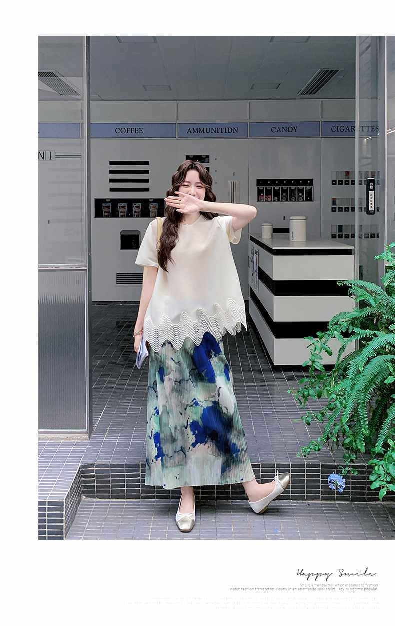 【商品名】2点セット!【ボトムス】夏 体型カバー ゆったり トップス+プリーツ スカート 上下セット【SHシリーズ】