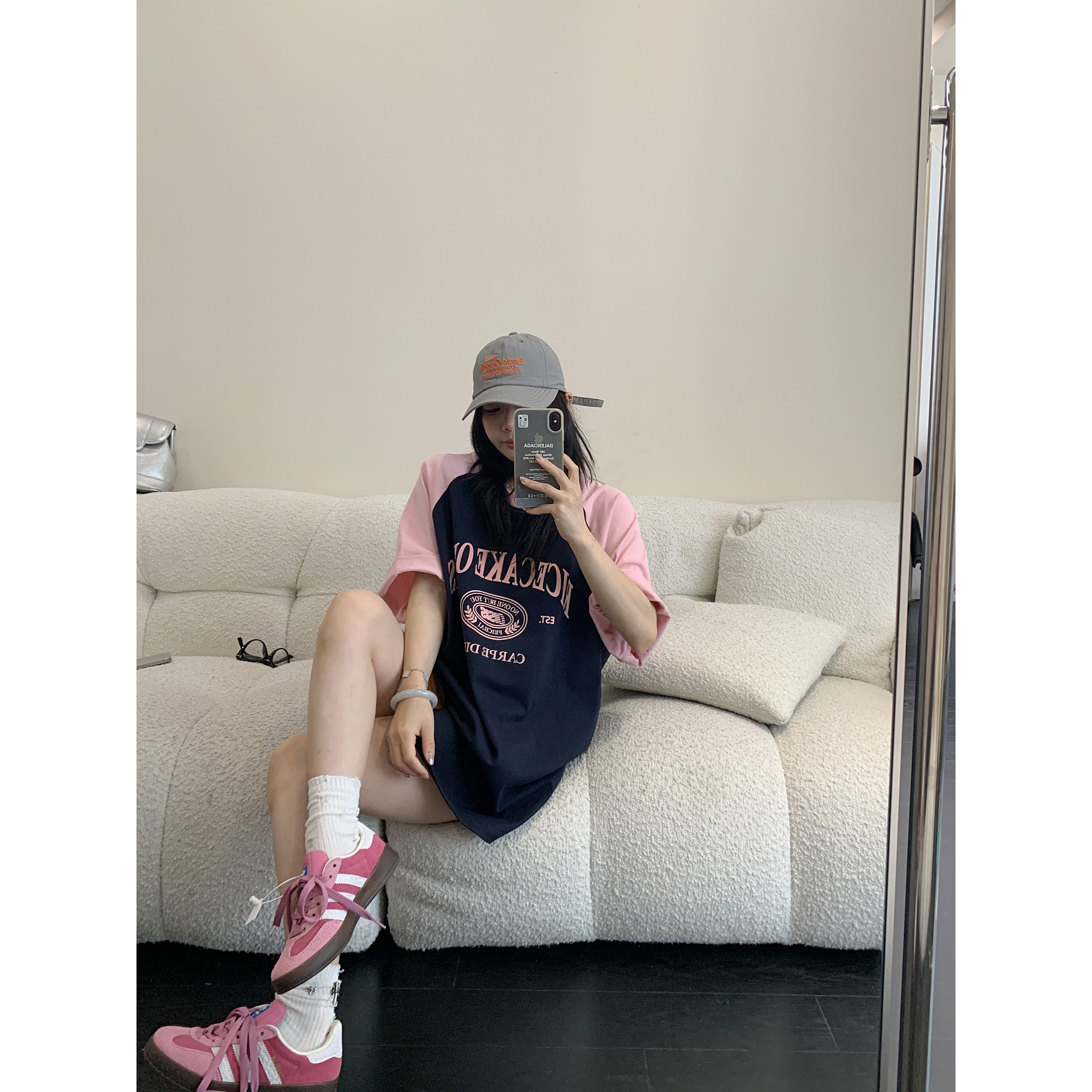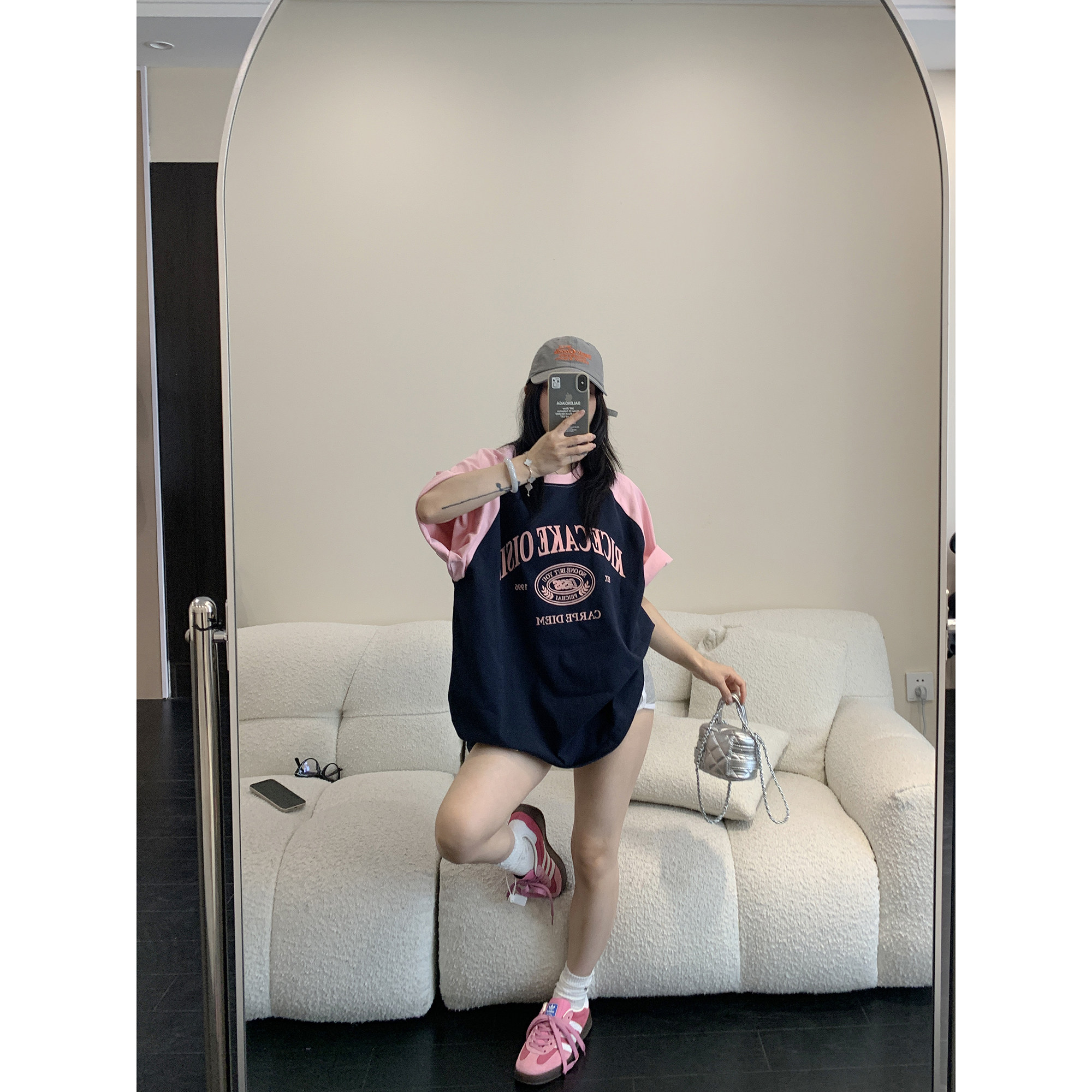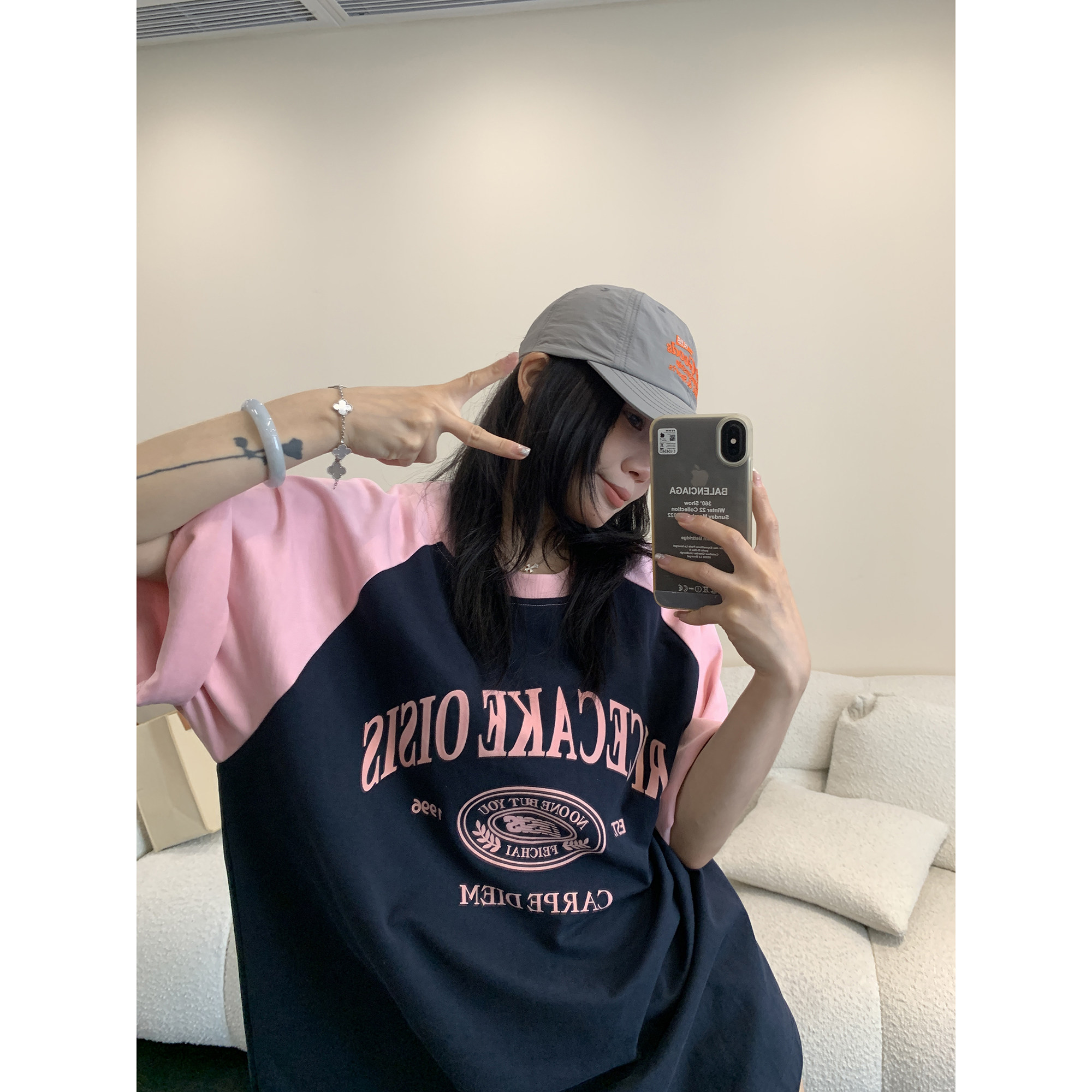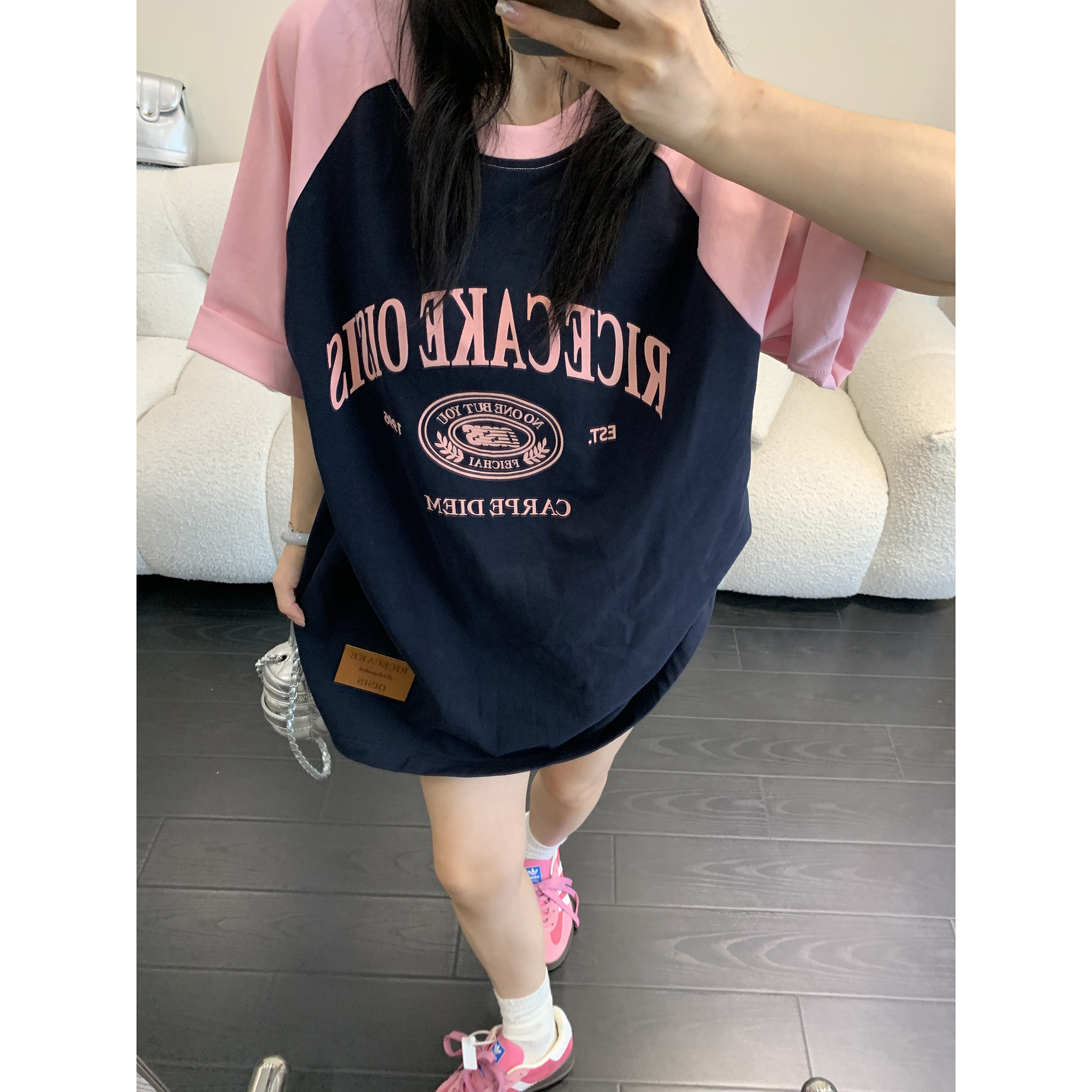 【トップス】【レトロ 切り替え プリント ルーズ Tシャツ 【FCシリーズ】