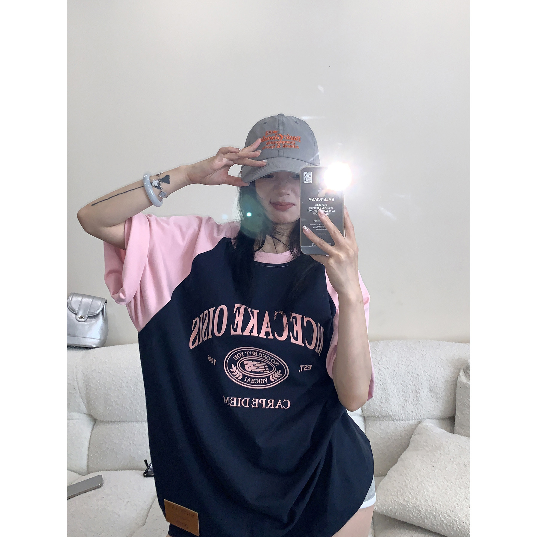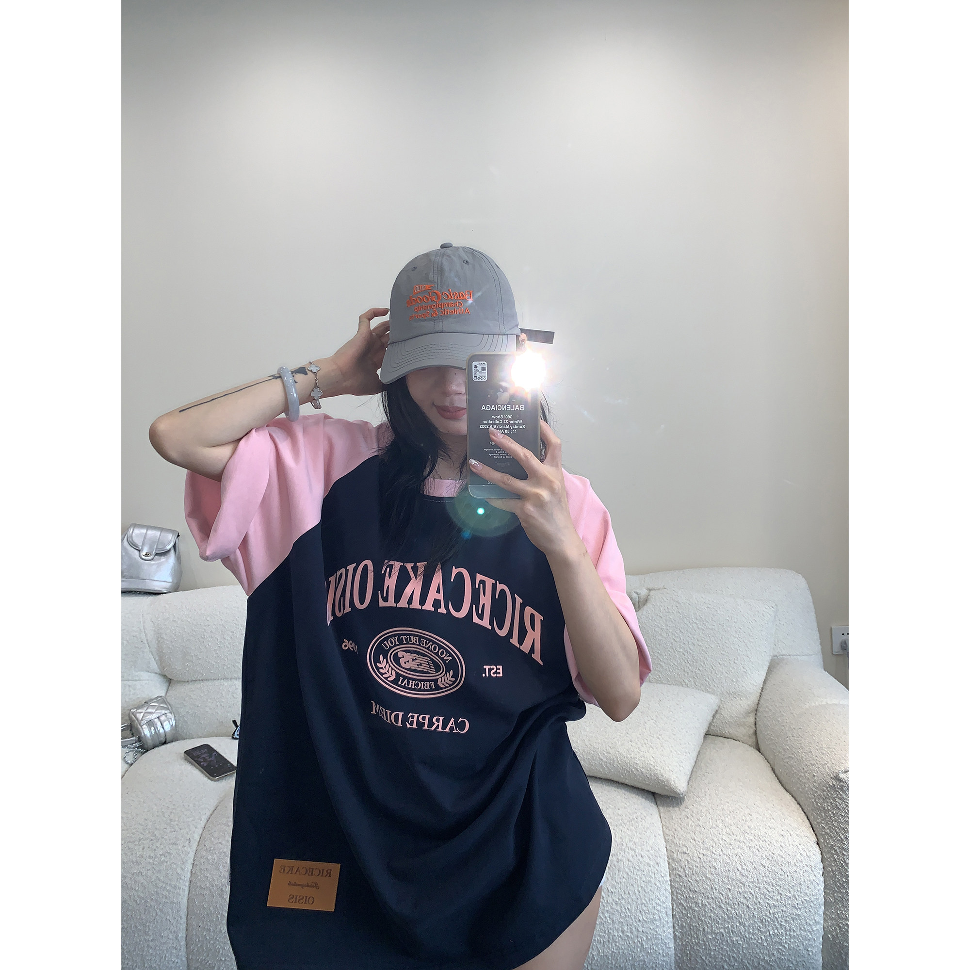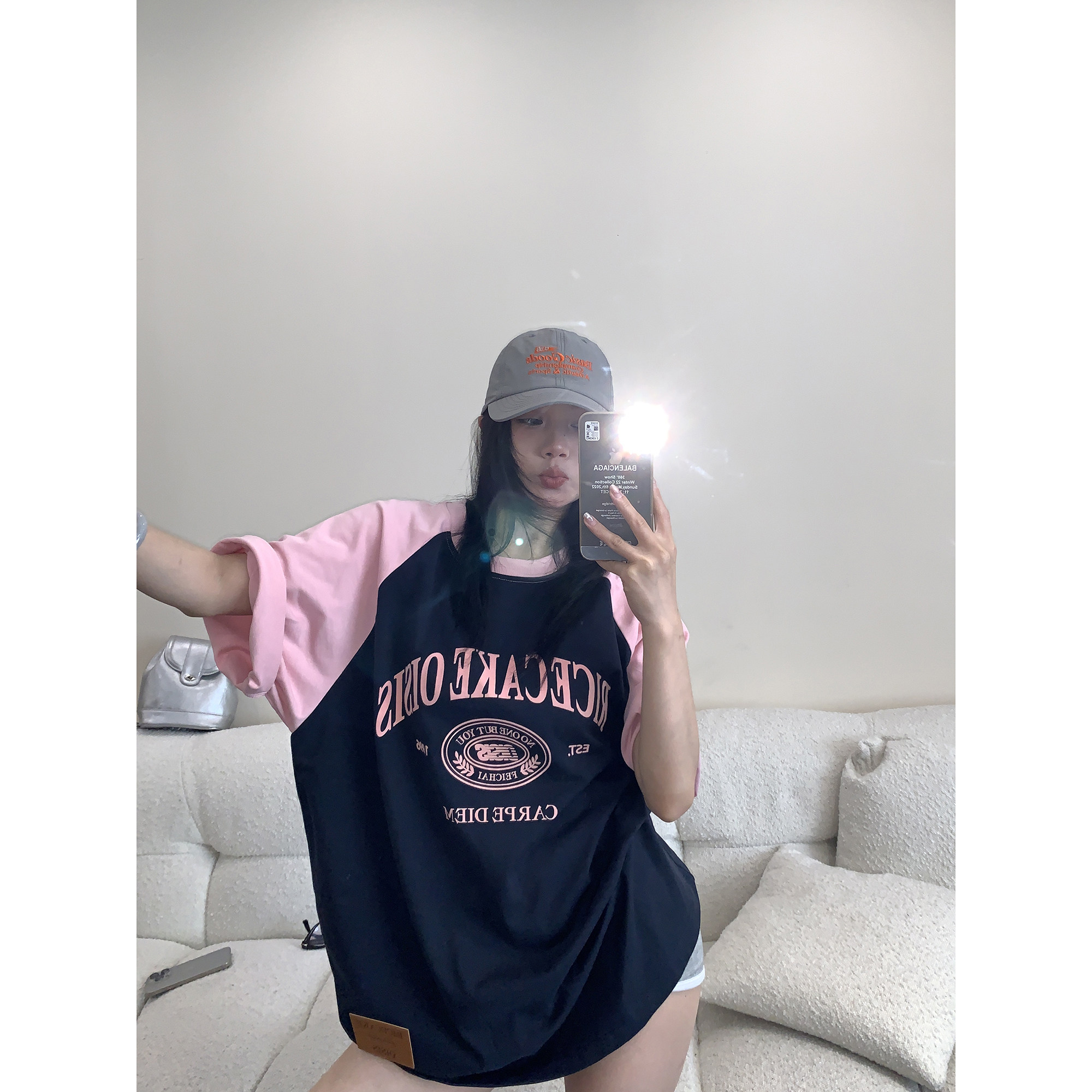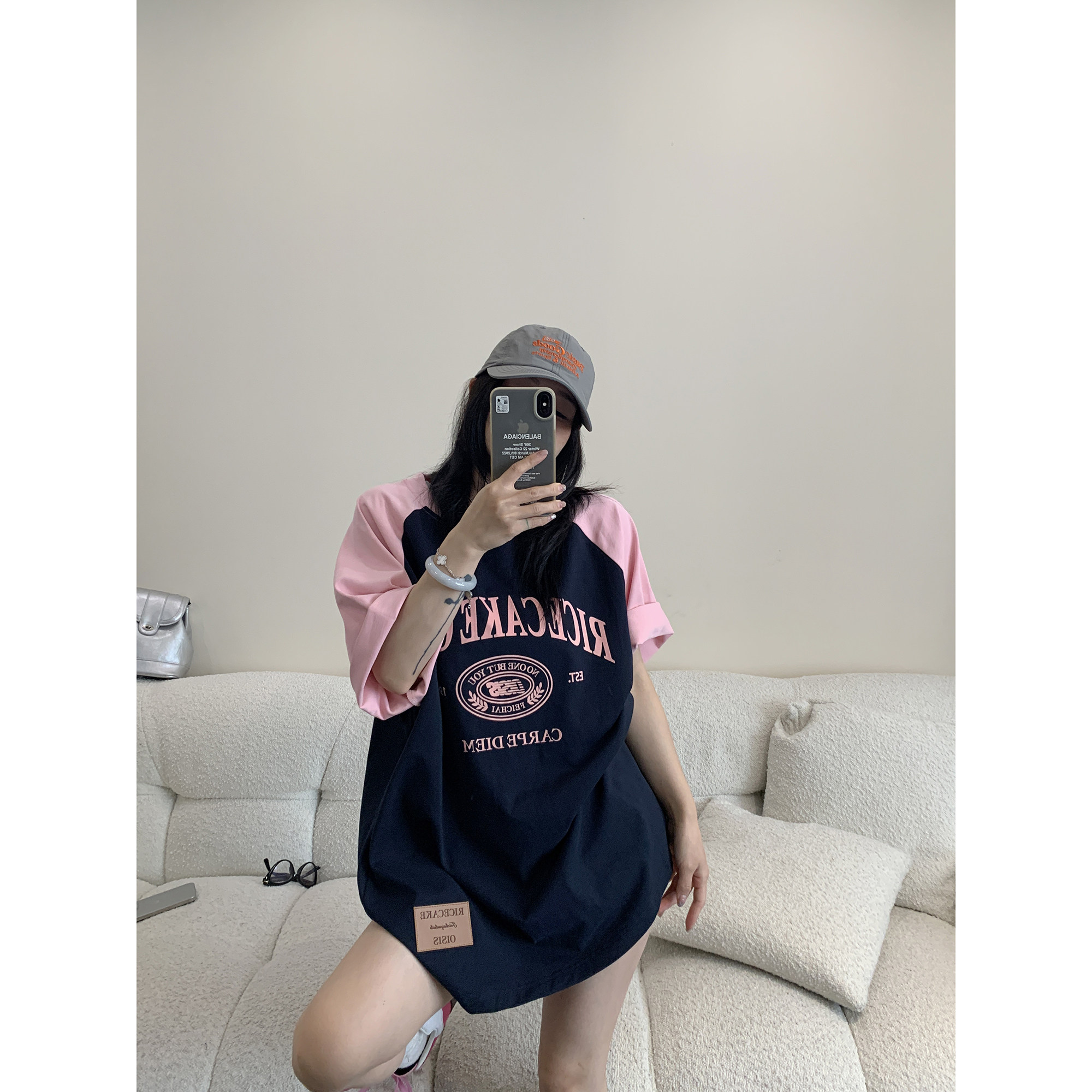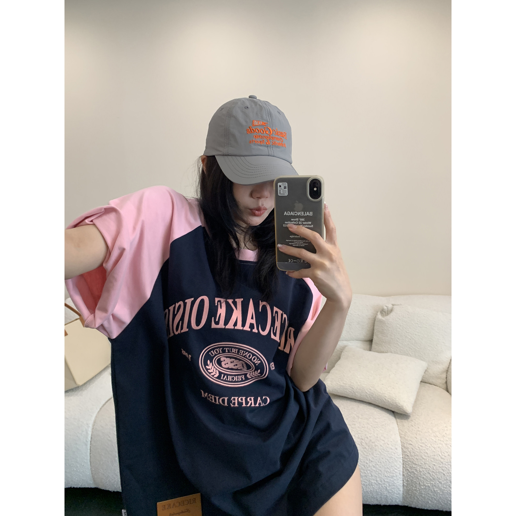 【商品名】【トップス】【レトロ 切り替え プリント ルーズ Tシャツ 【FCシリーズ】