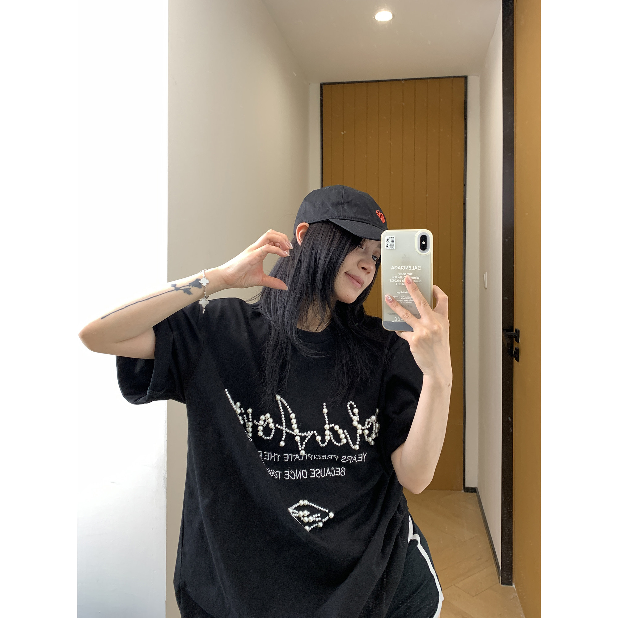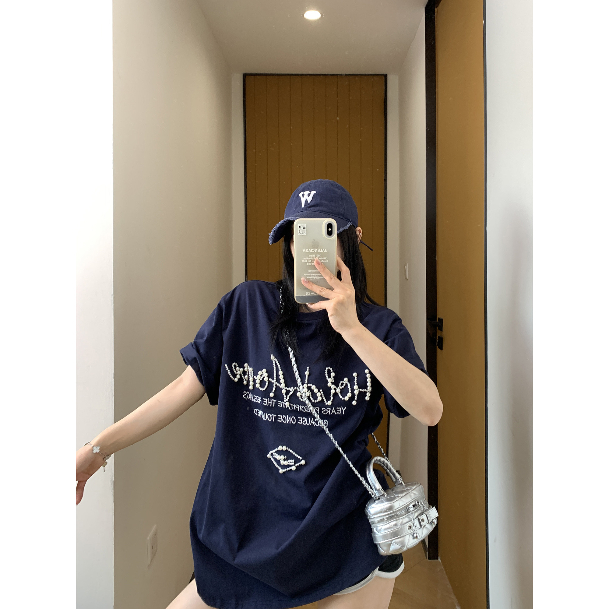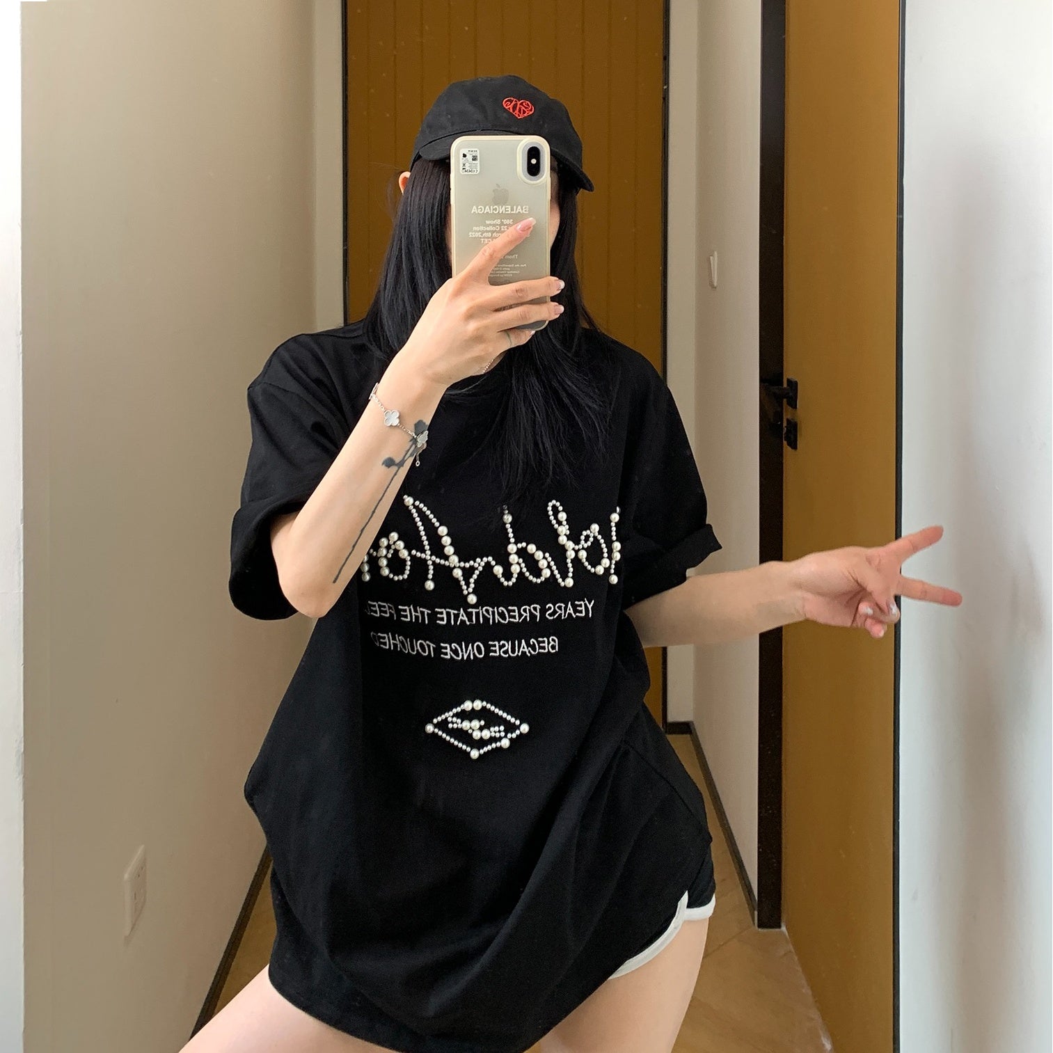 【トップス】夏 ビーズ装飾 ゆるリラックス Tシャツ 【FCシリーズ】