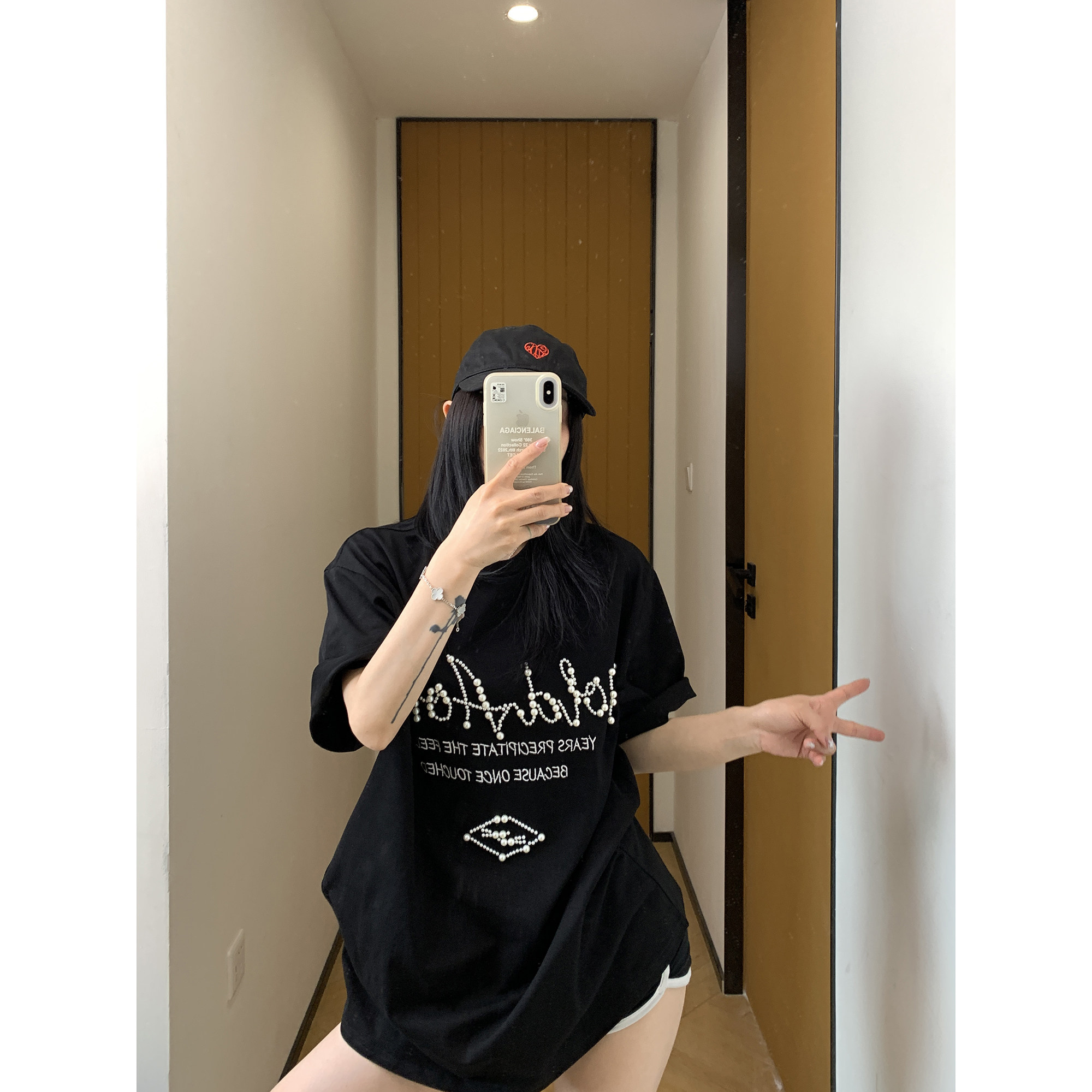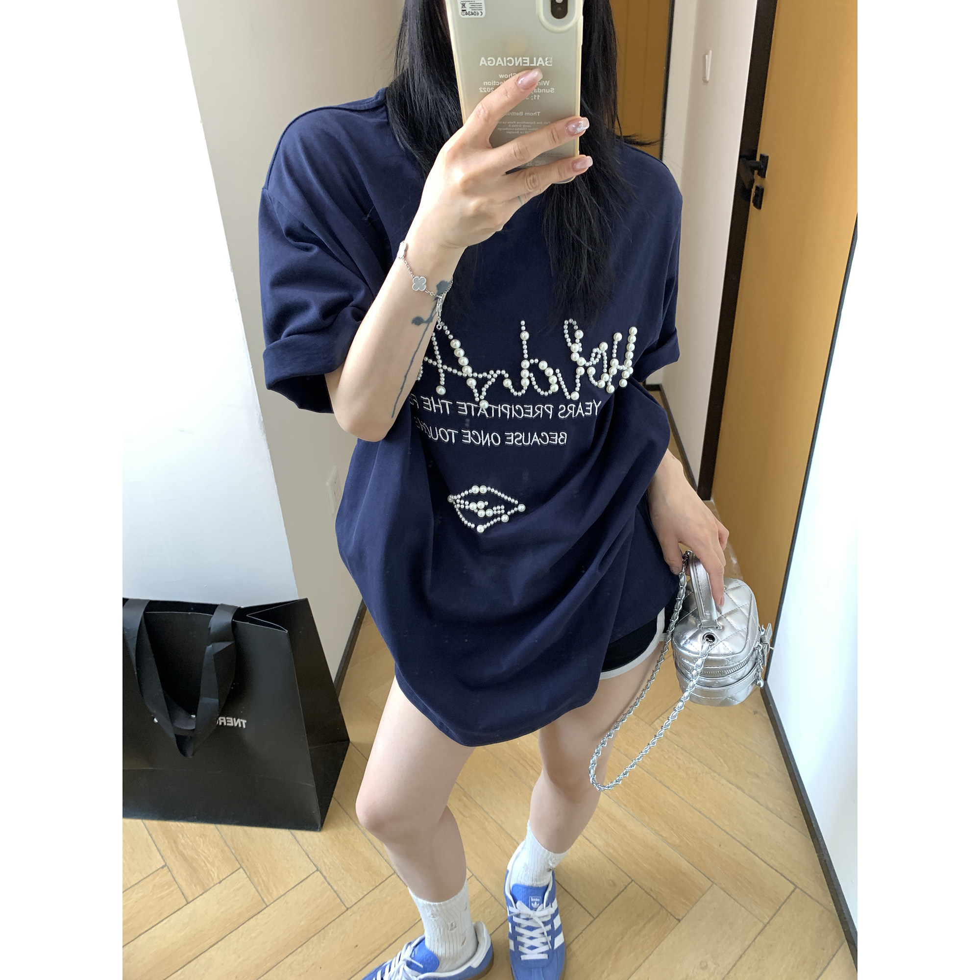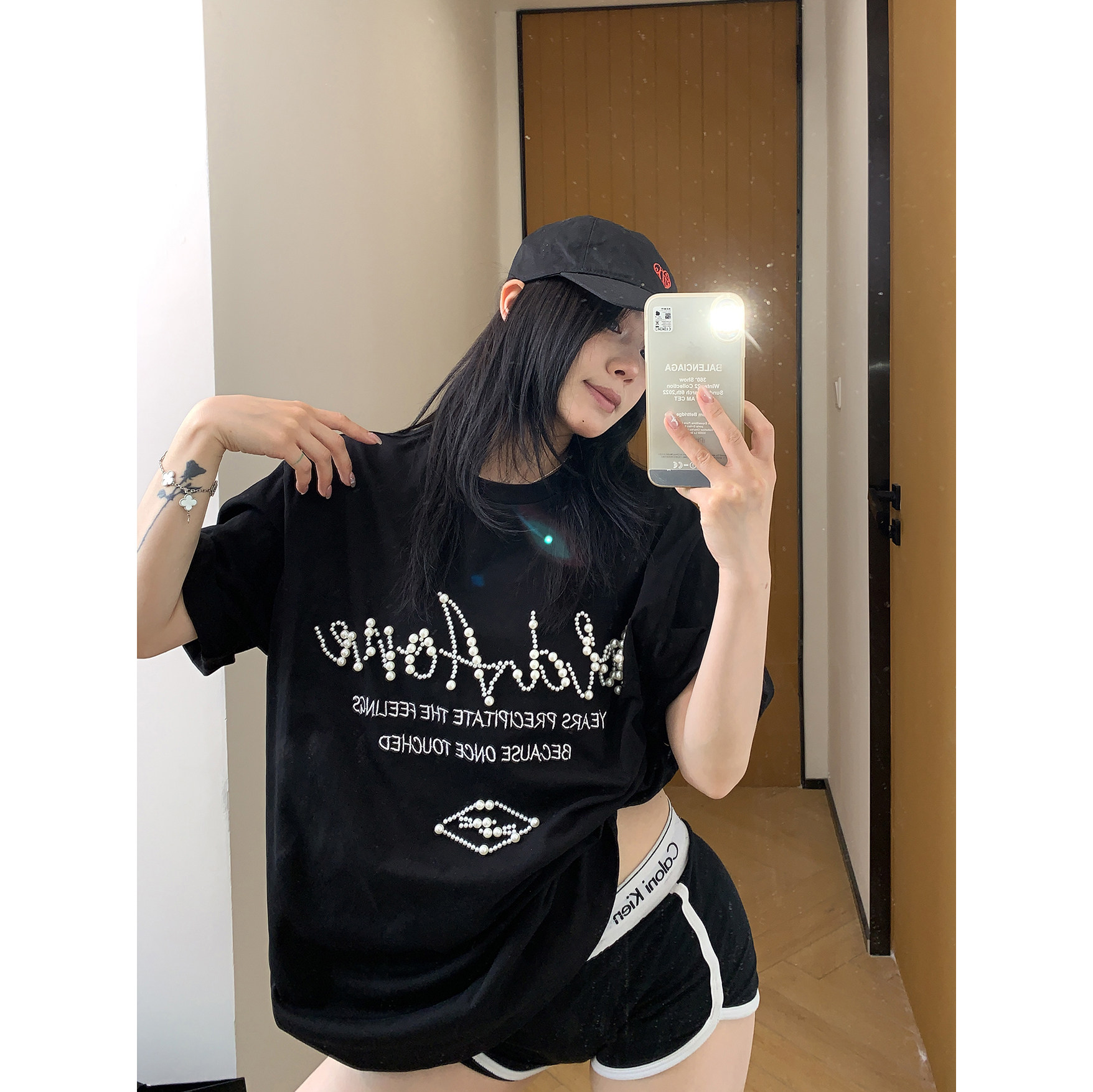 【トップス】夏 ビーズ装飾 ゆるリラックス Tシャツ 【FCシリーズ】