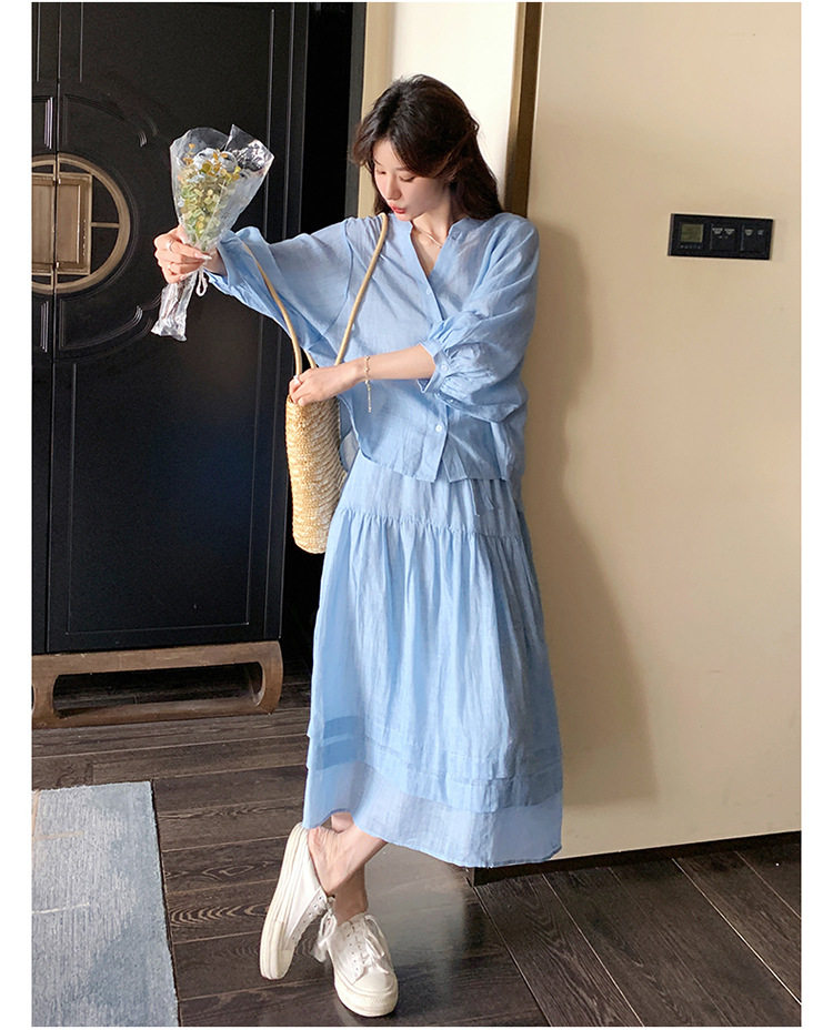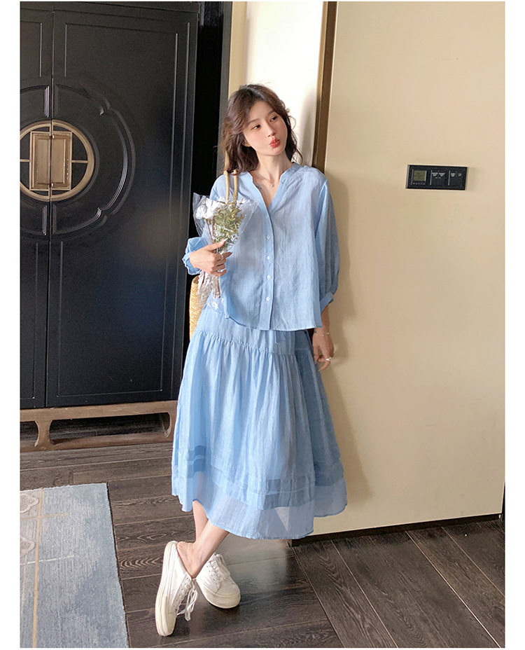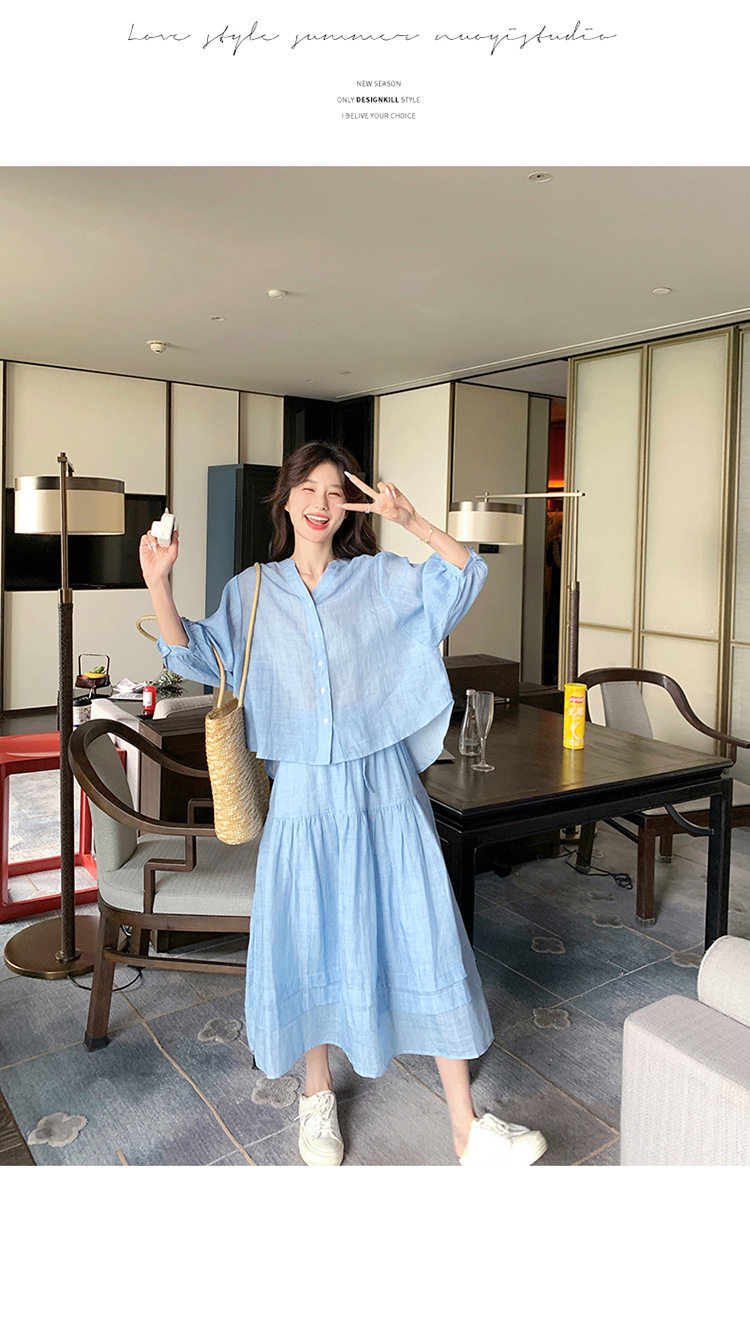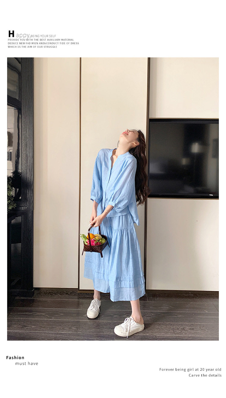 【商品名】【ボトムス】夏 おしゃれでリラックスしたバカンス風 シャツ+ミニスカート 2点セット