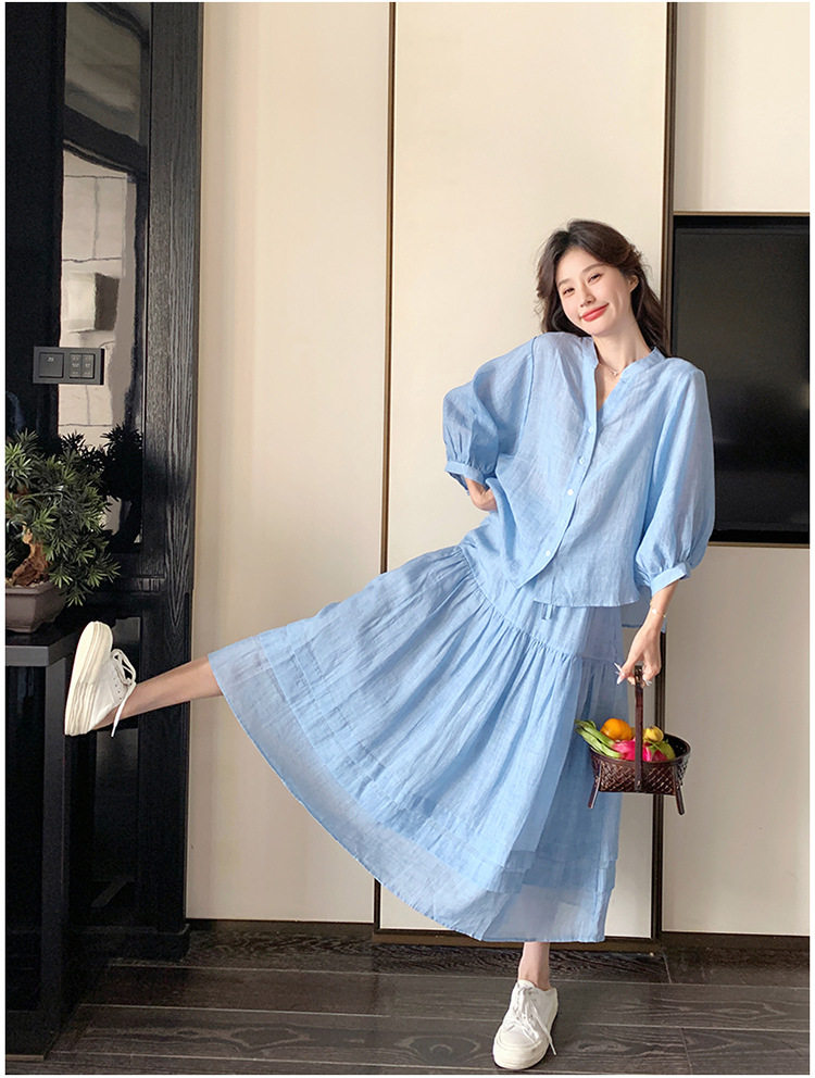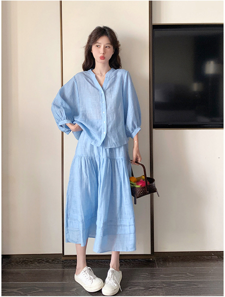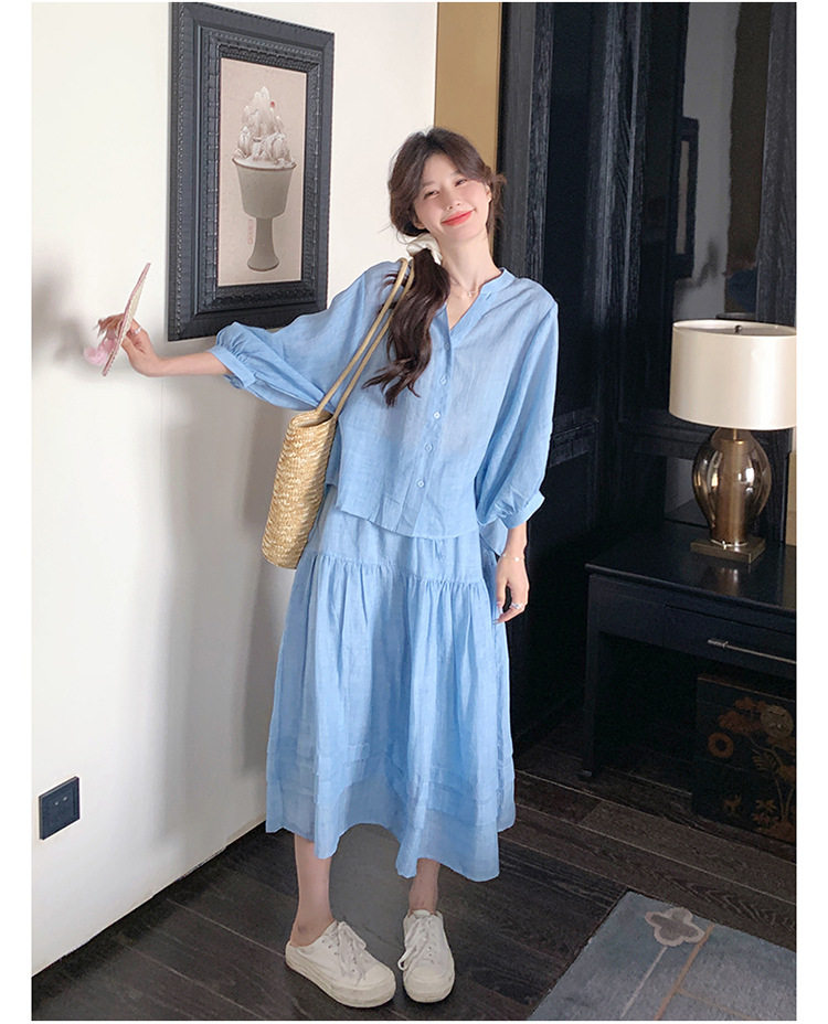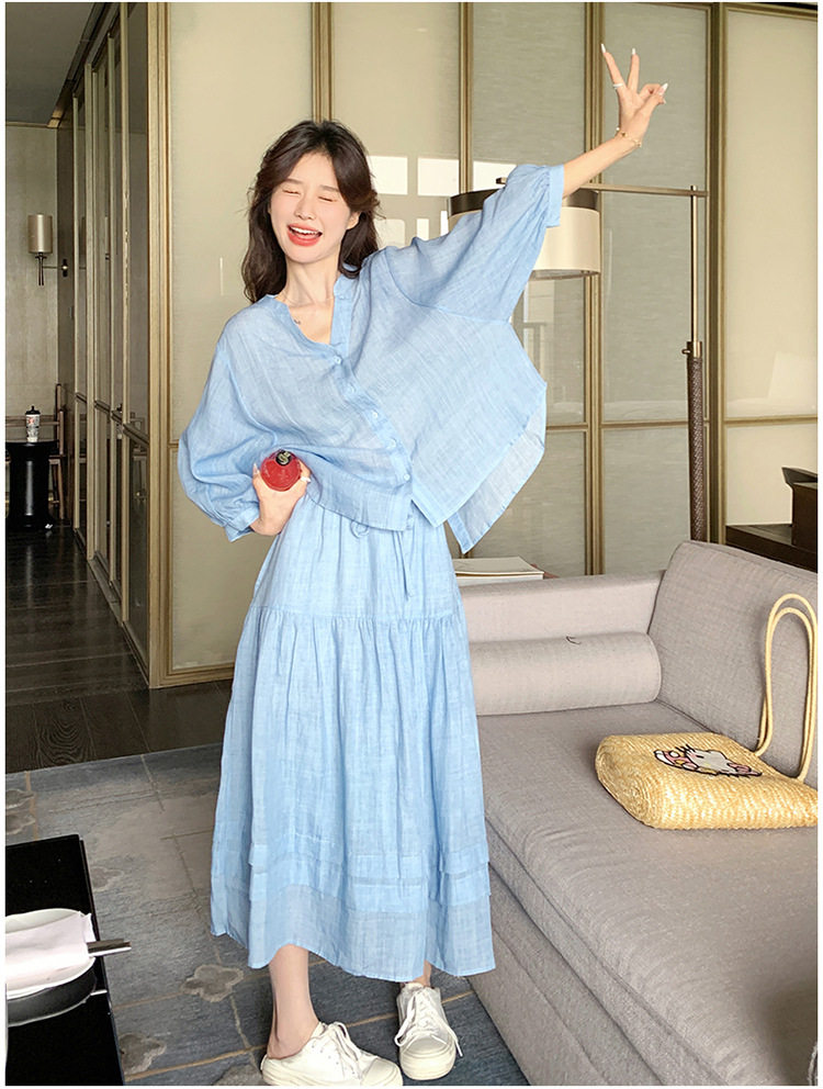 【商品名】【ボトムス】夏 おしゃれでリラックスしたバカンス風 シャツ+ミニスカート 2点セット