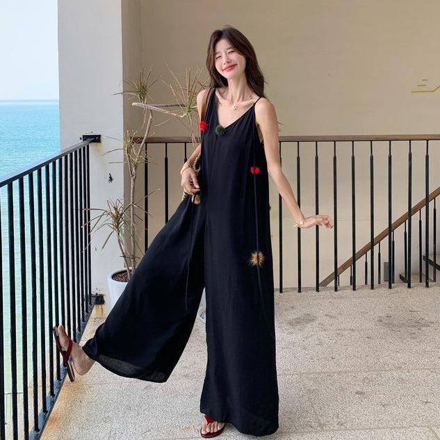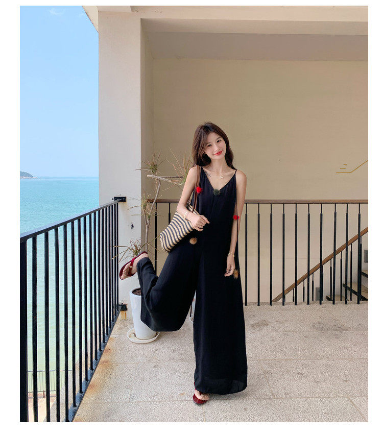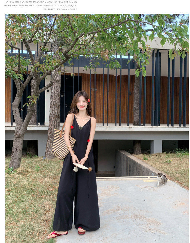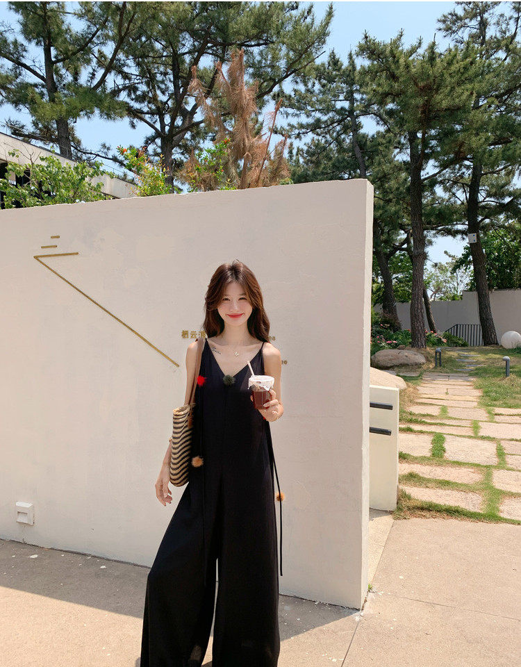 【ボトムス】夏 トレンド ファー付き ノースリーブキャミソール オールインワン