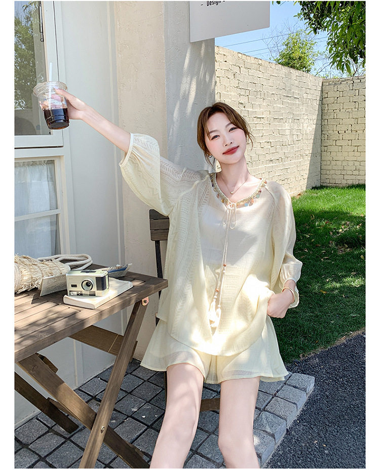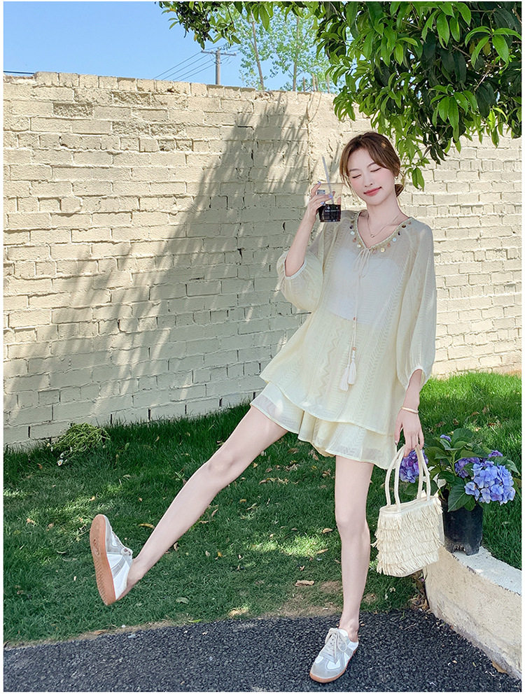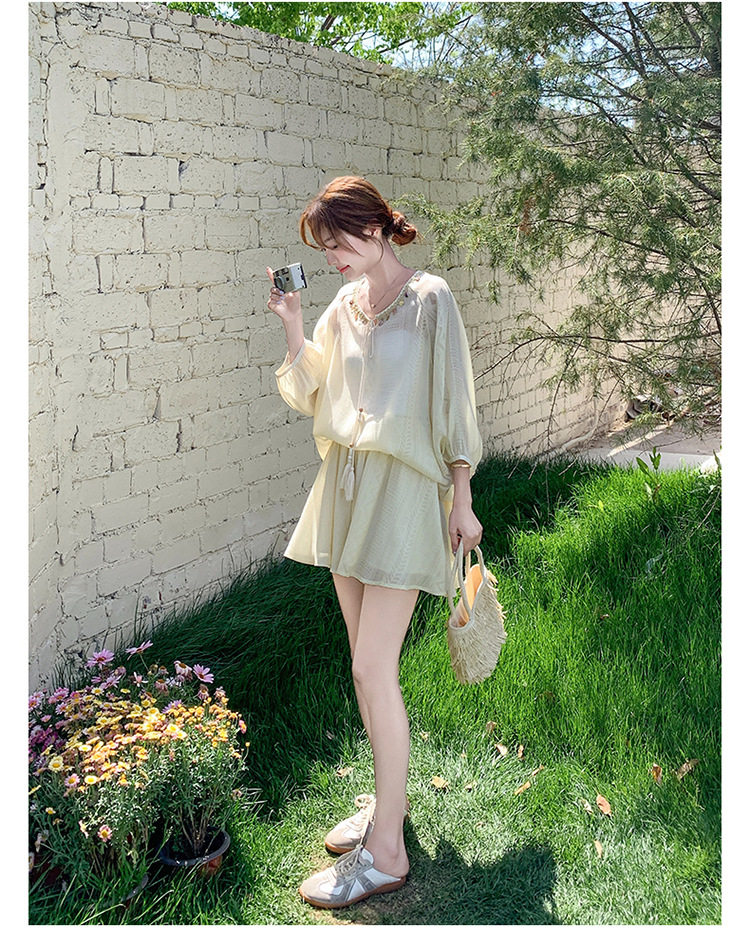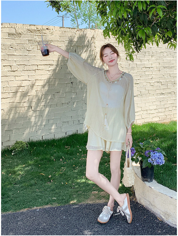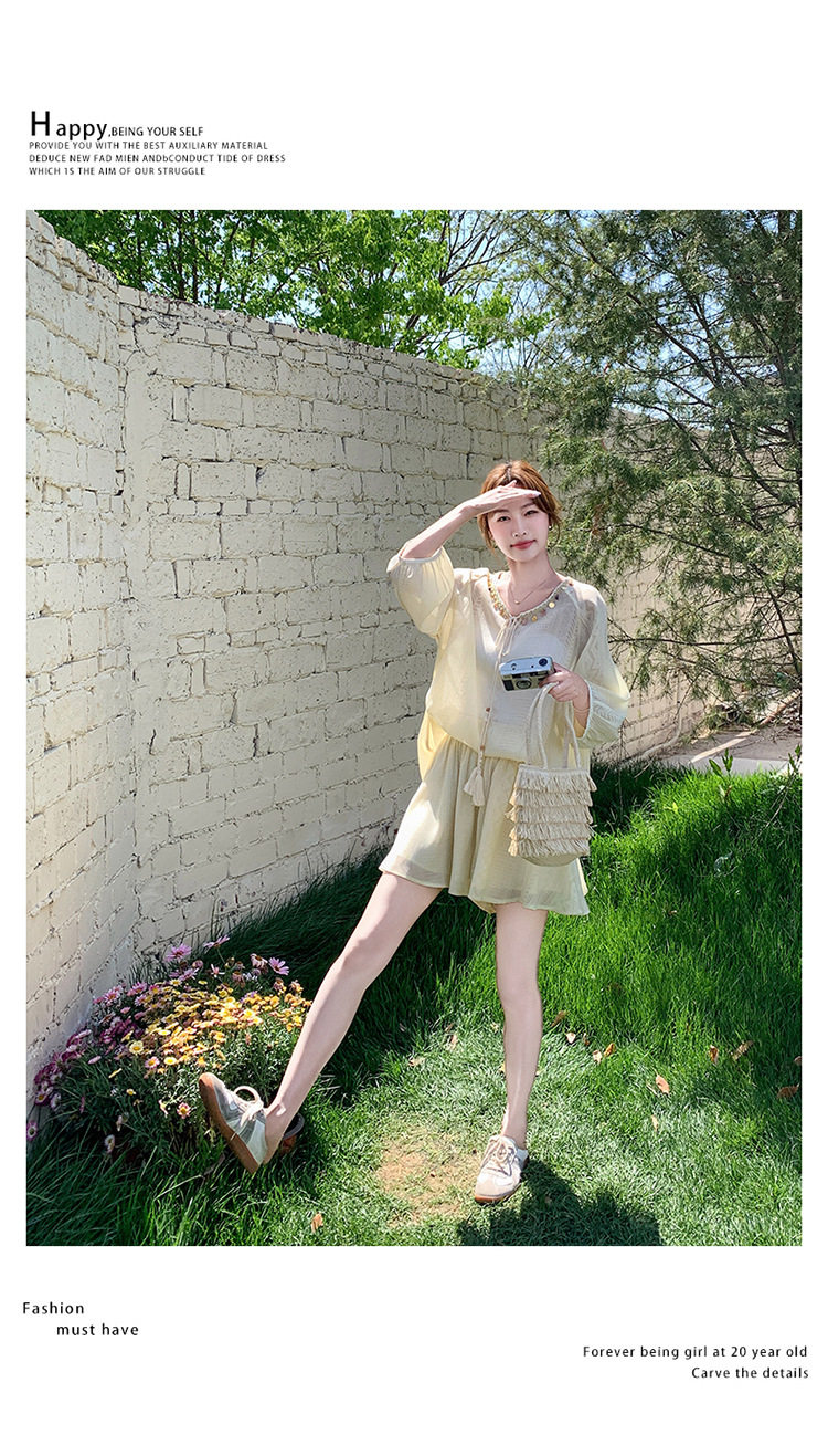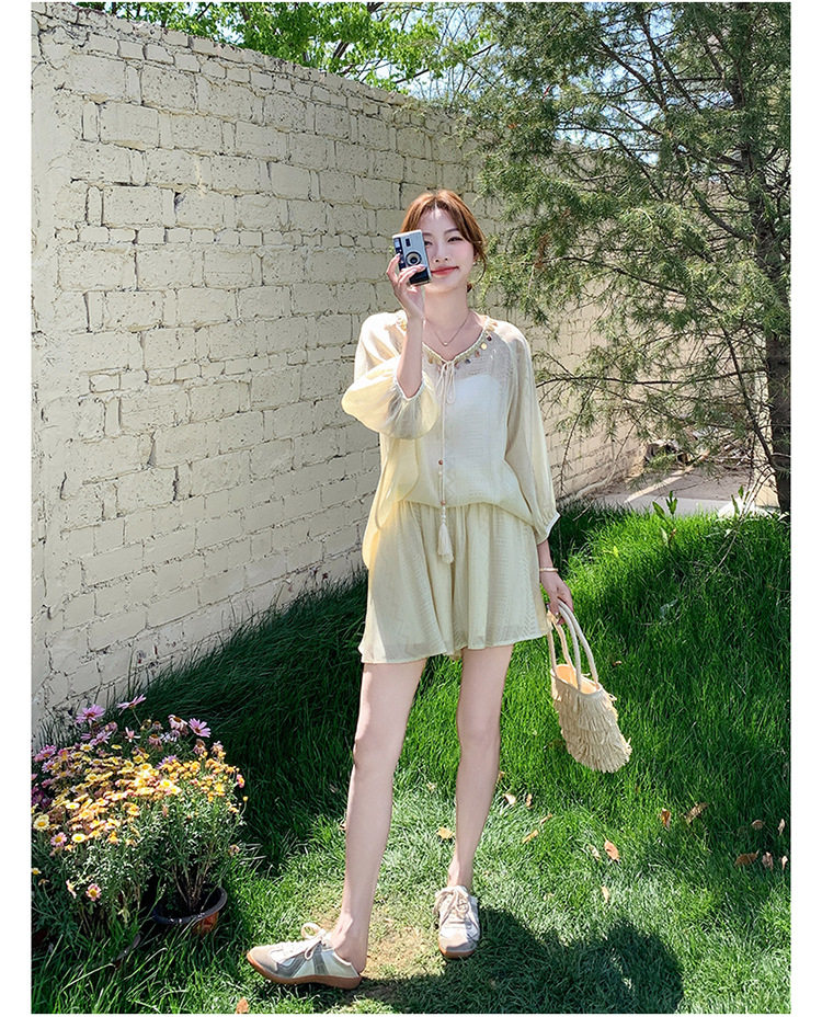 【商品名】2点セット!【ボトムス】カジュアルエレガンス リラックス感 日焼け防止シャツ+ショートパンツ 上下セット