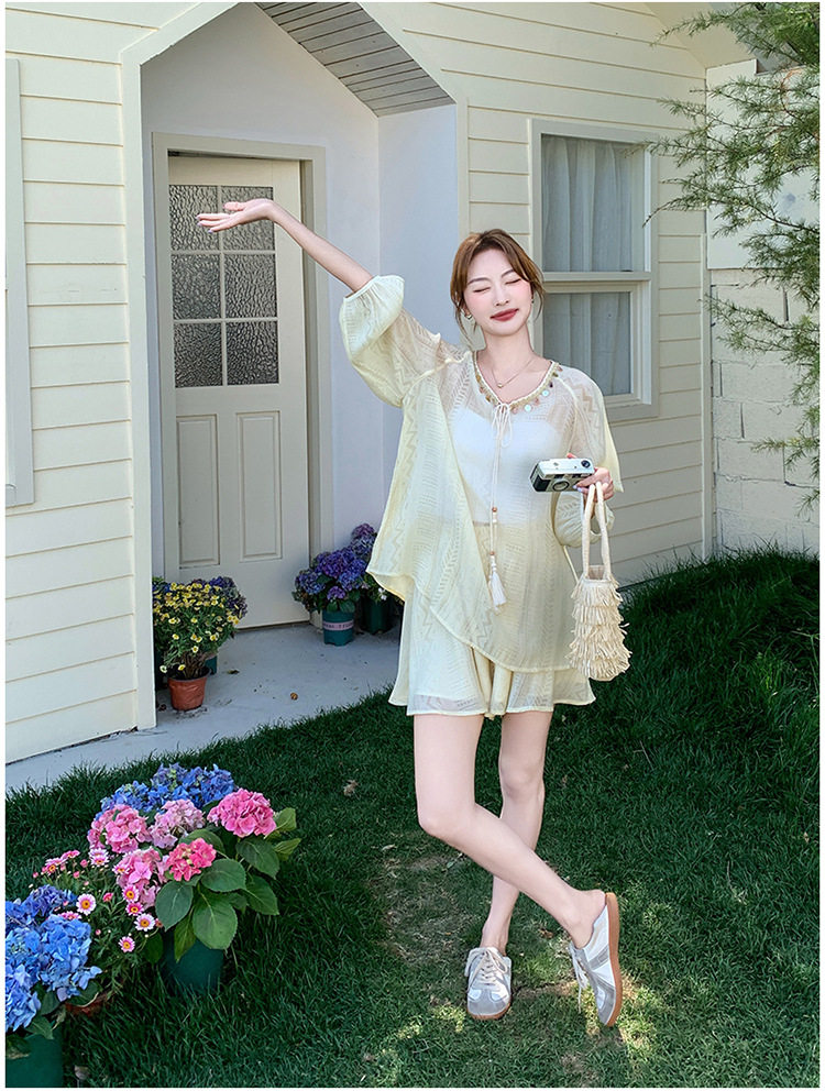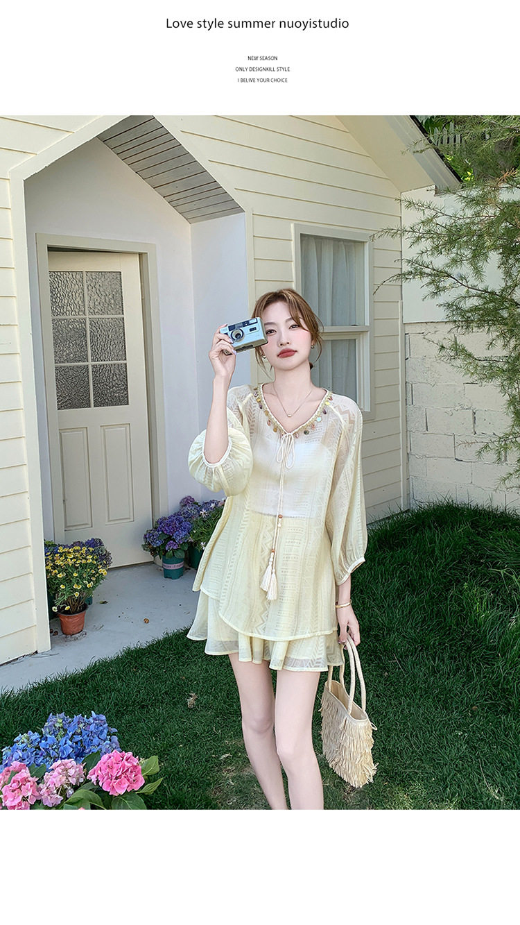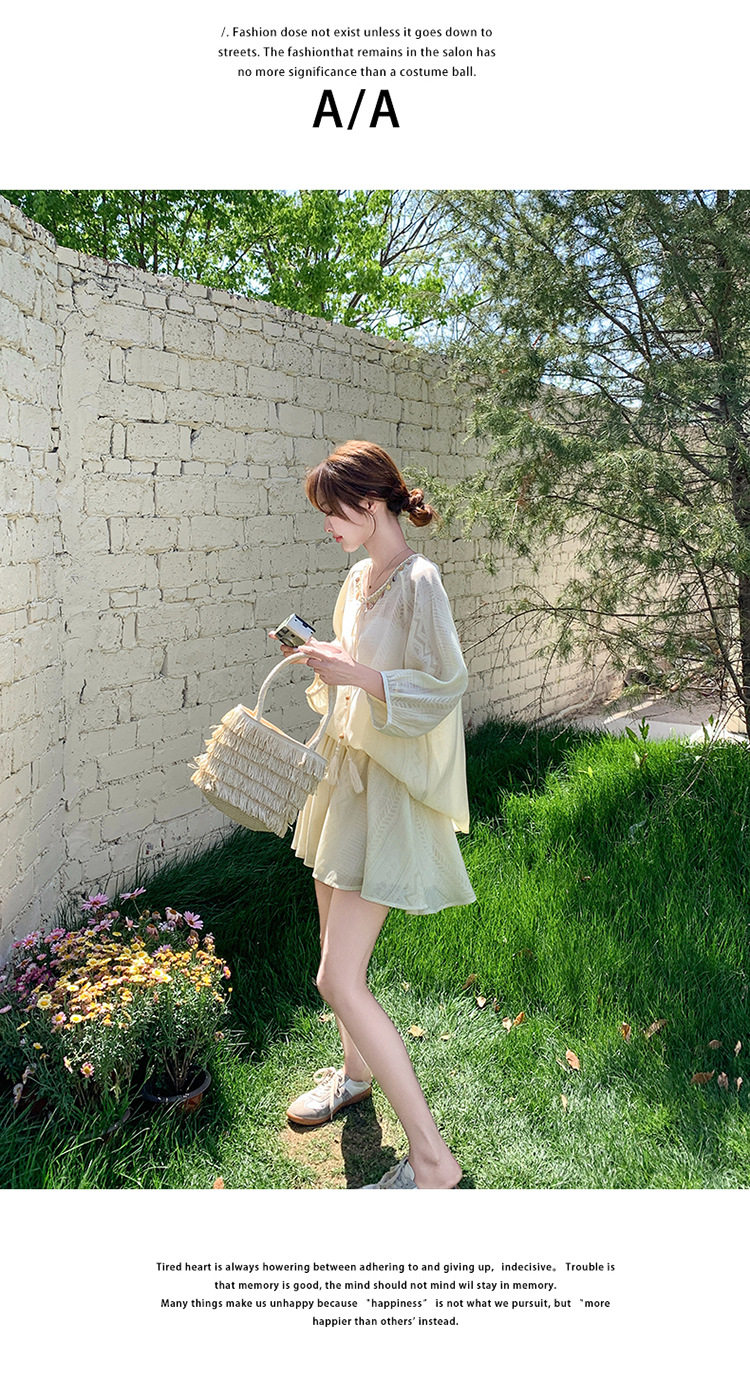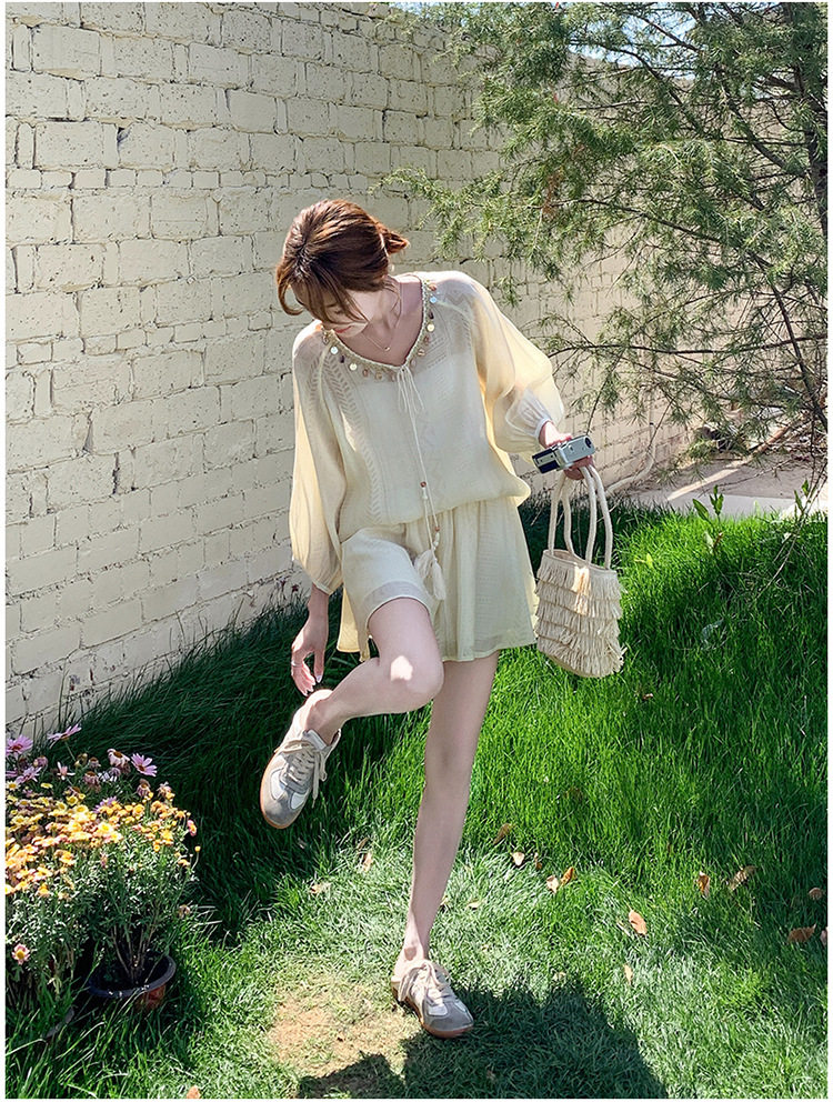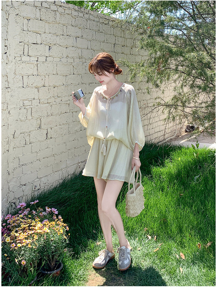 【商品名】2点セット!【ボトムス】カジュアルエレガンス リラックス感 日焼け防止シャツ+ショートパンツ 上下セット