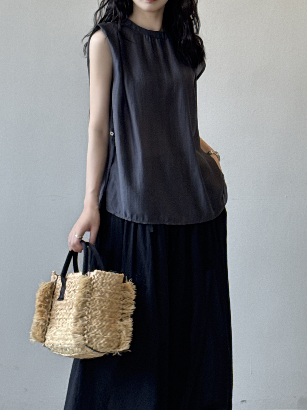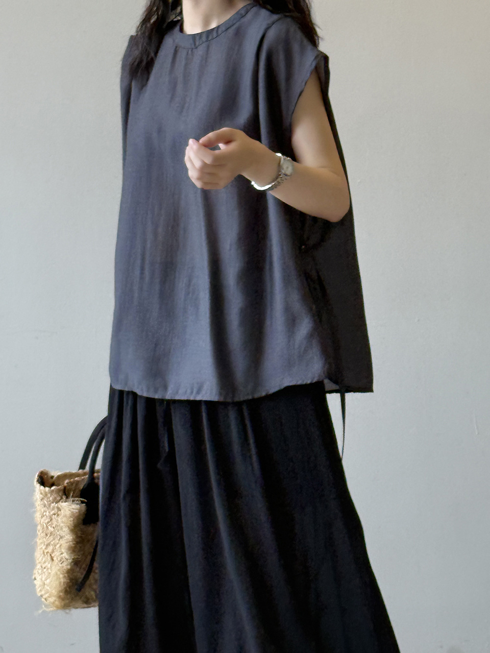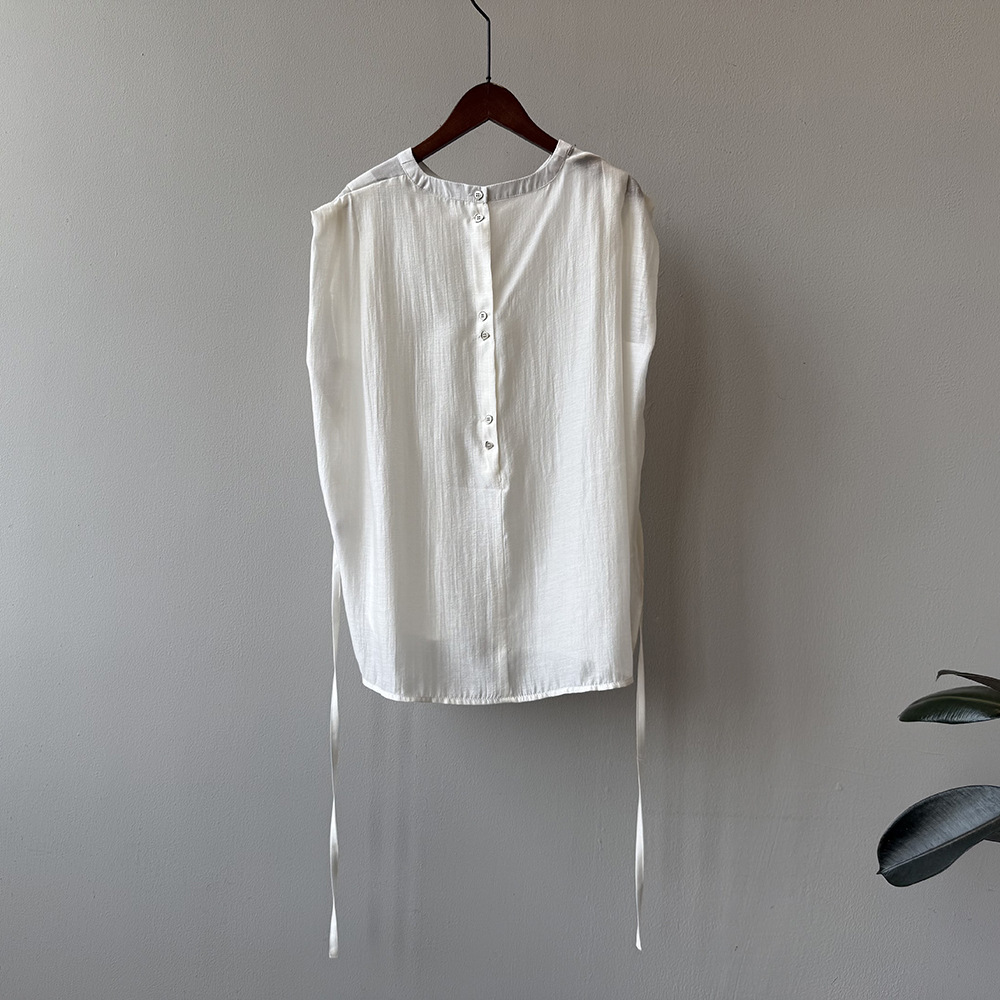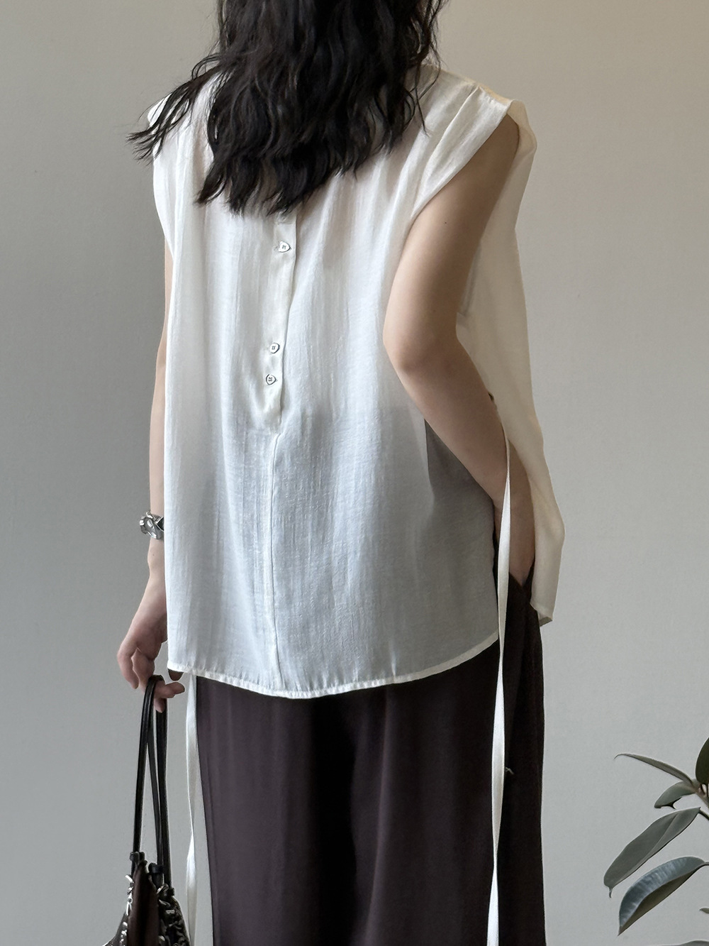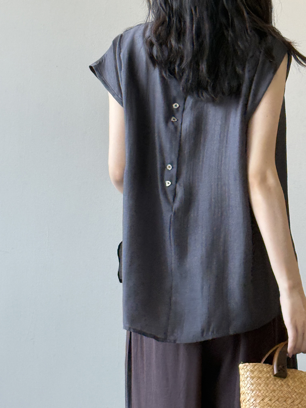 【商品名】【トップス】夏 バックボタンデザイン ラウンドネック プルオーバー ノースリーブテンセルシャツ【JZシリーズ】