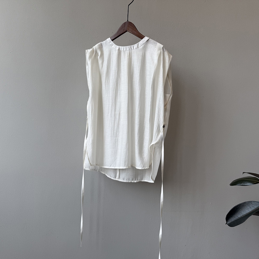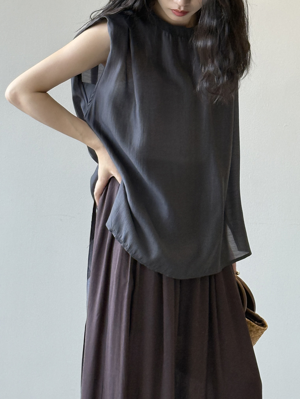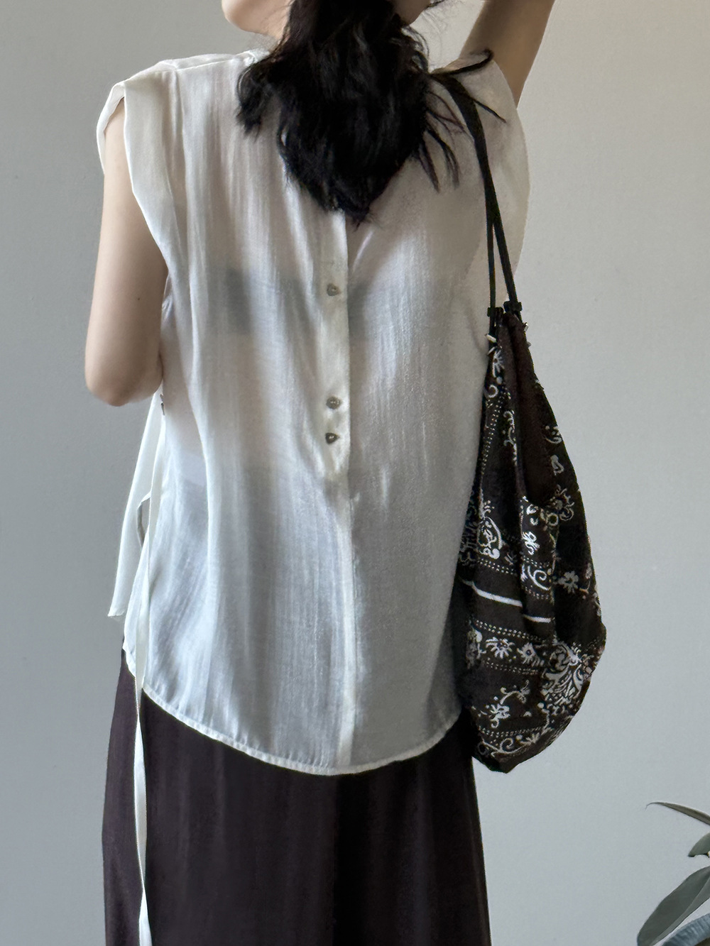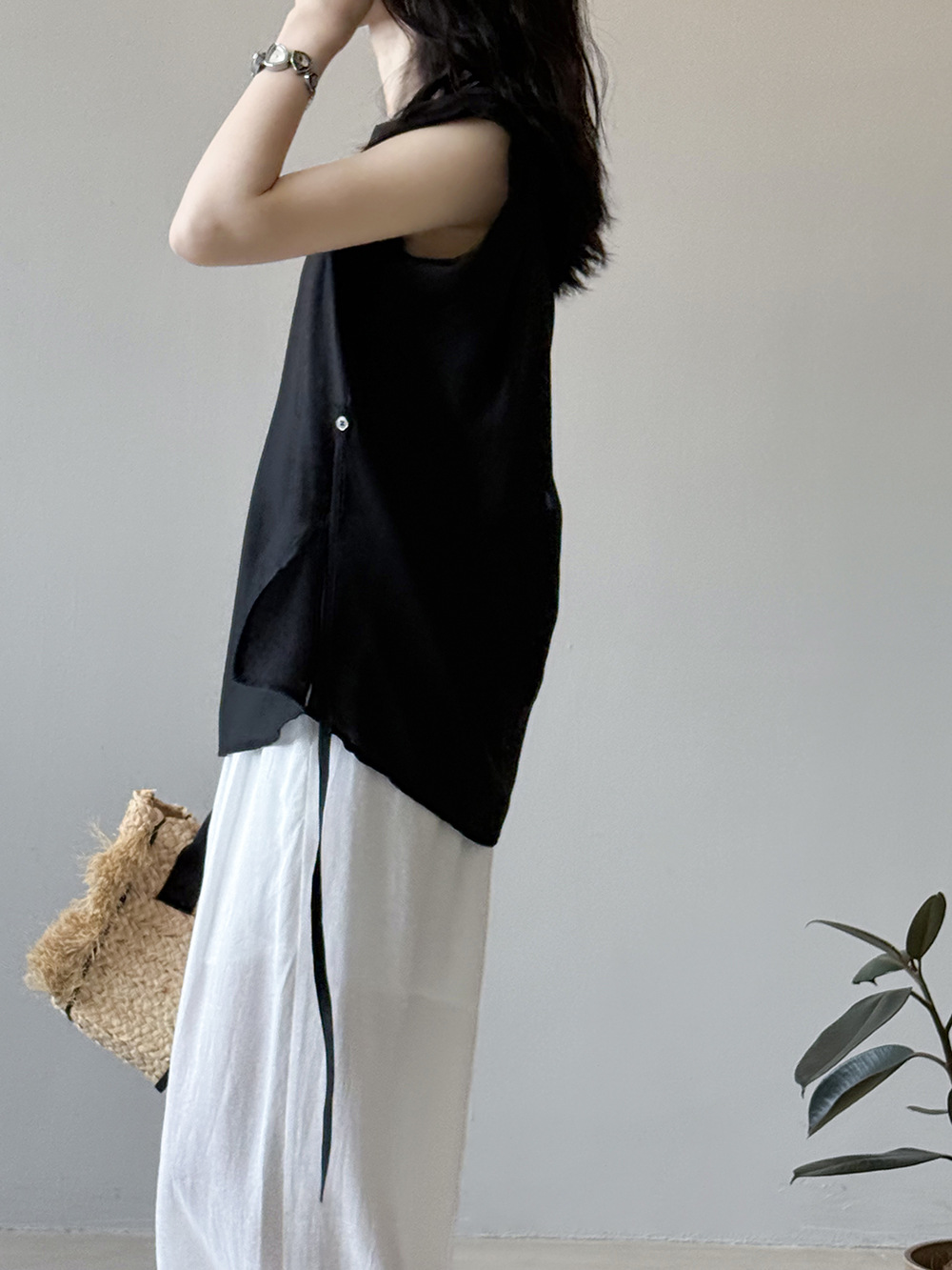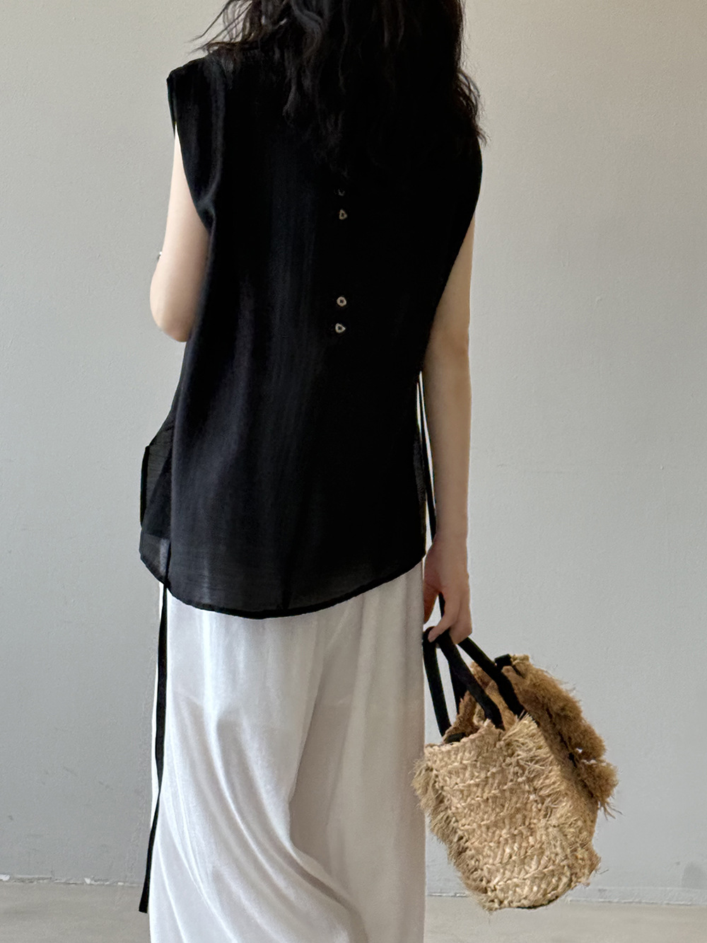 【商品名】【トップス】夏 バックボタンデザイン ラウンドネック プルオーバー ノースリーブテンセルシャツ【JZシリーズ】