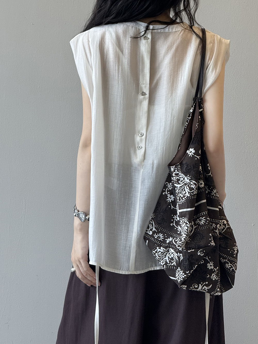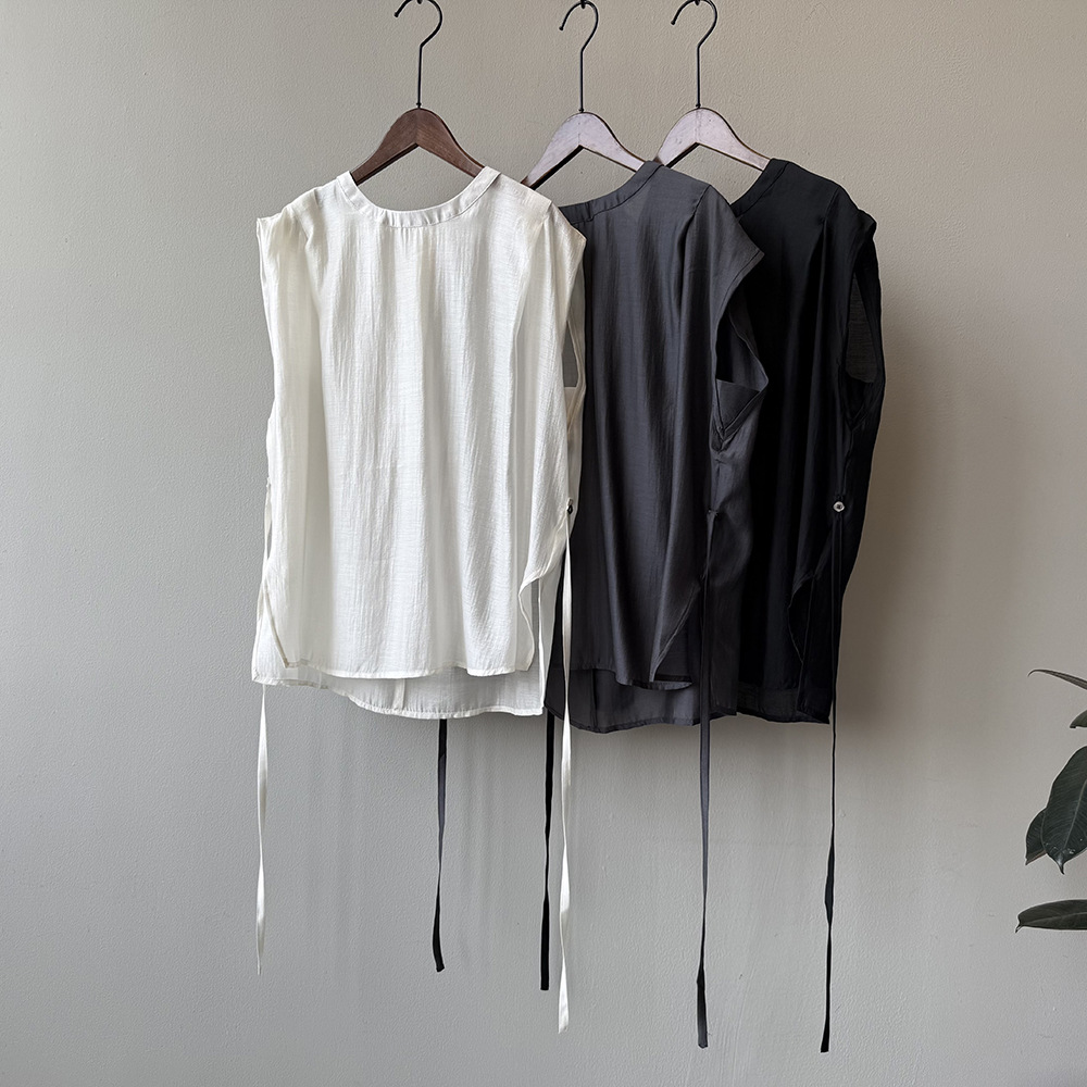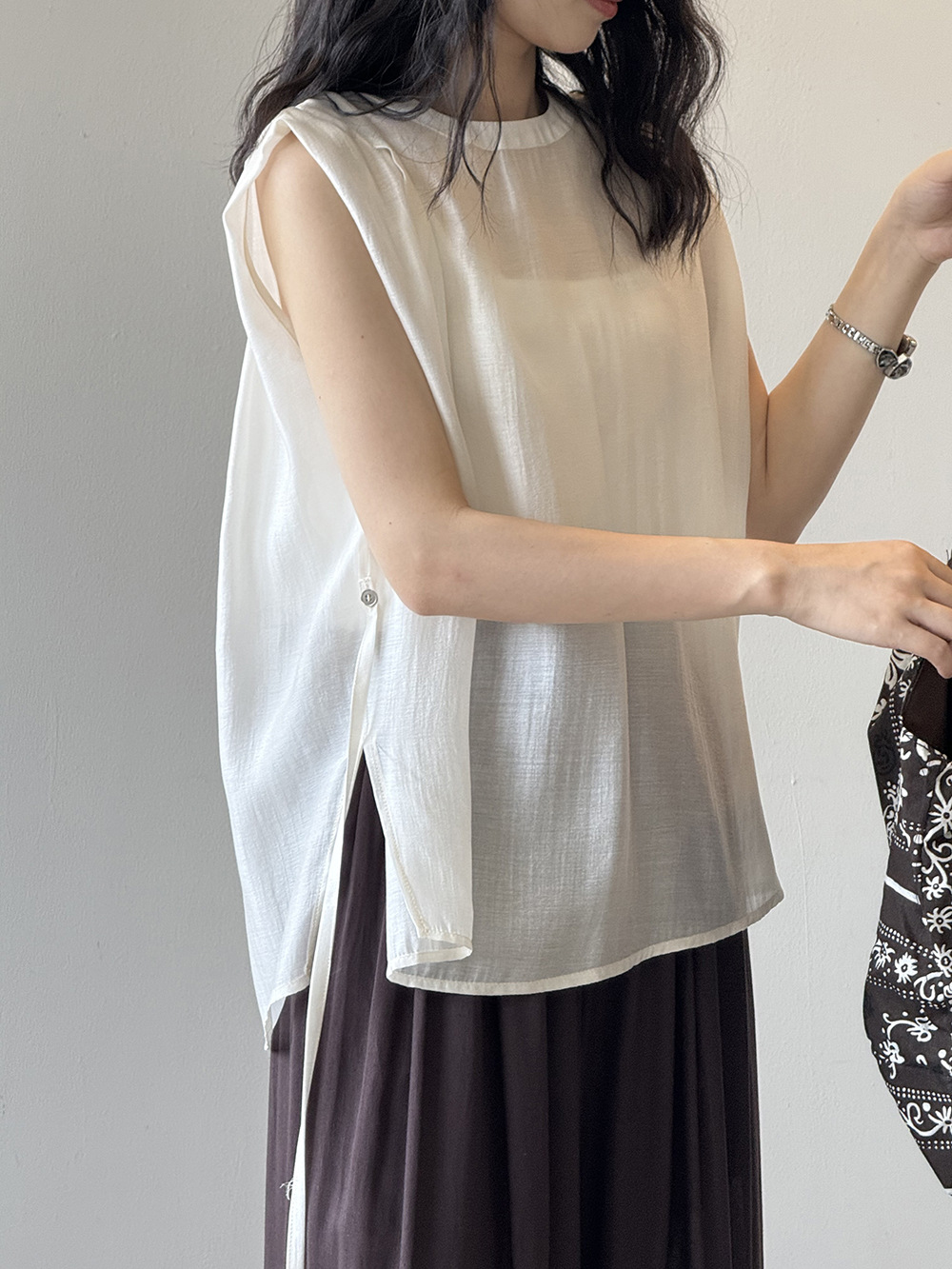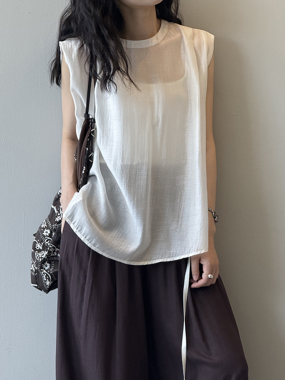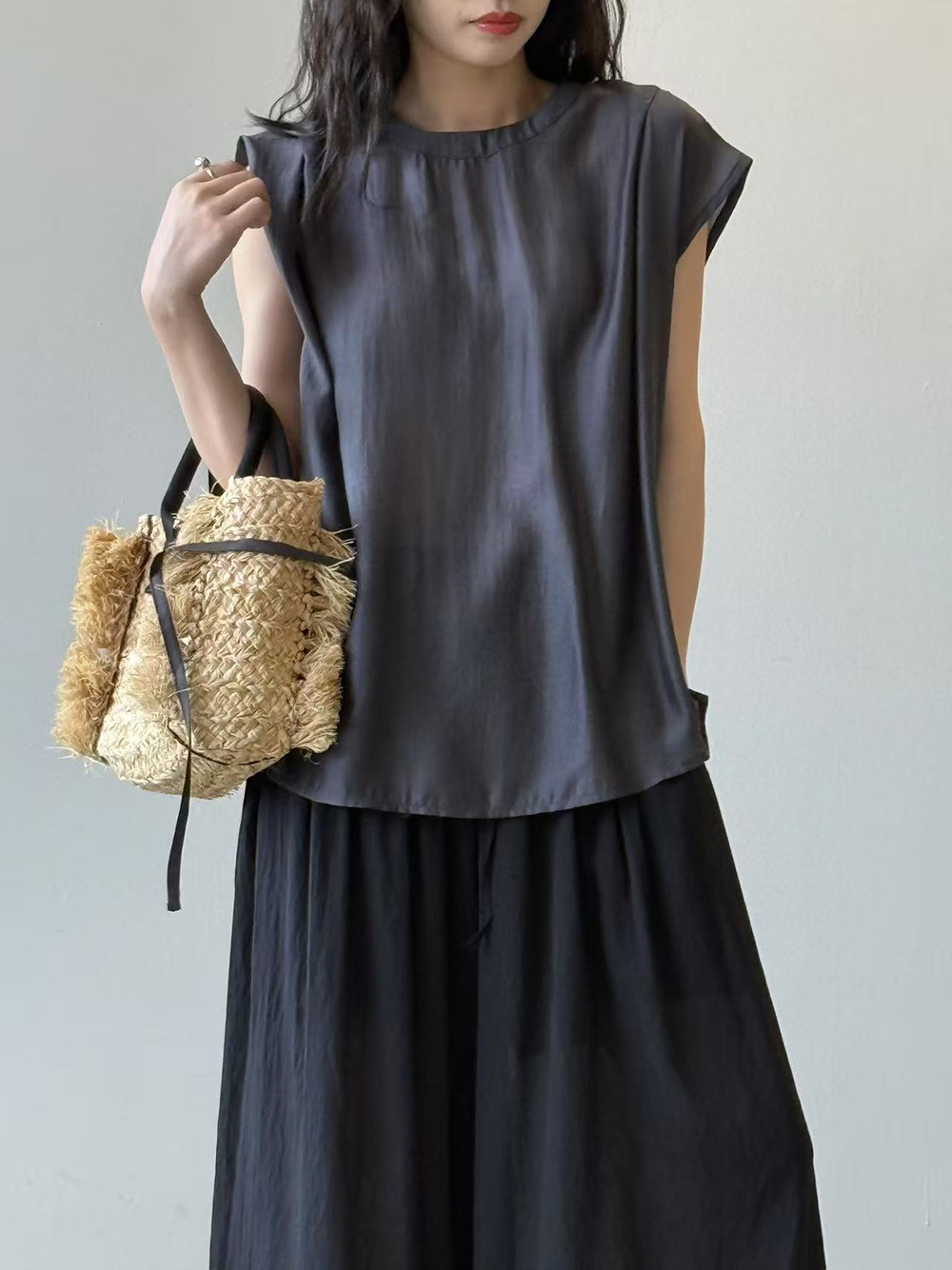 【商品名】【トップス】夏 バックボタンデザイン ラウンドネック プルオーバー ノースリーブテンセルシャツ【JZシリーズ】