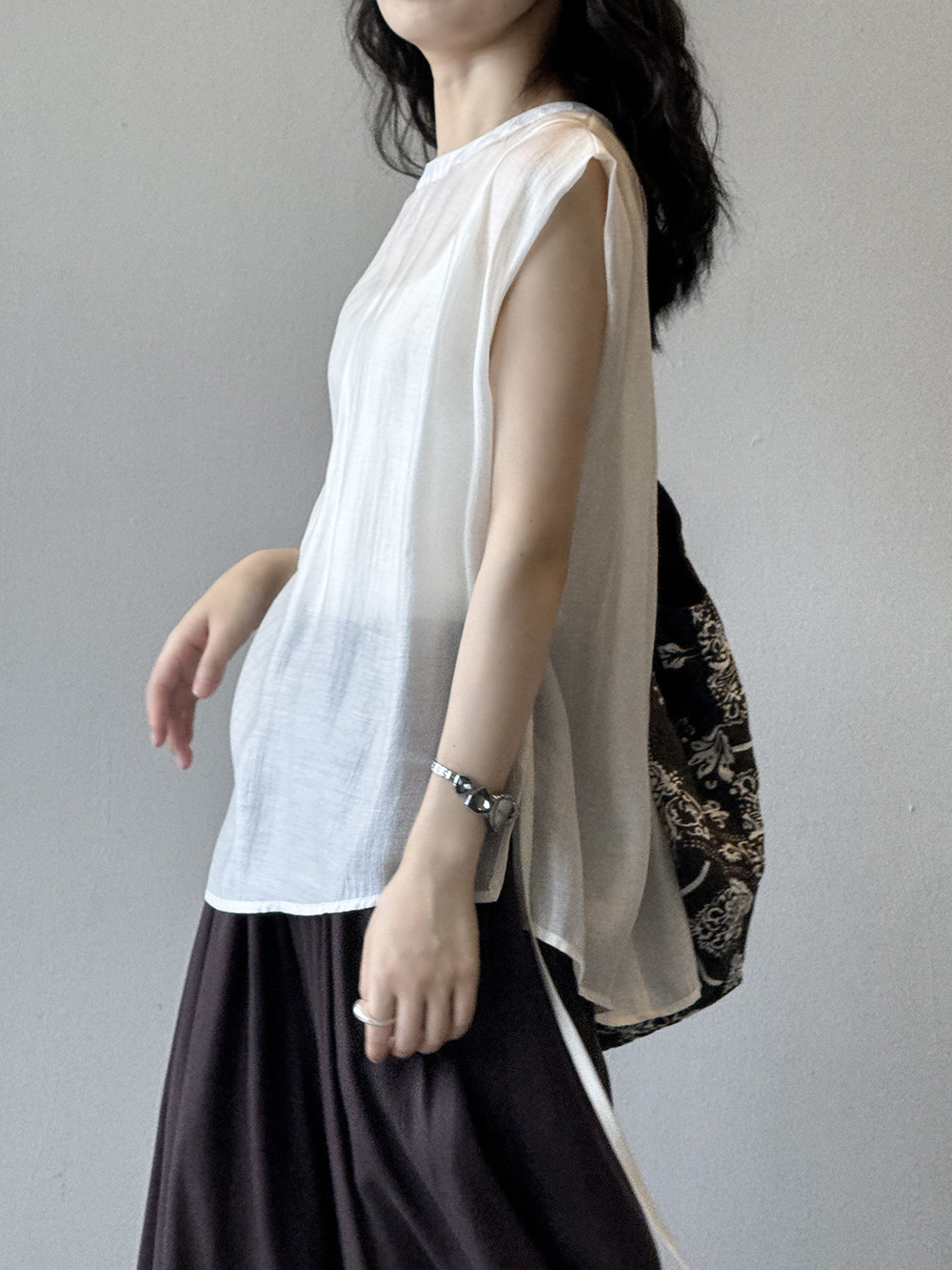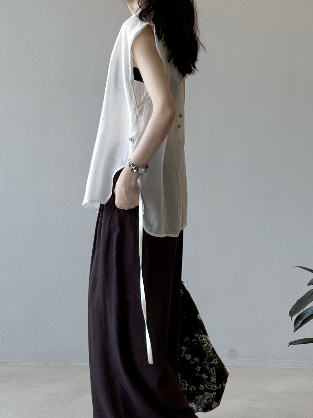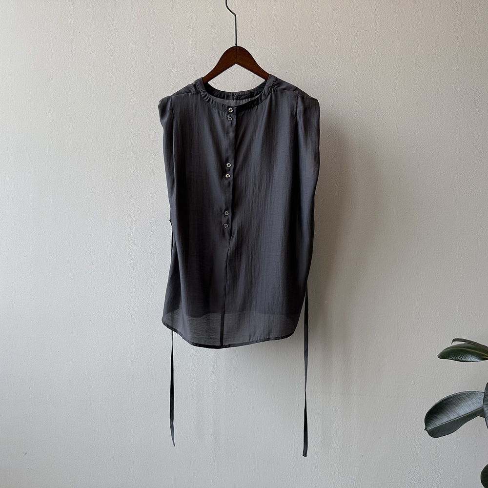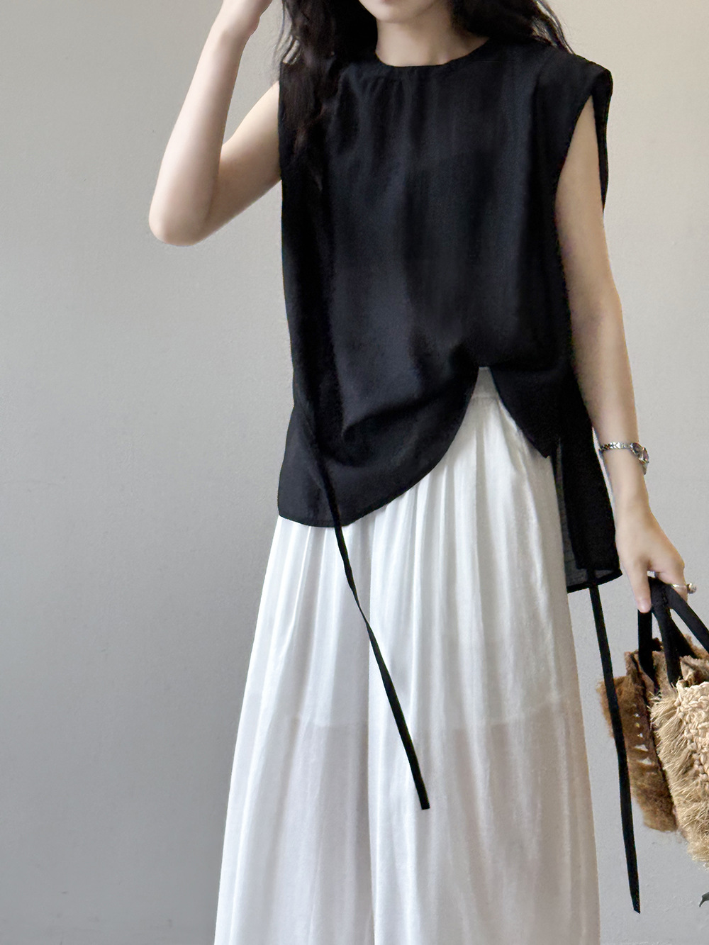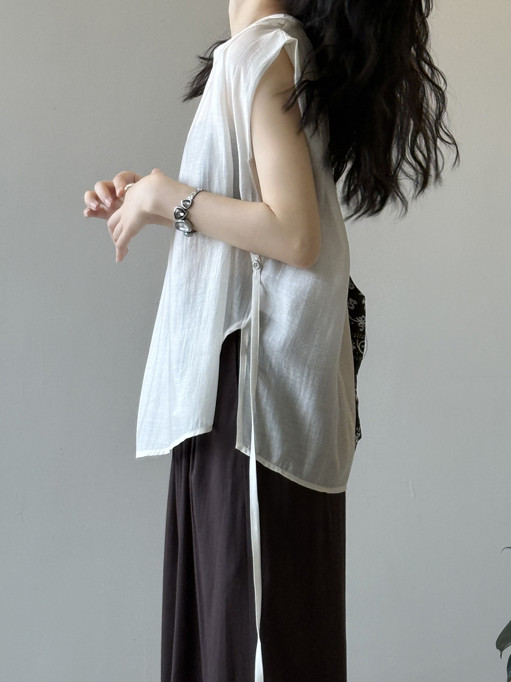 【商品名】【トップス】夏 バックボタンデザイン ラウンドネック プルオーバー ノースリーブテンセルシャツ【JZシリーズ】