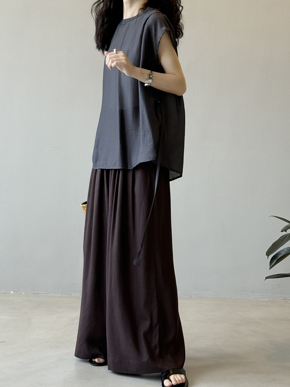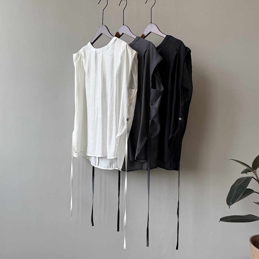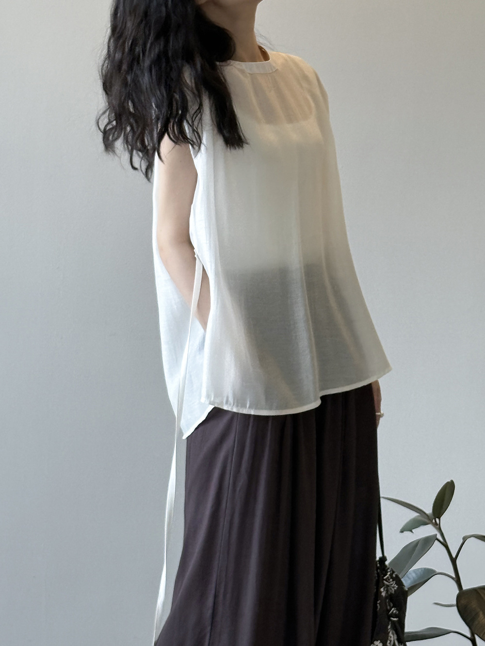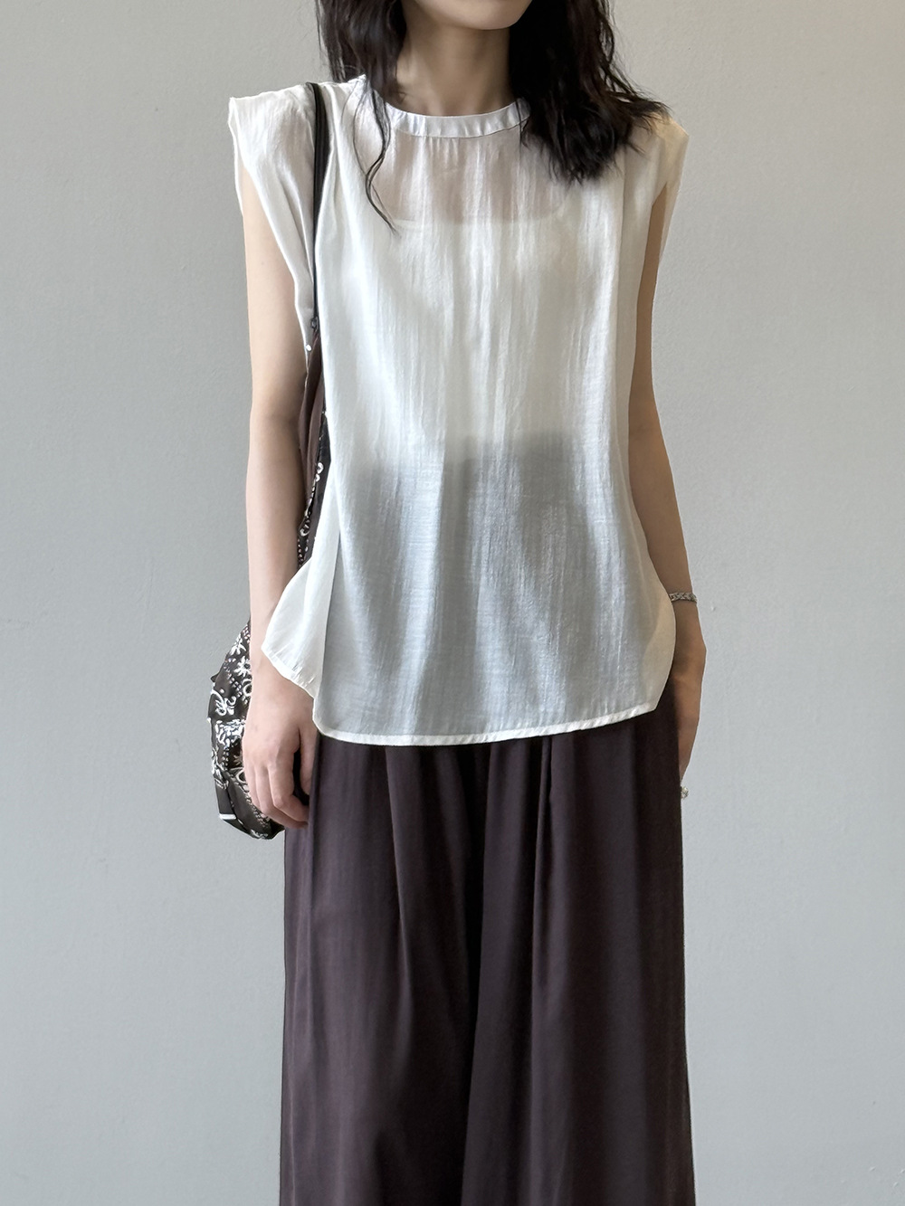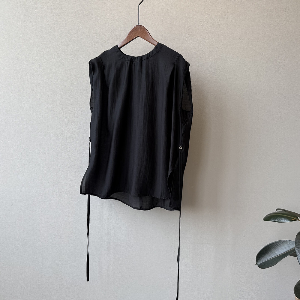 【商品名】【トップス】夏 バックボタンデザイン ラウンドネック プルオーバー ノースリーブテンセルシャツ【JZシリーズ】