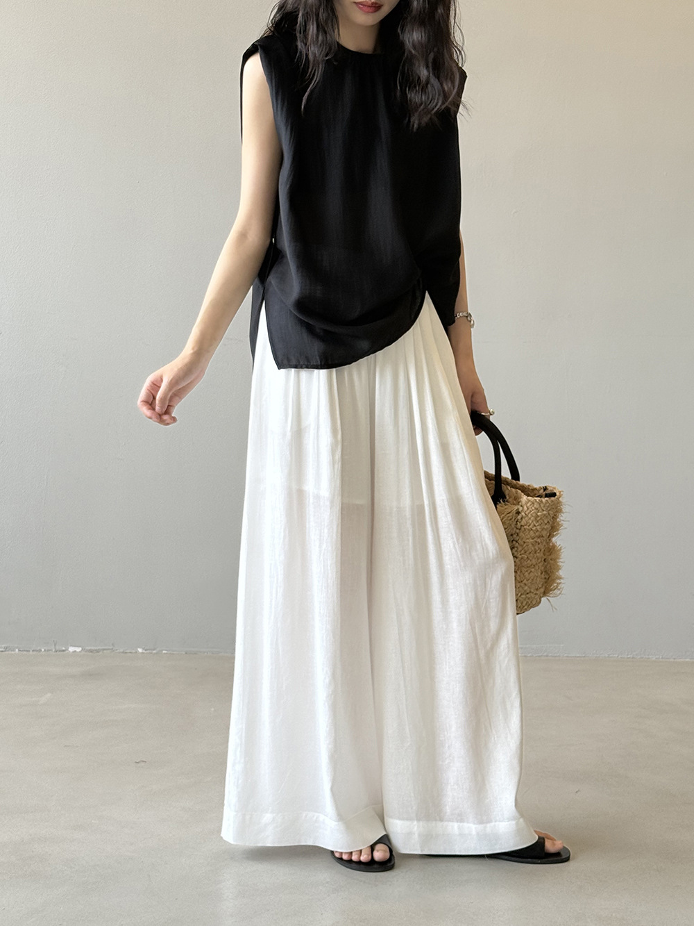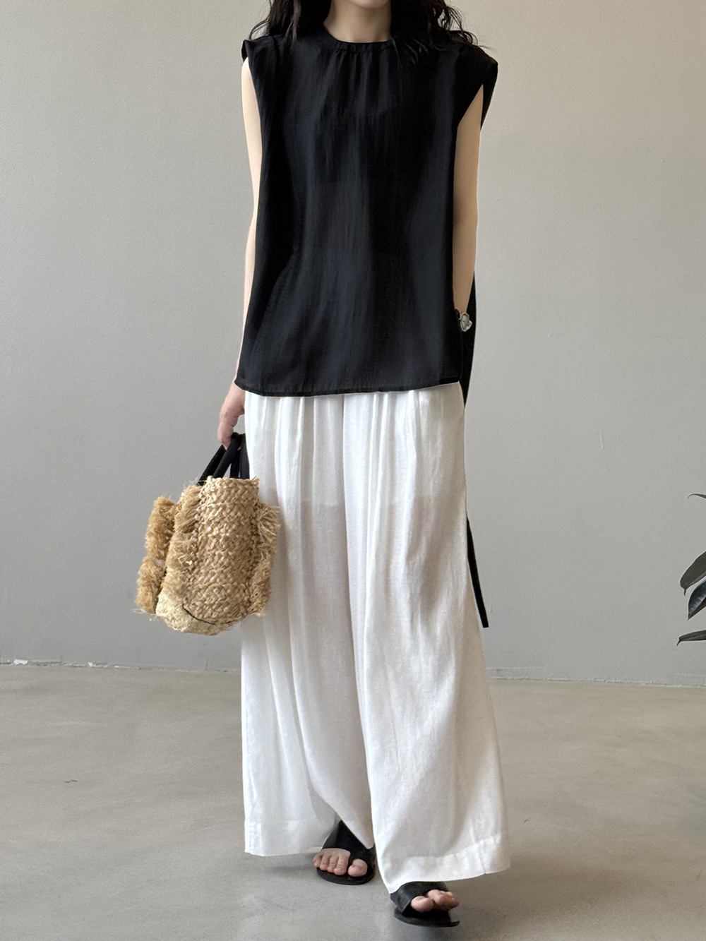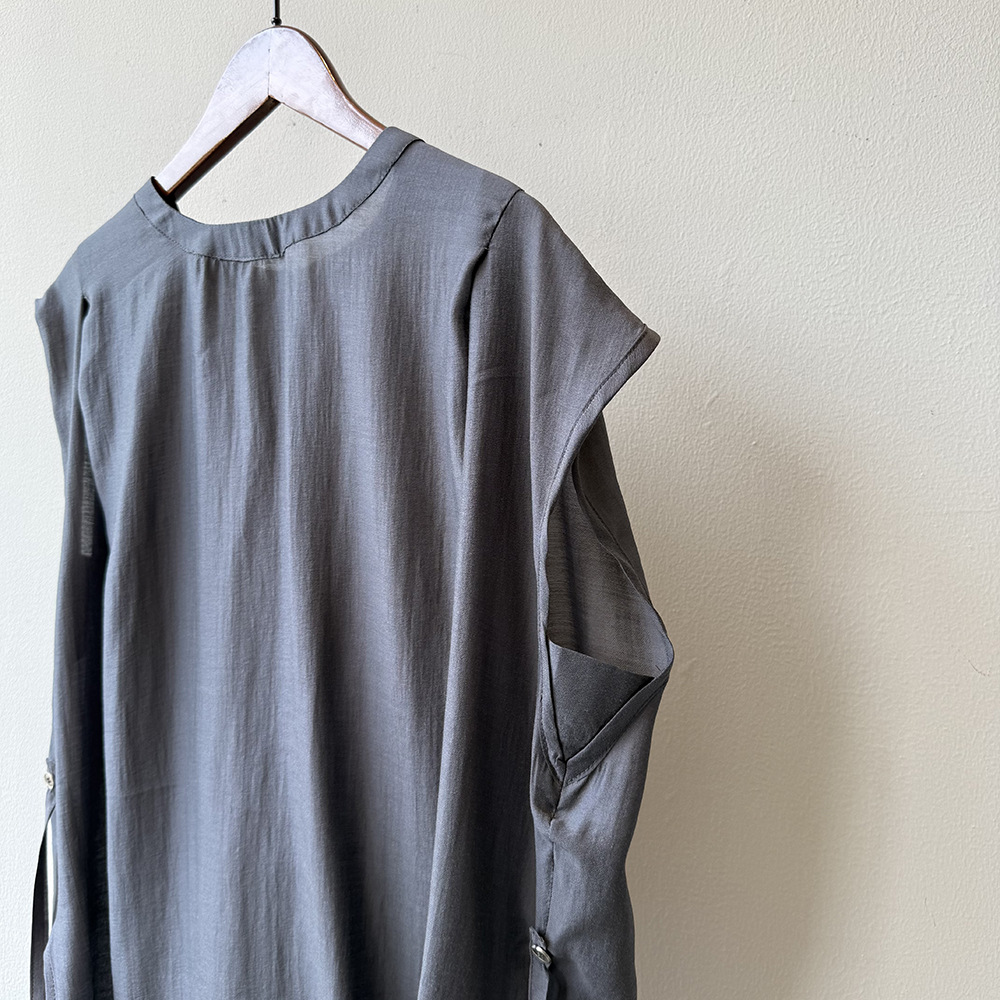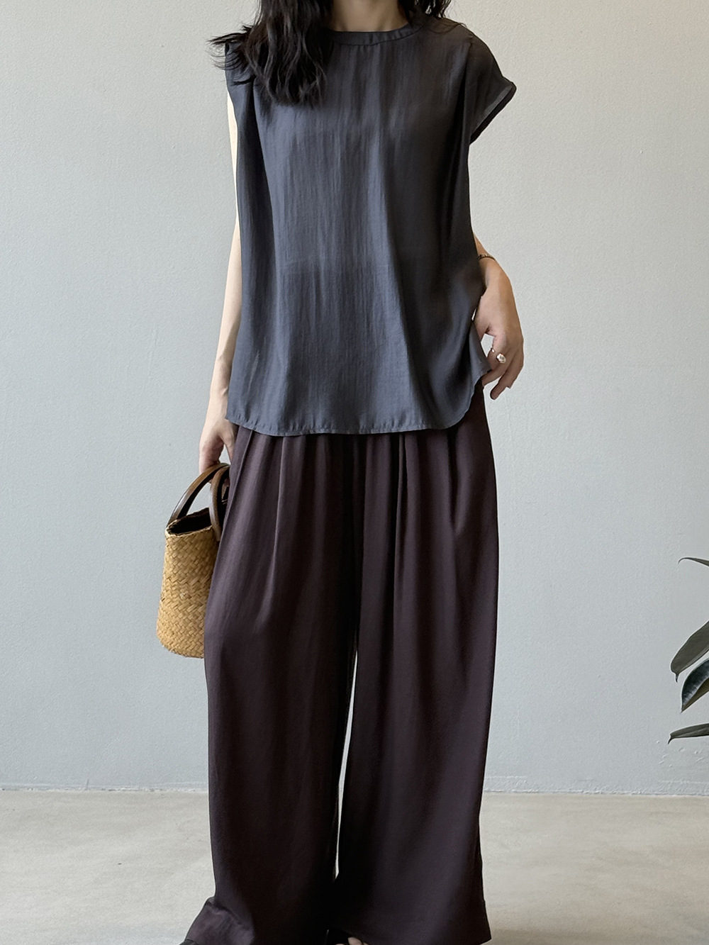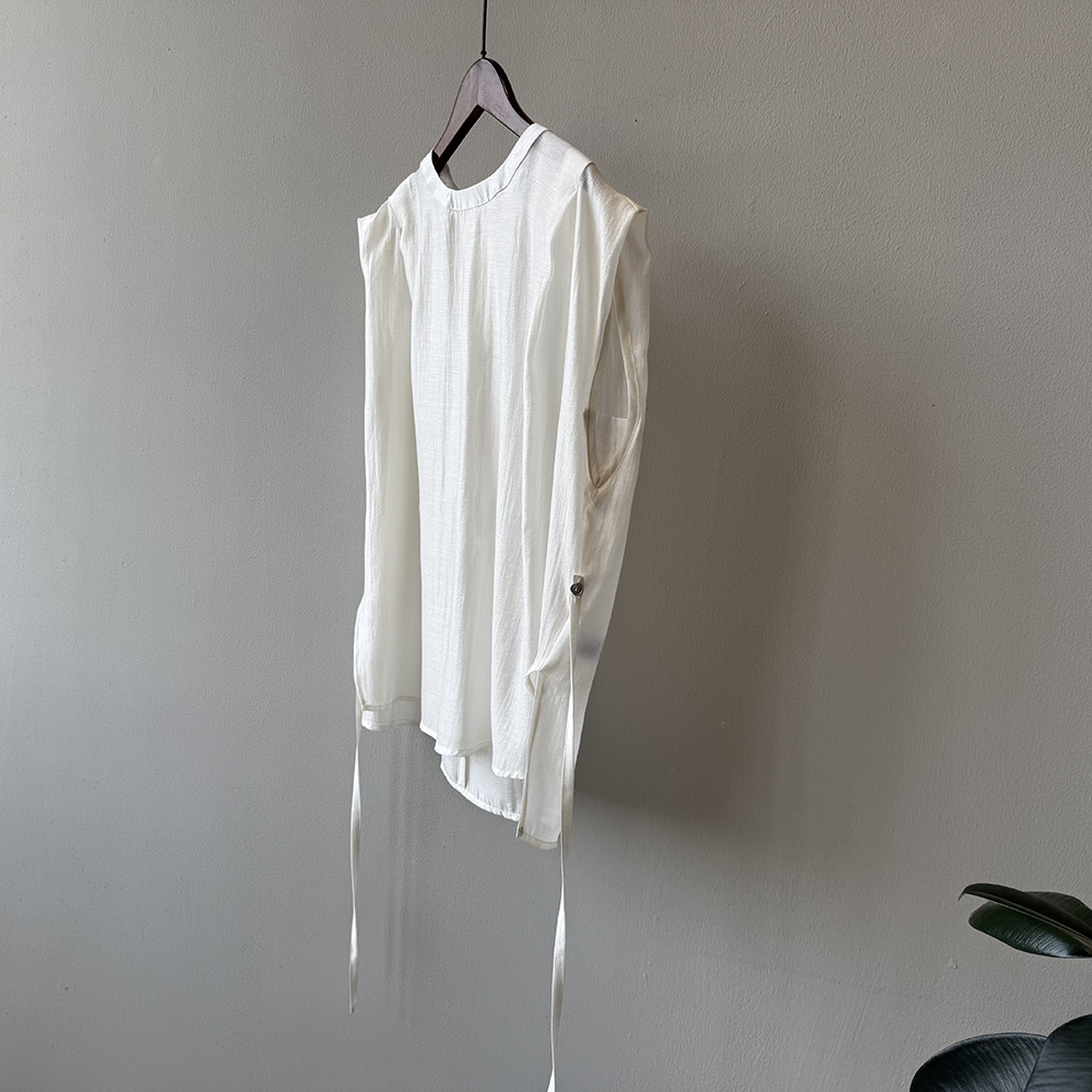 【商品名】【トップス】夏 バックボタンデザイン ラウンドネック プルオーバー ノースリーブテンセルシャツ【JZシリーズ】