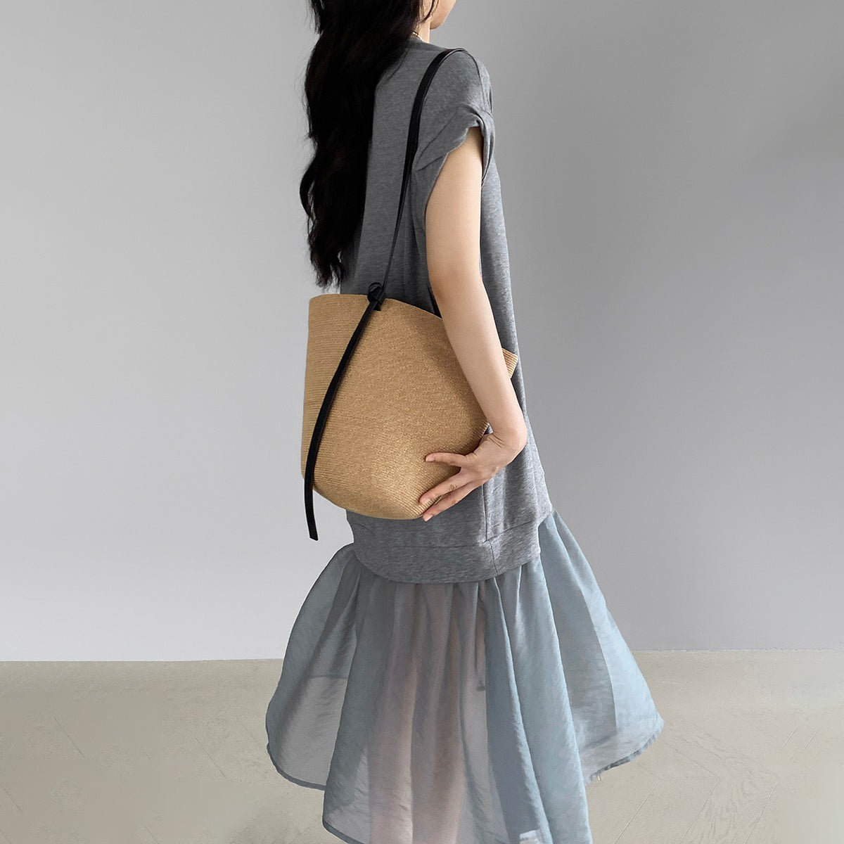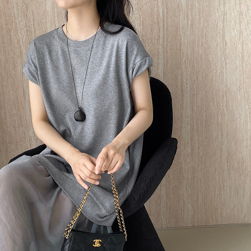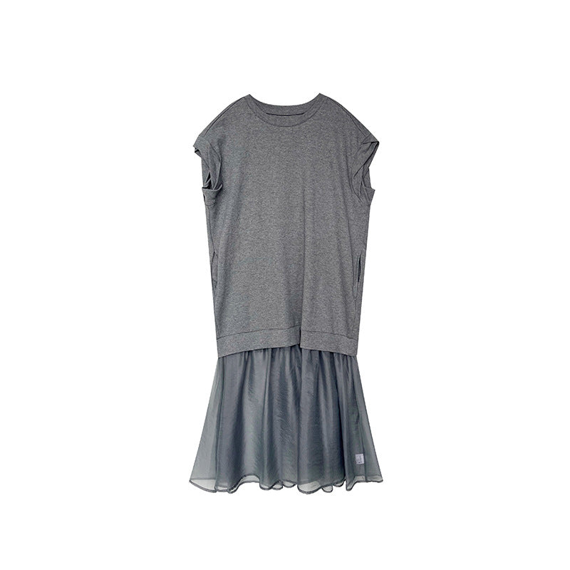 【ワンピース】カジュアル 夏 高級感 韓国風 フェイクツーイン ゆったり半袖Tシャツワンピース【JZシリーズ】