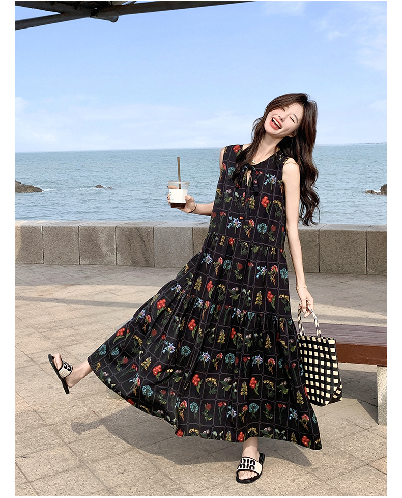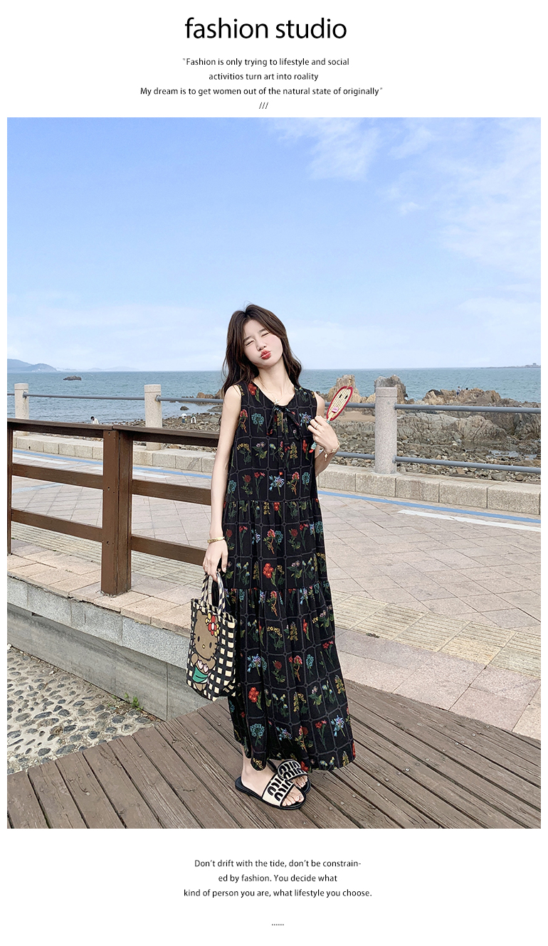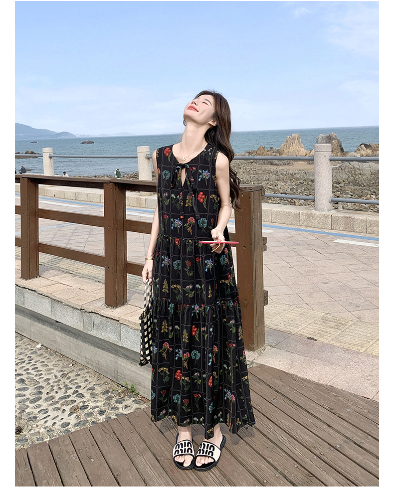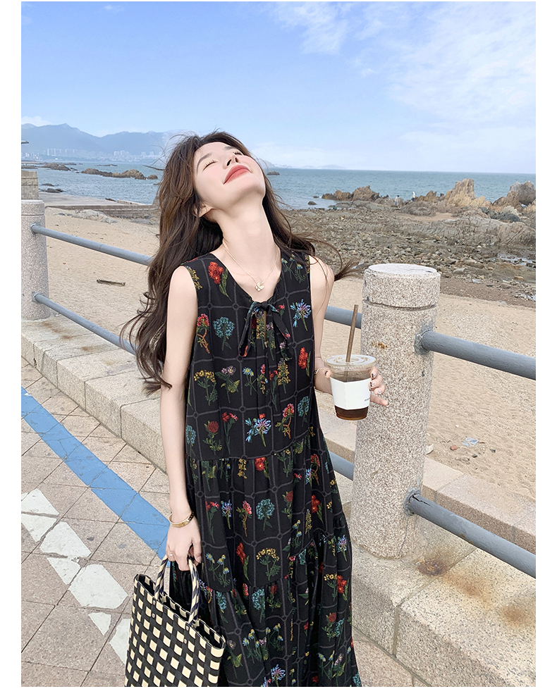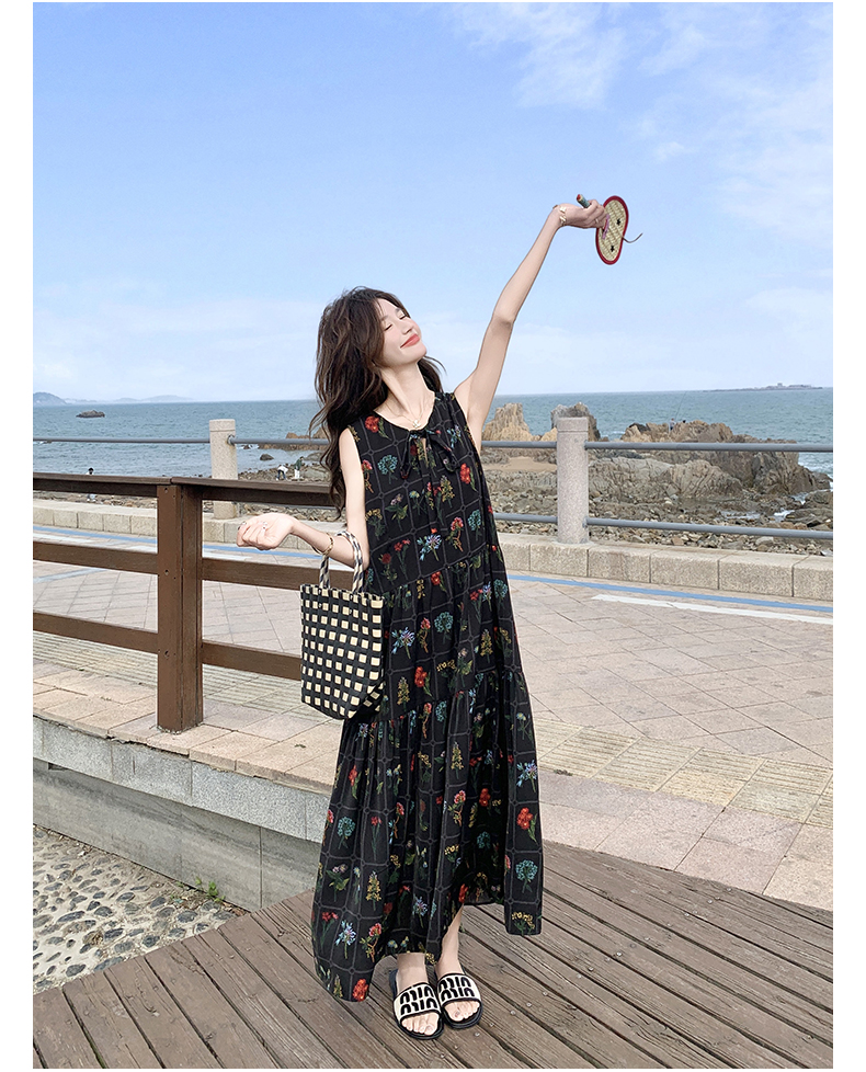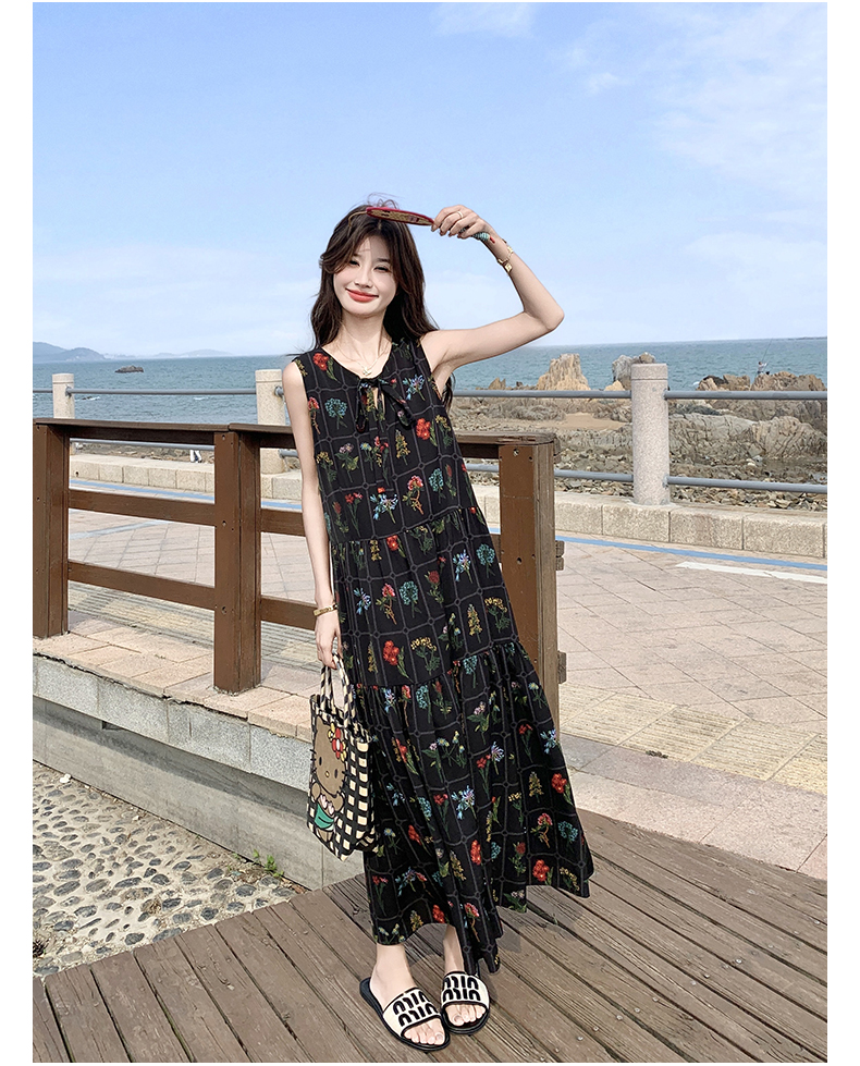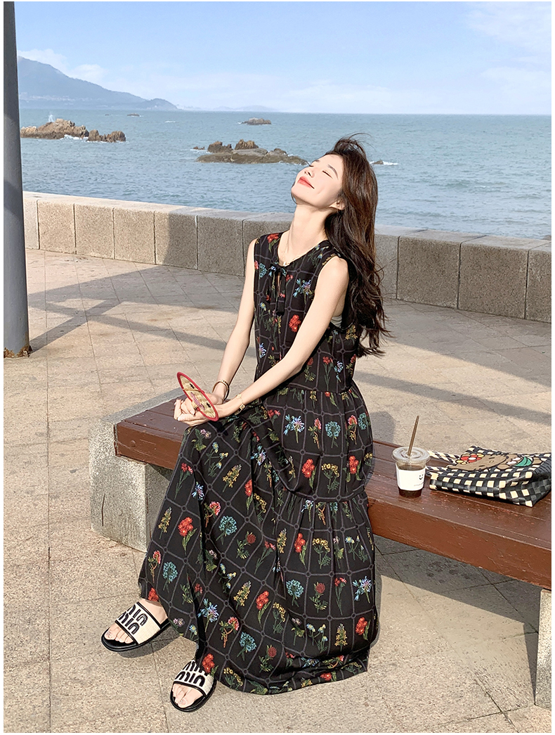 【ワンピース】刺繍プリント ビーチ ノースリーブタンクワンピース【SHシリーズ】