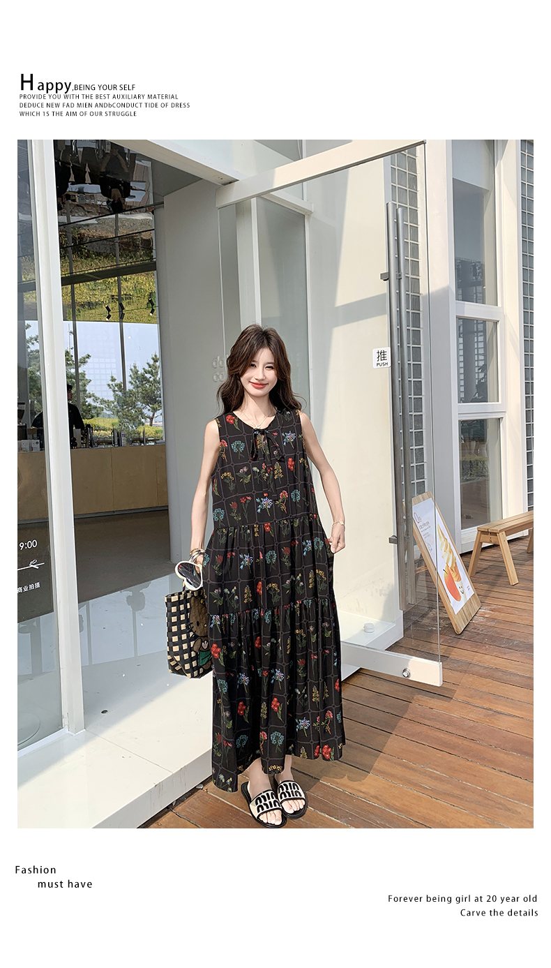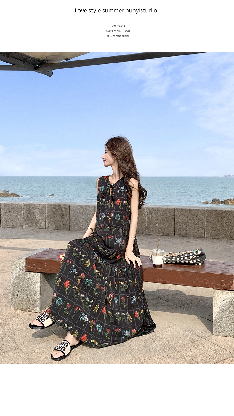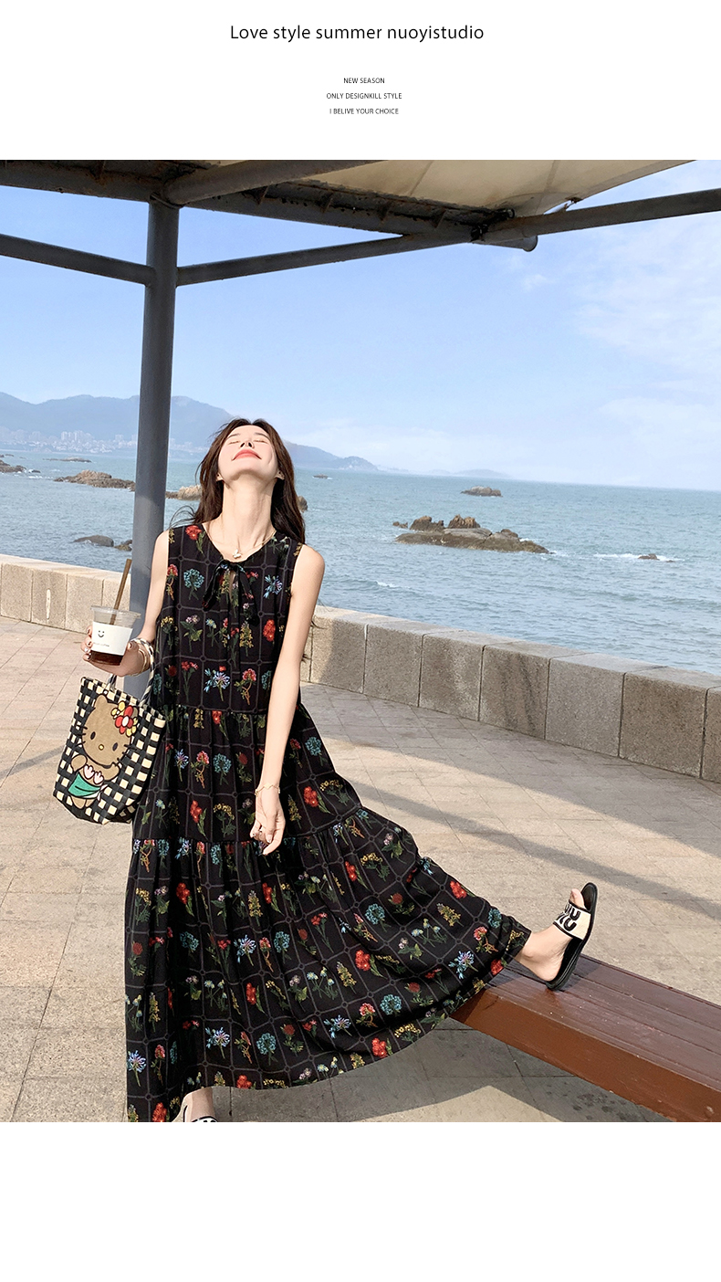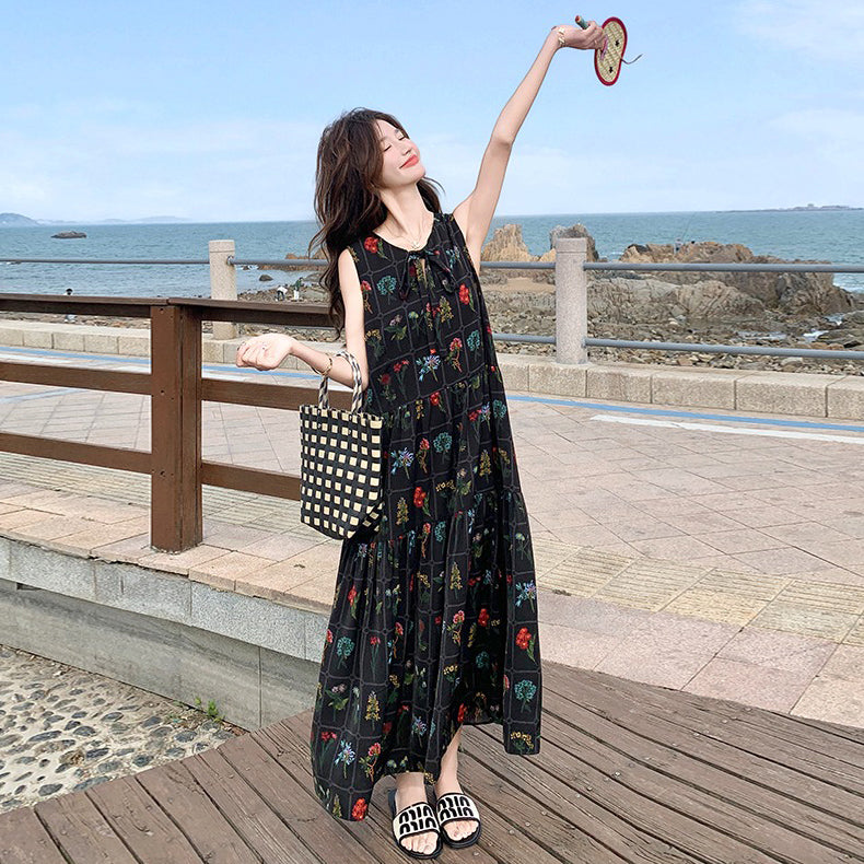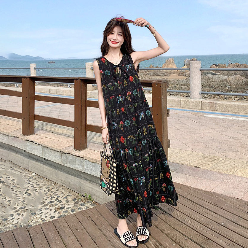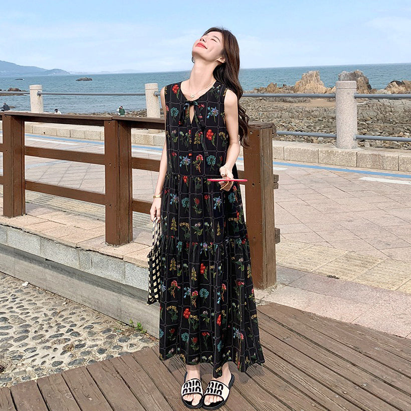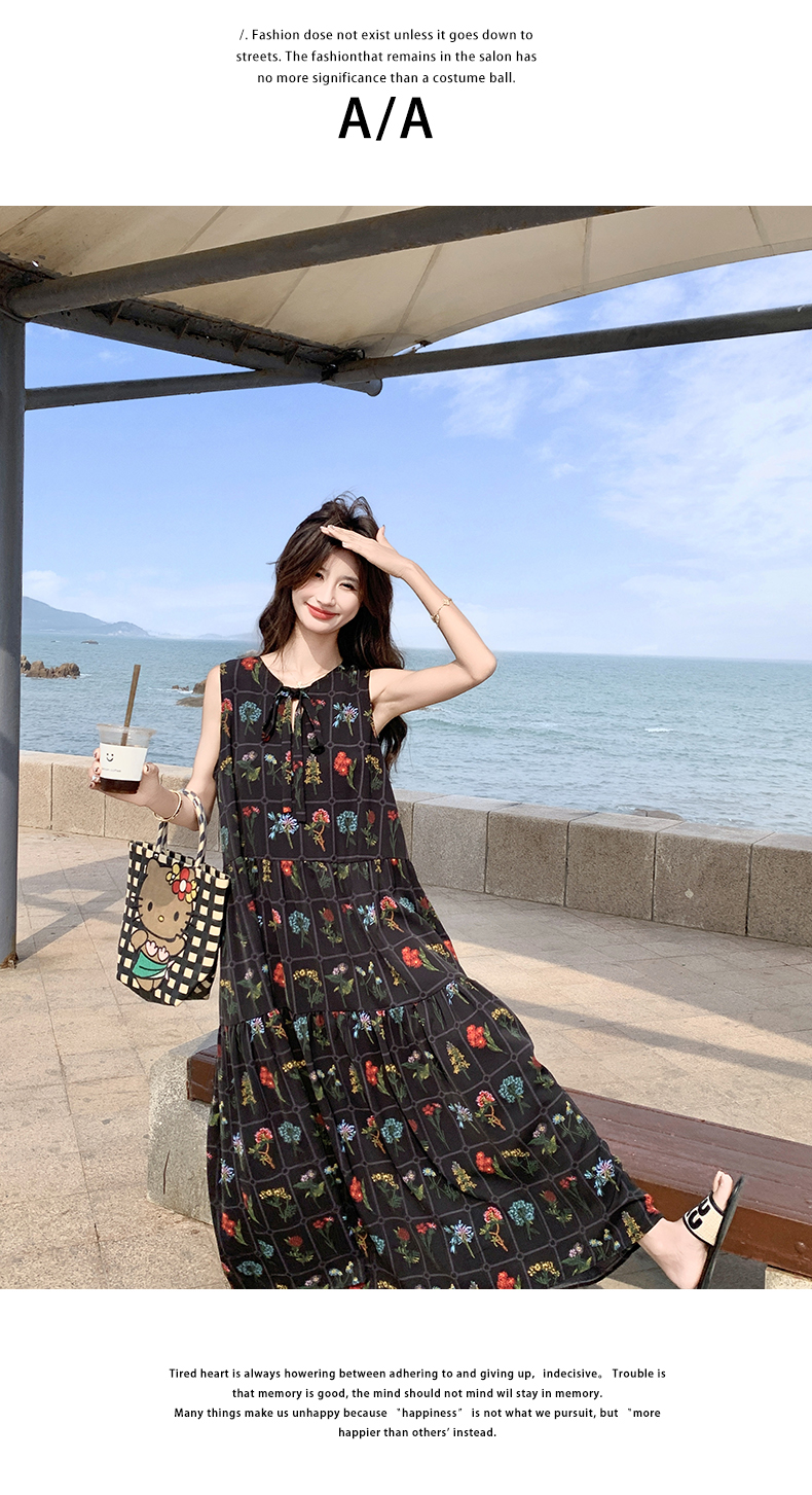 【ワンピース】刺繍プリント ビーチ ノースリーブタンクワンピース【SHシリーズ】