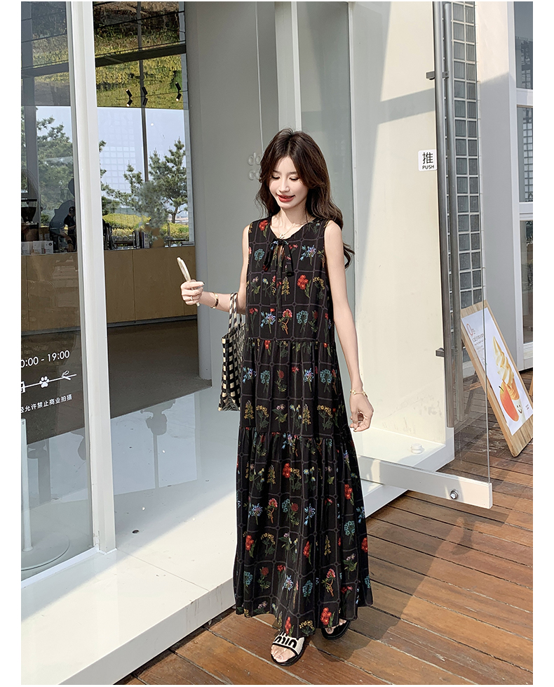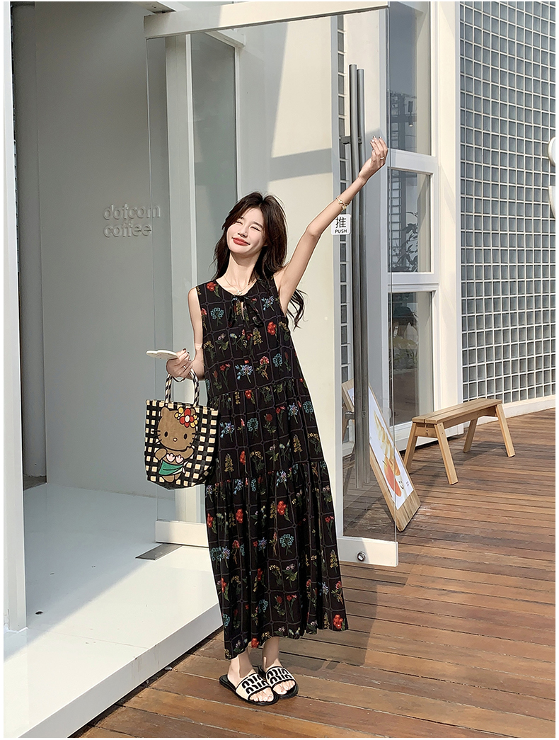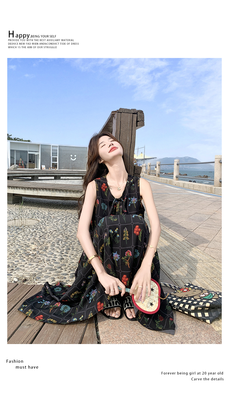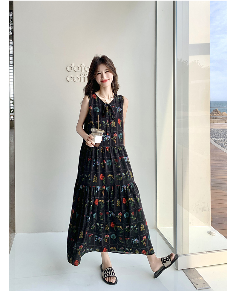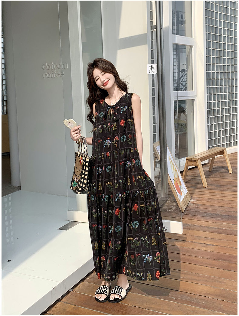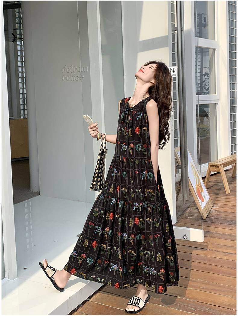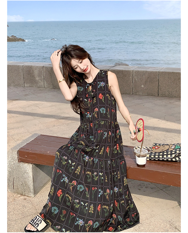 【ワンピース】刺繍プリント ビーチ ノースリーブタンクワンピース【SHシリーズ】